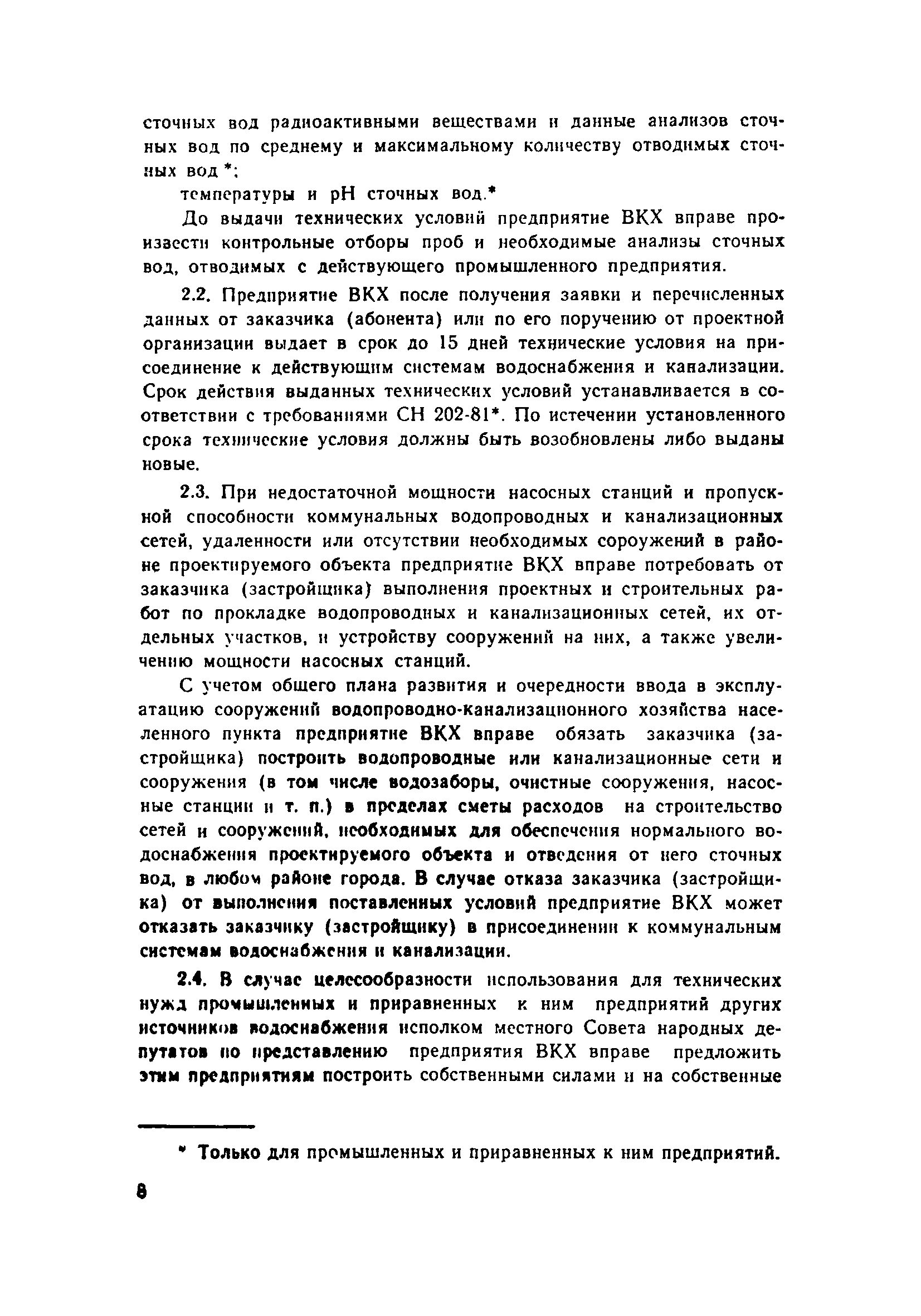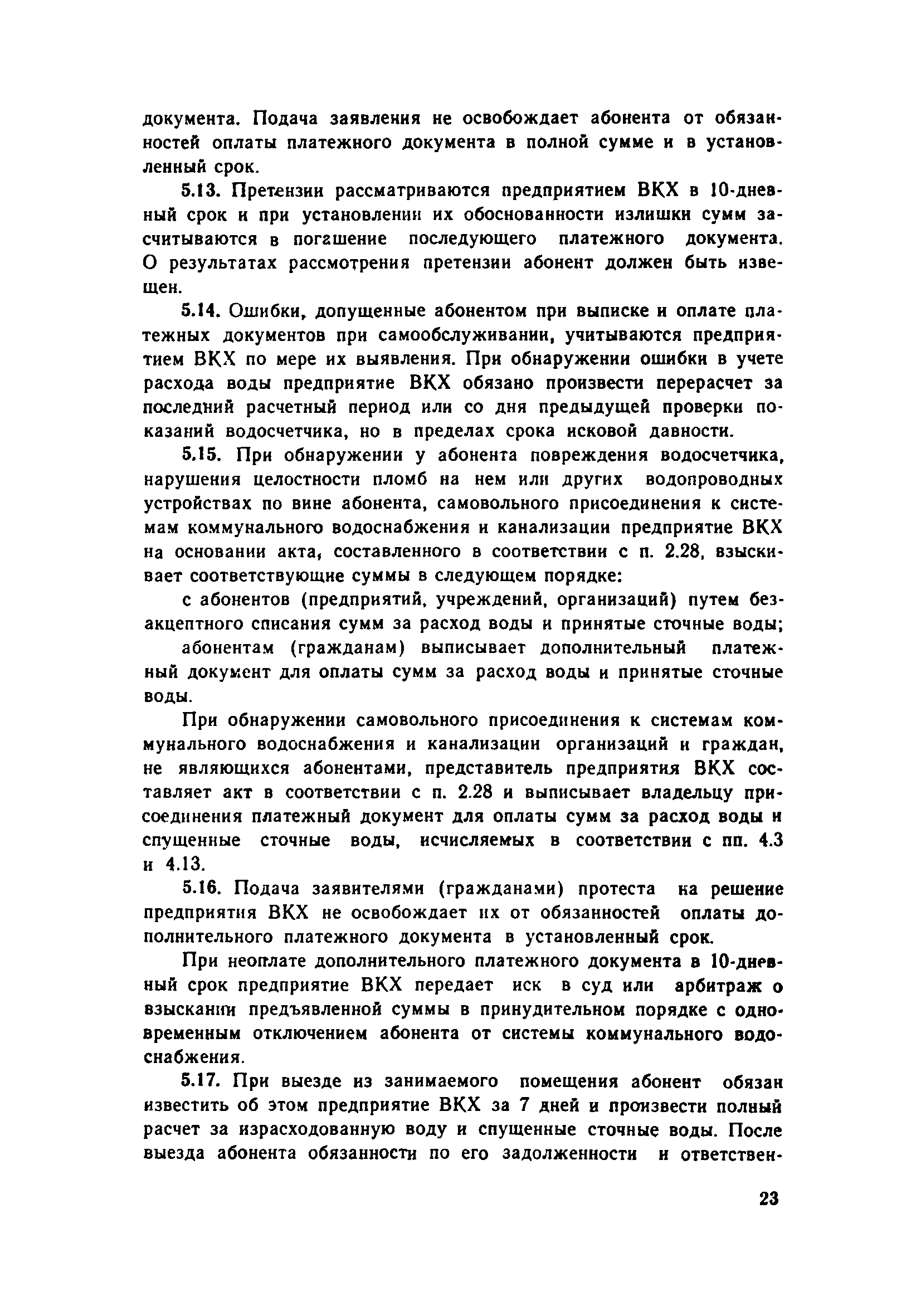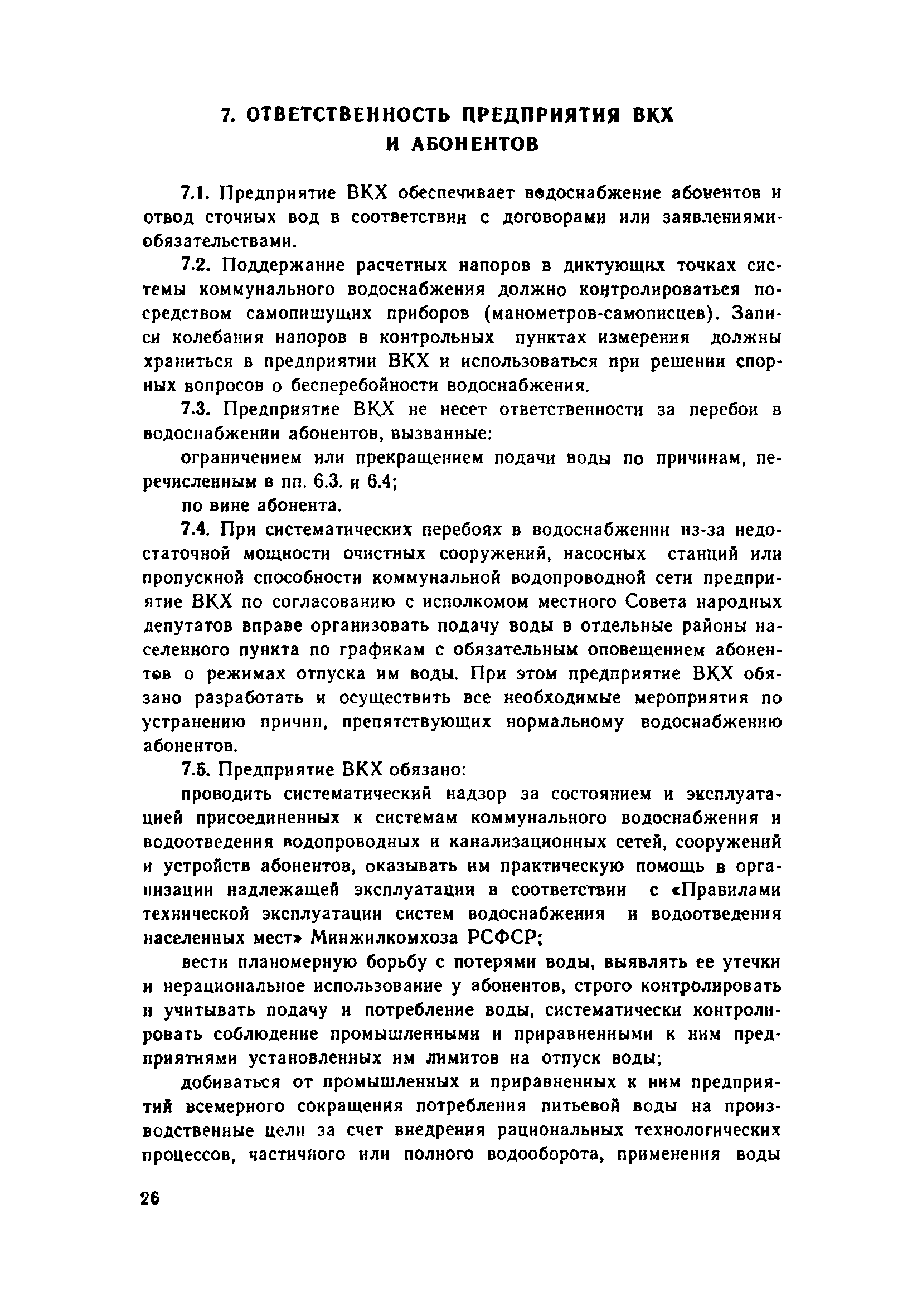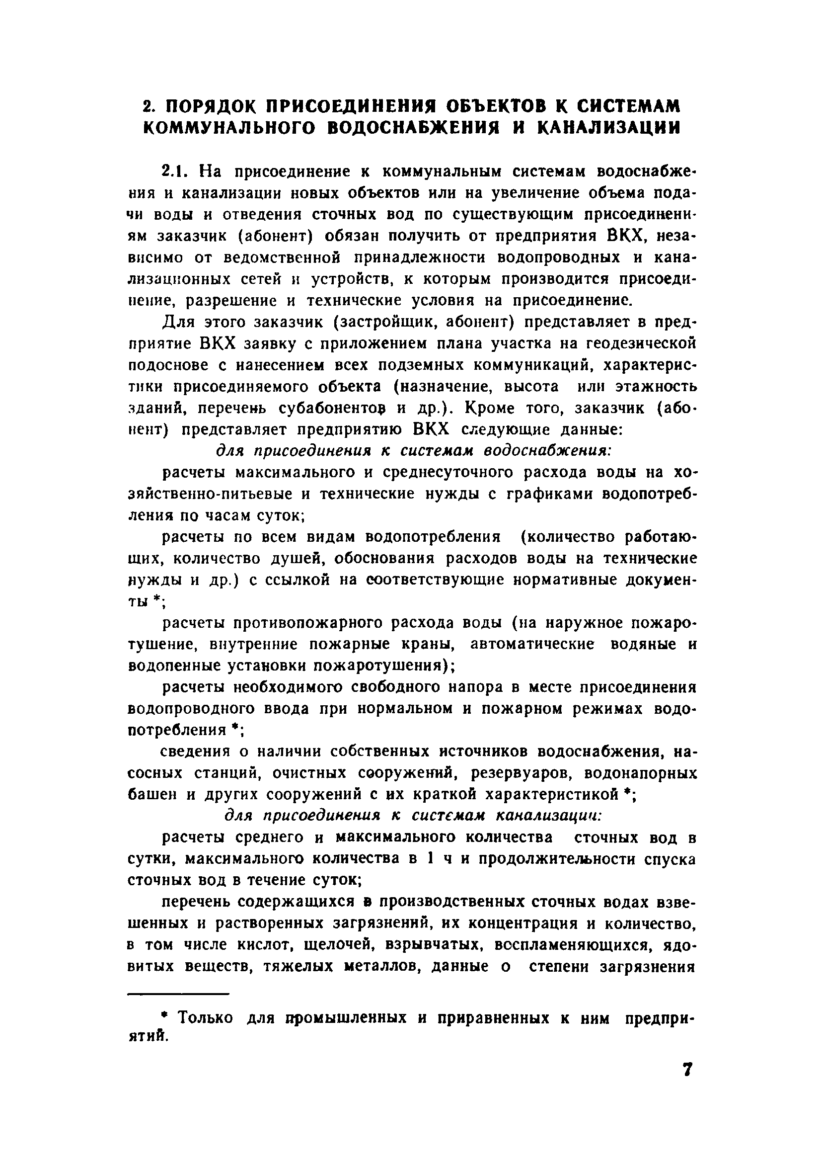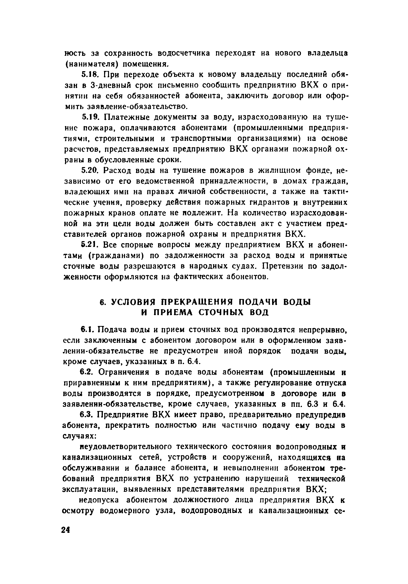 | Оглавление: | 1. Общие положения 2. Порядок присоединения объектов к системам коммунального водоснабжения и канализации 3. Установка и эксплуатация приборов ДЛУ учета отпущенной воды и принятых сточных вод 4. Учет количества отпущенной воды и принятых сточных вод 5. Расчеты за пользование водой и прием сточных вод 6. Условия прекращения подачи воды и приема сточных вод 7. Ответственность предприятия ВКХ и абонентов Приложение 1 Типовой договор на отпуск воды и прием сточных вод Приложение 2 Заявление-обязательство |