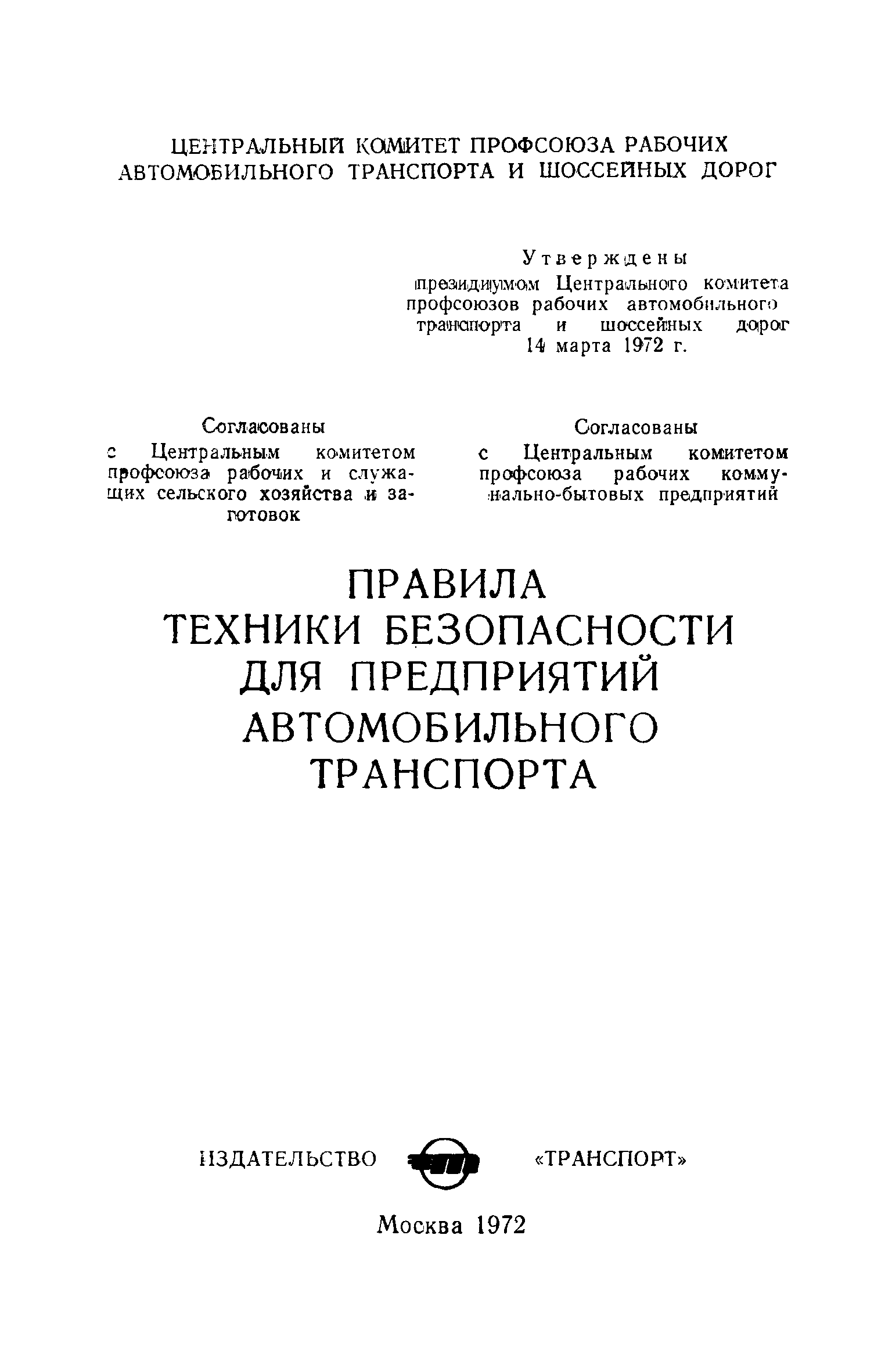 | Название рус.: | Правила техники безопасности для предприятий автомобильного транспорта |