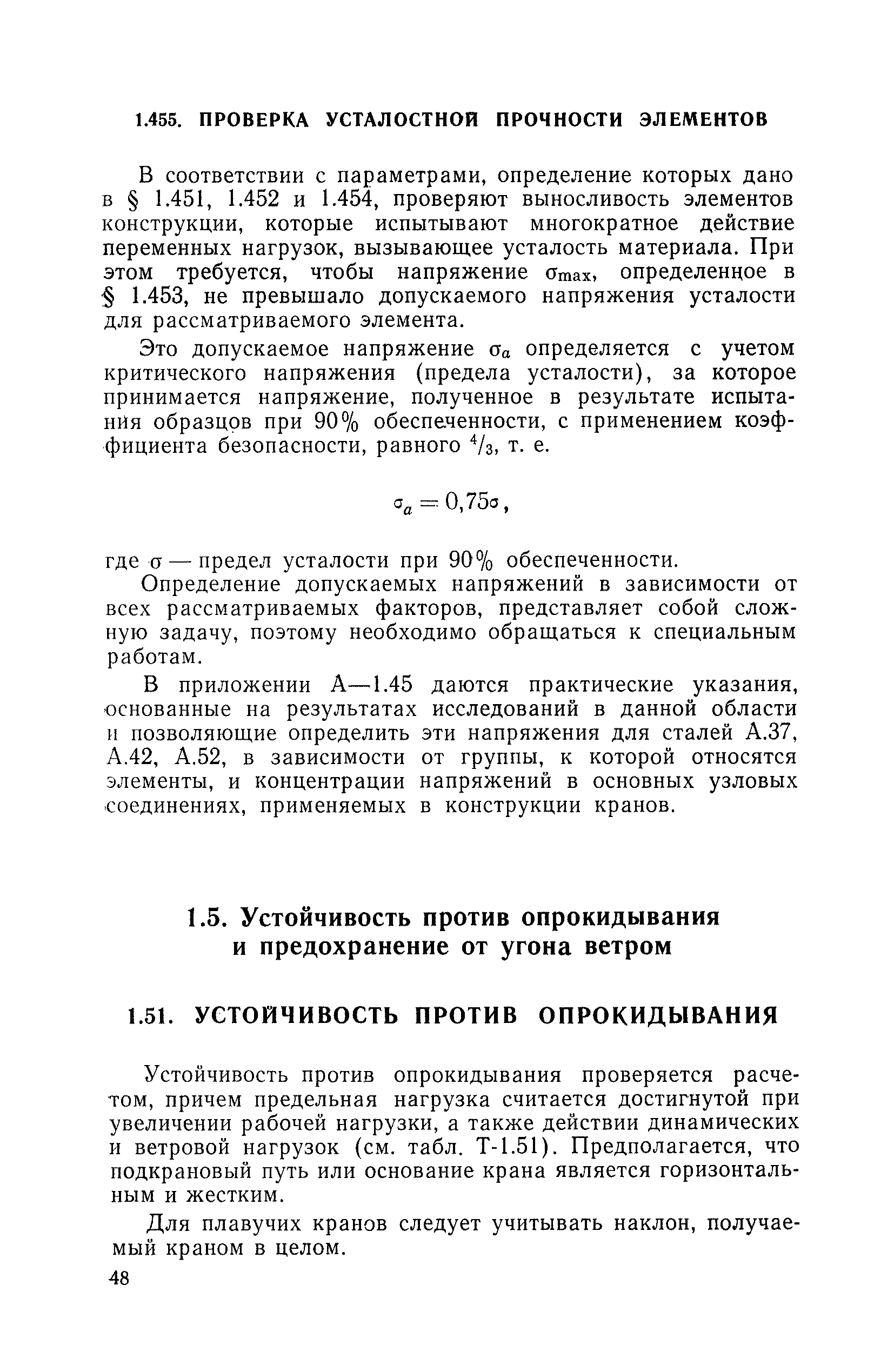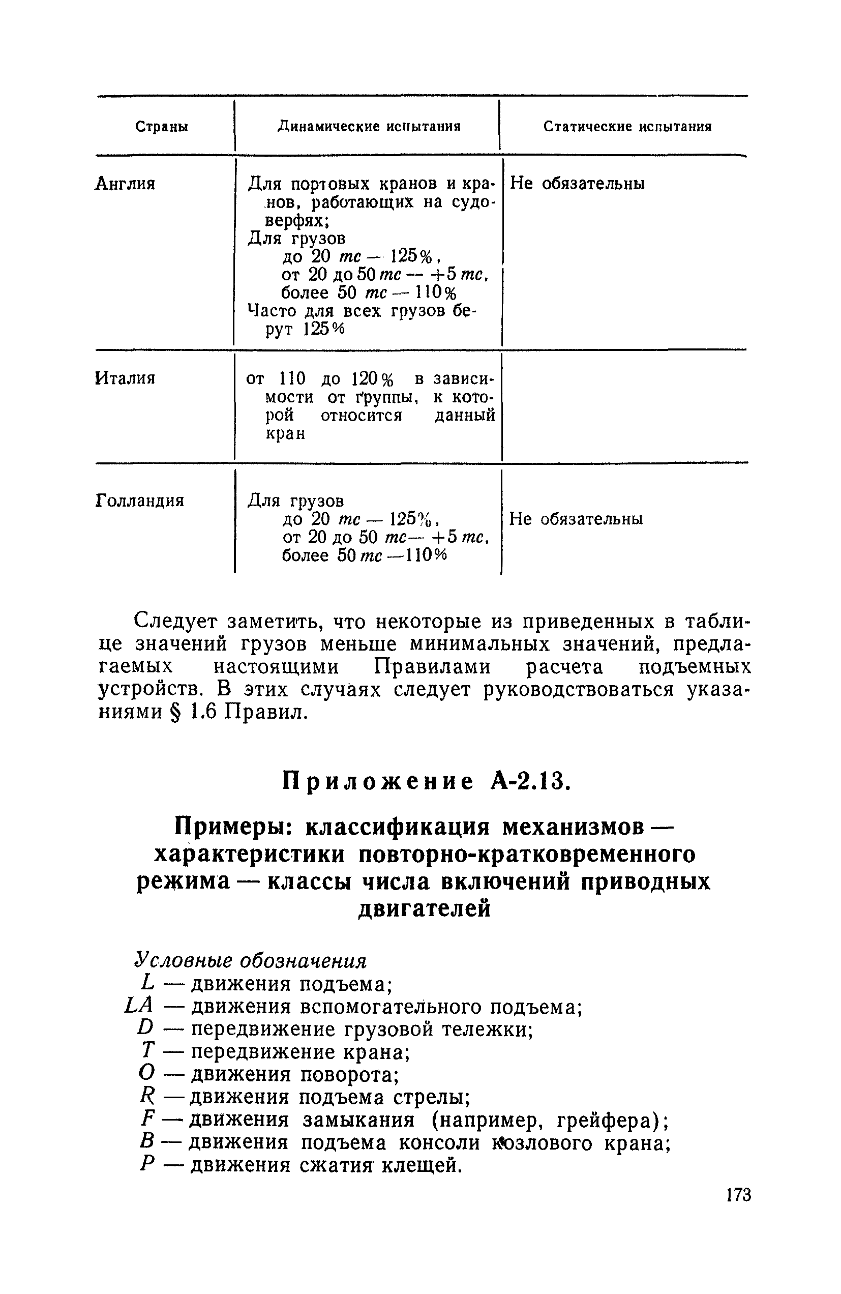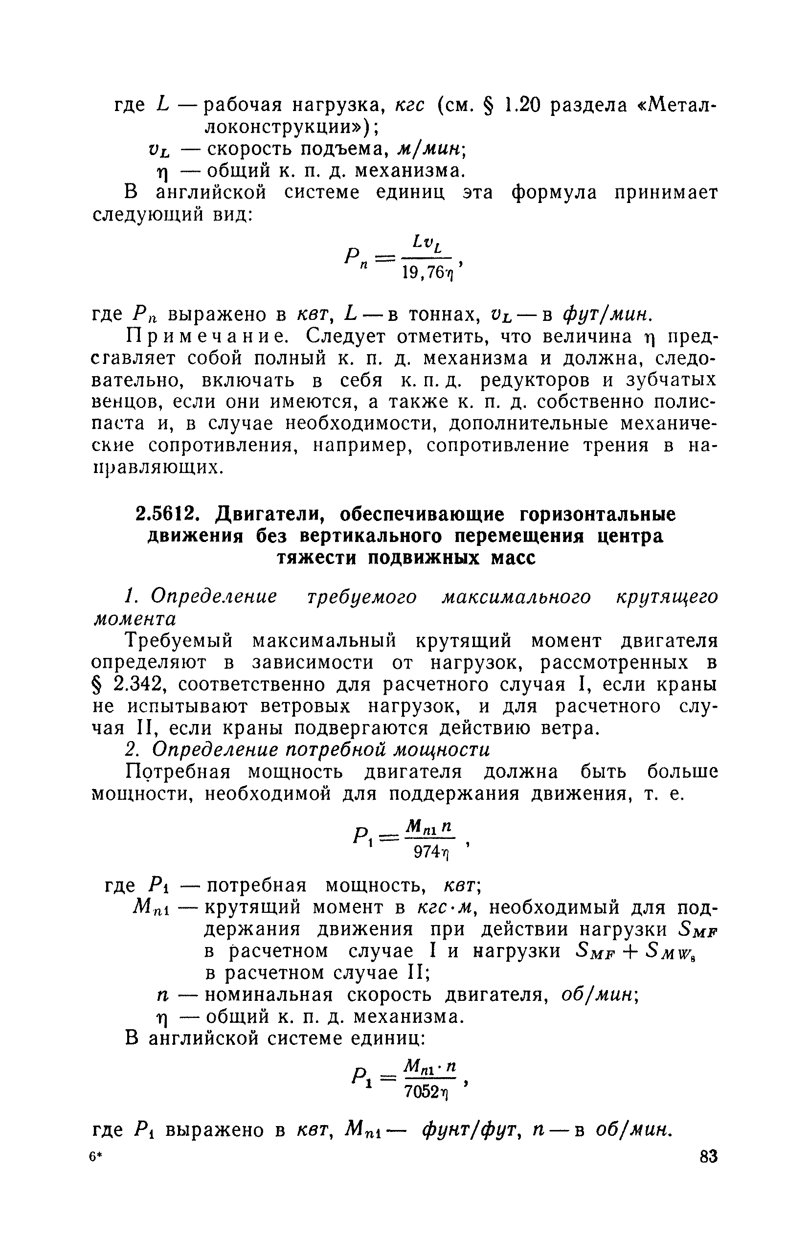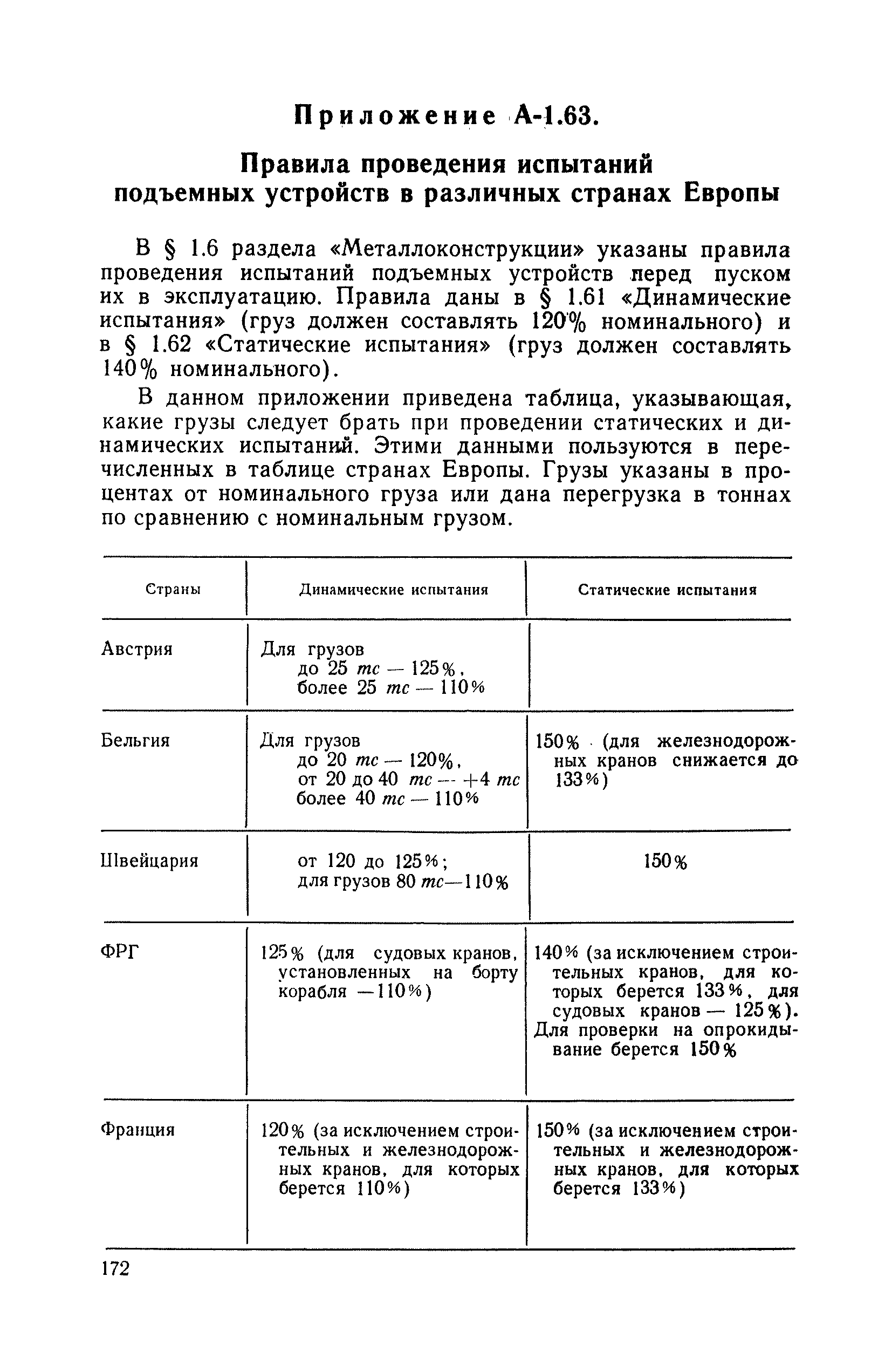 Правила расчета подъемных устройств. Материалы ФЕМ| Статус: | справочные материалы, мп, тпр | | Название рус.: | Правила расчета подъемных устройств. Материалы ФЕМ | | Дата добавления в базу: | 01.02.2020 | | Дата актуализации: | 01.01.2021 | | Область применения: | Правила расчета подъемных устройств, разработанные секцией I ФЕМ, содержат расчеты механизмов и металлоконструкций кранов, классификацию кранов и их механизмов по режиму работы, определение расчетных нагрузок, а также расчеты на прочность, устойчивость и долговечность. Приводимые расчетные формулы и коэффициенты, отражающие европейский опыт проектирования, даны в удобной для практического применения форме и могут быть использованы в качестве пособия инженерно-техническими работниками краностроительных заводов, конструкторских бюро и институтов. | | Оглавление: | 1. Металлоконструкция 2. Механизмы Приложение А-1.11 Установление соотношения классов использования металлоконструкций и классов работы механиков Приложение А-1.23 Определение нагрузок от ускорений горизонтальных движений Приложение А-1.234 Вопросы расчета на удар в тупик Приложение А-1.1423 Выполнение соединений с помощью высокопрочных болтов с контролируемой затяжкой Приложение А-1.42 и А-1.43 Проверка устойчивости элементов, подвергающихся деформации продольного изгиба Приложение А-1.45 Проверка усталостной прочности элементов металлоконструкций Приложение А-1.36 Правила проведения испытаний подъемных устройств в различных странах Европа Приложение А-2.13 Примеры: классификация механизмов - характеристики повторно-кратковременного режима - классы числа включений приводных двигателей Приложение А-2.43 Определение допускаемых напряжений в элементах механизмов с учетом усталости Приложение А-2.52 Замечания о выборе канатов и определении коэффициентов запаса Приложение А-2.53 Замечания об определении минимальных диаметров блоков и барабанов Условные обозначения | | Утверждён: | Министерство строительного, дорожного и коммунального машиностроения СССР