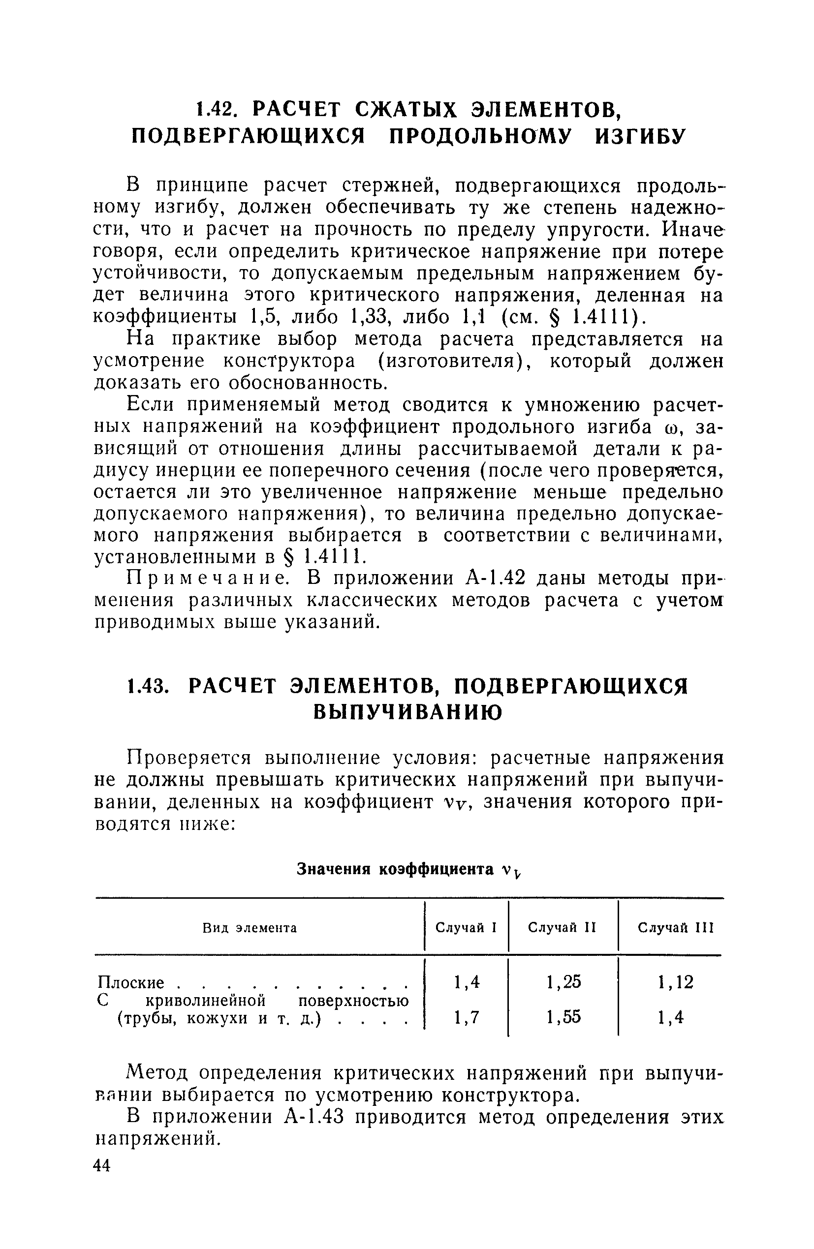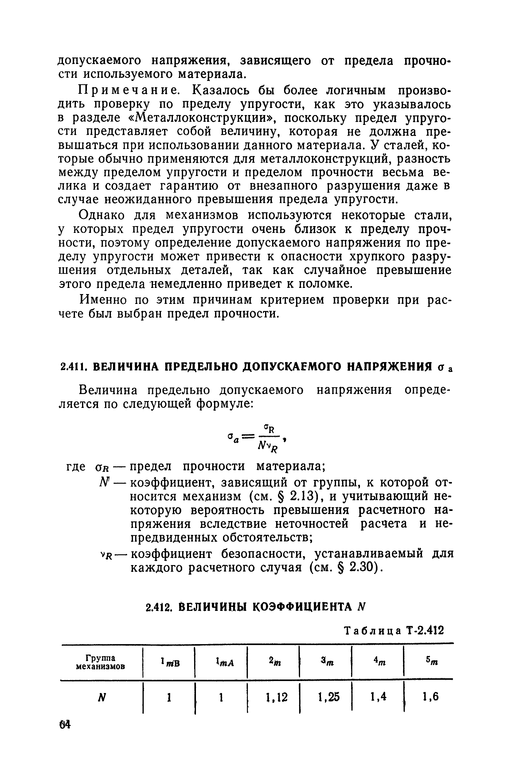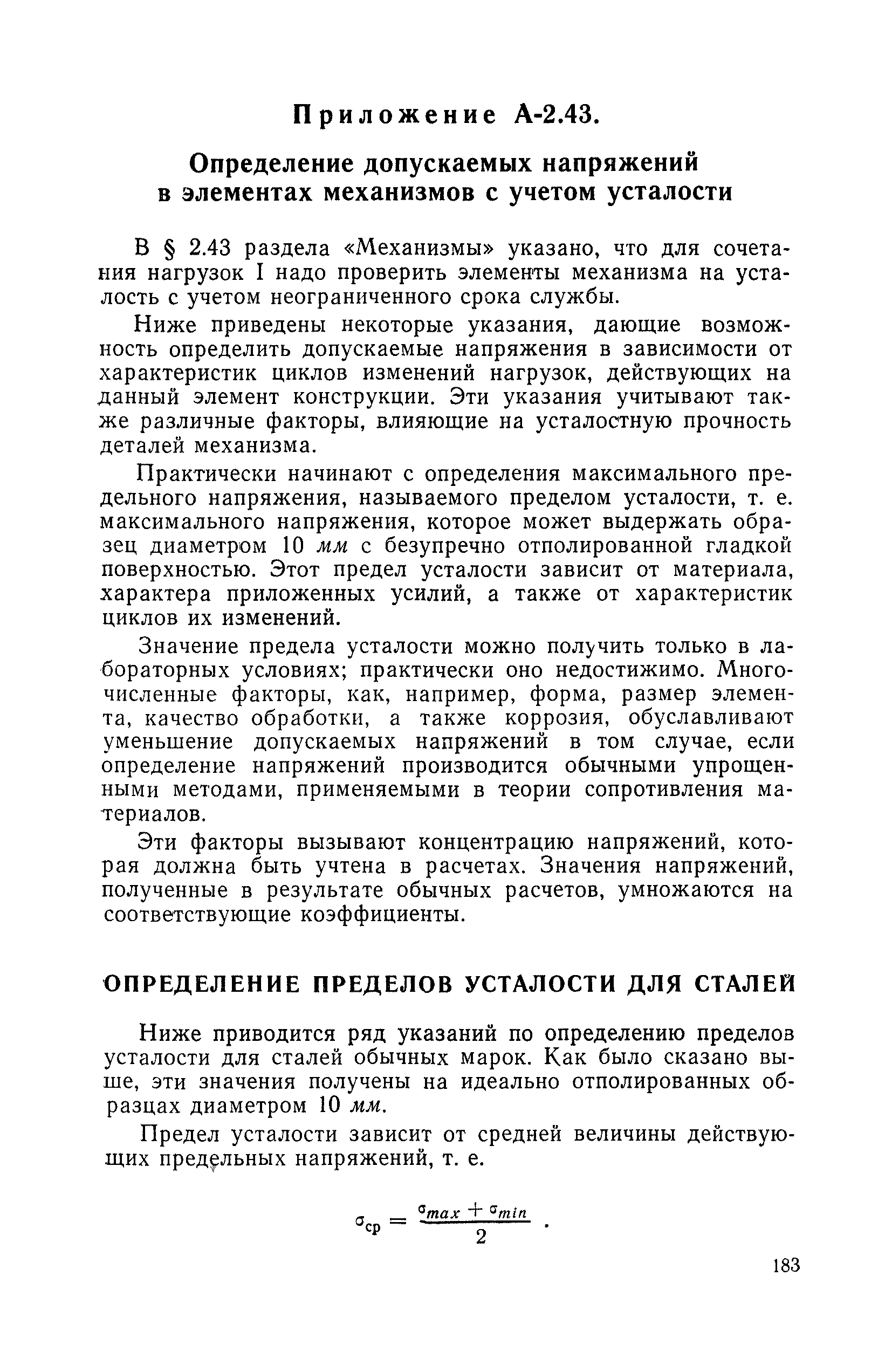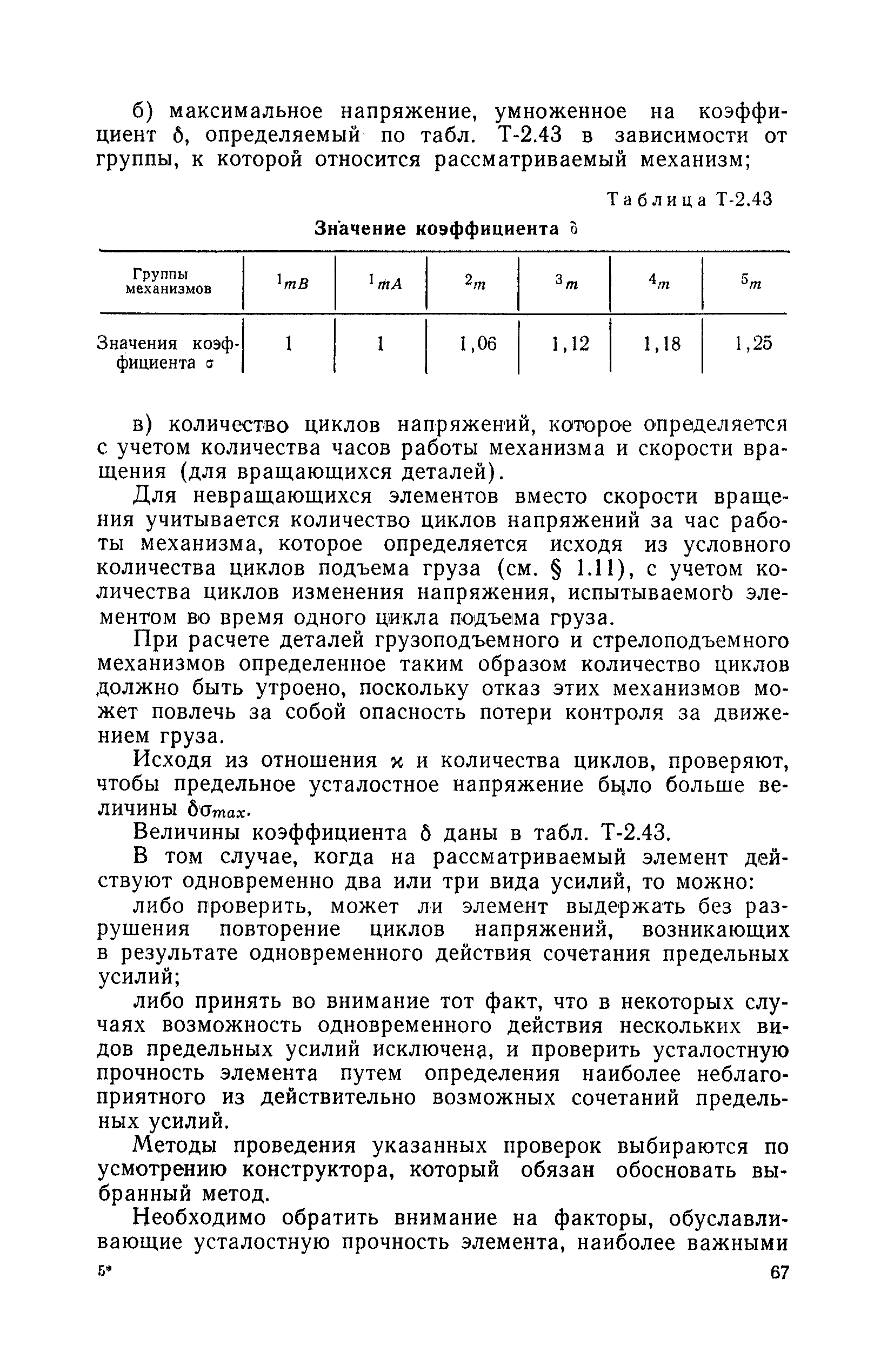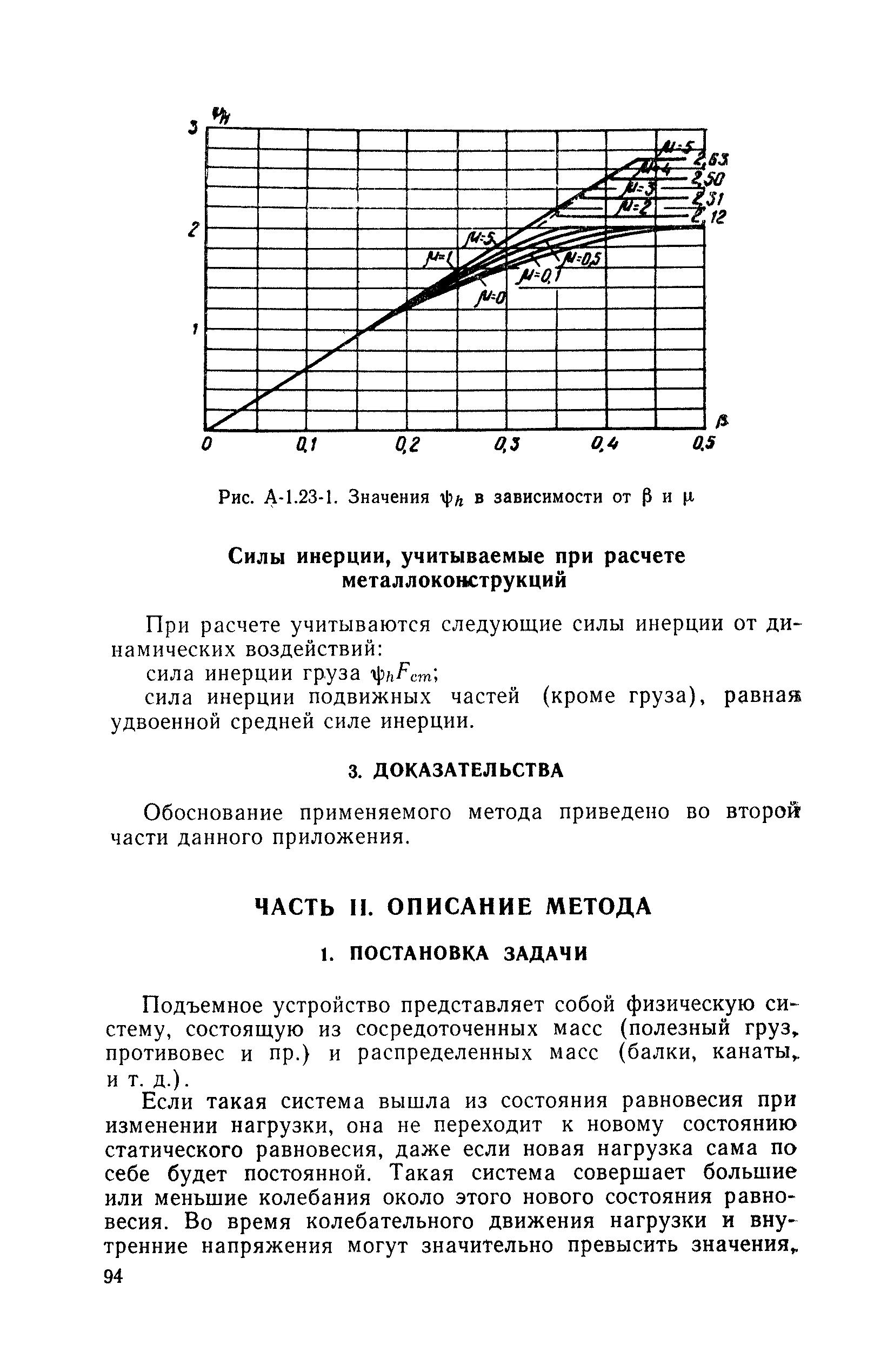 Правила расчета подъемных устройств. Материалы ФЕМ| Статус: | справочные материалы, мп, тпр | | Название рус.: | Правила расчета подъемных устройств. Материалы ФЕМ | | Дата добавления в базу: | 01.02.2020 | | Дата актуализации: | 01.01.2021 | | Область применения: | Правила расчета подъемных устройств, разработанные секцией I ФЕМ, содержат расчеты механизмов и металлоконструкций кранов, классификацию кранов и их механизмов по режиму работы, определение расчетных нагрузок, а также расчеты на прочность, устойчивость и долговечность. Приводимые расчетные формулы и коэффициенты, отражающие европейский опыт проектирования, даны в удобной для практического применения форме и могут быть использованы в качестве пособия инженерно-техническими работниками краностроительных заводов, конструкторских бюро и институтов. | | Оглавление: | 1. Металлоконструкция 2. Механизмы Приложение А-1.11 Установление соотношения классов использования металлоконструкций и классов работы механиков Приложение А-1.23 Определение нагрузок от ускорений горизонтальных движений Приложение А-1.234 Вопросы расчета на удар в тупик Приложение А-1.1423 Выполнение соединений с помощью высокопрочных болтов с контролируемой затяжкой Приложение А-1.42 и А-1.43 Проверка устойчивости элементов, подвергающихся деформации продольного изгиба Приложение А-1.45 Проверка усталостной прочности элементов металлоконструкций Приложение А-1.36 Правила проведения испытаний подъемных устройств в различных странах Европа Приложение А-2.13 Примеры: классификация механизмов - характеристики повторно-кратковременного режима - классы числа включений приводных двигателей Приложение А-2.43 Определение допускаемых напряжений в элементах механизмов с учетом усталости Приложение А-2.52 Замечания о выборе канатов и определении коэффициентов запаса Приложение А-2.53 Замечания об определении минимальных диаметров блоков и барабанов Условные обозначения | | Утверждён: | Министерство строительного, дорожного и коммунального машиностроения СССР