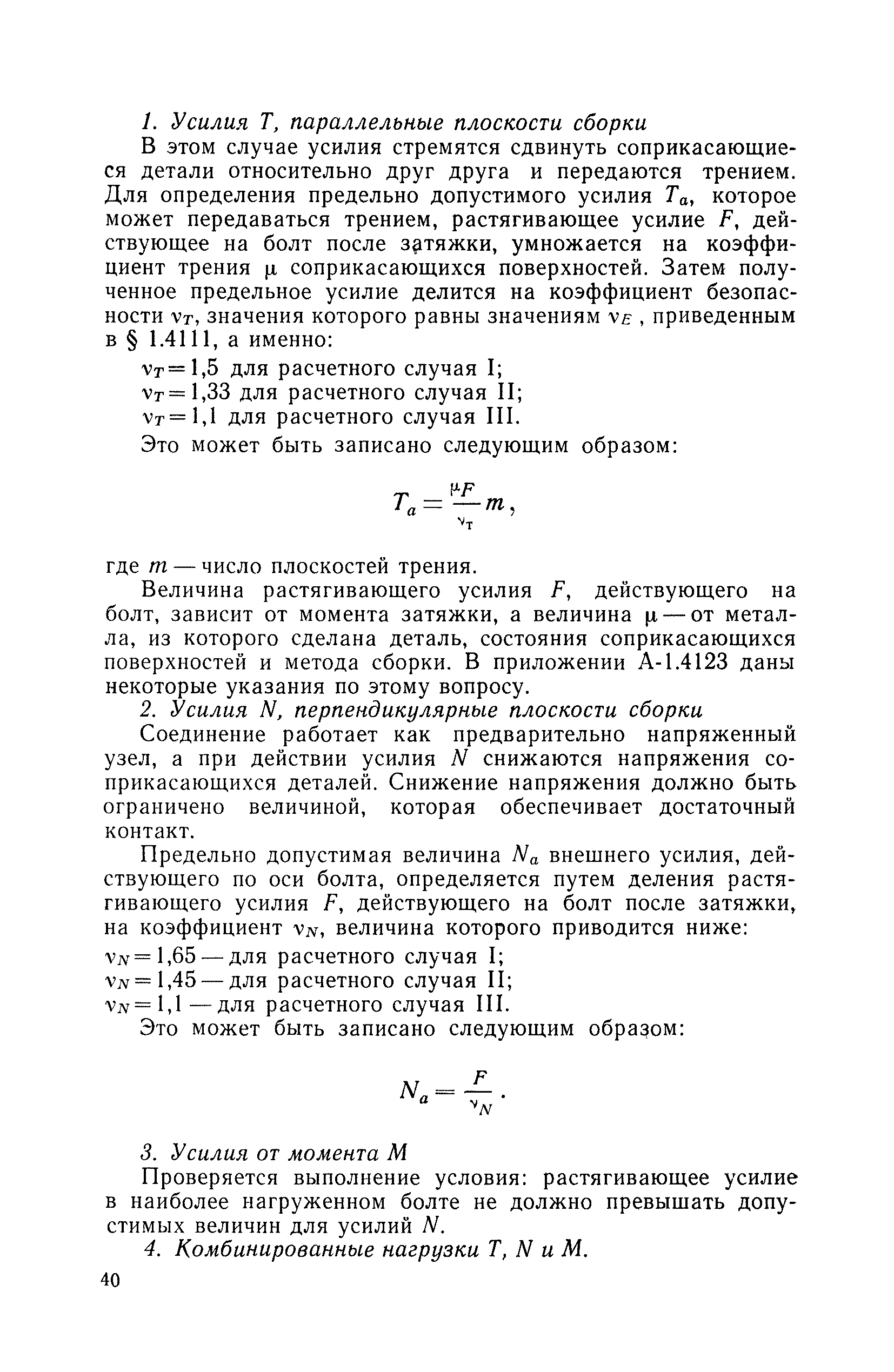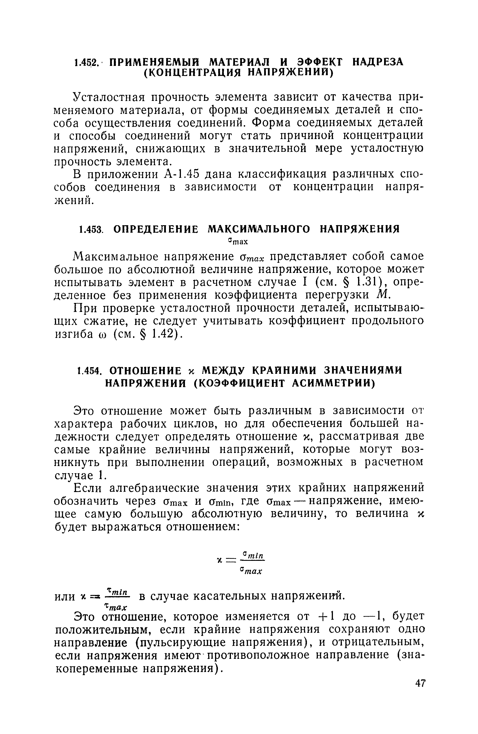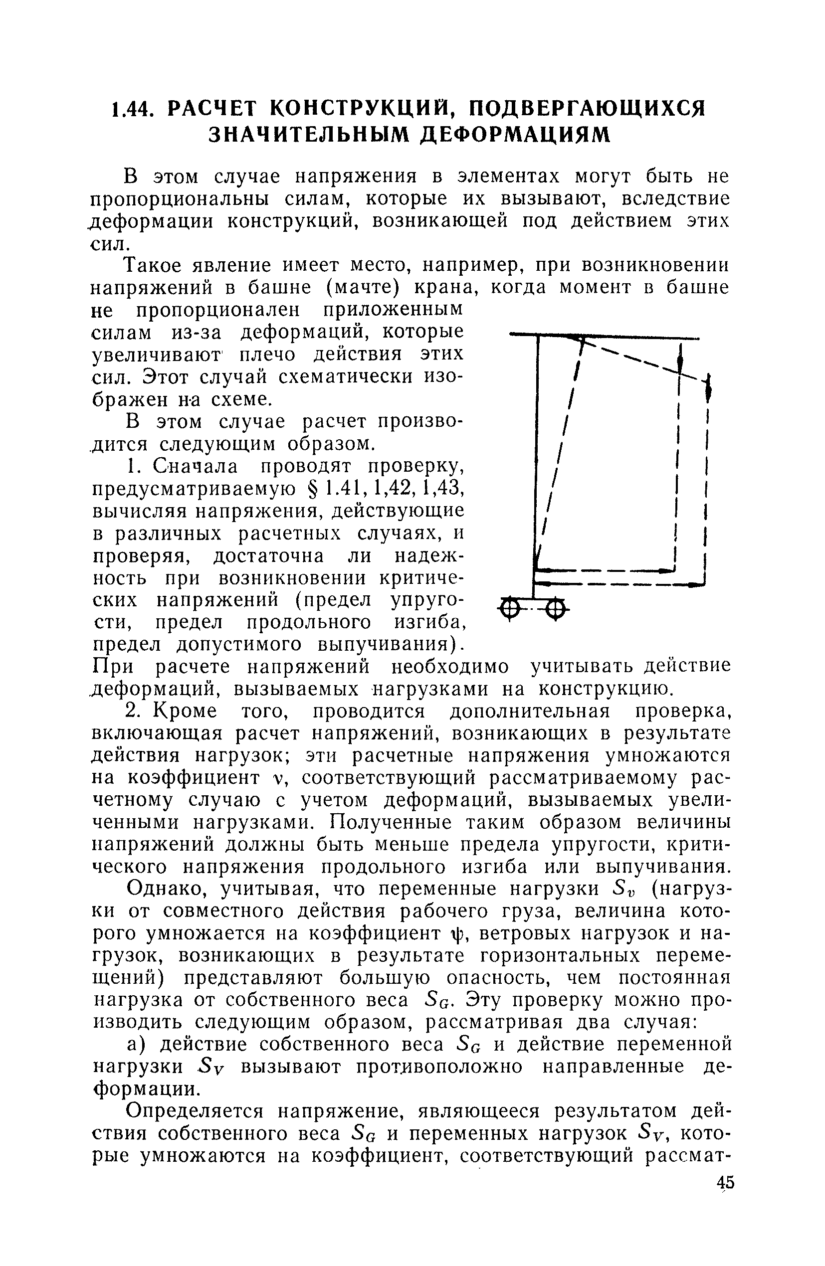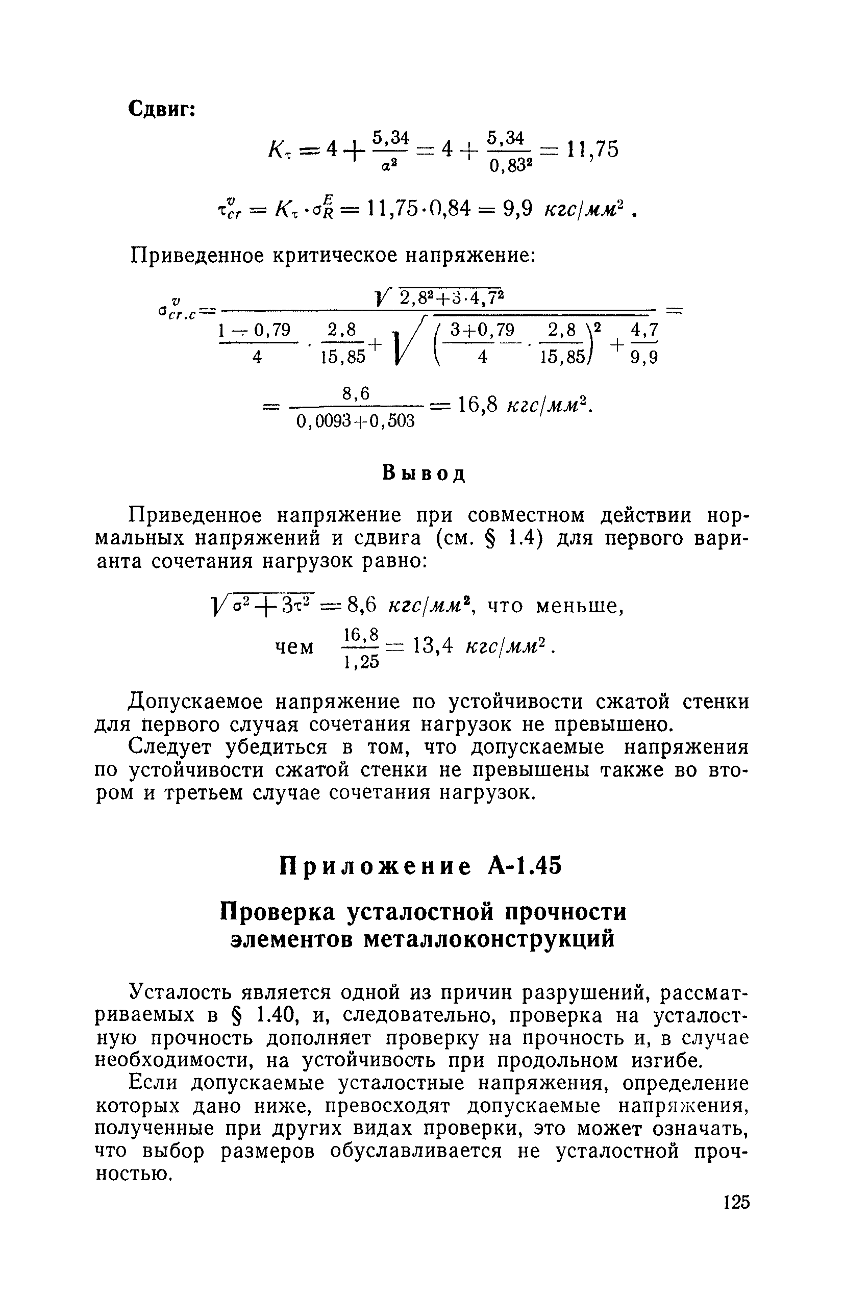 Правила расчета подъемных устройств. Материалы ФЕМ| Статус: | справочные материалы, мп, тпр | | Название рус.: | Правила расчета подъемных устройств. Материалы ФЕМ | | Дата добавления в базу: | 01.02.2020 | | Дата актуализации: | 01.01.2021 | | Область применения: | Правила расчета подъемных устройств, разработанные секцией I ФЕМ, содержат расчеты механизмов и металлоконструкций кранов, классификацию кранов и их механизмов по режиму работы, определение расчетных нагрузок, а также расчеты на прочность, устойчивость и долговечность. Приводимые расчетные формулы и коэффициенты, отражающие европейский опыт проектирования, даны в удобной для практического применения форме и могут быть использованы в качестве пособия инженерно-техническими работниками краностроительных заводов, конструкторских бюро и институтов. | | Оглавление: | 1. Металлоконструкция 2. Механизмы Приложение А-1.11 Установление соотношения классов использования металлоконструкций и классов работы механиков Приложение А-1.23 Определение нагрузок от ускорений горизонтальных движений Приложение А-1.234 Вопросы расчета на удар в тупик Приложение А-1.1423 Выполнение соединений с помощью высокопрочных болтов с контролируемой затяжкой Приложение А-1.42 и А-1.43 Проверка устойчивости элементов, подвергающихся деформации продольного изгиба Приложение А-1.45 Проверка усталостной прочности элементов металлоконструкций Приложение А-1.36 Правила проведения испытаний подъемных устройств в различных странах Европа Приложение А-2.13 Примеры: классификация механизмов - характеристики повторно-кратковременного режима - классы числа включений приводных двигателей Приложение А-2.43 Определение допускаемых напряжений в элементах механизмов с учетом усталости Приложение А-2.52 Замечания о выборе канатов и определении коэффициентов запаса Приложение А-2.53 Замечания об определении минимальных диаметров блоков и барабанов Условные обозначения | | Утверждён: | Министерство строительного, дорожного и коммунального машиностроения СССР