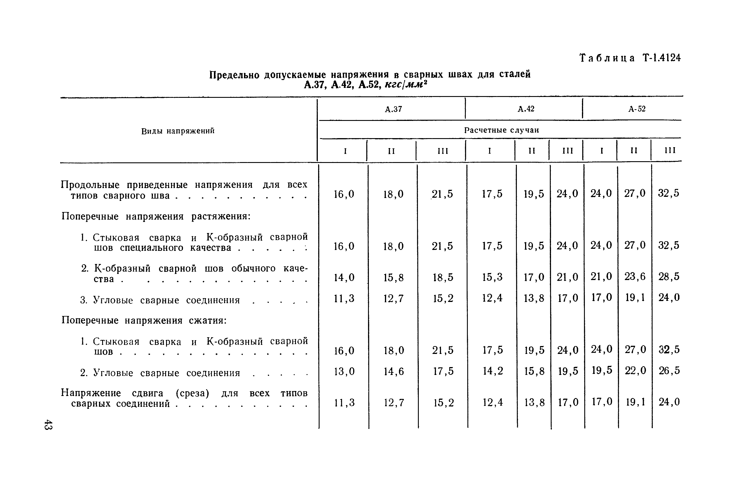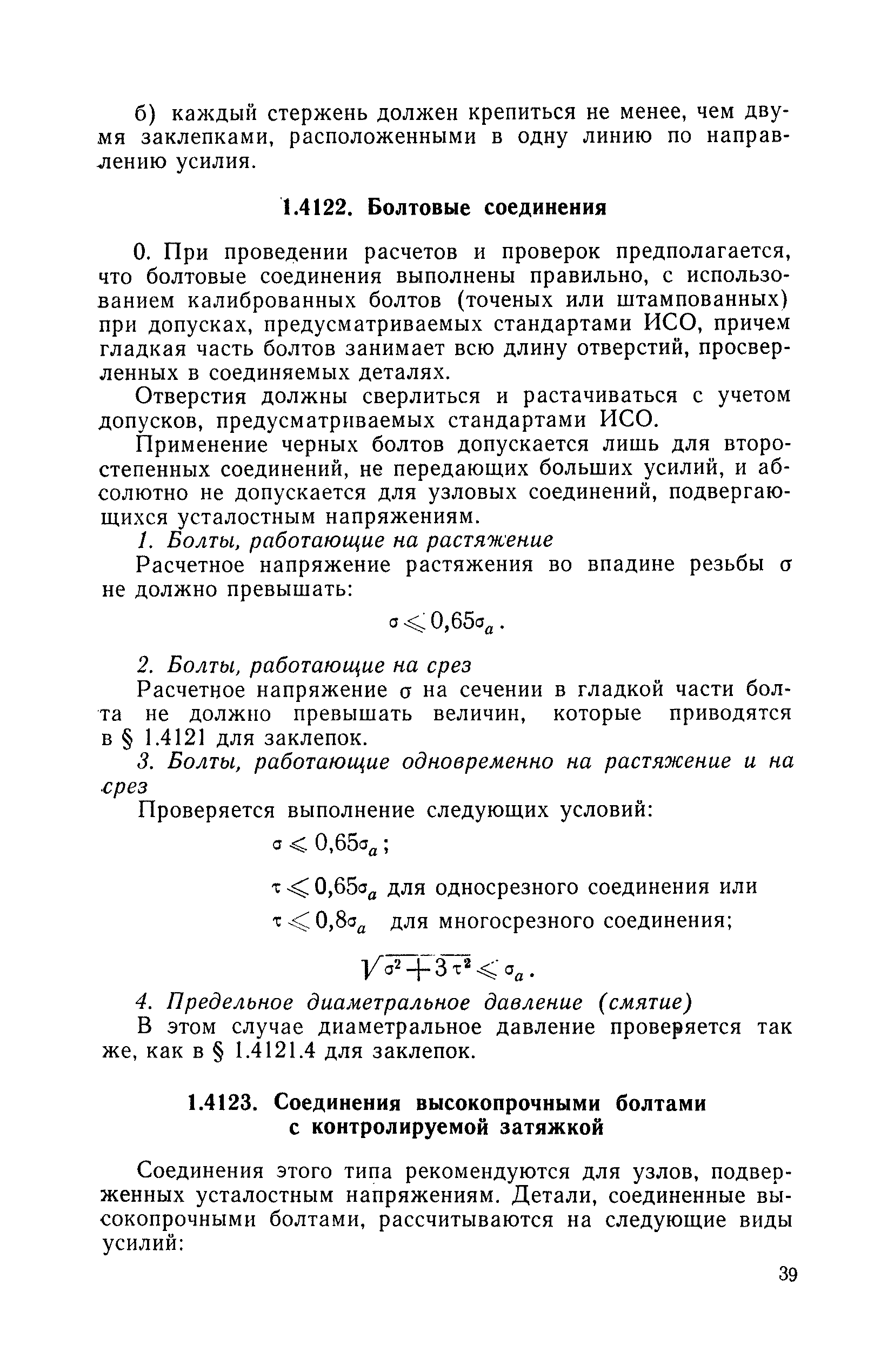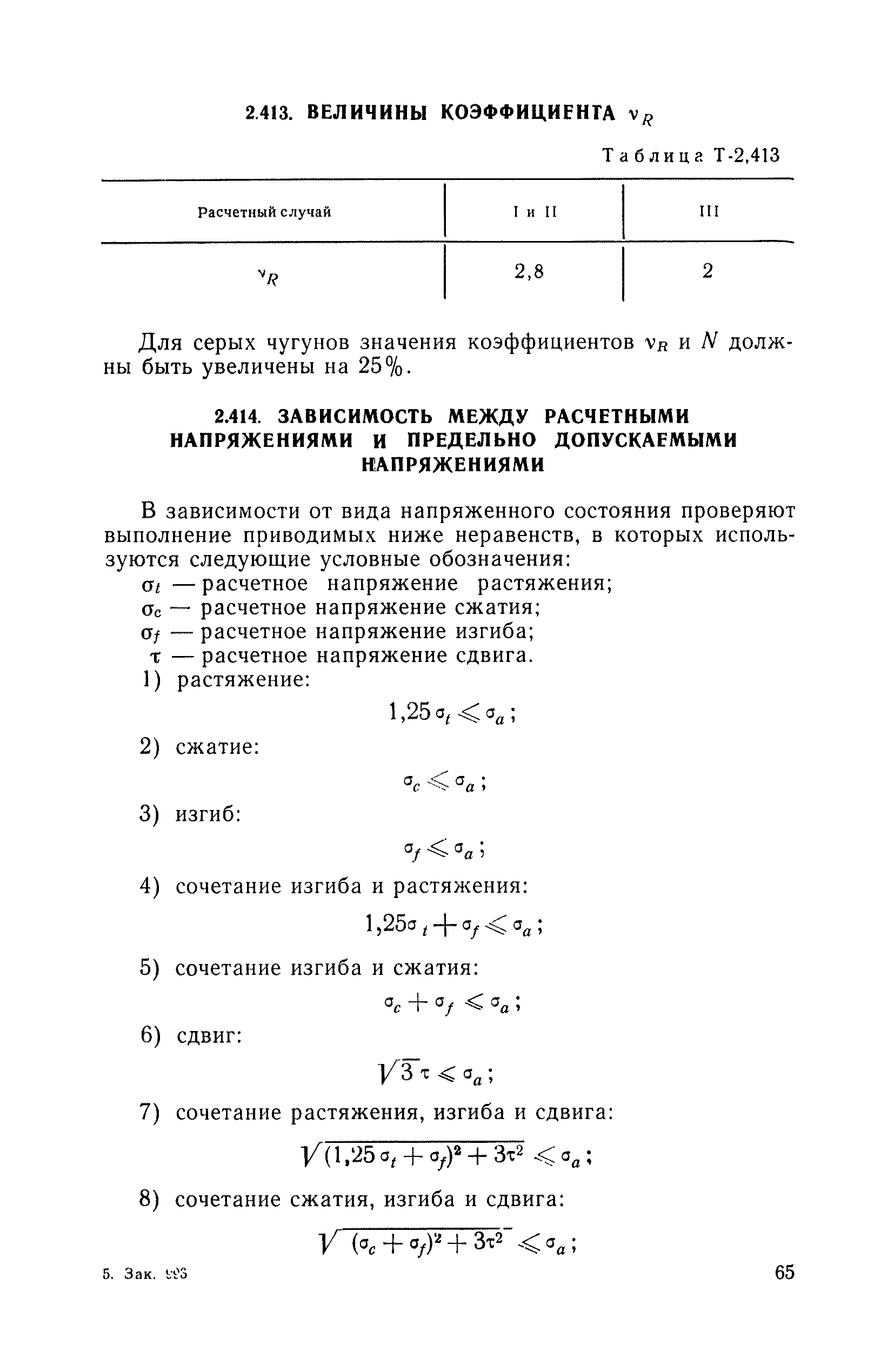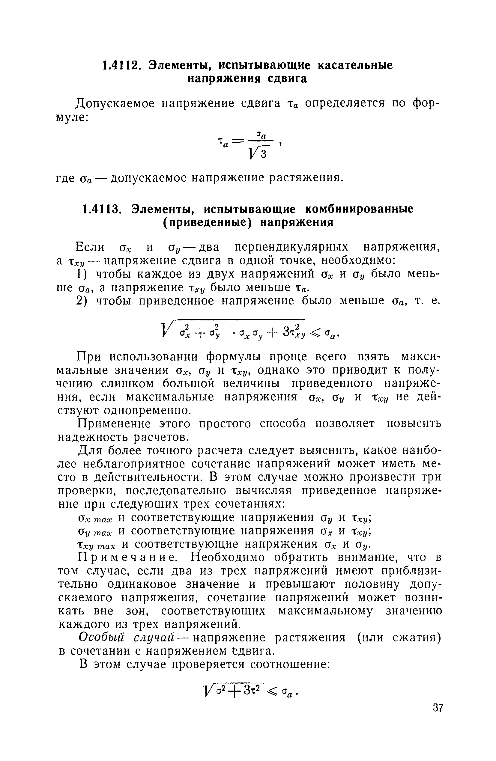 Правила расчета подъемных устройств. Материалы ФЕМ| Статус: | справочные материалы, мп, тпр | | Название рус.: | Правила расчета подъемных устройств. Материалы ФЕМ | | Дата добавления в базу: | 01.02.2020 | | Дата актуализации: | 01.01.2021 | | Область применения: | Правила расчета подъемных устройств, разработанные секцией I ФЕМ, содержат расчеты механизмов и металлоконструкций кранов, классификацию кранов и их механизмов по режиму работы, определение расчетных нагрузок, а также расчеты на прочность, устойчивость и долговечность. Приводимые расчетные формулы и коэффициенты, отражающие европейский опыт проектирования, даны в удобной для практического применения форме и могут быть использованы в качестве пособия инженерно-техническими работниками краностроительных заводов, конструкторских бюро и институтов. | | Оглавление: | 1. Металлоконструкция 2. Механизмы Приложение А-1.11 Установление соотношения классов использования металлоконструкций и классов работы механиков Приложение А-1.23 Определение нагрузок от ускорений горизонтальных движений Приложение А-1.234 Вопросы расчета на удар в тупик Приложение А-1.1423 Выполнение соединений с помощью высокопрочных болтов с контролируемой затяжкой Приложение А-1.42 и А-1.43 Проверка устойчивости элементов, подвергающихся деформации продольного изгиба Приложение А-1.45 Проверка усталостной прочности элементов металлоконструкций Приложение А-1.36 Правила проведения испытаний подъемных устройств в различных странах Европа Приложение А-2.13 Примеры: классификация механизмов - характеристики повторно-кратковременного режима - классы числа включений приводных двигателей Приложение А-2.43 Определение допускаемых напряжений в элементах механизмов с учетом усталости Приложение А-2.52 Замечания о выборе канатов и определении коэффициентов запаса Приложение А-2.53 Замечания об определении минимальных диаметров блоков и барабанов Условные обозначения | | Утверждён: | Министерство строительного, дорожного и коммунального машиностроения СССР