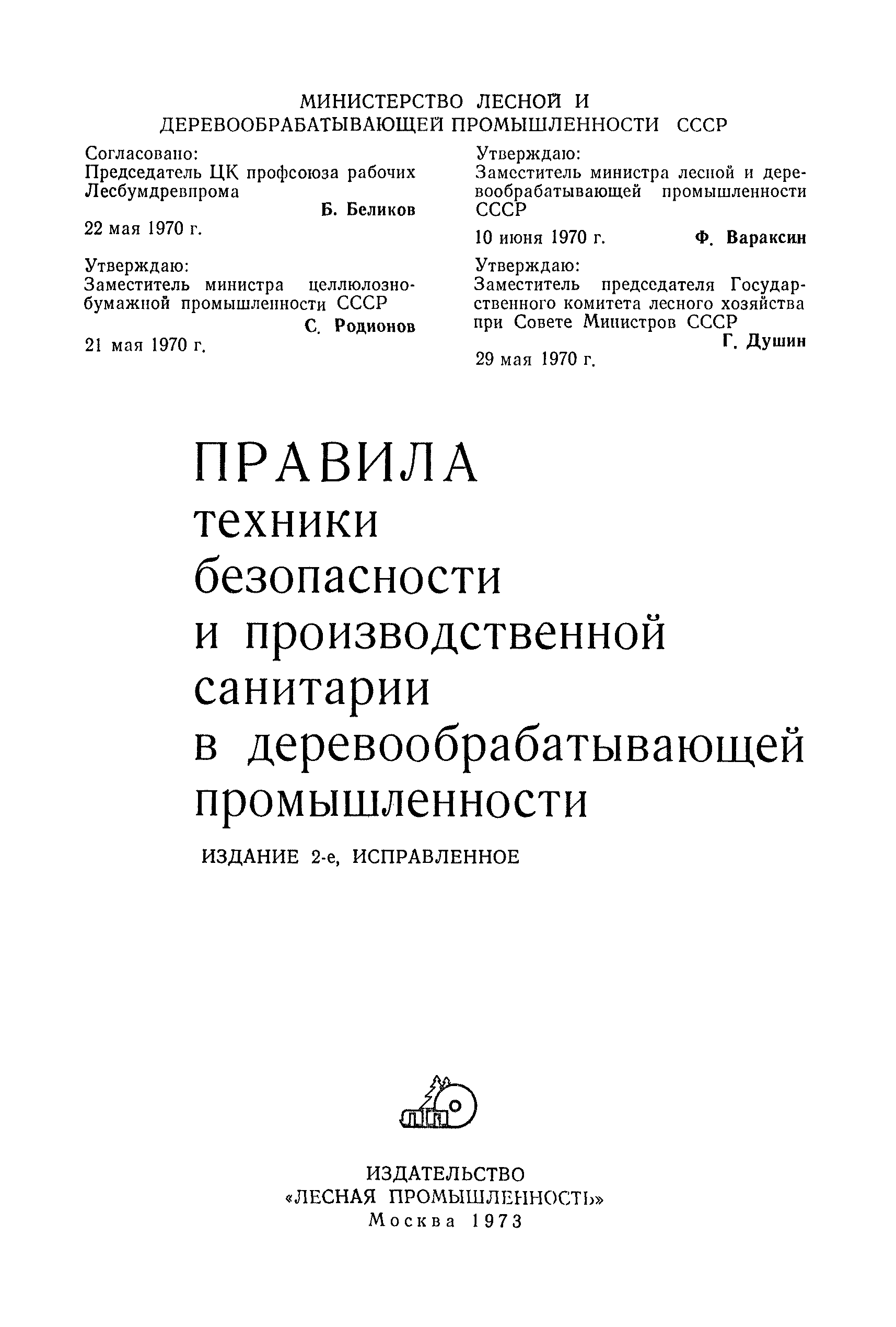 the Pulp and Paper Industries ) 10.06.1970 Министерство лесной и деревообрабатывающей промышленности СССР 29.05.1970 Государственный комитет лесного хозяйства Совета Министров СССР |