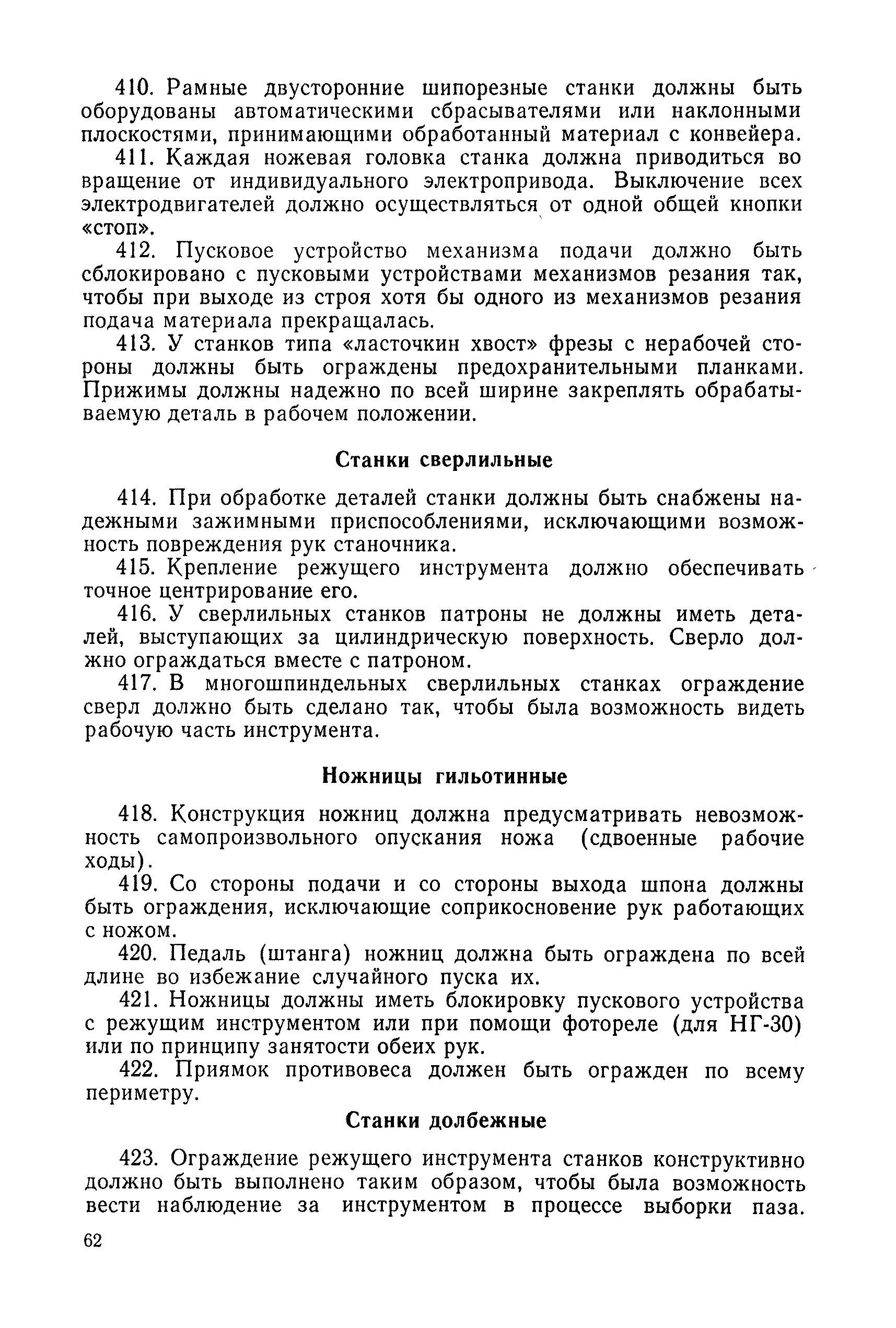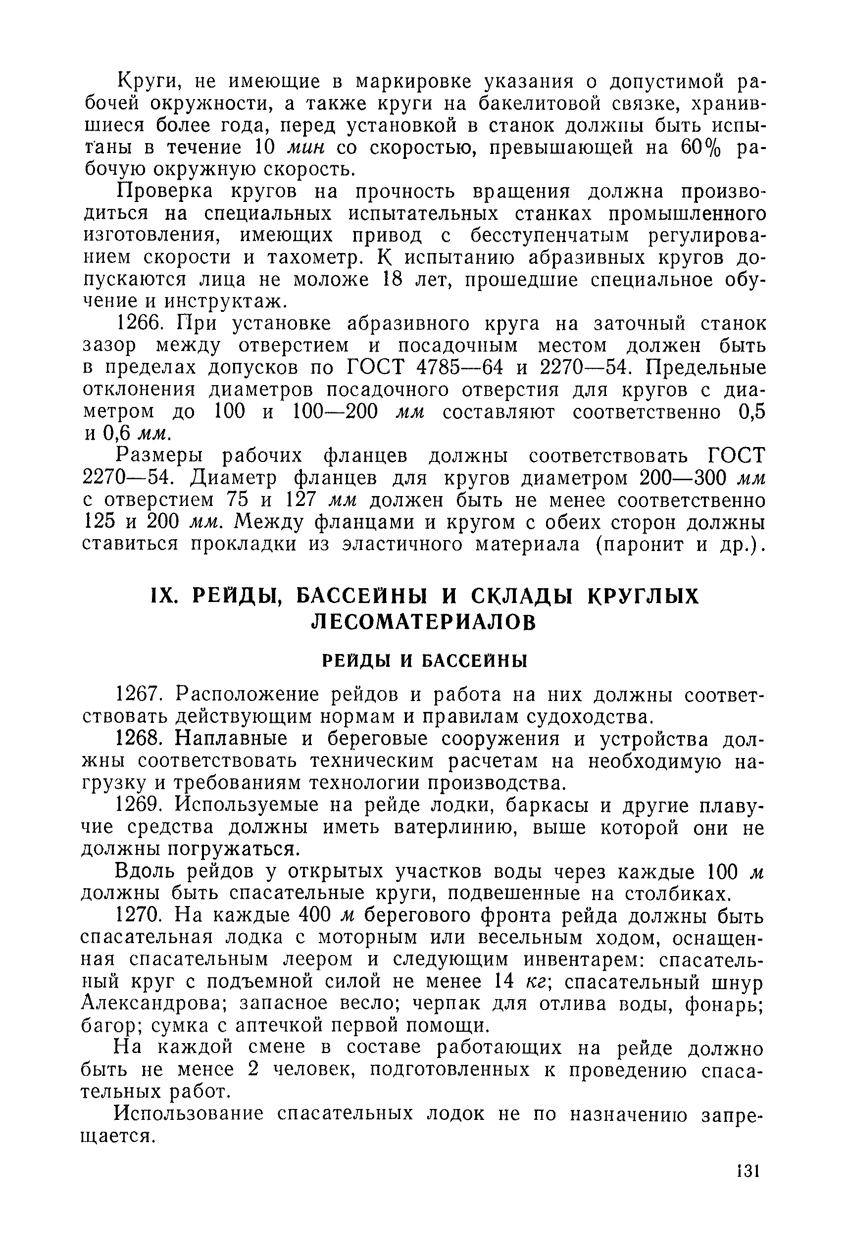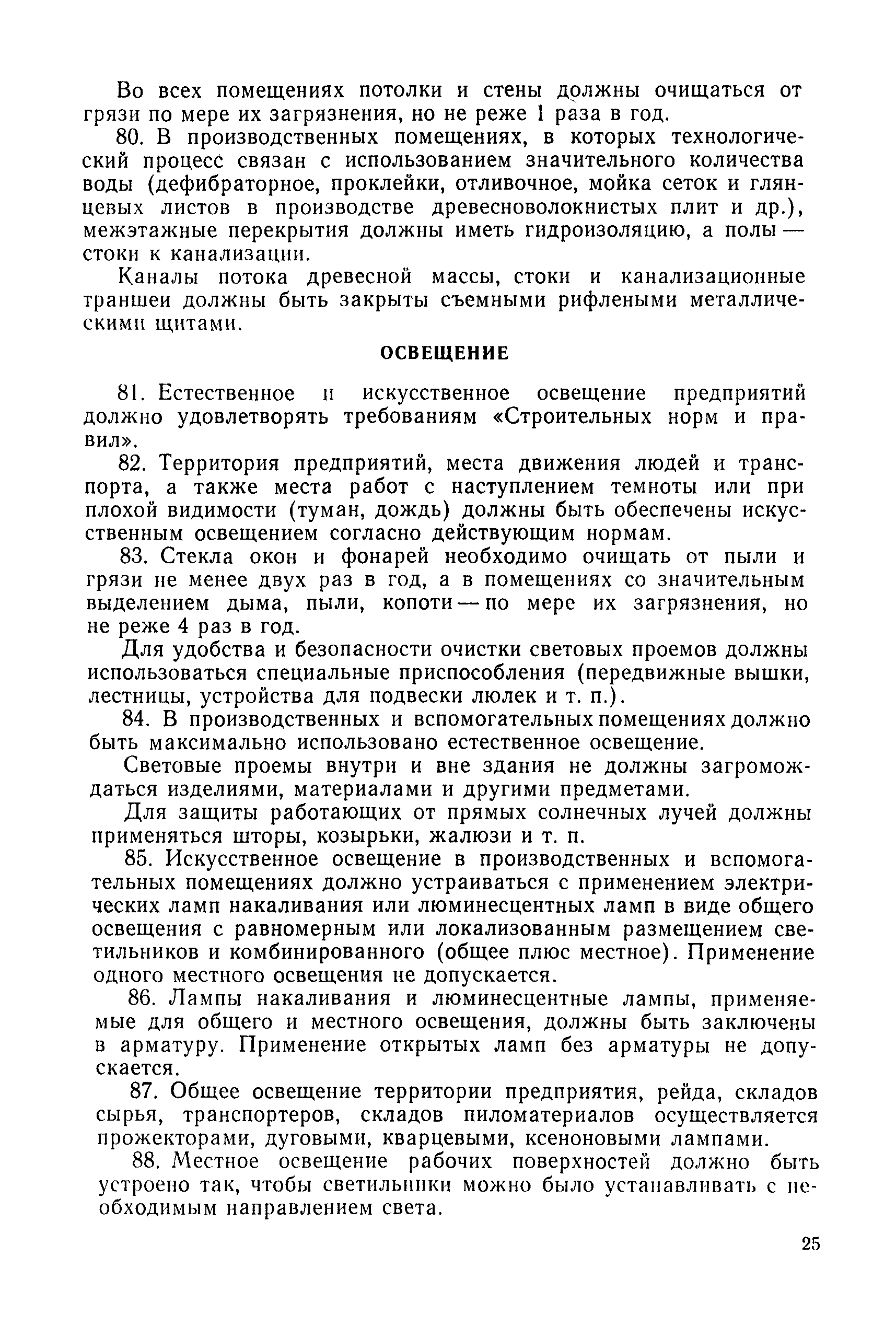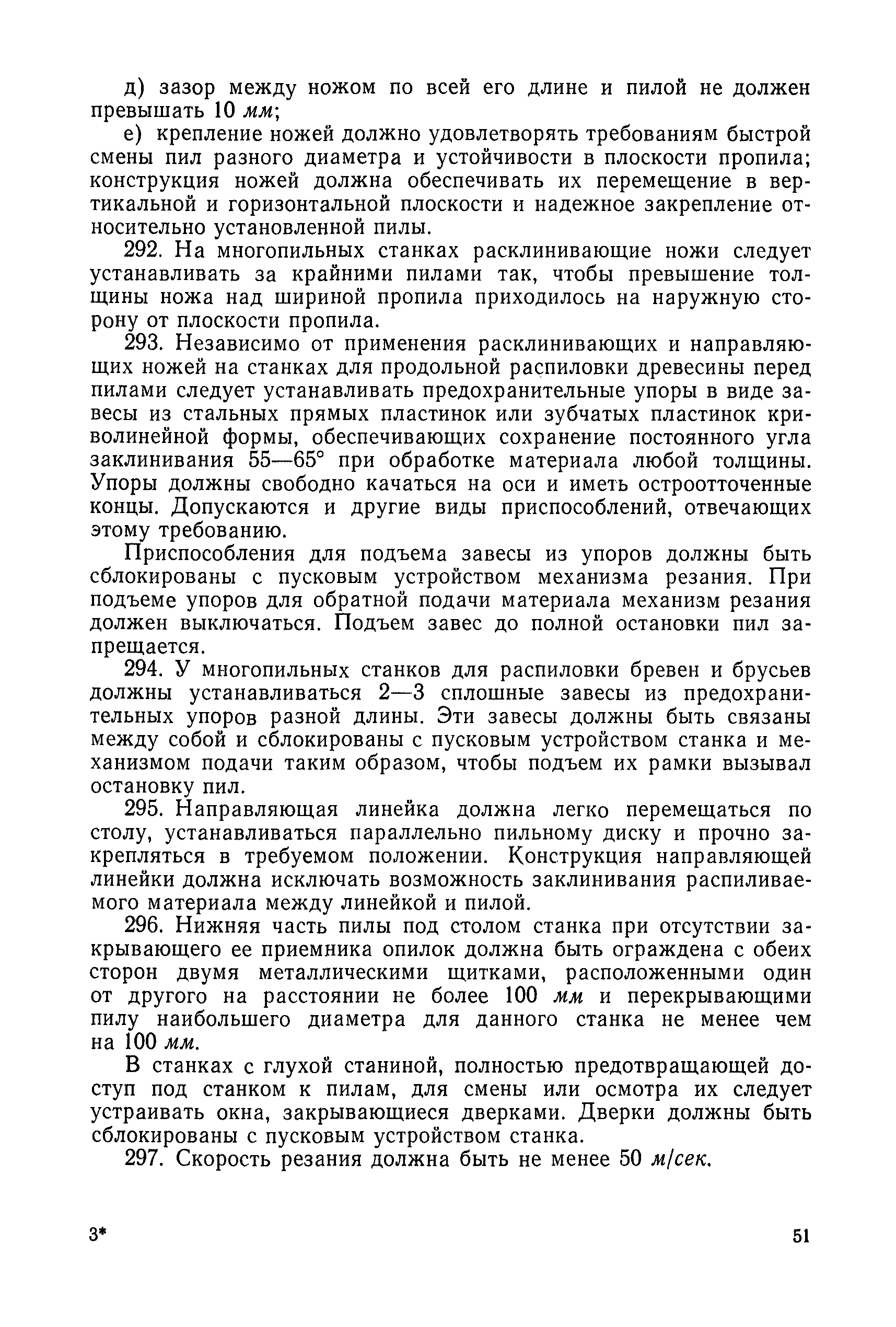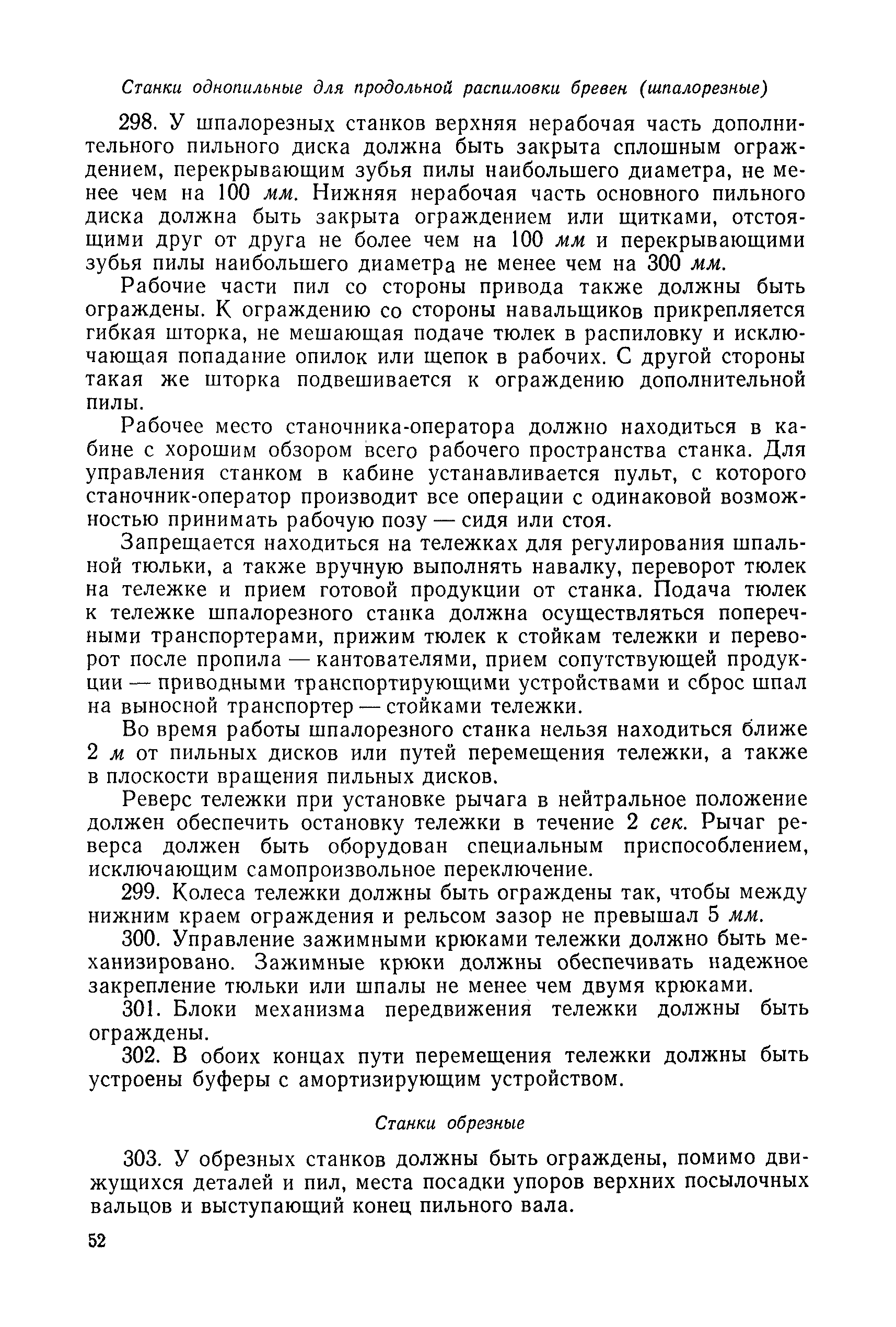 | Оглавление: | I. Общие положения II. Обязанности и ответственность административно-технического персонала III. Обучение и инструктирование рабочих, инженерно-технических работников и служащих IV. Требования к устройству и содержанию территории, зданий и сооружений предприятий V. Требования по устройству, расположению и содержанию оборудования и рабочих мест VI. Оборудование стационарного транспорта. Внутрицеховой и внутризаводской транспорт VII. Требования к оборудованию и технологическим процессам VIII. Инструменты IX. Рейды, бассейны и склады круглых лесоматериалов X. Склады готовой продукции Приложение 1 Перечень официальных руководящих нормативных и общетехнических материалов по технике безопасности и производственной санитарии, применение которых обязательно во всех отраслях промышленности Приложение 2 Методические указания к составлению инструкций по технике безопасности Приложение 3 Структура служб охраны труда в зависимости от числа рабочих Приложение 4 Предписание Приложение 5 Методические указания по созданию и организации работы кабинета охраны труда Приложение 6 Типовые программы инструктажей и курсового обучения рабочих Приложение 7 Журнал регистрации вводного инструктажа по технике безопасности Приложение 8 Удостоверение по технике безопасности Приложение 9 Протокол Приложение 10 Типовая программа для обучения административно-технического персонала Приложение 11 Положение о порядке проверки знаний правил, норм и инструкций по технике безопасности руководящими работниками подведомственных предприятий, организаций и объектов, подконтрольных органам Госгортехнадзора СССР в системе Министерства лесной и деревообрабатывающей промышленности СССР Приложение 12 Предельно допустимые концентрации вредных газов, паров, пыли и других аэрозолей в воздухе рабочей зоны производственных помещений Приложение 13 Состав и нормы санитарно-бытовых помещений Приложение 14 Нормы и сроки испытаний подъемных механизмов и приспособлений Приложение 15 Наименьших допустимый коэффициент запаса прочности канатов и цепей Приложение 16 Нормы и сроки электрических испытаний защитных средств Приложение 17 Классификация производственных помещений по степени взрыво- и пожароопасности с точки зрения применения электрооборудования Приложение 18 Временная инструкция по устройству расходных складов бертолетовой соли и о порядке ее хранения на спичечных фабриках Приложение 19 Нормы браковки стальных канатов Приложение 20 Шкала приближенного определения силы ветра и состояния водной поверхности |