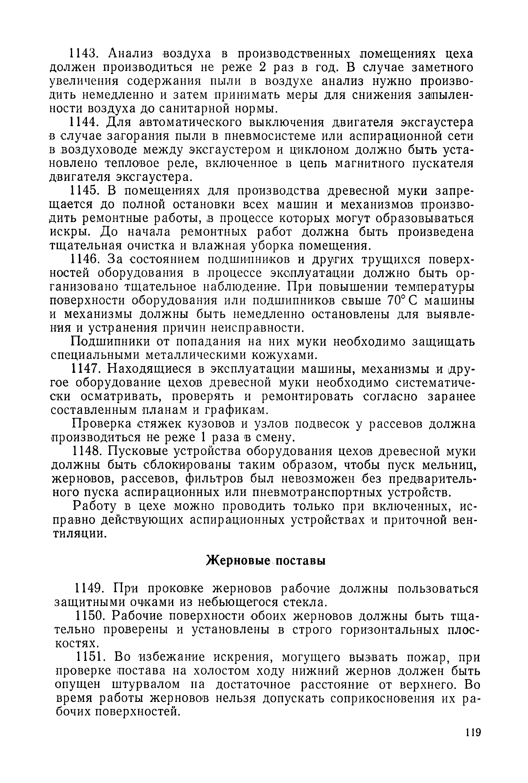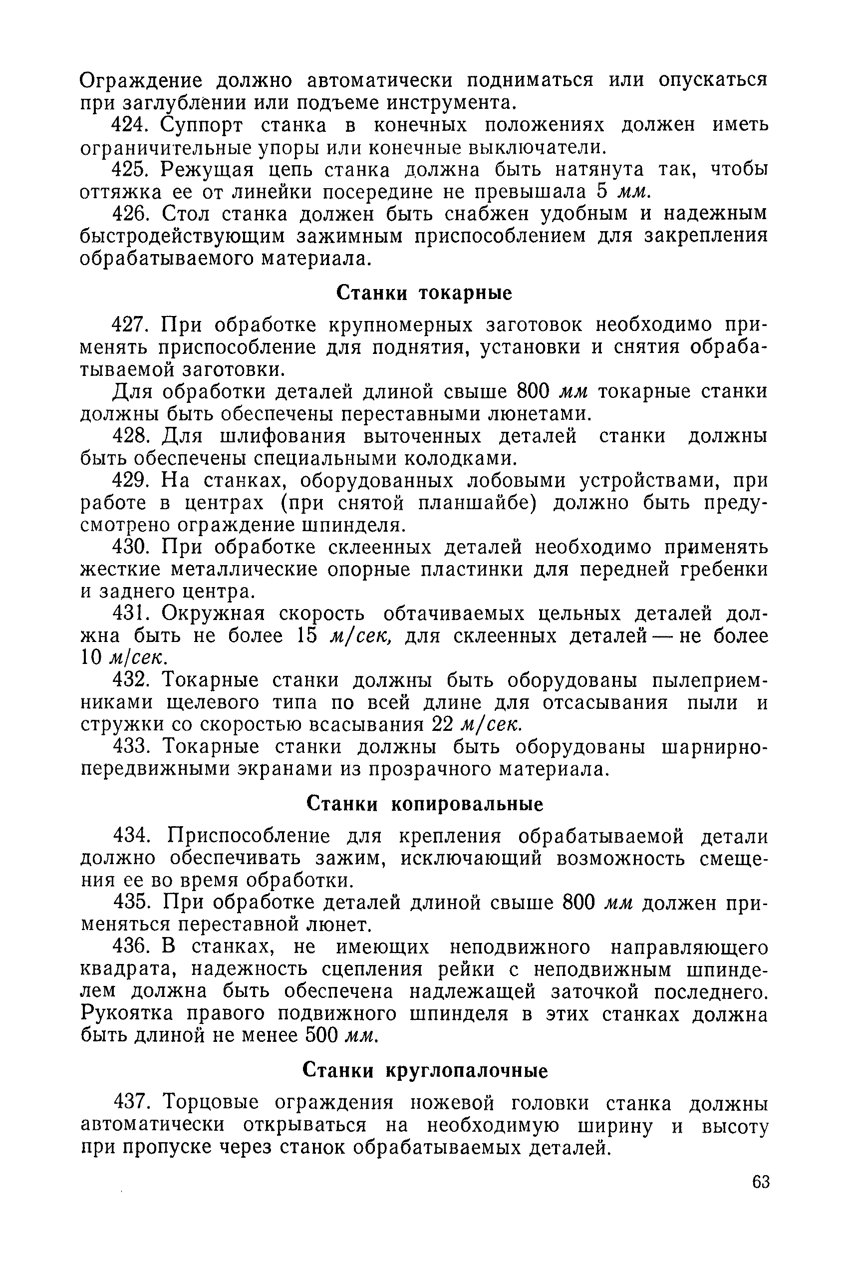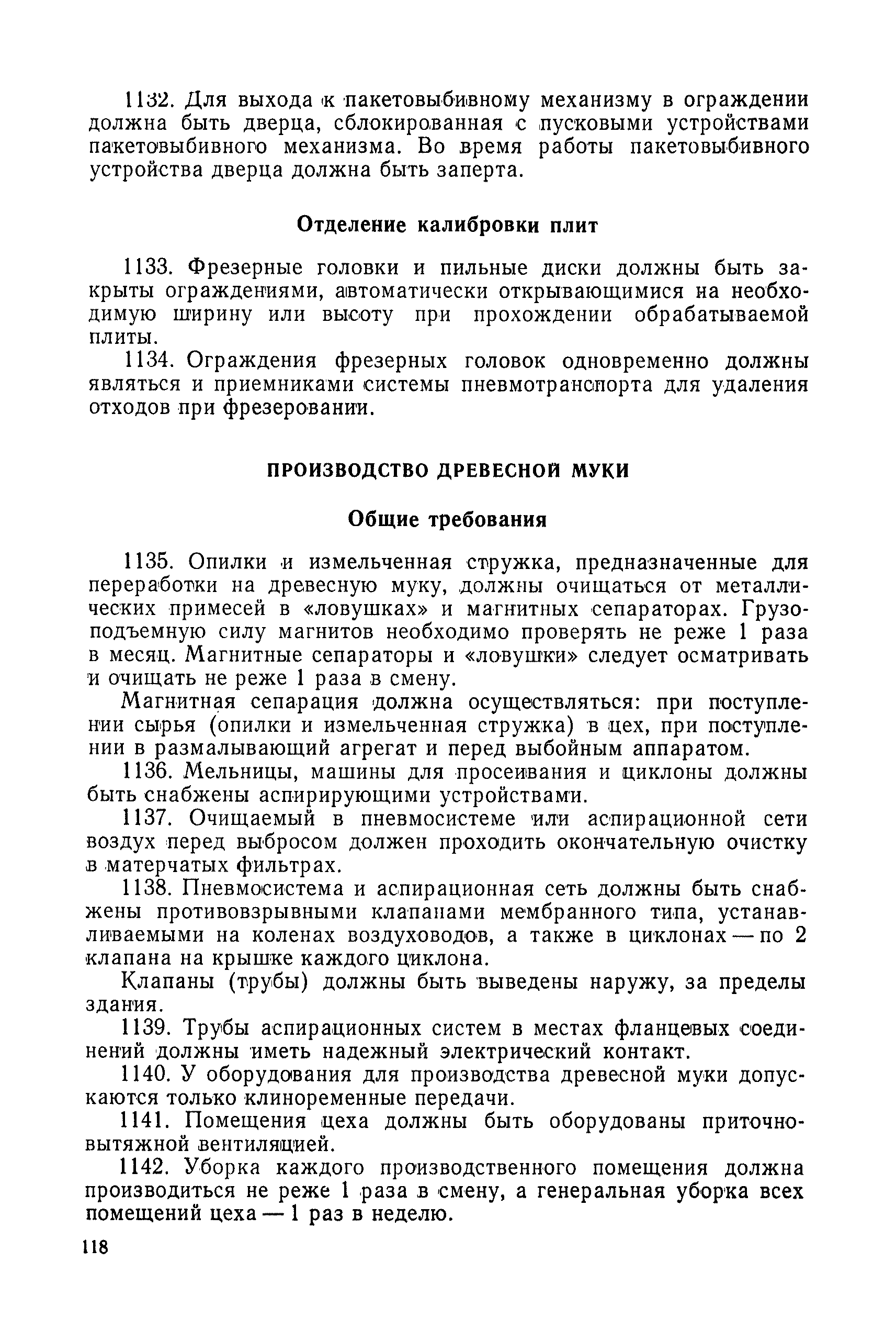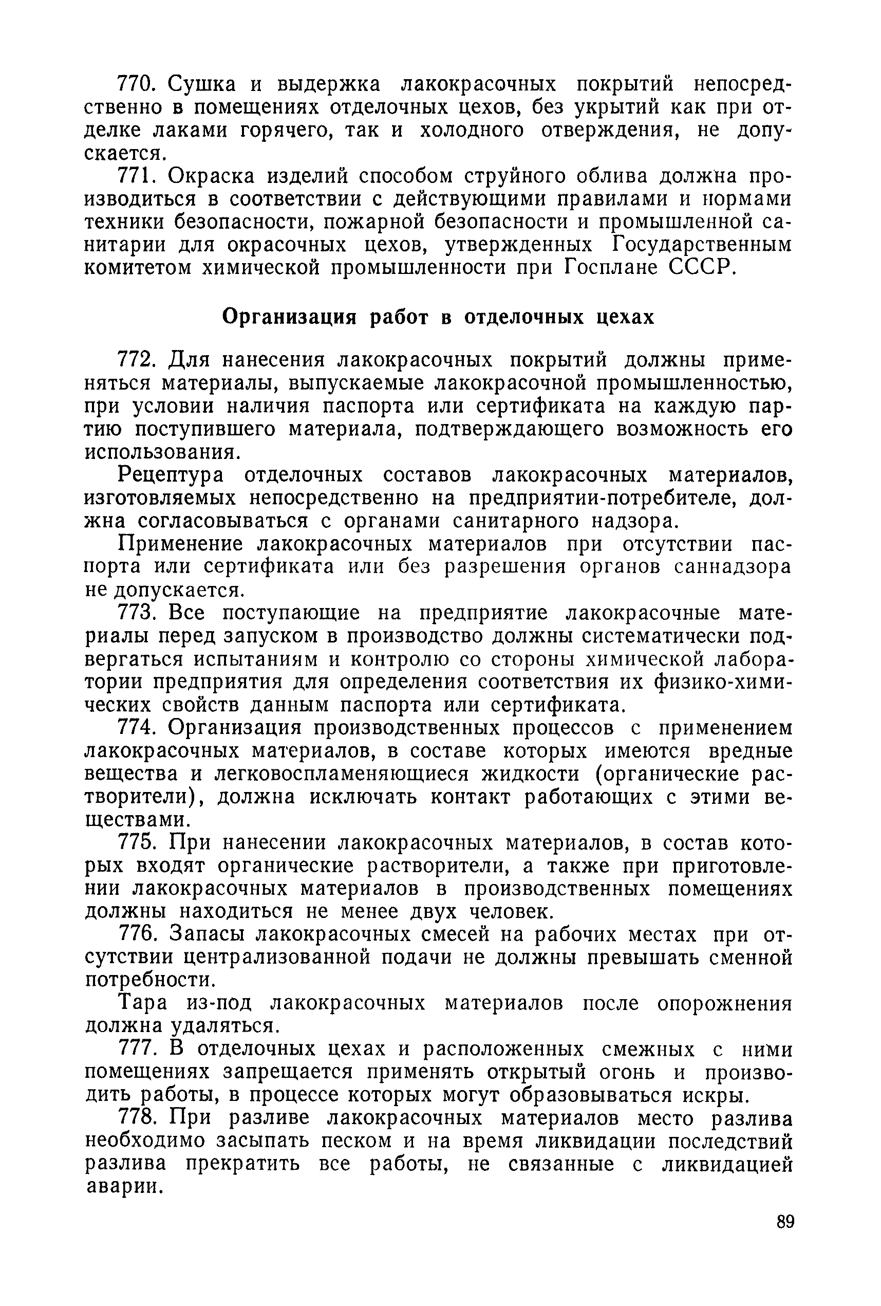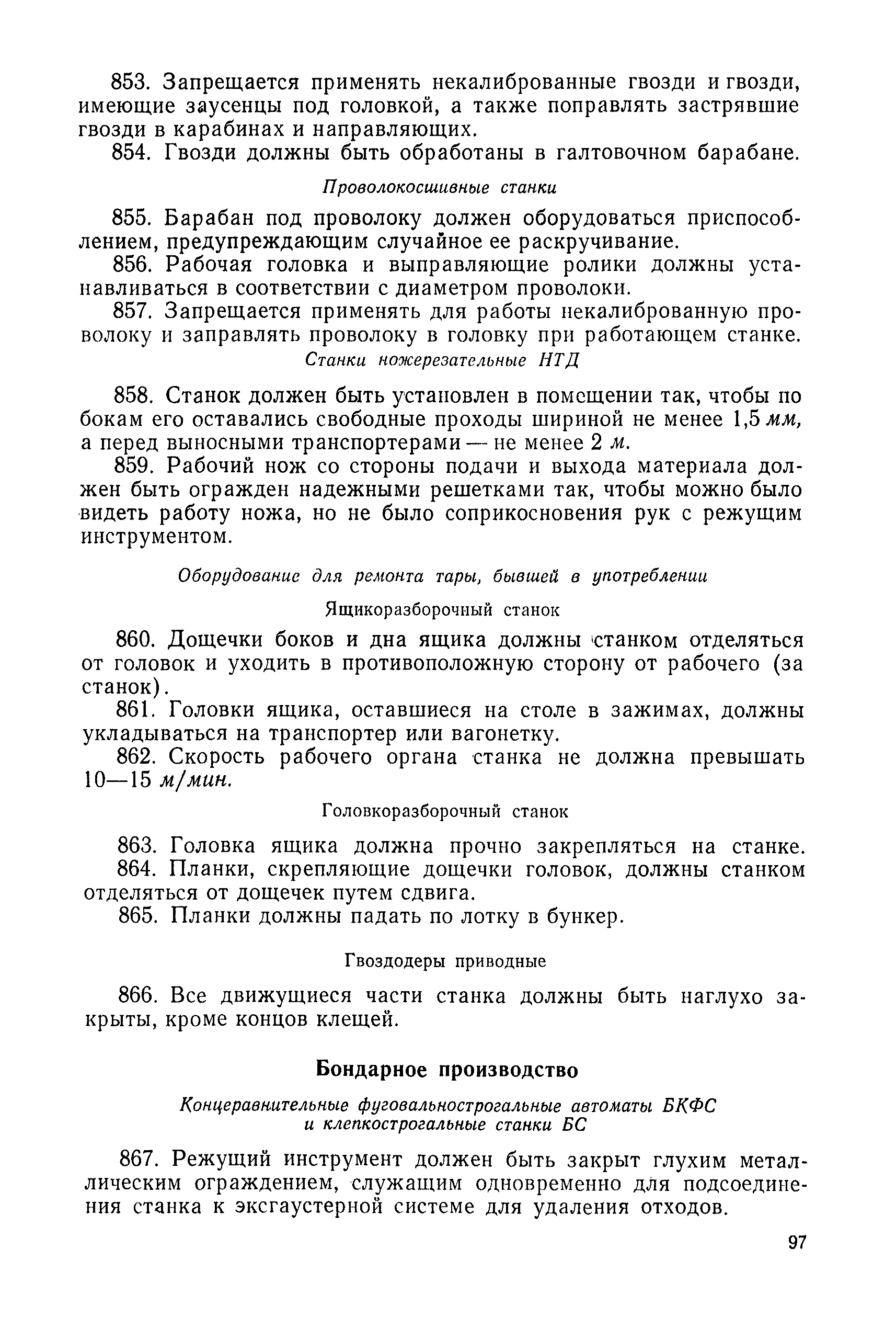 | Оглавление: | I. Общие положения II. Обязанности и ответственность административно-технического персонала III. Обучение и инструктирование рабочих, инженерно-технических работников и служащих IV. Требования к устройству и содержанию территории, зданий и сооружений предприятий V. Требования по устройству, расположению и содержанию оборудования и рабочих мест VI. Оборудование стационарного транспорта. Внутрицеховой и внутризаводской транспорт VII. Требования к оборудованию и технологическим процессам VIII. Инструменты IX. Рейды, бассейны и склады круглых лесоматериалов X. Склады готовой продукции Приложение 1 Перечень официальных руководящих нормативных и общетехнических материалов по технике безопасности и производственной санитарии, применение которых обязательно во всех отраслях промышленности Приложение 2 Методические указания к составлению инструкций по технике безопасности Приложение 3 Структура служб охраны труда в зависимости от числа рабочих Приложение 4 Предписание Приложение 5 Методические указания по созданию и организации работы кабинета охраны труда Приложение 6 Типовые программы инструктажей и курсового обучения рабочих Приложение 7 Журнал регистрации вводного инструктажа по технике безопасности Приложение 8 Удостоверение по технике безопасности Приложение 9 Протокол Приложение 10 Типовая программа для обучения административно-технического персонала Приложение 11 Положение о порядке проверки знаний правил, норм и инструкций по технике безопасности руководящими работниками подведомственных предприятий, организаций и объектов, подконтрольных органам Госгортехнадзора СССР в системе Министерства лесной и деревообрабатывающей промышленности СССР Приложение 12 Предельно допустимые концентрации вредных газов, паров, пыли и других аэрозолей в воздухе рабочей зоны производственных помещений Приложение 13 Состав и нормы санитарно-бытовых помещений Приложение 14 Нормы и сроки испытаний подъемных механизмов и приспособлений Приложение 15 Наименьших допустимый коэффициент запаса прочности канатов и цепей Приложение 16 Нормы и сроки электрических испытаний защитных средств Приложение 17 Классификация производственных помещений по степени взрыво- и пожароопасности с точки зрения применения электрооборудования Приложение 18 Временная инструкция по устройству расходных складов бертолетовой соли и о порядке ее хранения на спичечных фабриках Приложение 19 Нормы браковки стальных канатов Приложение 20 Шкала приближенного определения силы ветра и состояния водной поверхности |