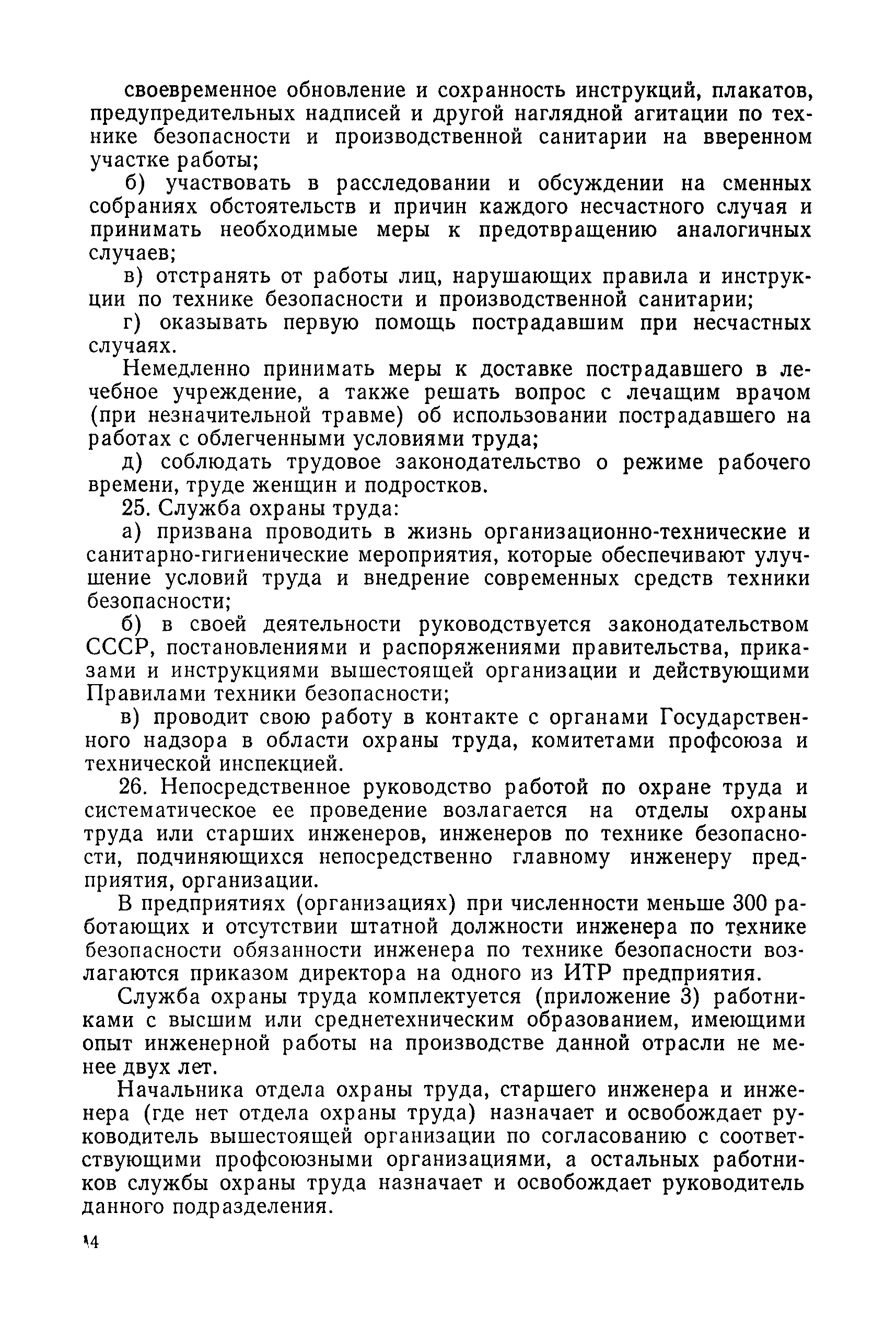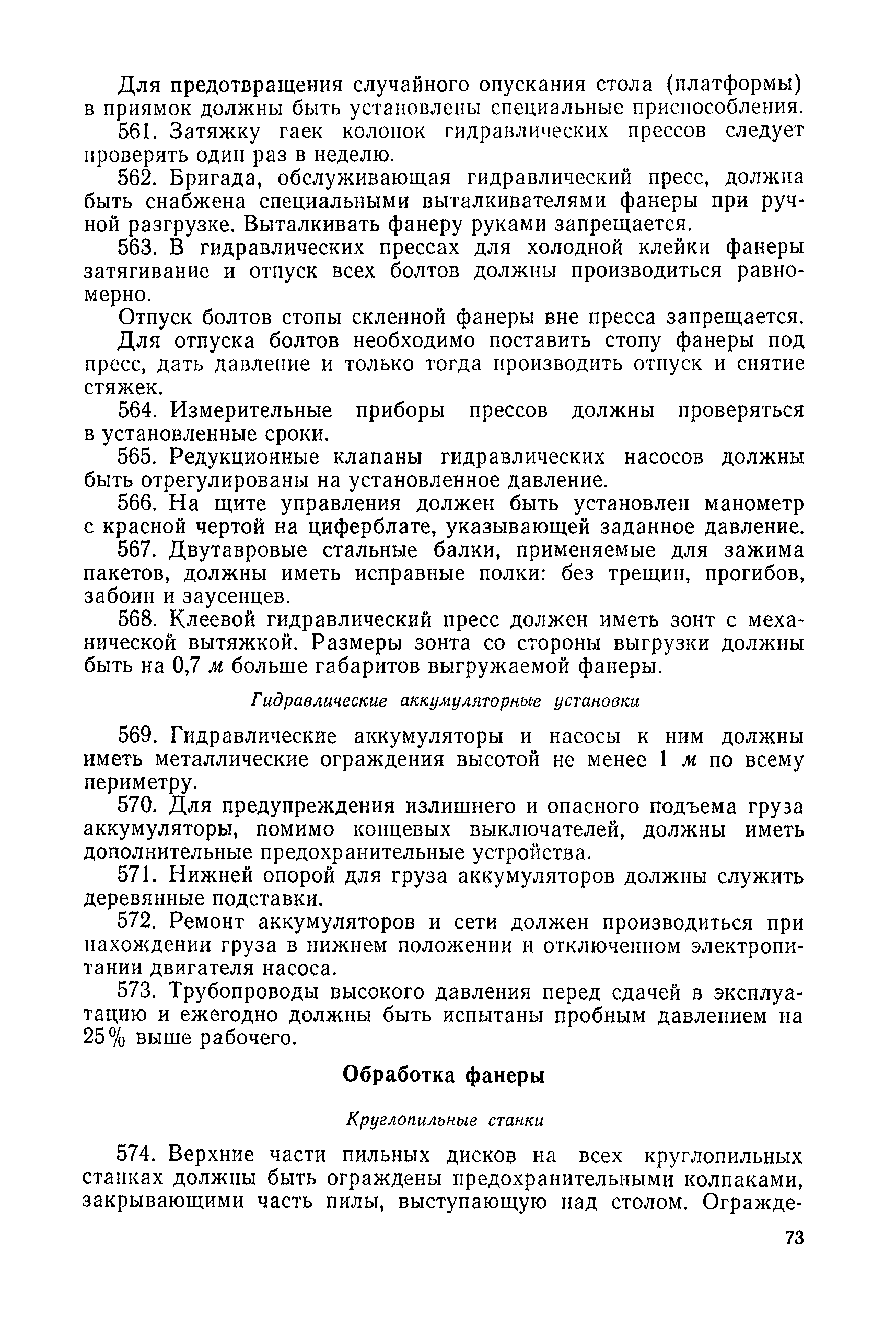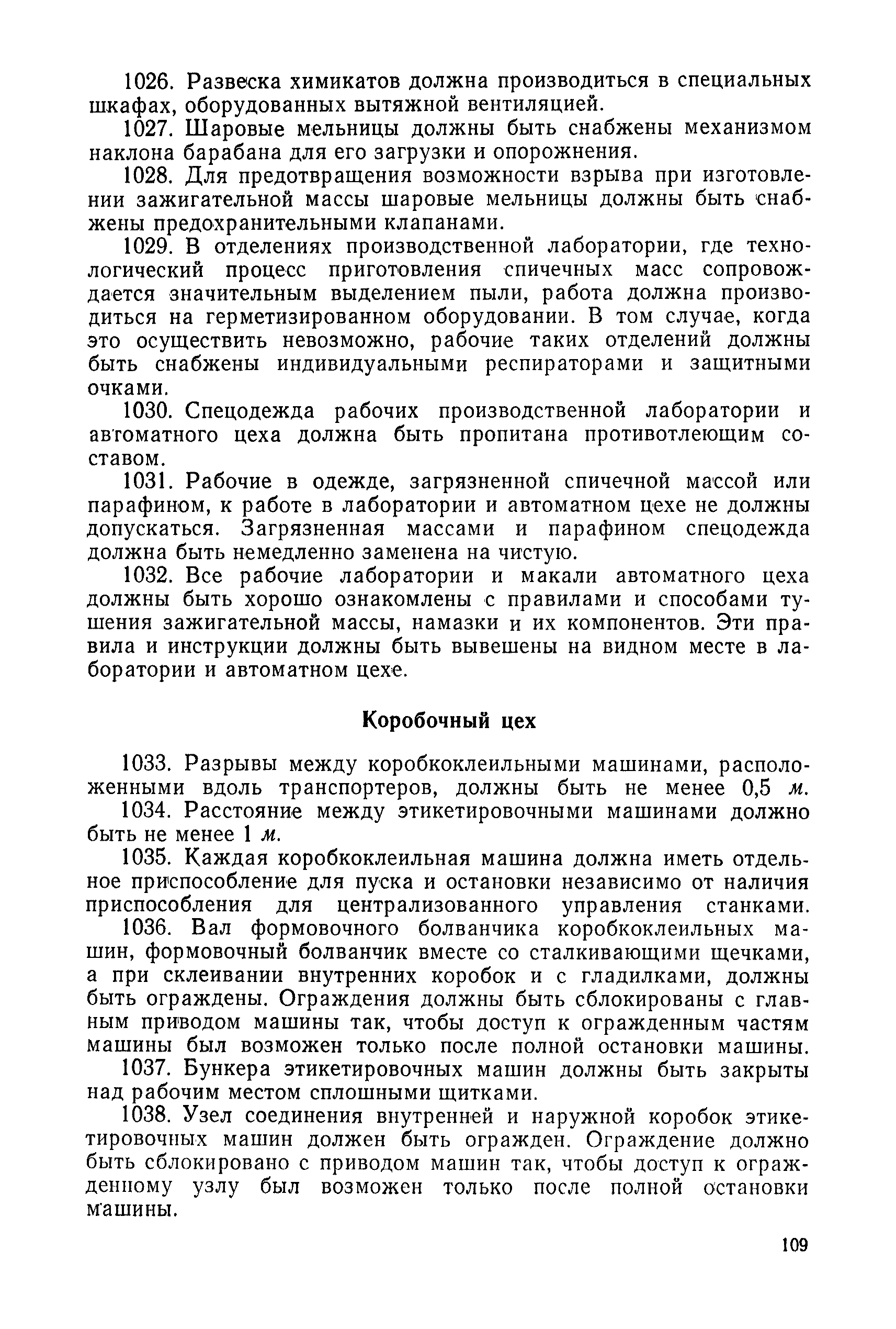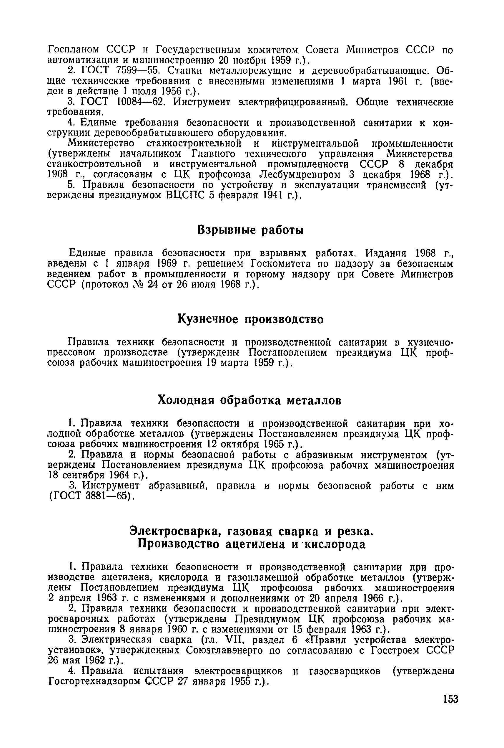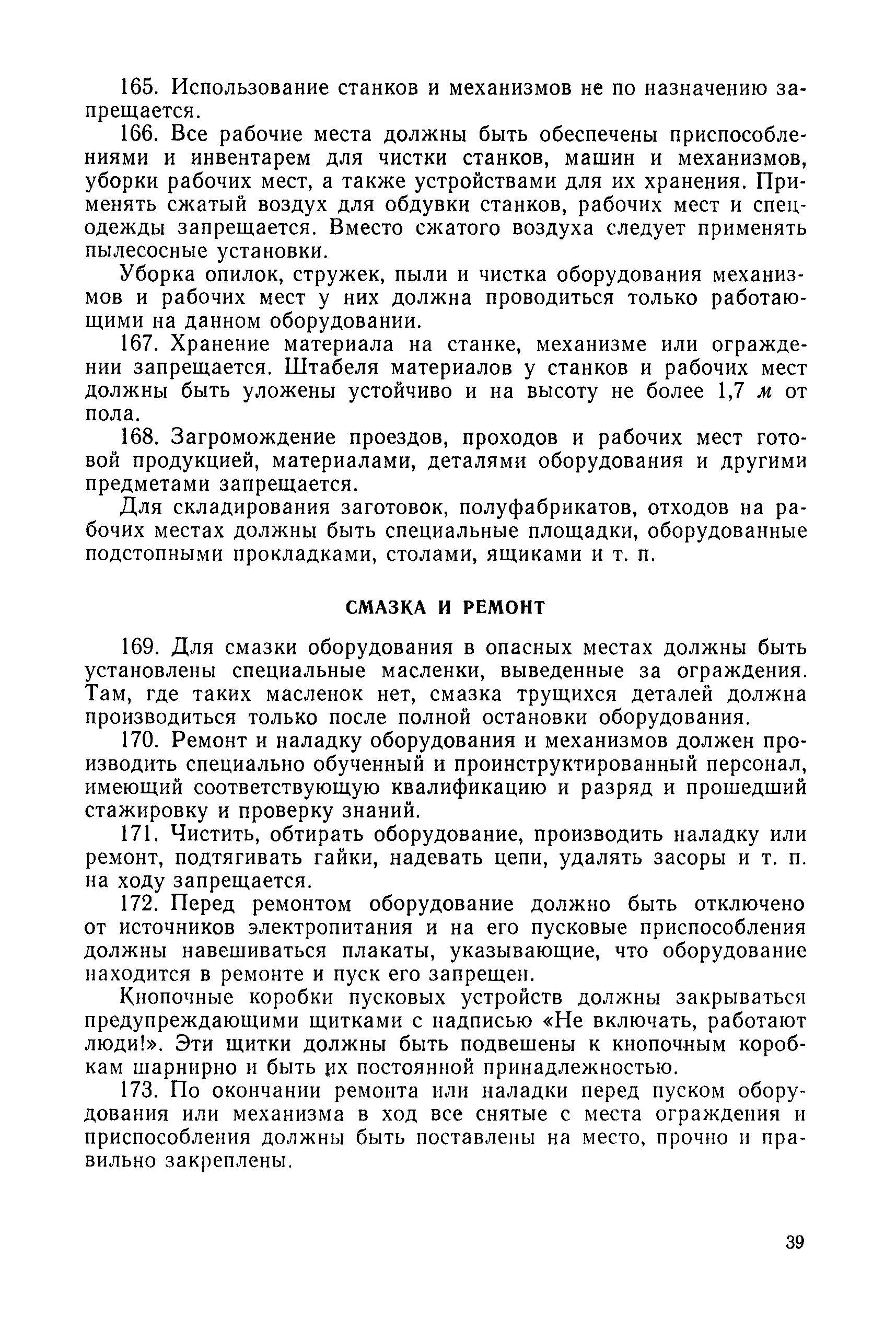 | Оглавление: | I. Общие положения II. Обязанности и ответственность административно-технического персонала III. Обучение и инструктирование рабочих, инженерно-технических работников и служащих IV. Требования к устройству и содержанию территории, зданий и сооружений предприятий V. Требования по устройству, расположению и содержанию оборудования и рабочих мест VI. Оборудование стационарного транспорта. Внутрицеховой и внутризаводской транспорт VII. Требования к оборудованию и технологическим процессам VIII. Инструменты IX. Рейды, бассейны и склады круглых лесоматериалов X. Склады готовой продукции Приложение 1 Перечень официальных руководящих нормативных и общетехнических материалов по технике безопасности и производственной санитарии, применение которых обязательно во всех отраслях промышленности Приложение 2 Методические указания к составлению инструкций по технике безопасности Приложение 3 Структура служб охраны труда в зависимости от числа рабочих Приложение 4 Предписание Приложение 5 Методические указания по созданию и организации работы кабинета охраны труда Приложение 6 Типовые программы инструктажей и курсового обучения рабочих Приложение 7 Журнал регистрации вводного инструктажа по технике безопасности Приложение 8 Удостоверение по технике безопасности Приложение 9 Протокол Приложение 10 Типовая программа для обучения административно-технического персонала Приложение 11 Положение о порядке проверки знаний правил, норм и инструкций по технике безопасности руководящими работниками подведомственных предприятий, организаций и объектов, подконтрольных органам Госгортехнадзора СССР в системе Министерства лесной и деревообрабатывающей промышленности СССР Приложение 12 Предельно допустимые концентрации вредных газов, паров, пыли и других аэрозолей в воздухе рабочей зоны производственных помещений Приложение 13 Состав и нормы санитарно-бытовых помещений Приложение 14 Нормы и сроки испытаний подъемных механизмов и приспособлений Приложение 15 Наименьших допустимый коэффициент запаса прочности канатов и цепей Приложение 16 Нормы и сроки электрических испытаний защитных средств Приложение 17 Классификация производственных помещений по степени взрыво- и пожароопасности с точки зрения применения электрооборудования Приложение 18 Временная инструкция по устройству расходных складов бертолетовой соли и о порядке ее хранения на спичечных фабриках Приложение 19 Нормы браковки стальных канатов Приложение 20 Шкала приближенного определения силы ветра и состояния водной поверхности |