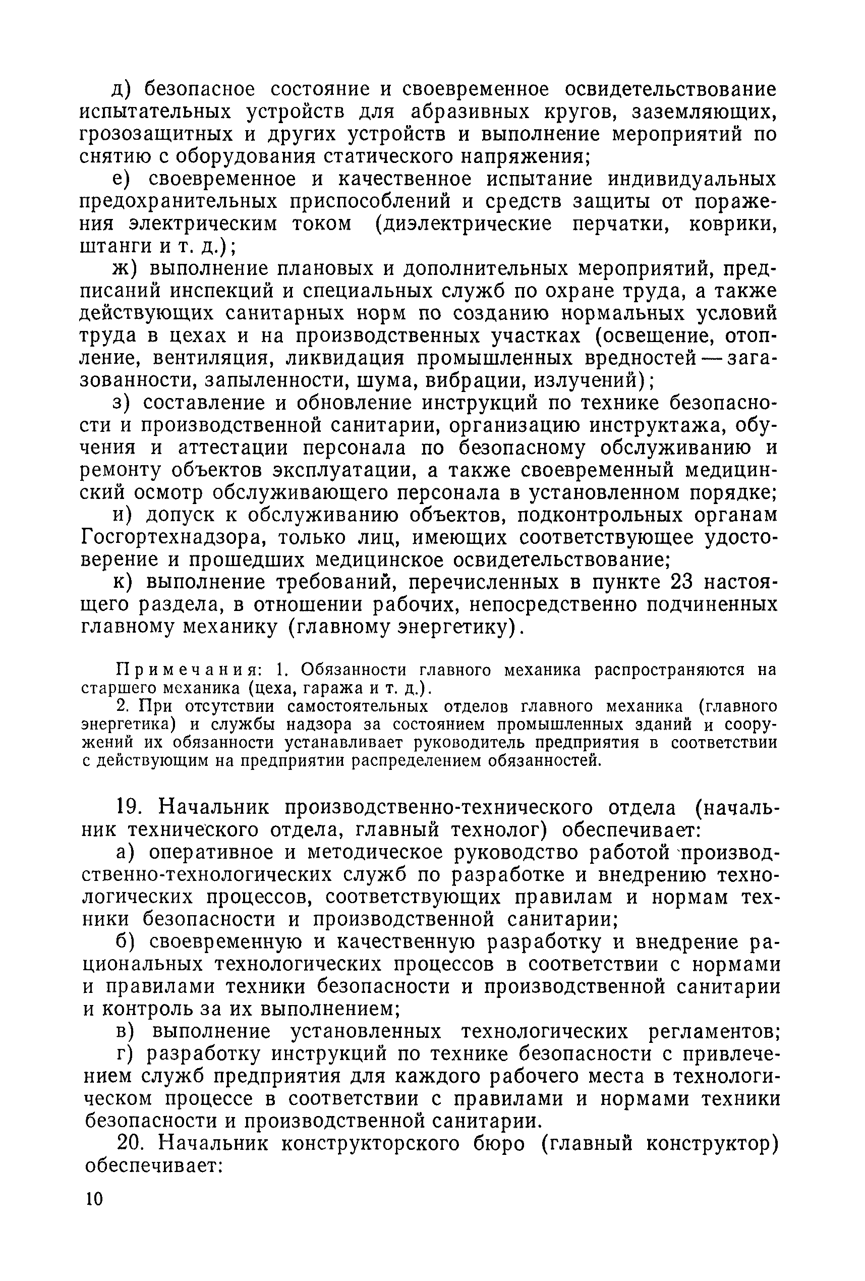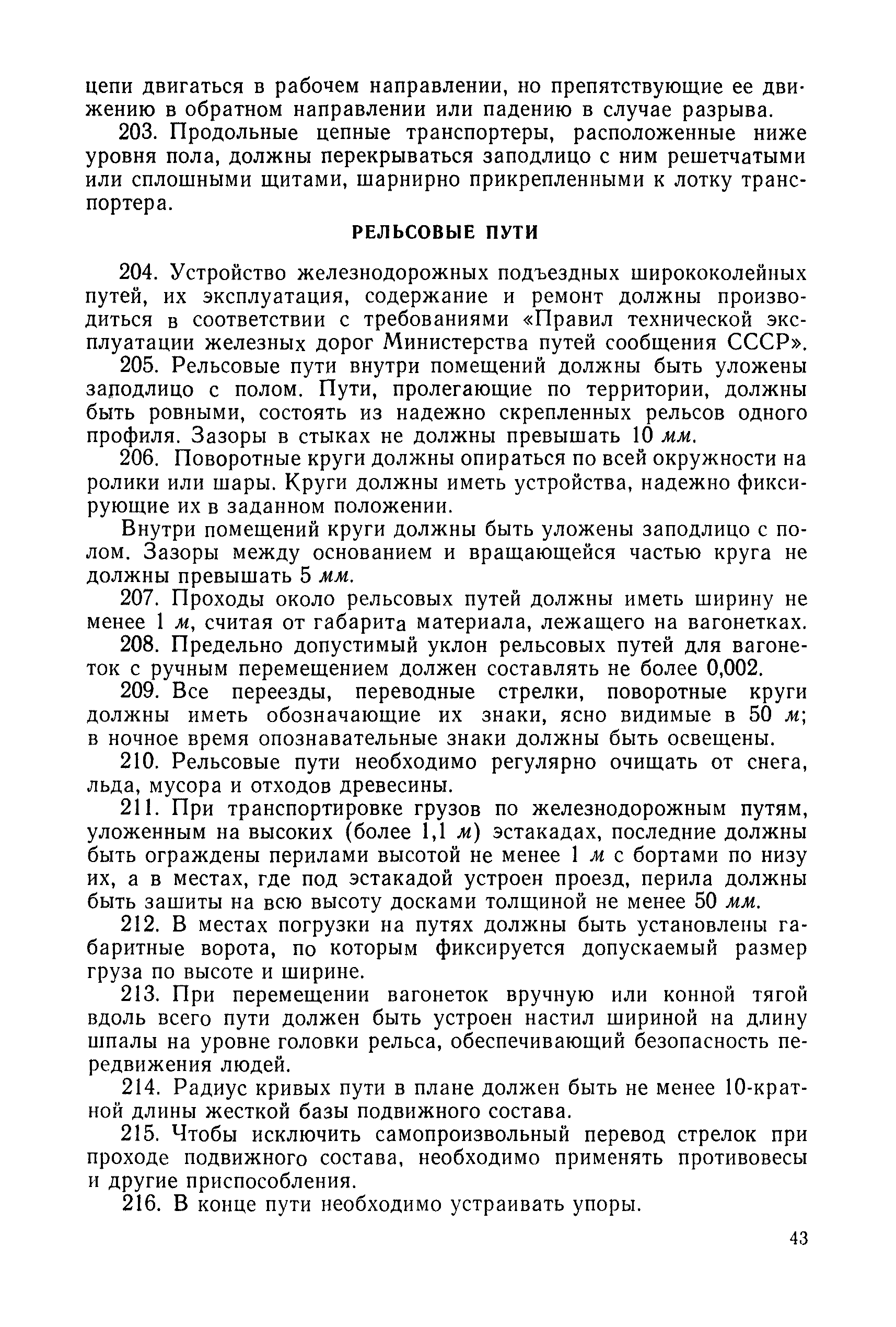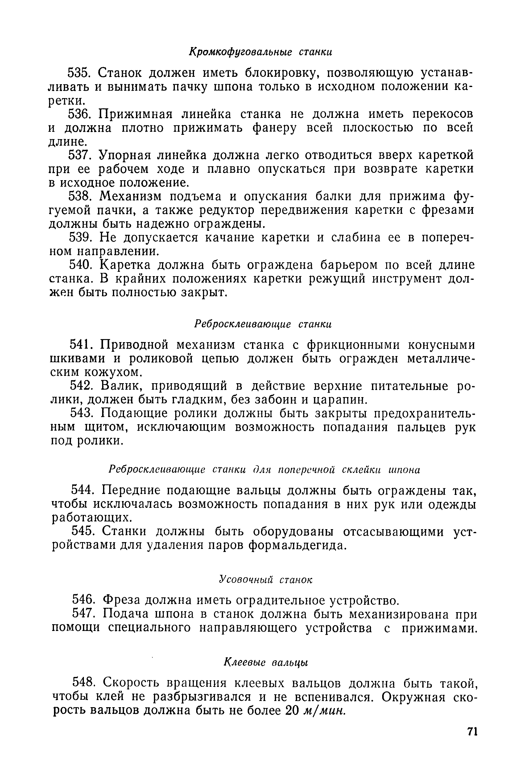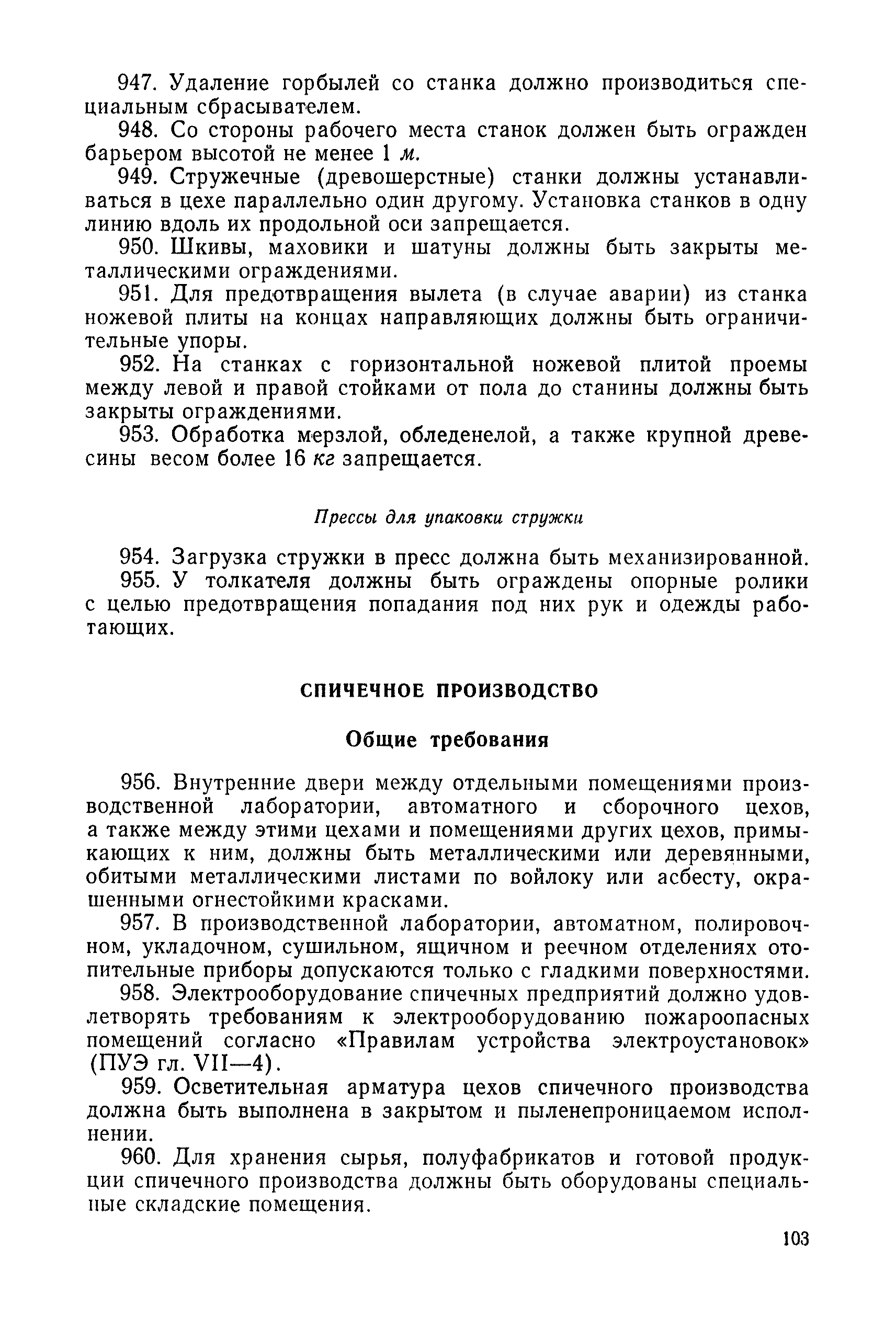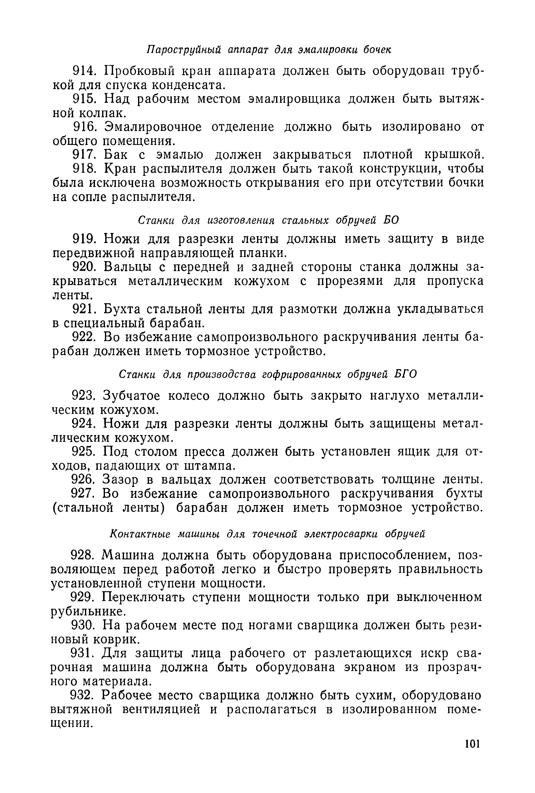 | Оглавление: | I. Общие положения II. Обязанности и ответственность административно-технического персонала III. Обучение и инструктирование рабочих, инженерно-технических работников и служащих IV. Требования к устройству и содержанию территории, зданий и сооружений предприятий V. Требования по устройству, расположению и содержанию оборудования и рабочих мест VI. Оборудование стационарного транспорта. Внутрицеховой и внутризаводской транспорт VII. Требования к оборудованию и технологическим процессам VIII. Инструменты IX. Рейды, бассейны и склады круглых лесоматериалов X. Склады готовой продукции Приложение 1 Перечень официальных руководящих нормативных и общетехнических материалов по технике безопасности и производственной санитарии, применение которых обязательно во всех отраслях промышленности Приложение 2 Методические указания к составлению инструкций по технике безопасности Приложение 3 Структура служб охраны труда в зависимости от числа рабочих Приложение 4 Предписание Приложение 5 Методические указания по созданию и организации работы кабинета охраны труда Приложение 6 Типовые программы инструктажей и курсового обучения рабочих Приложение 7 Журнал регистрации вводного инструктажа по технике безопасности Приложение 8 Удостоверение по технике безопасности Приложение 9 Протокол Приложение 10 Типовая программа для обучения административно-технического персонала Приложение 11 Положение о порядке проверки знаний правил, норм и инструкций по технике безопасности руководящими работниками подведомственных предприятий, организаций и объектов, подконтрольных органам Госгортехнадзора СССР в системе Министерства лесной и деревообрабатывающей промышленности СССР Приложение 12 Предельно допустимые концентрации вредных газов, паров, пыли и других аэрозолей в воздухе рабочей зоны производственных помещений Приложение 13 Состав и нормы санитарно-бытовых помещений Приложение 14 Нормы и сроки испытаний подъемных механизмов и приспособлений Приложение 15 Наименьших допустимый коэффициент запаса прочности канатов и цепей Приложение 16 Нормы и сроки электрических испытаний защитных средств Приложение 17 Классификация производственных помещений по степени взрыво- и пожароопасности с точки зрения применения электрооборудования Приложение 18 Временная инструкция по устройству расходных складов бертолетовой соли и о порядке ее хранения на спичечных фабриках Приложение 19 Нормы браковки стальных канатов Приложение 20 Шкала приближенного определения силы ветра и состояния водной поверхности |