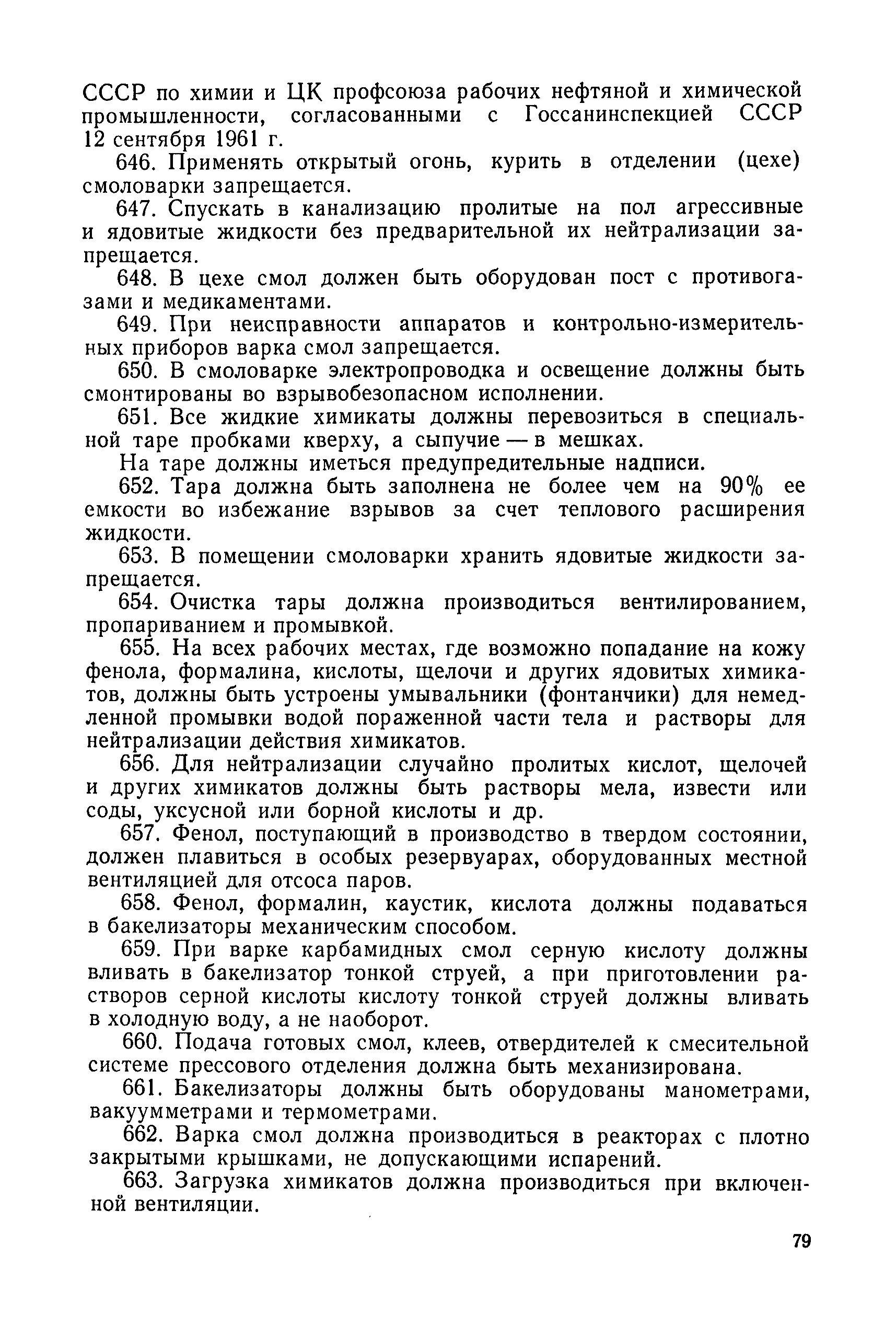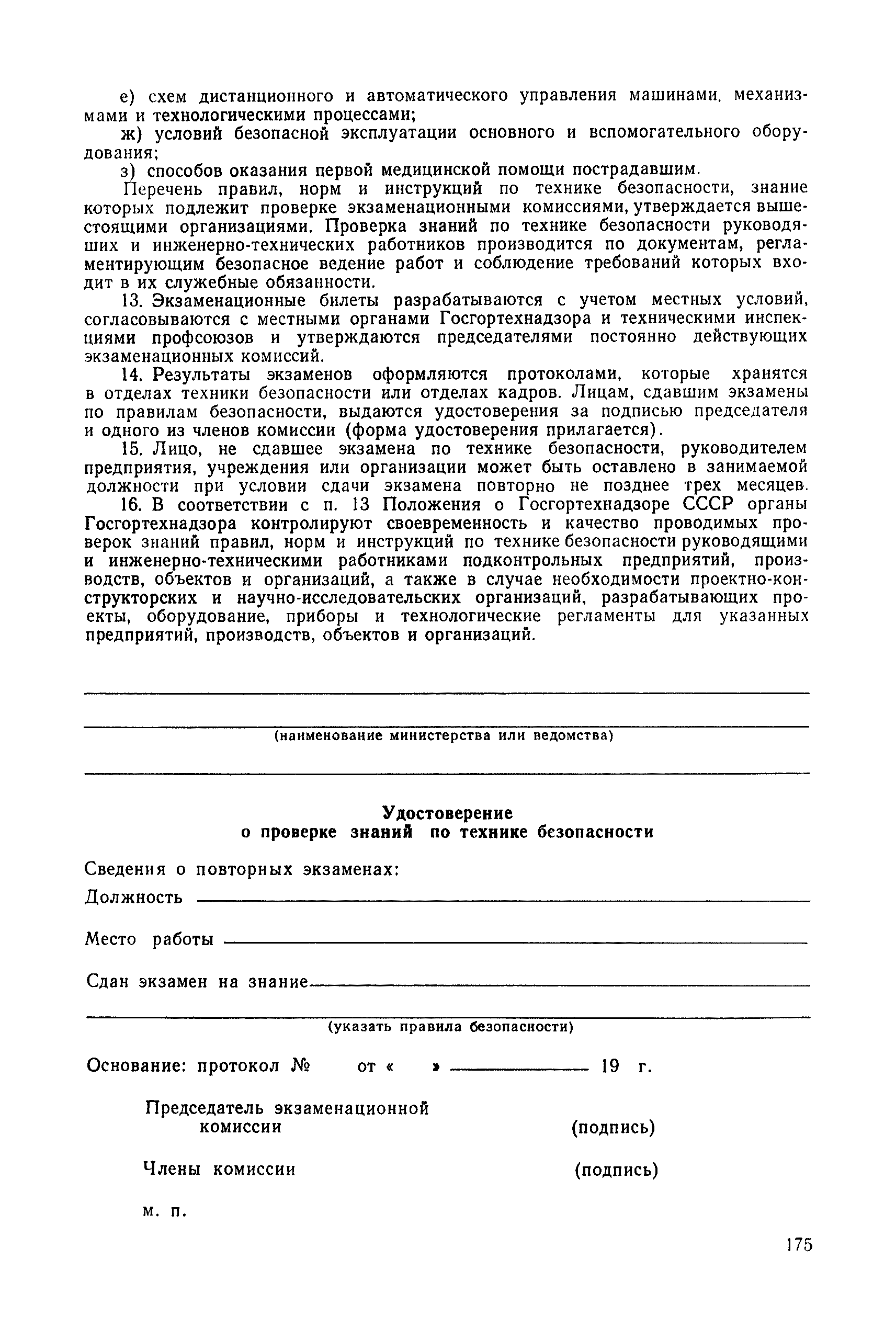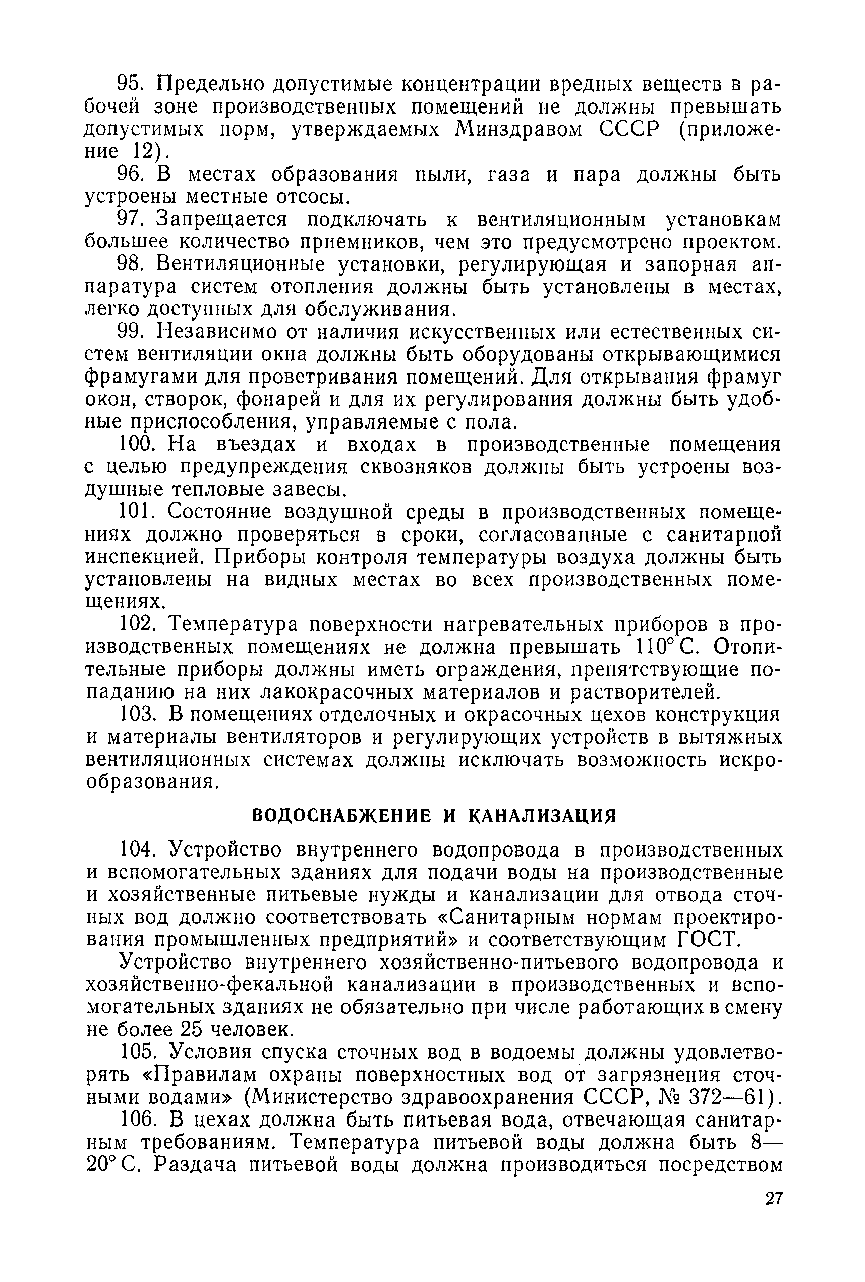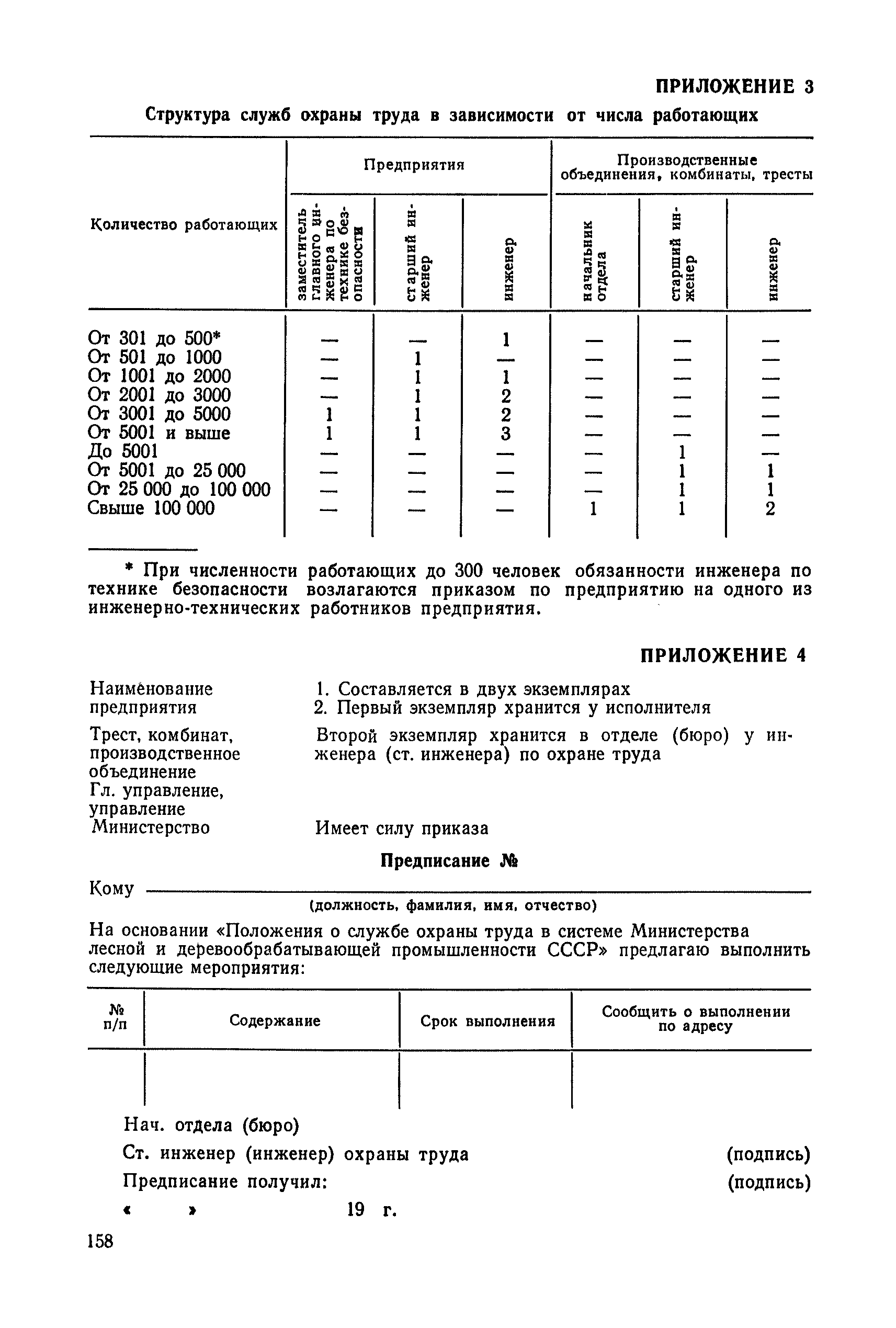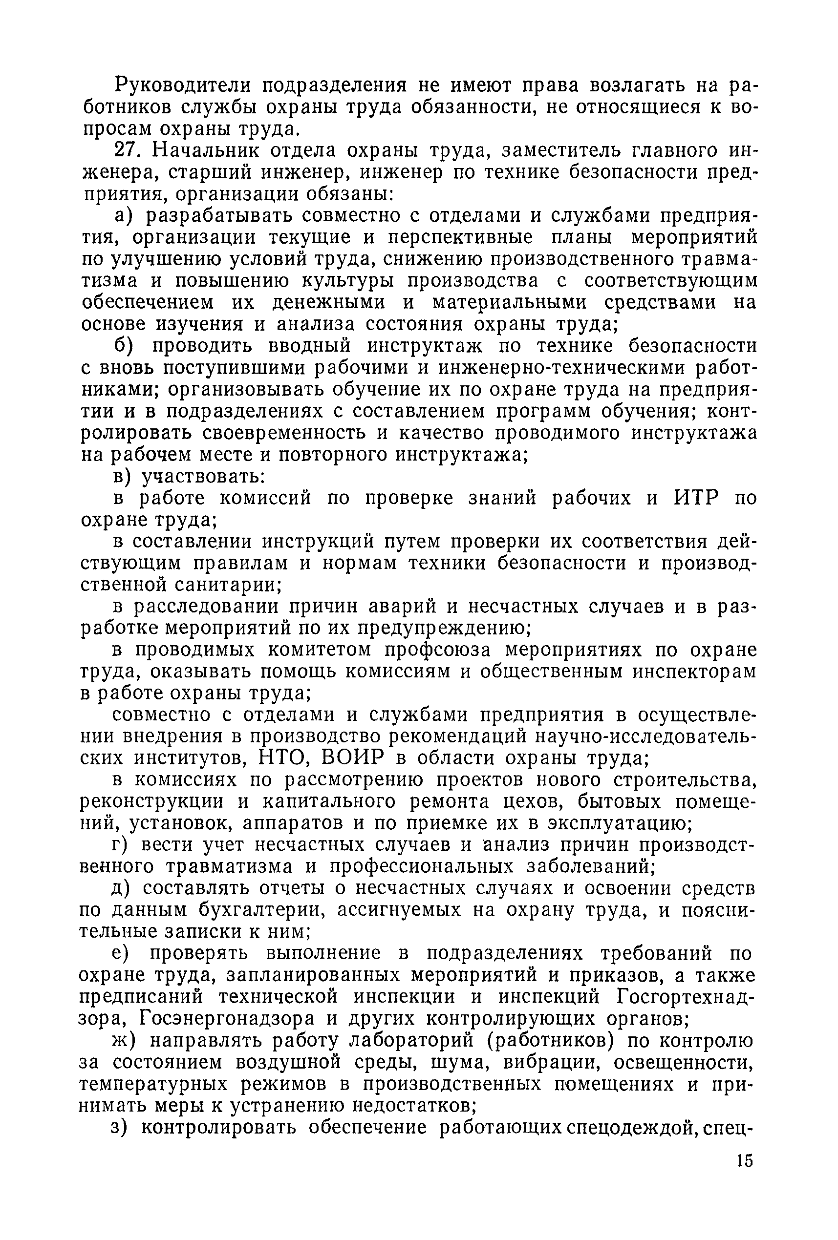 | Оглавление: | I. Общие положения II. Обязанности и ответственность административно-технического персонала III. Обучение и инструктирование рабочих, инженерно-технических работников и служащих IV. Требования к устройству и содержанию территории, зданий и сооружений предприятий V. Требования по устройству, расположению и содержанию оборудования и рабочих мест VI. Оборудование стационарного транспорта. Внутрицеховой и внутризаводской транспорт VII. Требования к оборудованию и технологическим процессам VIII. Инструменты IX. Рейды, бассейны и склады круглых лесоматериалов X. Склады готовой продукции Приложение 1 Перечень официальных руководящих нормативных и общетехнических материалов по технике безопасности и производственной санитарии, применение которых обязательно во всех отраслях промышленности Приложение 2 Методические указания к составлению инструкций по технике безопасности Приложение 3 Структура служб охраны труда в зависимости от числа рабочих Приложение 4 Предписание Приложение 5 Методические указания по созданию и организации работы кабинета охраны труда Приложение 6 Типовые программы инструктажей и курсового обучения рабочих Приложение 7 Журнал регистрации вводного инструктажа по технике безопасности Приложение 8 Удостоверение по технике безопасности Приложение 9 Протокол Приложение 10 Типовая программа для обучения административно-технического персонала Приложение 11 Положение о порядке проверки знаний правил, норм и инструкций по технике безопасности руководящими работниками подведомственных предприятий, организаций и объектов, подконтрольных органам Госгортехнадзора СССР в системе Министерства лесной и деревообрабатывающей промышленности СССР Приложение 12 Предельно допустимые концентрации вредных газов, паров, пыли и других аэрозолей в воздухе рабочей зоны производственных помещений Приложение 13 Состав и нормы санитарно-бытовых помещений Приложение 14 Нормы и сроки испытаний подъемных механизмов и приспособлений Приложение 15 Наименьших допустимый коэффициент запаса прочности канатов и цепей Приложение 16 Нормы и сроки электрических испытаний защитных средств Приложение 17 Классификация производственных помещений по степени взрыво- и пожароопасности с точки зрения применения электрооборудования Приложение 18 Временная инструкция по устройству расходных складов бертолетовой соли и о порядке ее хранения на спичечных фабриках Приложение 19 Нормы браковки стальных канатов Приложение 20 Шкала приближенного определения силы ветра и состояния водной поверхности |