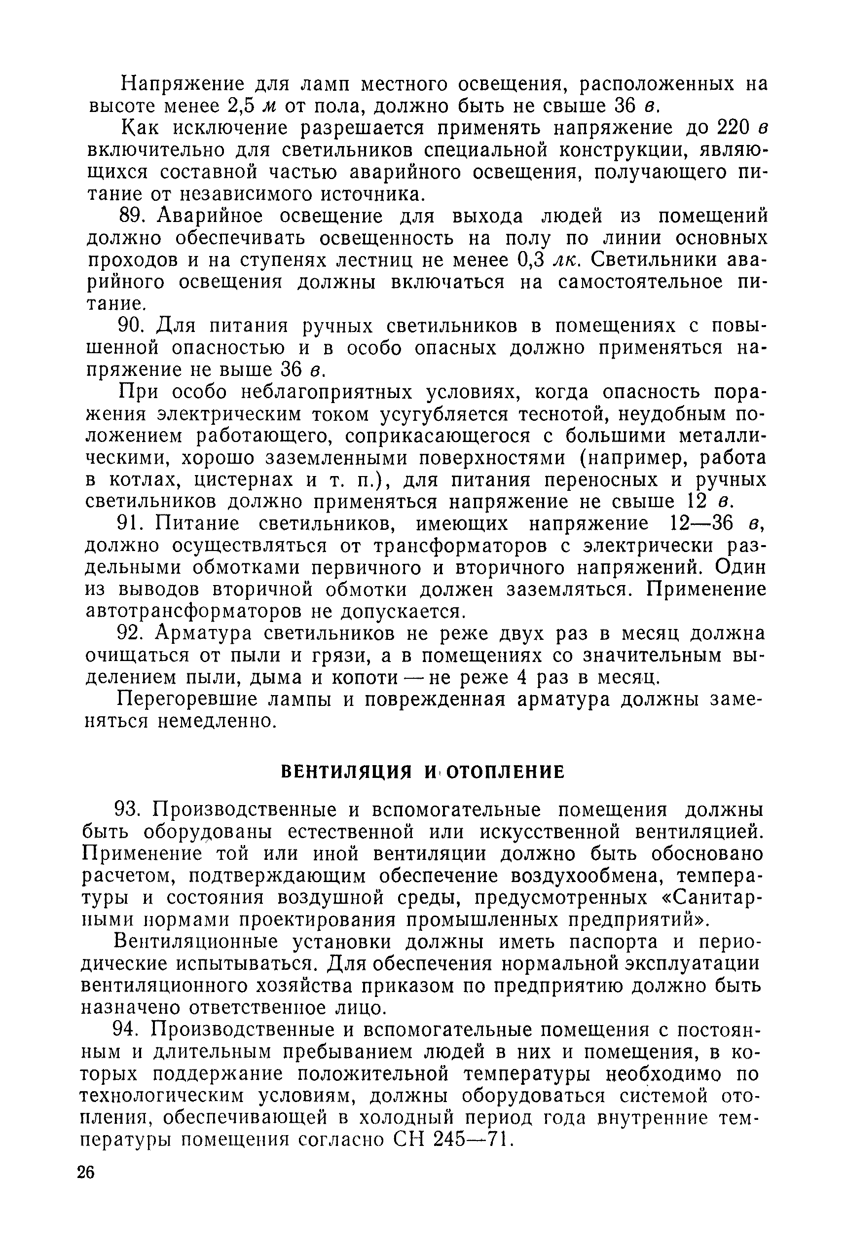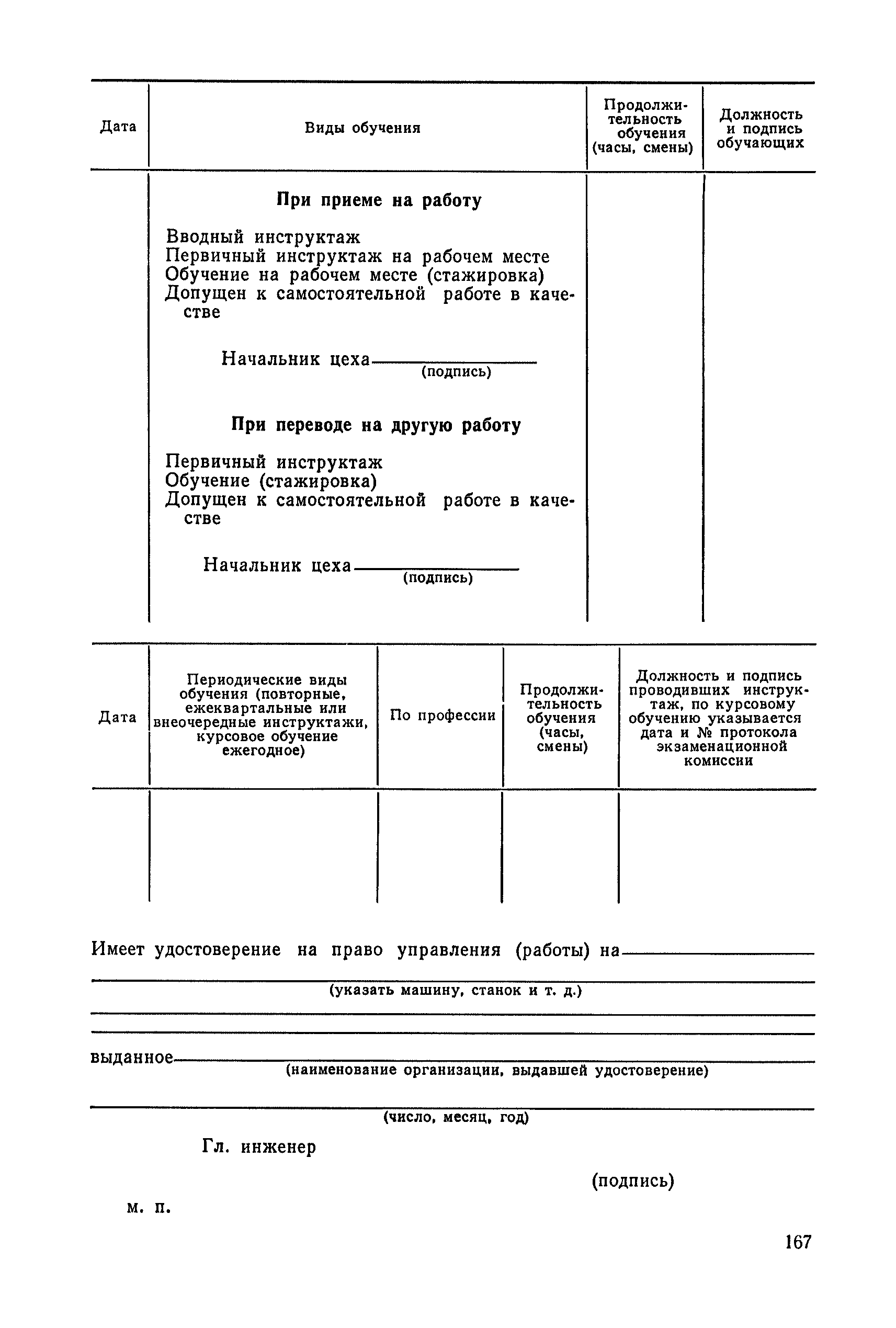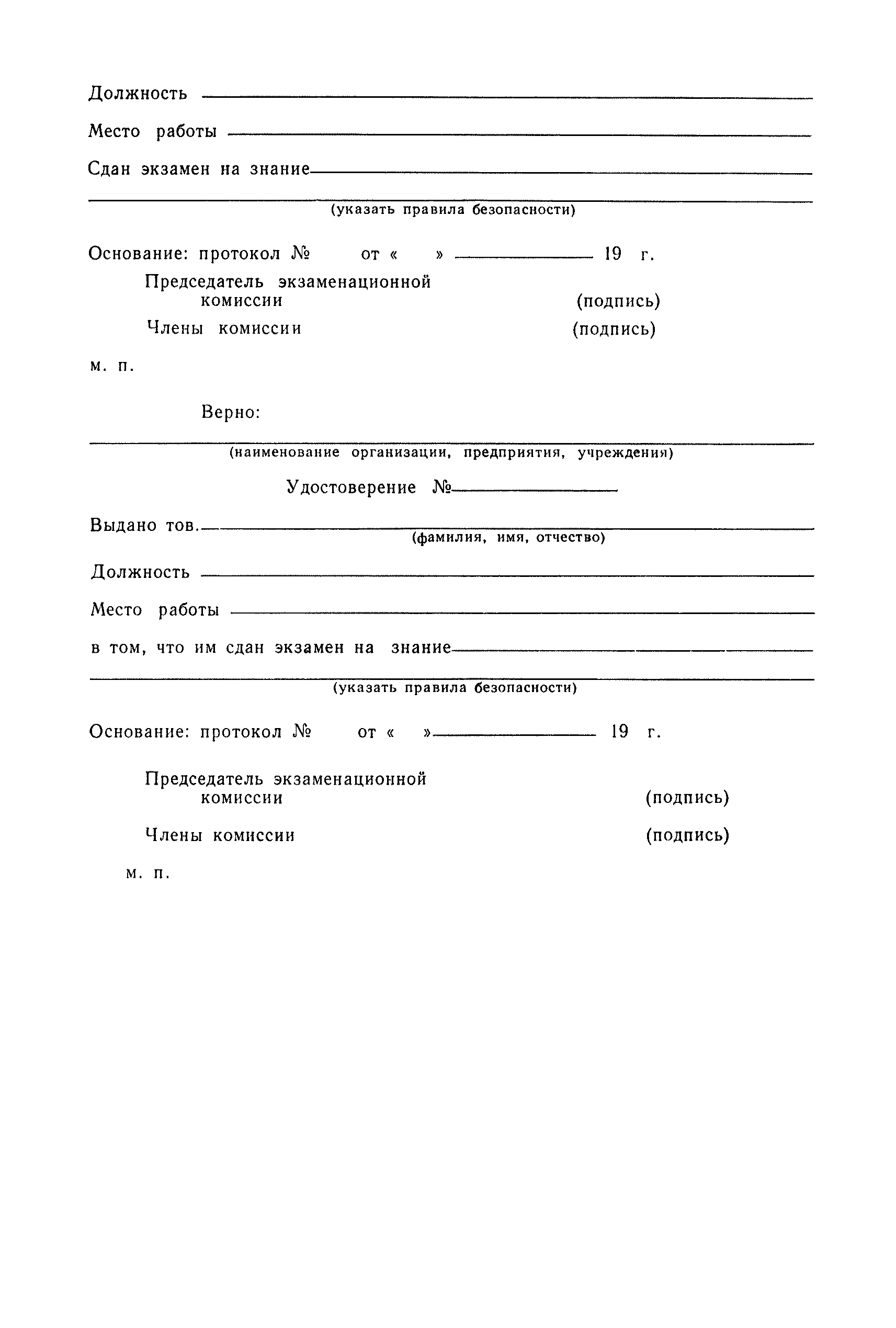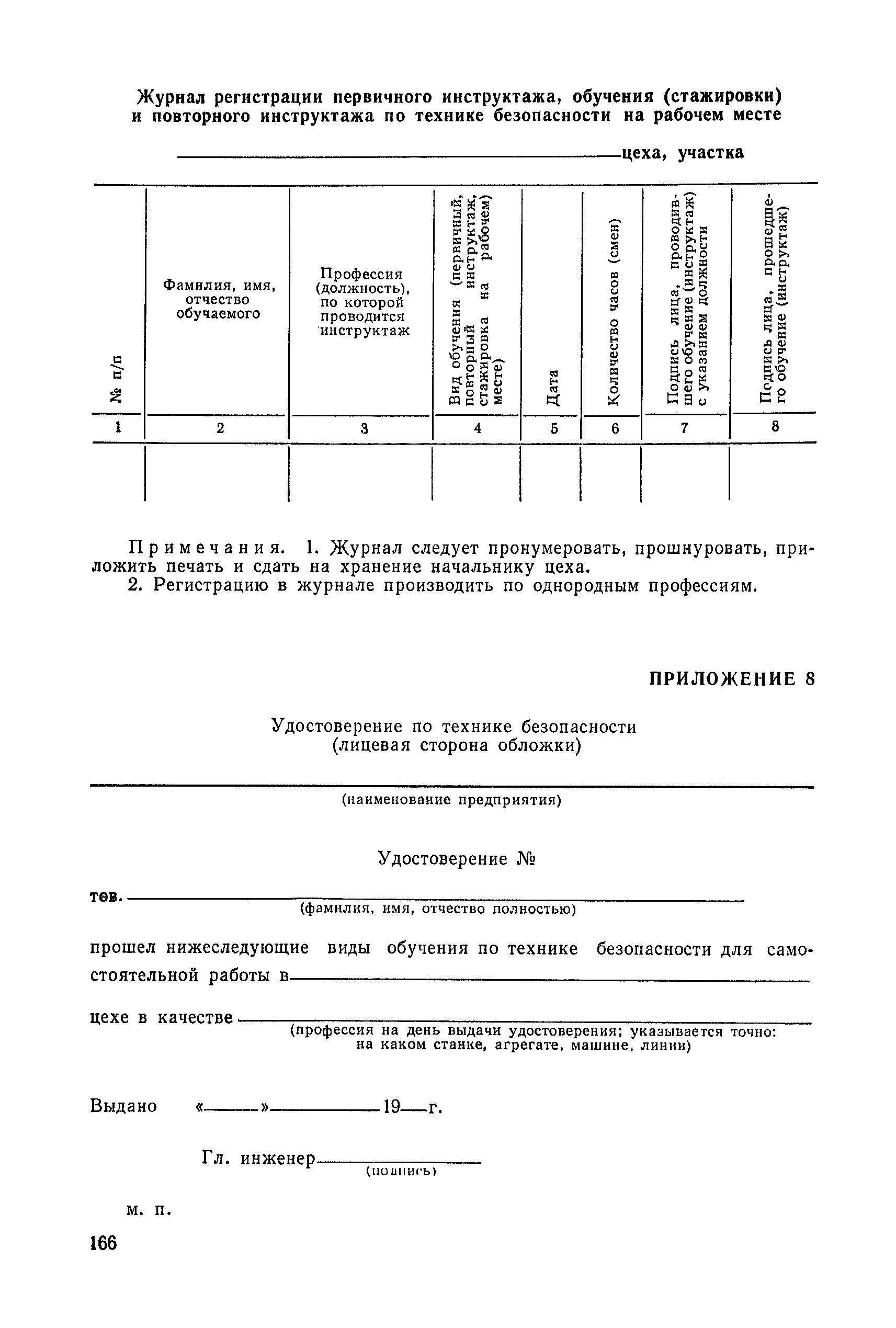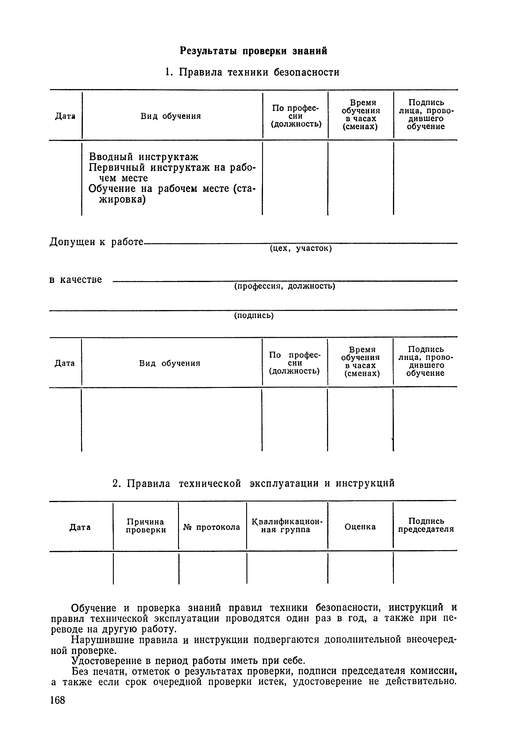 | Оглавление: | I. Общие положения II. Обязанности и ответственность административно-технического персонала III. Обучение и инструктирование рабочих, инженерно-технических работников и служащих IV. Требования к устройству и содержанию территории, зданий и сооружений предприятий V. Требования по устройству, расположению и содержанию оборудования и рабочих мест VI. Оборудование стационарного транспорта. Внутрицеховой и внутризаводской транспорт VII. Требования к оборудованию и технологическим процессам VIII. Инструменты IX. Рейды, бассейны и склады круглых лесоматериалов X. Склады готовой продукции Приложение 1 Перечень официальных руководящих нормативных и общетехнических материалов по технике безопасности и производственной санитарии, применение которых обязательно во всех отраслях промышленности Приложение 2 Методические указания к составлению инструкций по технике безопасности Приложение 3 Структура служб охраны труда в зависимости от числа рабочих Приложение 4 Предписание Приложение 5 Методические указания по созданию и организации работы кабинета охраны труда Приложение 6 Типовые программы инструктажей и курсового обучения рабочих Приложение 7 Журнал регистрации вводного инструктажа по технике безопасности Приложение 8 Удостоверение по технике безопасности Приложение 9 Протокол Приложение 10 Типовая программа для обучения административно-технического персонала Приложение 11 Положение о порядке проверки знаний правил, норм и инструкций по технике безопасности руководящими работниками подведомственных предприятий, организаций и объектов, подконтрольных органам Госгортехнадзора СССР в системе Министерства лесной и деревообрабатывающей промышленности СССР Приложение 12 Предельно допустимые концентрации вредных газов, паров, пыли и других аэрозолей в воздухе рабочей зоны производственных помещений Приложение 13 Состав и нормы санитарно-бытовых помещений Приложение 14 Нормы и сроки испытаний подъемных механизмов и приспособлений Приложение 15 Наименьших допустимый коэффициент запаса прочности канатов и цепей Приложение 16 Нормы и сроки электрических испытаний защитных средств Приложение 17 Классификация производственных помещений по степени взрыво- и пожароопасности с точки зрения применения электрооборудования Приложение 18 Временная инструкция по устройству расходных складов бертолетовой соли и о порядке ее хранения на спичечных фабриках Приложение 19 Нормы браковки стальных канатов Приложение 20 Шкала приближенного определения силы ветра и состояния водной поверхности |