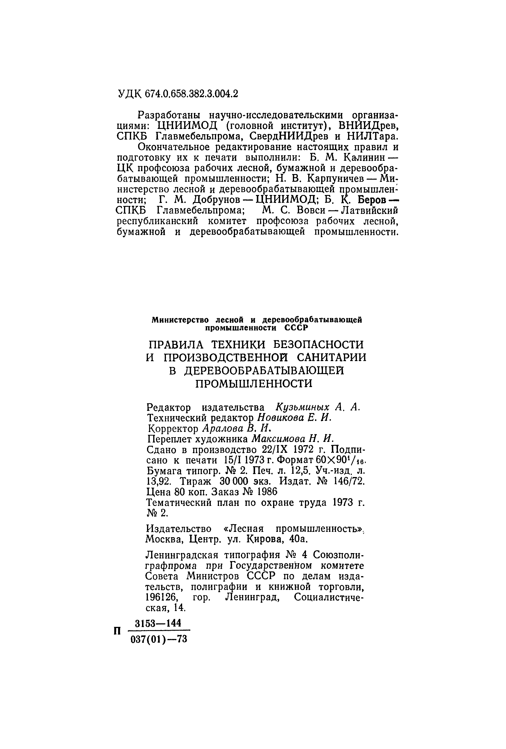 | Название рус.: | Правила техники безопасности и производственной санитарии в деревообрабатывающей промышленности |