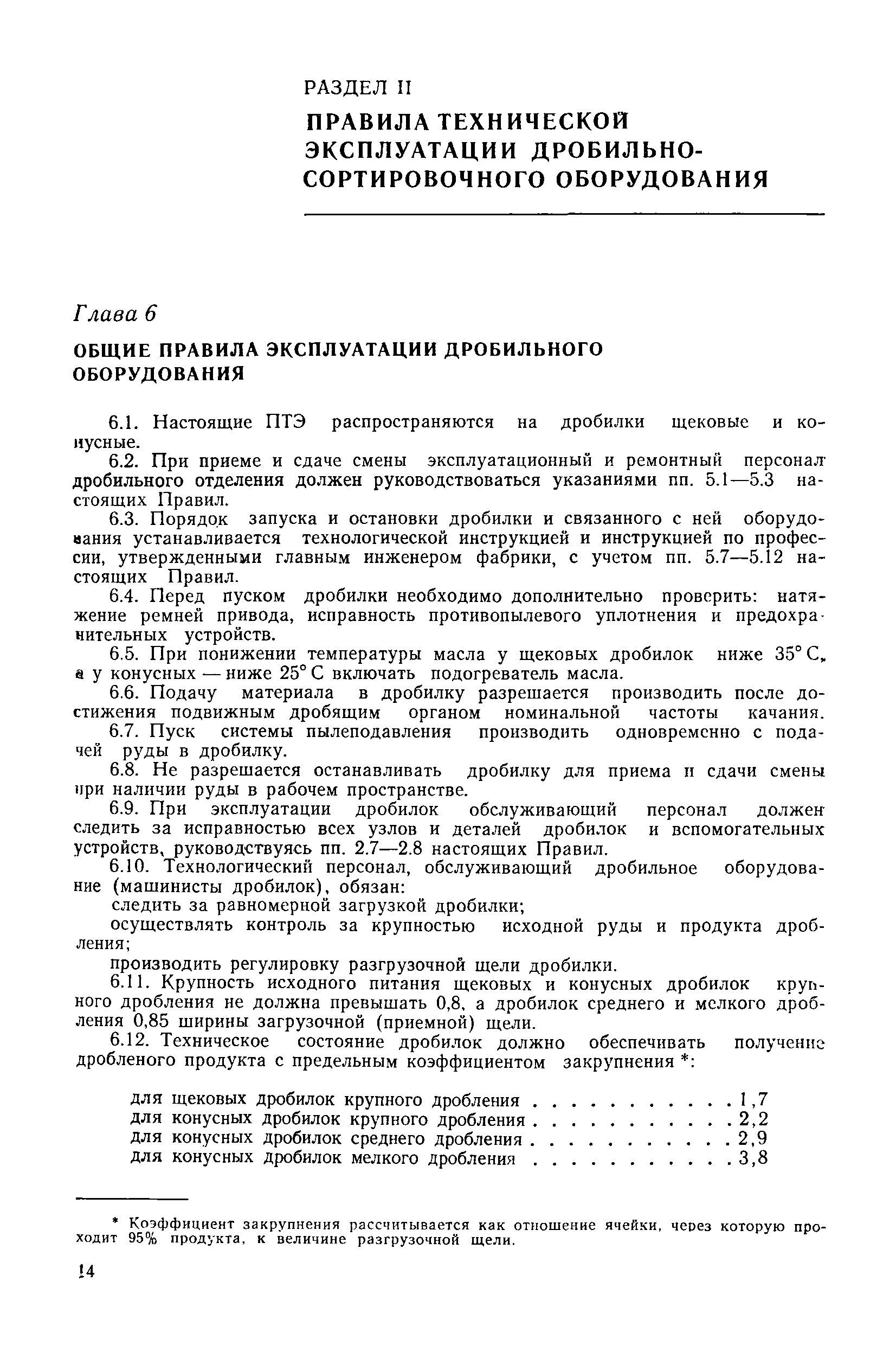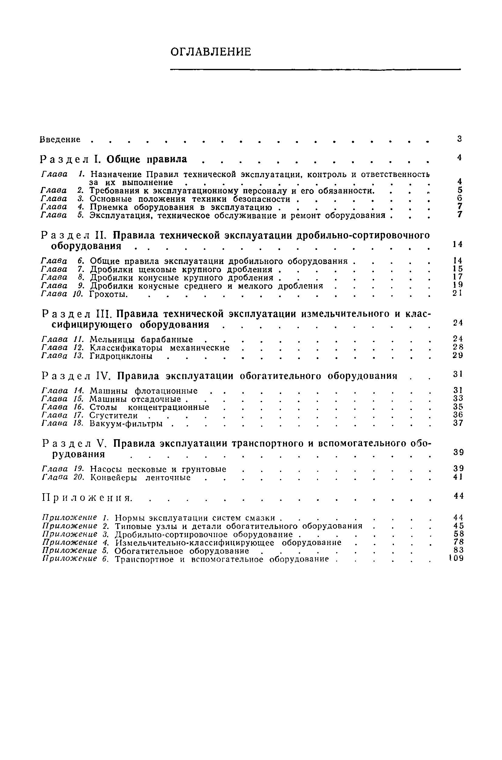 | Оглавление: | Раздел I. Общие правила Раздел II. Правила технической эксплуатации дробильно-сортировочного оборудования Раздел III. Правила технической эксплуатации измельчительного и классифицирующего оборудования Раздел IV. Правила эксплуатации обогатительного оборудования Раздел V. Правила эксплуатации транспортного и вспомогательного оборудования Приложение 1 Нормы эксплуатации систем смазки Приложение 2 Типовые узлы и детали обогатительного оборудования Приложение 3 Дробильно-сортировочное оборудование Приложение 4 Измельчительно-классифицирующее оборудование Приложение 5 Обогатительное оборудование Приложение 6 Транспортное и вспомогательное оборудование |