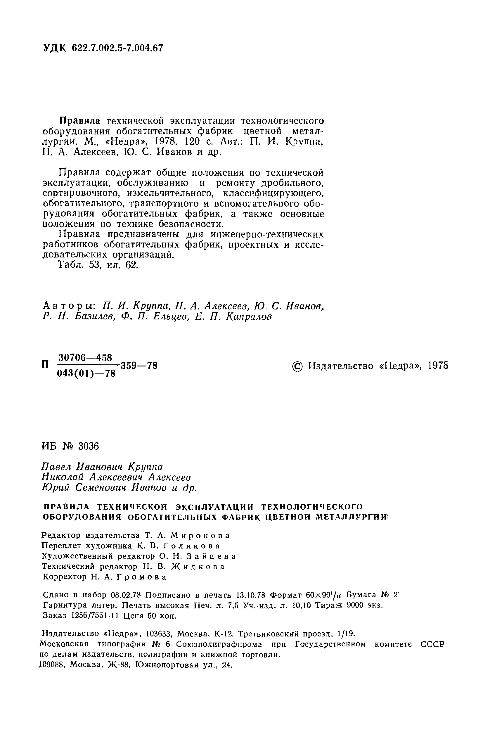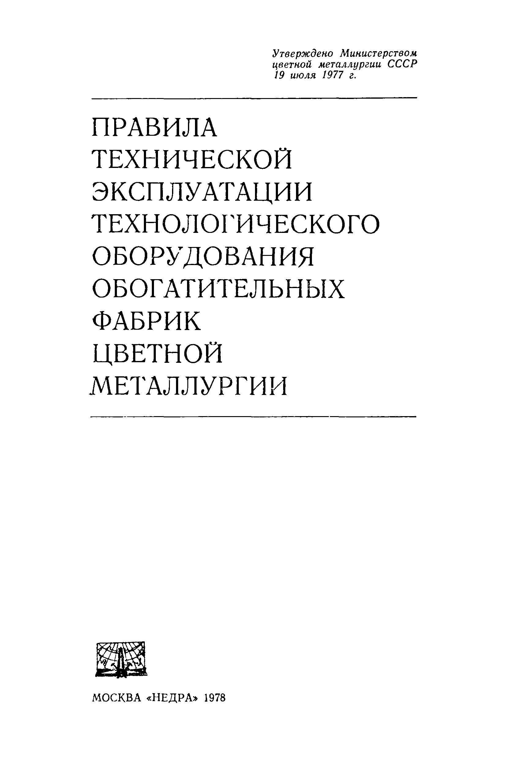 | Название рус.: | Правила технической эксплуатации технологического оборудования обогатительных фабрик цветной металлургии |