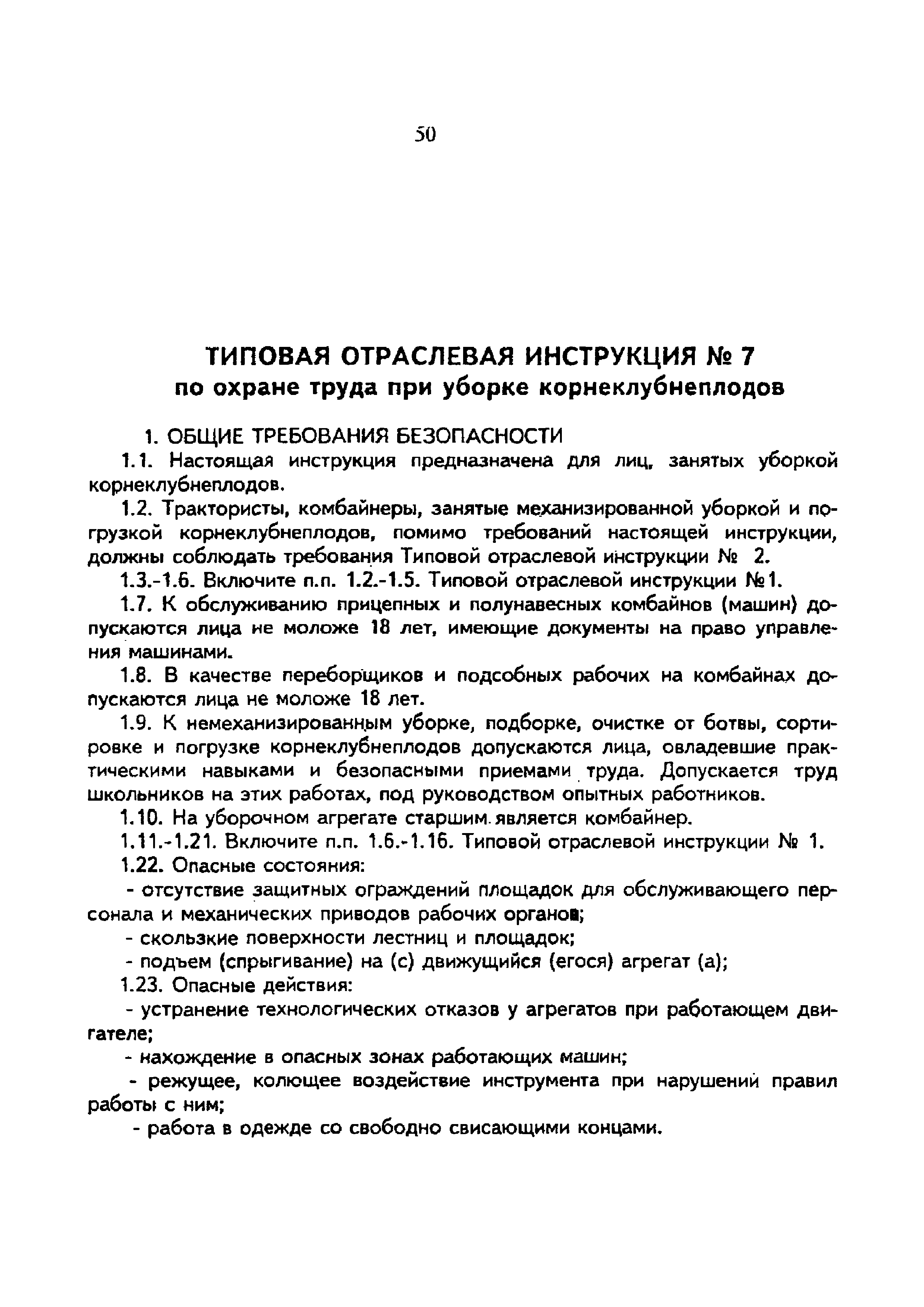 | Название рус.: | Типовая отраслевая инструкция № 7 по охране труда при уборке корнеклубнеплодов |