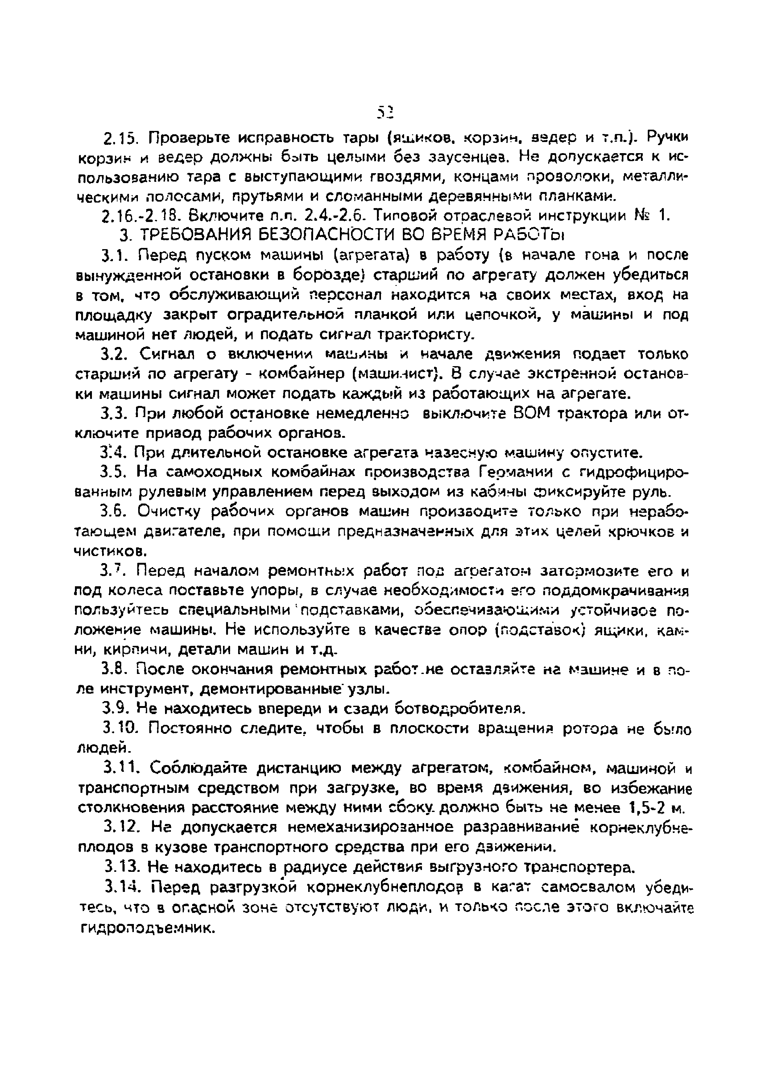 | Область применения: | Инструкция предназначена для лиц, занятых уборкой корнеклубнеплодов |