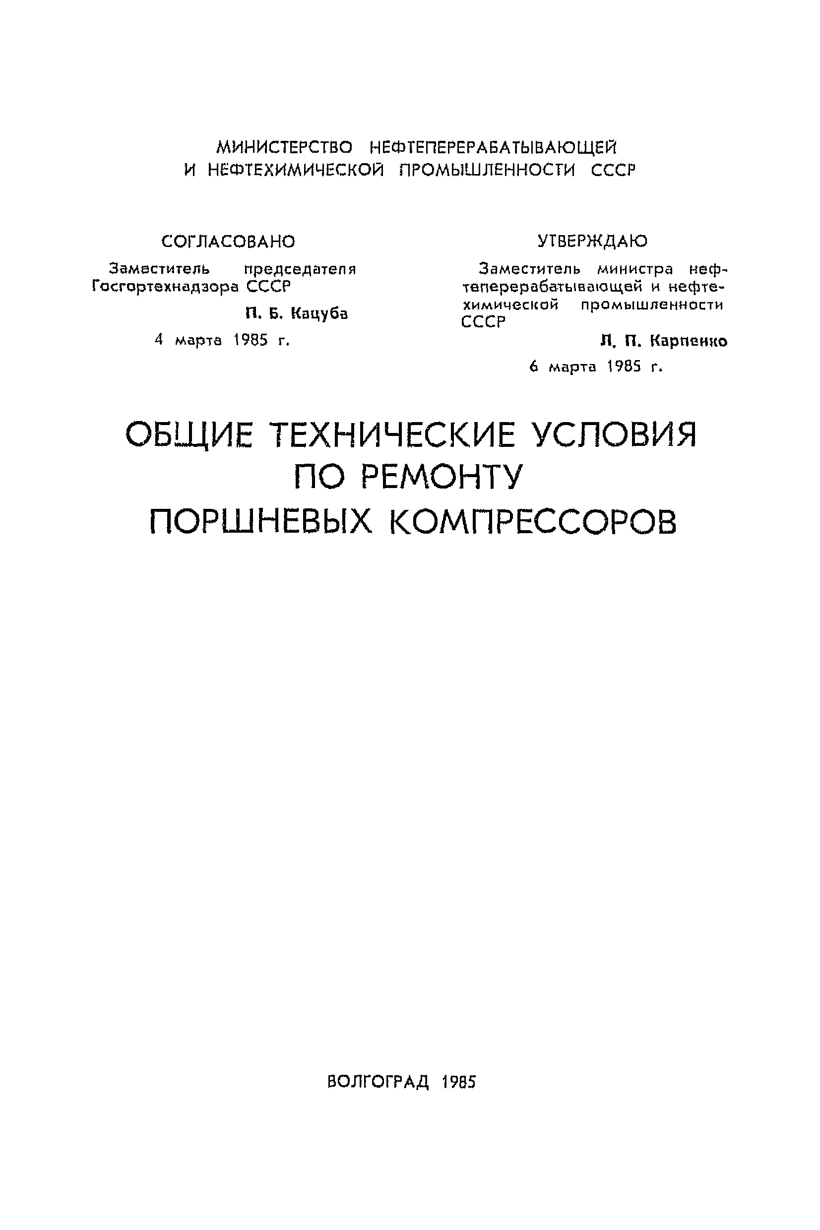 | | Утверждён: | 06.03.1985 Министерство нефтеперерабатывающей и нефтехимической промышленности СССР
