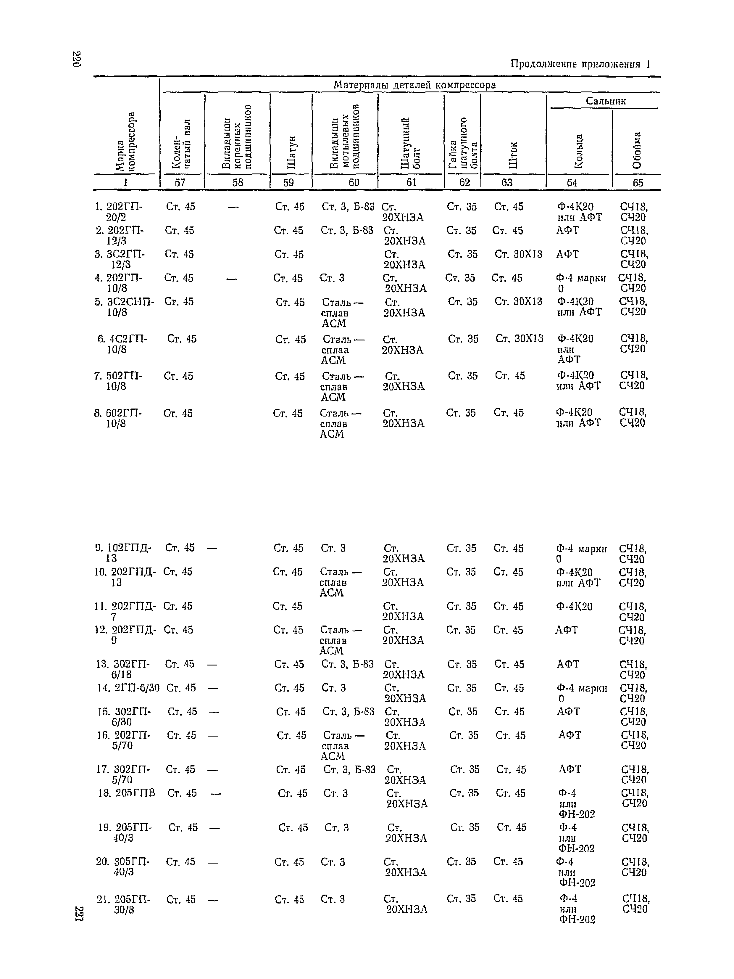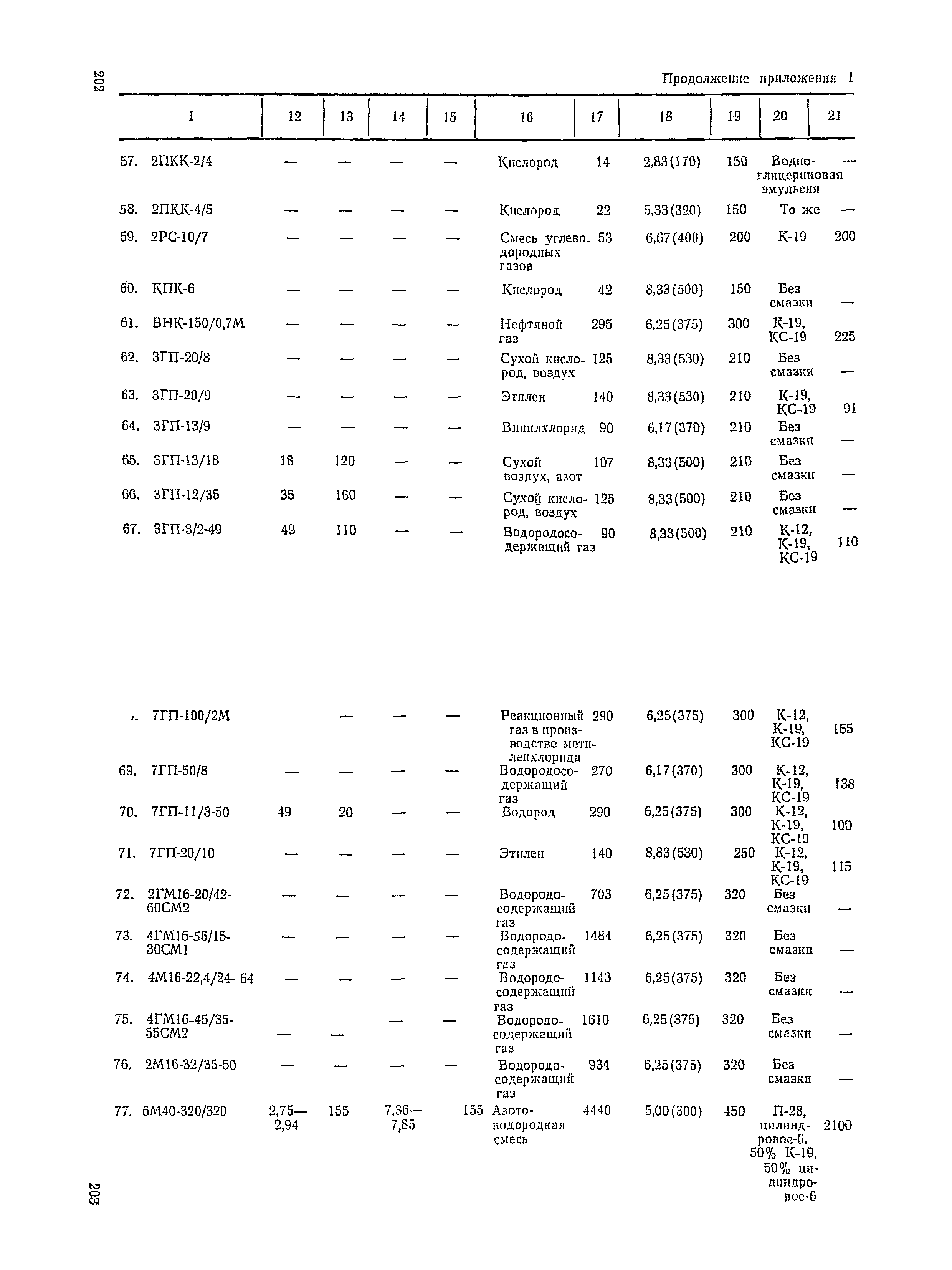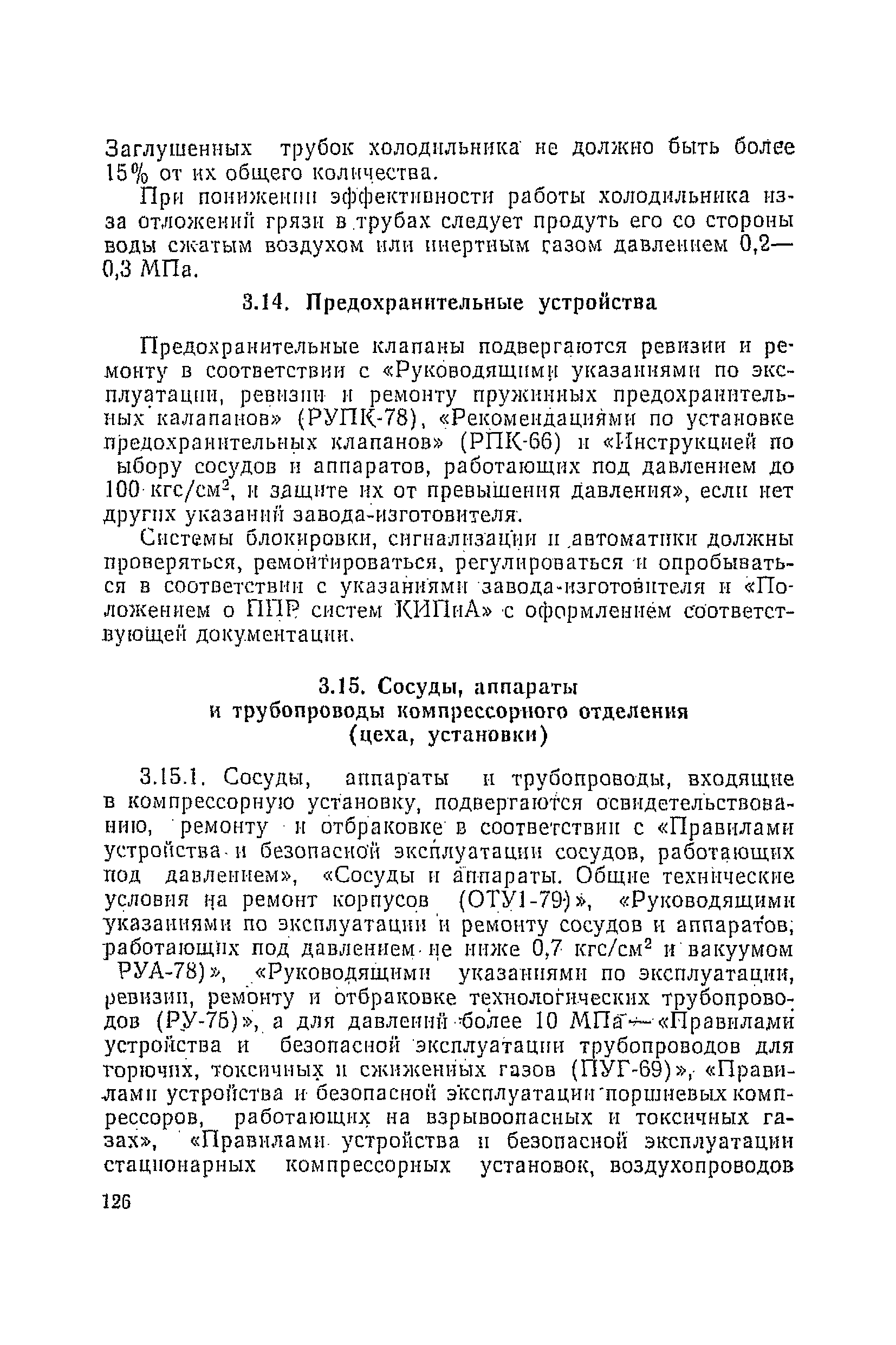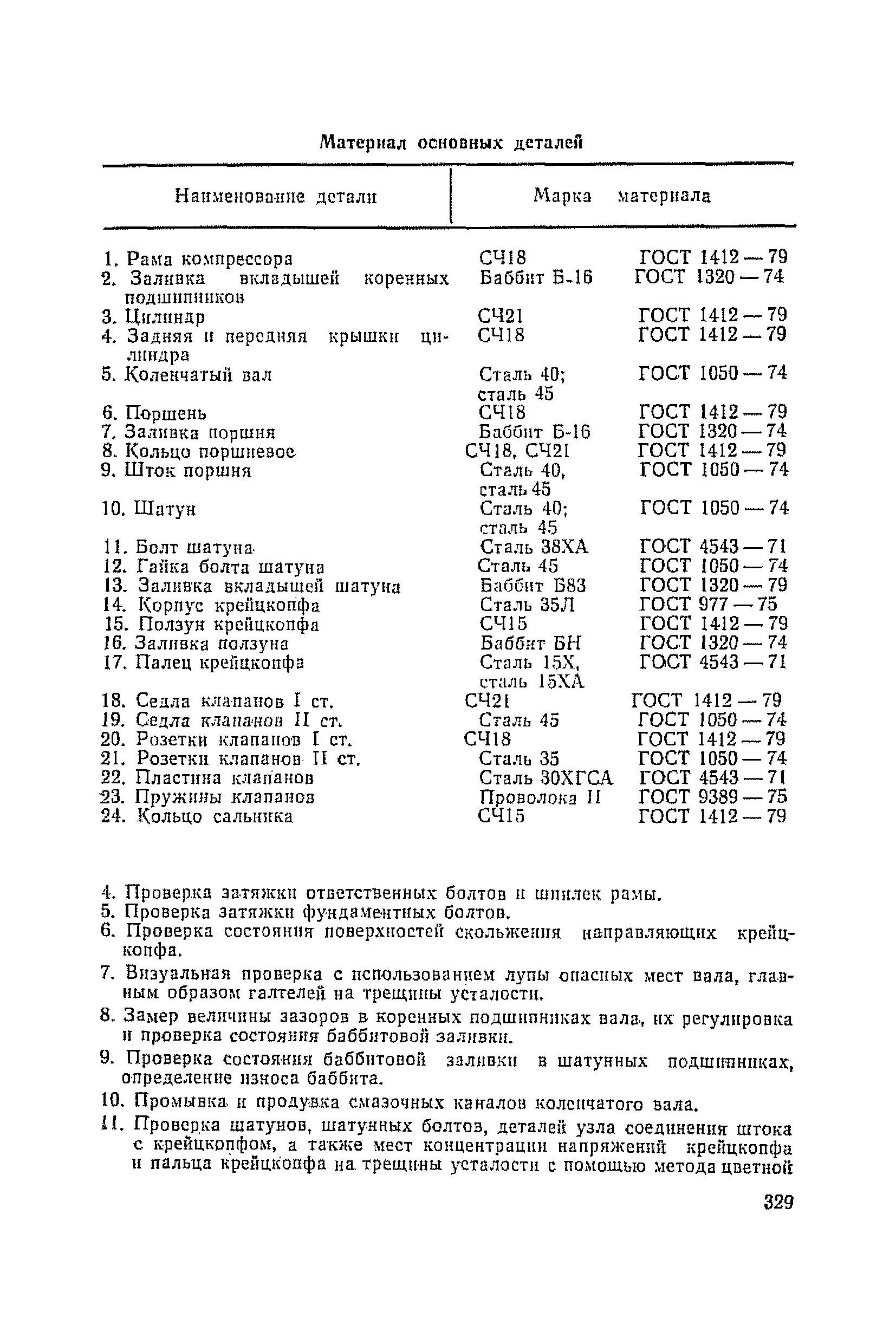 | | Нормативные ссылки: |  «Правила устройства и безопасной эксплуатации стационарных компрессорных установок, воздухопроводов и газопроводов» «Правила устройства и безопасной эксплуатации сосудов, работающих под давлением»  «Типовая инструкция по организации безопасного проведения огневых работ на взрывоопасных и взрывопожароопасных объектах»  ГОСТ 5632-72 «Стали высоколегированные и сплавы коррозионно-стойкие, жаростойкие и жаропрочные. Марки»  ГОСТ 15150-69 «Машины, приборы и другие технические изделия. Исполнения для различных климатических районов. Категории, условия эксплуатации, хранения и транспортирования в части воздействия климатических факторов внешней среды»  ГОСТ 12503-75 «Сталь. Методы ультразвукового контроля. Общие требования»  ГОСТ 8479-70 «Поковки из конструкционной углеродистой и легированной стали. Общие технические условия»  ГОСТ 4543-71 «Прокат из легированной конструкционной стали. Технические условия»  ГОСТ 481-80 «Паронит и прокладки из него. Технические условия»  ГОСТ 2789-73 «Шероховатость поверхности. Параметры и характеристики»  ГОСТ 14959-79 «Прокат из рессорно-пружинной углеродистой и легированной стали. Технические условия» Инструкция «Инструкция по выбору сосудов и аппаратов, работающих под давлением до 100 кгс/см2 и защите их от превышения давления»  ГОСТ 13489-79 «Герметики марок У-30М и УТ-31. Технические условия»  ГОСТ 21121-75 «Лазурь железная. Технические условия»  ГОСТ 9347-74 «Картон прокладочный и уплотнительные прокладки из него. Технические условия»  ГОСТ 12613-79 «Краны металлургические для раздевания слитков. Основные параметры»  ГОСТ 1320-74 «Баббиты оловянные и свинцовые. Технические условия»  ГОСТ 1861-73 «Масла компрессорные. Технические условия»  ГОСТ 20415-82 «Контроль неразрушающий. Методы акустические. Общие положения» ГОСТ 20799-75 «Масла индустриальные общего назначения. Технические условия» ГОСТ 21104-75 «Контроль неразрушающий. Феррозондовый метод»  ГОСТ 21743-76 «Масла авиационные. Технические условия»  ГОСТ 24289-80 «Контроль неразрушающий вихретоковый. Термины и определения»  ГОСТ 24507-80 «Контроль неразрушающий. Поковки из черных и цветных металлов. Методы ультразвуковой дефектоскопии» ГОСТ 3778-77 «Свинец. Технические условия» ГОСТ 40-80 «Гуанид Ф. Технические условия» ГОСТ 4832-80 «Чугун литейный. Технические условия» ГОСТ 5539-73 «Глет свинцовый. Технические условия» ГОСТ 613-79 «Бронзы оловянные литейные. Марки»  ГОСТ 6411-76 «Масла цилиндровые тяжелые. Технические условия» ГОСТ 6990-75 «Масло касторовое сульфированное. Технические условия» ГОСТ 8295-73 «Графит смазочный. Технические условия»  ГОСТ 8581-78 «Масла моторные для автотракторных дизелей. Технические условия» ГОСТ 8981-78 «Эфиры этиловый и нормальный бутиловый уксусной кислоты технические. Технические условия»  ГОСТ 9243-75 «Масло компрессорное из сернистых нефтей КС-19. Технические условия»  ГОСТ 9389-75 «Проволока стальная углеродистая пружинная. Технические условия» ГОСТ 9515-81 «Кольца поршневые металлические поршневых компрессоров. Технические условия»  ГОСТ 982-80 «Масла трансформаторные. Технические условия» ГОСТ 1050-74 «Сталь углеродистая качественная конструкционная. Технические условия» ГОСТ 3443-77 «Отливки из чугуна с различной формой графита. Методы определения структуры» ГОСТ 23702-79 «Контроль неразрушающий. Преобразователи ультразвуковые. Основные параметры и метод