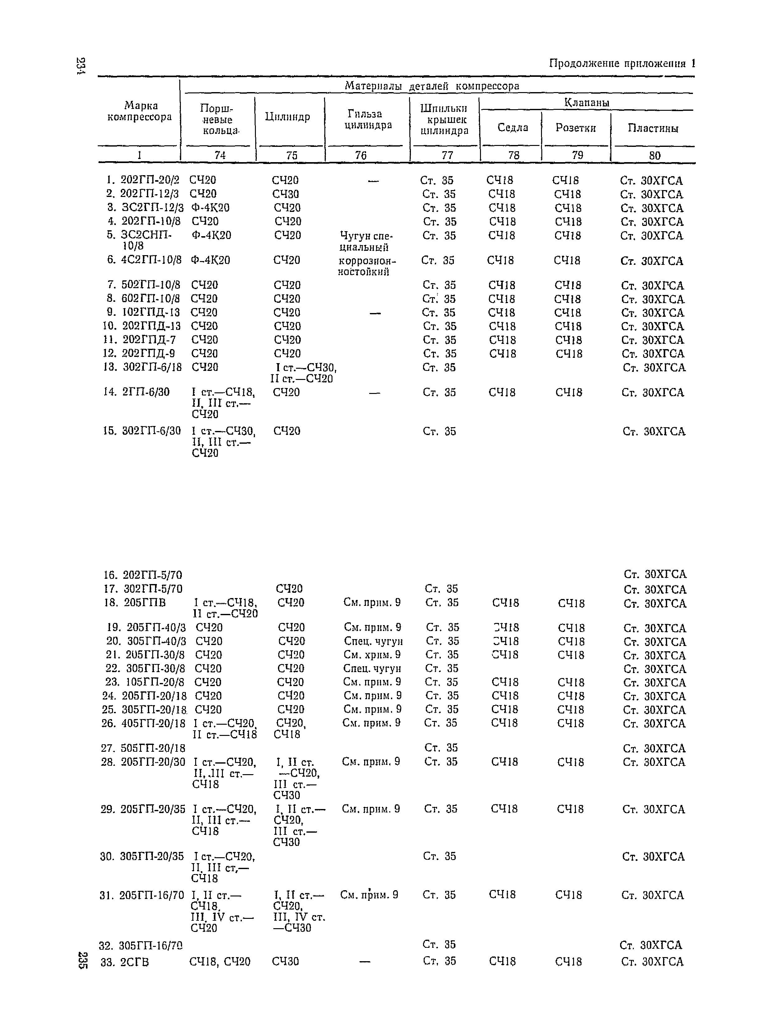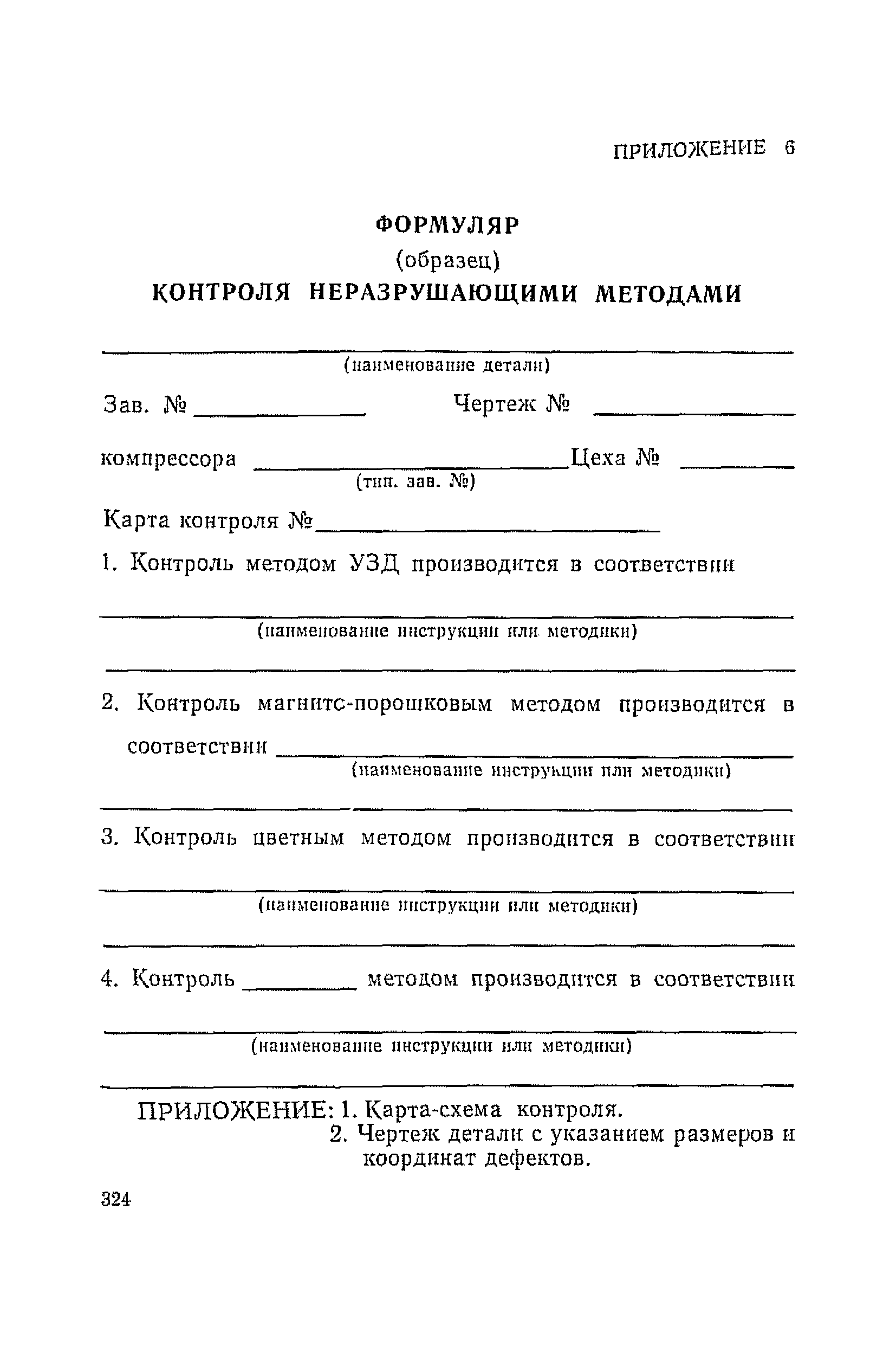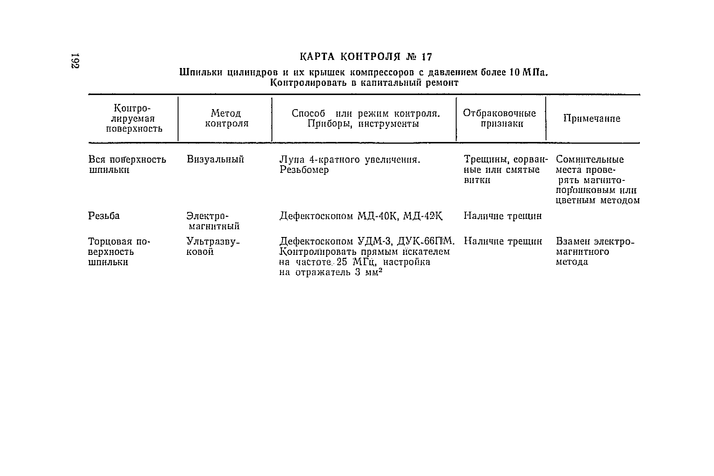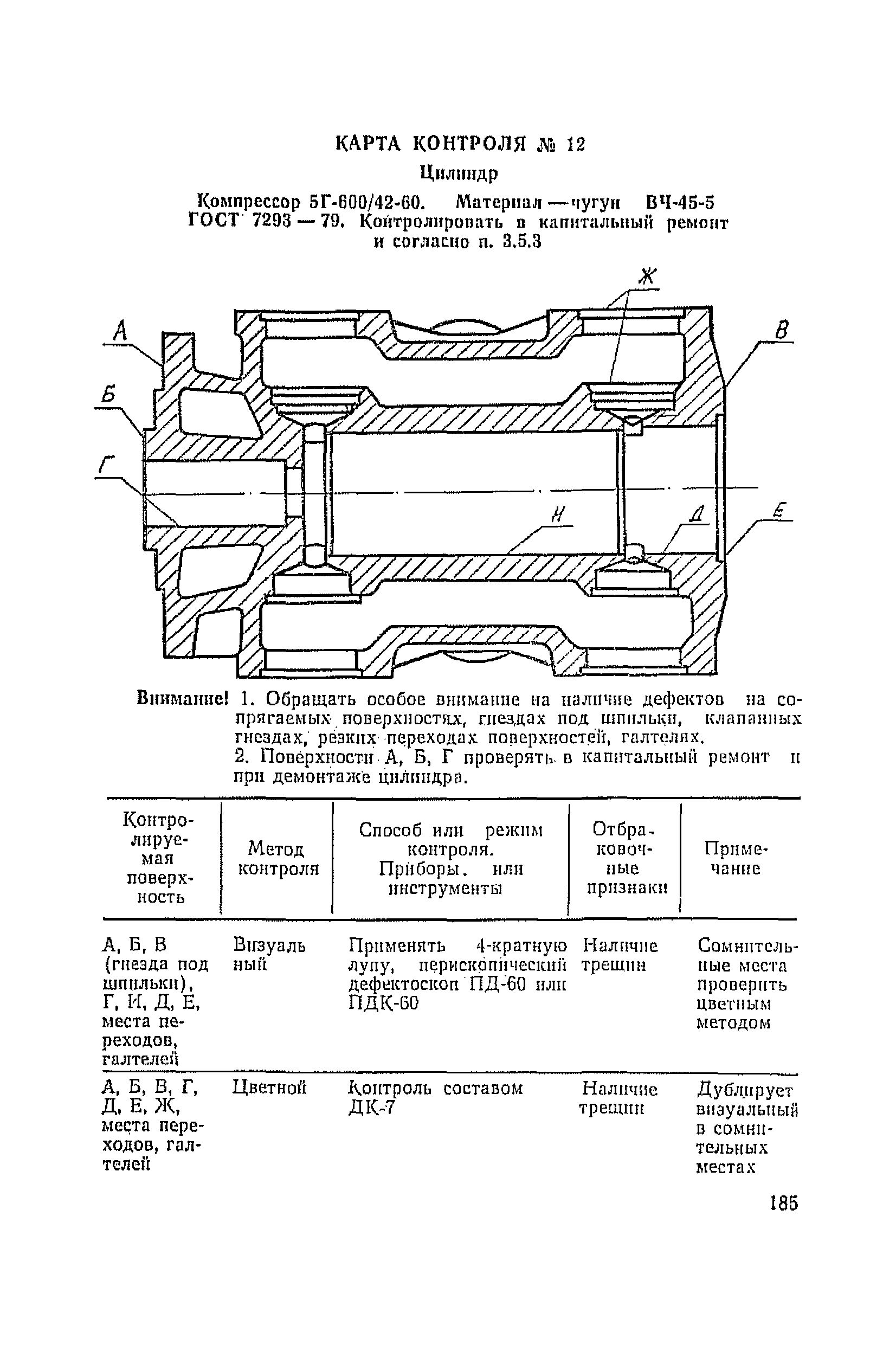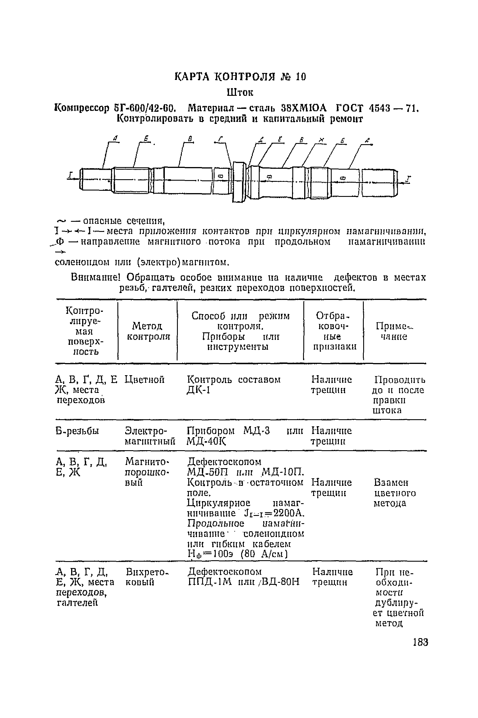 | | Нормативные ссылки: |  «Правила устройства и безопасной эксплуатации стационарных компрессорных установок, воздухопроводов и газопроводов» «Правила устройства и безопасной эксплуатации сосудов, работающих под давлением»  «Типовая инструкция по организации безопасного проведения огневых работ на взрывоопасных и взрывопожароопасных объектах»  ГОСТ 5632-72 «Стали высоколегированные и сплавы коррозионно-стойкие, жаростойкие и жаропрочные. Марки»  ГОСТ 15150-69 «Машины, приборы и другие технические изделия. Исполнения для различных климатических районов. Категории, условия эксплуатации, хранения и транспортирования в части воздействия климатических факторов внешней среды»  ГОСТ 12503-75 «Сталь. Методы ультразвукового контроля. Общие требования»  ГОСТ 8479-70 «Поковки из конструкционной углеродистой и легированной стали. Общие технические условия»  ГОСТ 4543-71 «Прокат из легированной конструкционной стали. Технические условия»  ГОСТ 481-80 «Паронит и прокладки из него. Технические условия»  ГОСТ 2789-73 «Шероховатость поверхности. Параметры и характеристики»  ГОСТ 14959-79 «Прокат из рессорно-пружинной углеродистой и легированной стали. Технические условия» Инструкция «Инструкция по выбору сосудов и аппаратов, работающих под давлением до 100 кгс/см2 и защите их от превышения давления»  ГОСТ 13489-79 «Герметики марок У-30М и УТ-31. Технические условия»  ГОСТ 21121-75 «Лазурь железная. Технические условия»  ГОСТ 9347-74 «Картон прокладочный и уплотнительные прокладки из него. Технические условия»  ГОСТ 12613-79 «Краны металлургические для раздевания слитков. Основные параметры»  ГОСТ 1320-74 «Баббиты оловянные и свинцовые. Технические условия»  ГОСТ 1861-73 «Масла компрессорные. Технические условия»  ГОСТ 20415-82 «Контроль неразрушающий. Методы акустические. Общие положения» ГОСТ 20799-75 «Масла индустриальные общего назначения. Технические условия» ГОСТ 21104-75 «Контроль неразрушающий. Феррозондовый метод»  ГОСТ 21743-76 «Масла авиационные. Технические условия»  ГОСТ 24289-80 «Контроль неразрушающий вихретоковый. Термины и определения»  ГОСТ 24507-80 «Контроль неразрушающий. Поковки из черных и цветных металлов. Методы ультразвуковой дефектоскопии» ГОСТ 3778-77 «Свинец. Технические условия» ГОСТ 40-80 «Гуанид Ф. Технические условия» ГОСТ 4832-80 «Чугун литейный. Технические условия» ГОСТ 5539-73 «Глет свинцовый. Технические условия» ГОСТ 613-79 «Бронзы оловянные литейные. Марки»  ГОСТ 6411-76 «Масла цилиндровые тяжелые. Технические условия» ГОСТ 6990-75 «Масло касторовое сульфированное. Технические условия» ГОСТ 8295-73 «Графит смазочный. Технические условия»  ГОСТ 8581-78 «Масла моторные для автотракторных дизелей. Технические условия» ГОСТ 8981-78 «Эфиры этиловый и нормальный бутиловый уксусной кислоты технические. Технические условия»  ГОСТ 9243-75 «Масло компрессорное из сернистых нефтей КС-19. Технические условия»  ГОСТ 9389-75 «Проволока стальная углеродистая пружинная. Технические условия» ГОСТ 9515-81 «Кольца поршневые металлические поршневых компрессоров. Технические условия»  ГОСТ 982-80 «Масла трансформаторные. Технические условия» ГОСТ 1050-74 «Сталь углеродистая качественная конструкционная. Технические условия» ГОСТ 3443-77 «Отливки из чугуна с различной формой графита. Методы определения структуры» ГОСТ 23702-79 «Контроль неразрушающий. Преобразователи ультразвуковые. Основные параметры и метод