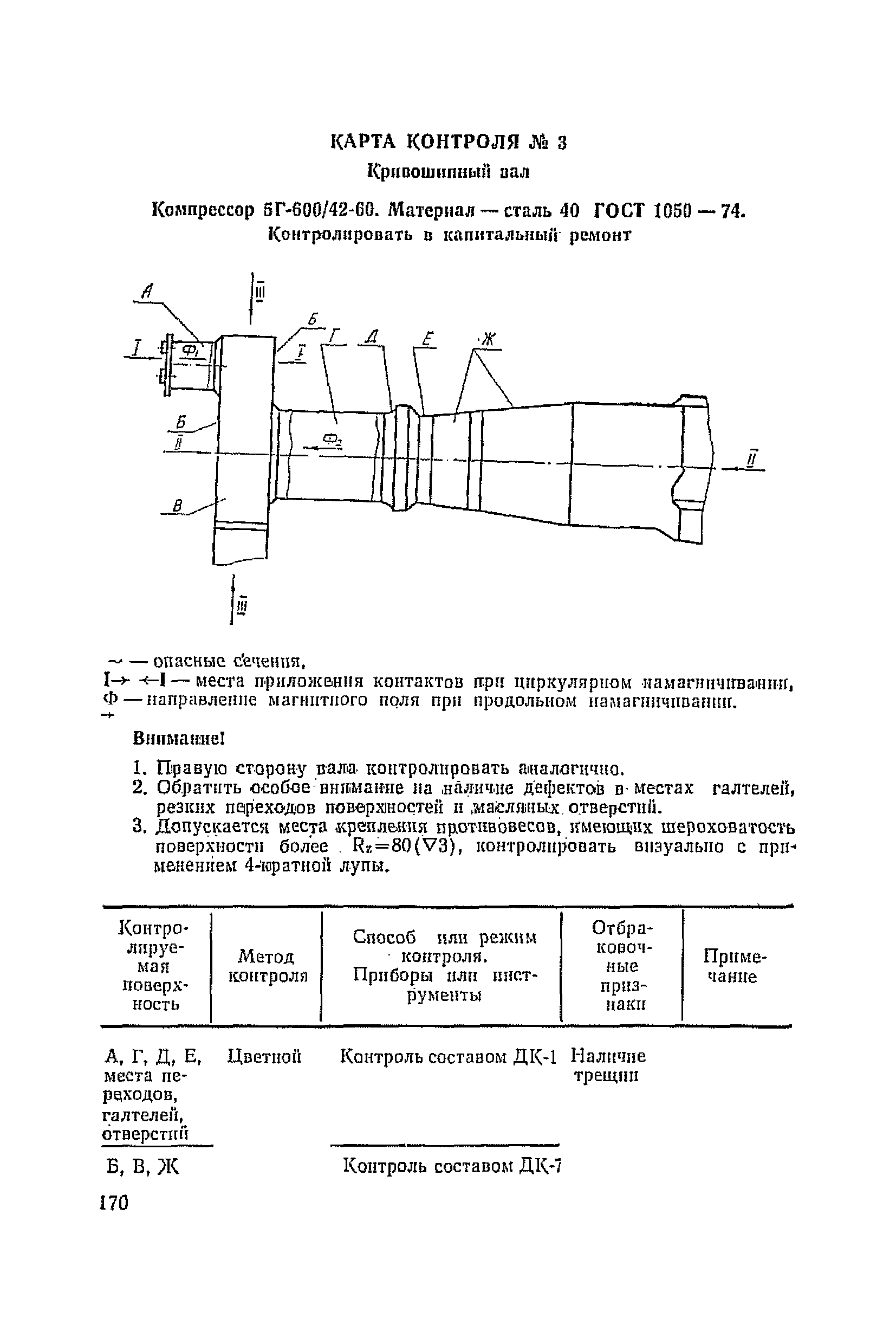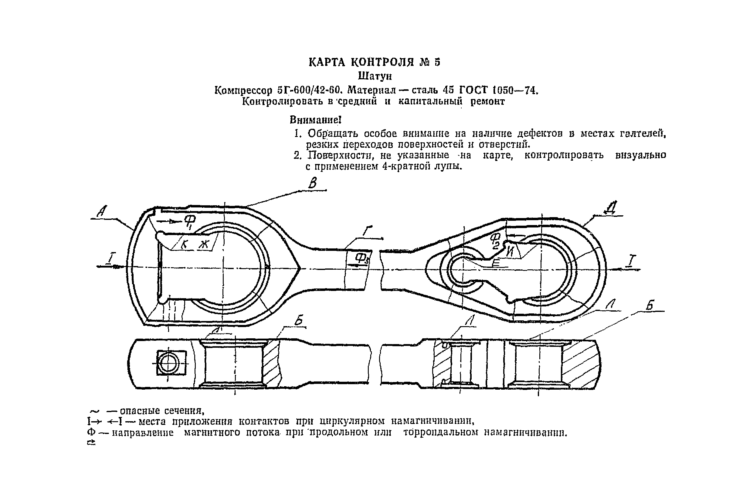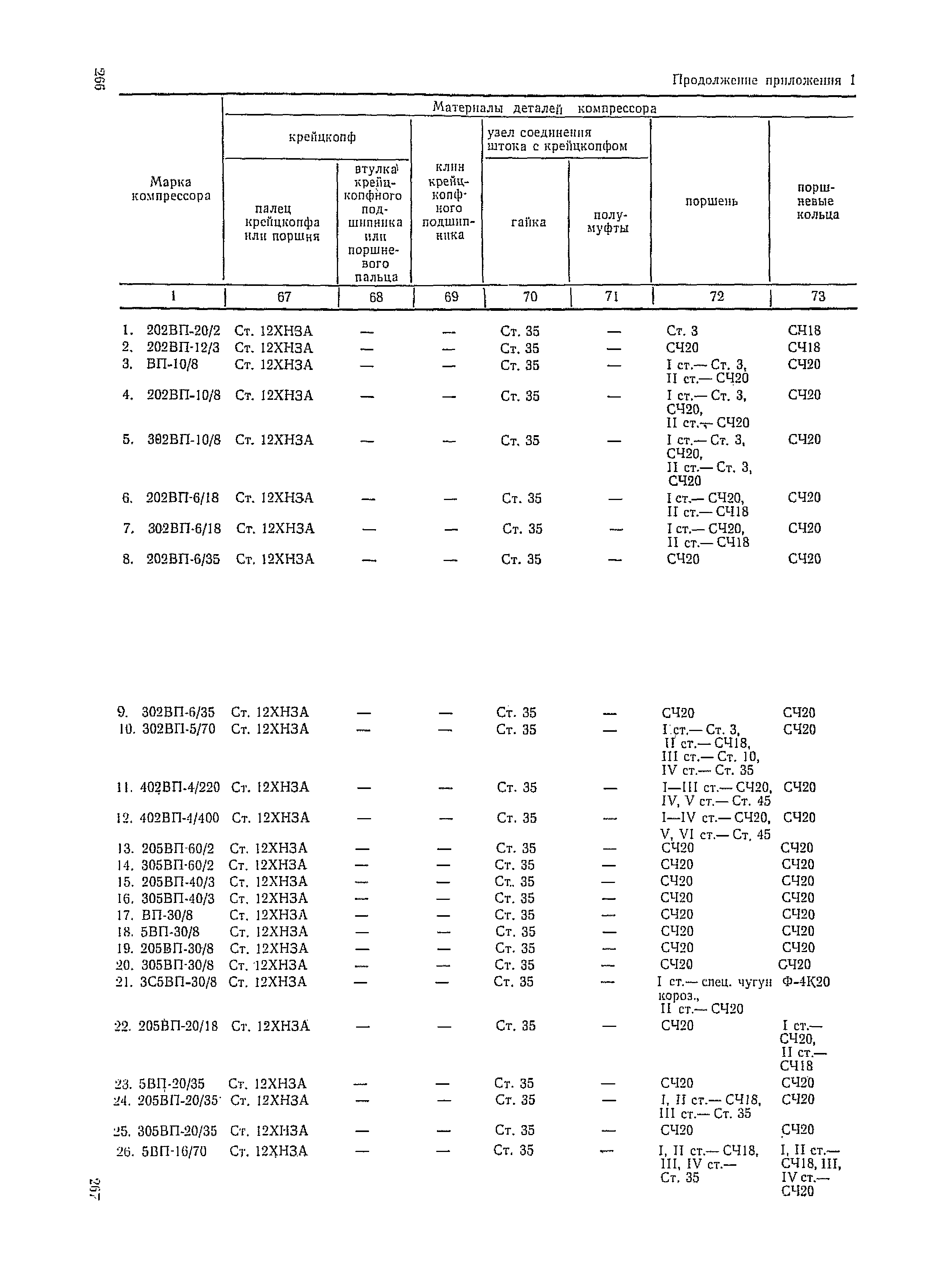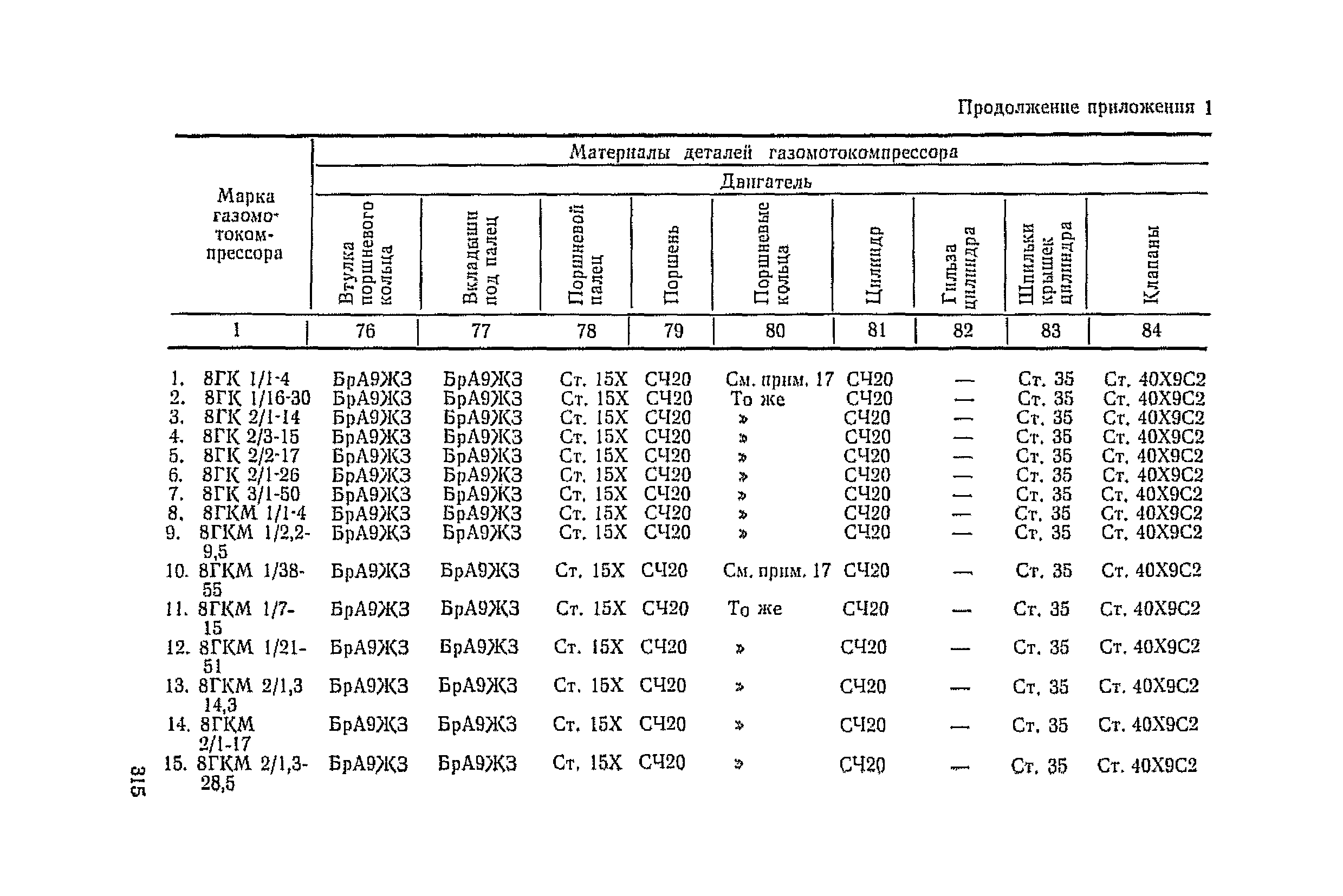 | | Нормативные ссылки: |  «Правила устройства и безопасной эксплуатации стационарных компрессорных установок, воздухопроводов и газопроводов» «Правила устройства и безопасной эксплуатации сосудов, работающих под давлением»  «Типовая инструкция по организации безопасного проведения огневых работ на взрывоопасных и взрывопожароопасных объектах»  ГОСТ 5632-72 «Стали высоколегированные и сплавы коррозионно-стойкие, жаростойкие и жаропрочные. Марки»  ГОСТ 15150-69 «Машины, приборы и другие технические изделия. Исполнения для различных климатических районов. Категории, условия эксплуатации, хранения и транспортирования в части воздействия климатических факторов внешней среды»  ГОСТ 12503-75 «Сталь. Методы ультразвукового контроля. Общие требования»  ГОСТ 8479-70 «Поковки из конструкционной углеродистой и легированной стали. Общие технические условия»  ГОСТ 4543-71 «Прокат из легированной конструкционной стали. Технические условия»  ГОСТ 481-80 «Паронит и прокладки из него. Технические условия»  ГОСТ 2789-73 «Шероховатость поверхности. Параметры и характеристики»  ГОСТ 14959-79 «Прокат из рессорно-пружинной углеродистой и легированной стали. Технические условия» Инструкция «Инструкция по выбору сосудов и аппаратов, работающих под давлением до 100 кгс/см2 и защите их от превышения давления»  ГОСТ 13489-79 «Герметики марок У-30М и УТ-31. Технические условия»  ГОСТ 21121-75 «Лазурь железная. Технические условия»  ГОСТ 9347-74 «Картон прокладочный и уплотнительные прокладки из него. Технические условия»  ГОСТ 12613-79 «Краны металлургические для раздевания слитков. Основные параметры»  ГОСТ 1320-74 «Баббиты оловянные и свинцовые. Технические условия»  ГОСТ 1861-73 «Масла компрессорные. Технические условия»  ГОСТ 20415-82 «Контроль неразрушающий. Методы акустические. Общие положения» ГОСТ 20799-75 «Масла индустриальные общего назначения. Технические условия» ГОСТ 21104-75 «Контроль неразрушающий. Феррозондовый метод»  ГОСТ 21743-76 «Масла авиационные. Технические условия»  ГОСТ 24289-80 «Контроль неразрушающий вихретоковый. Термины и определения»  ГОСТ 24507-80 «Контроль неразрушающий. Поковки из черных и цветных металлов. Методы ультразвуковой дефектоскопии» ГОСТ 3778-77 «Свинец. Технические условия» ГОСТ 40-80 «Гуанид Ф. Технические условия» ГОСТ 4832-80 «Чугун литейный. Технические условия» ГОСТ 5539-73 «Глет свинцовый. Технические условия» ГОСТ 613-79 «Бронзы оловянные литейные. Марки»  ГОСТ 6411-76 «Масла цилиндровые тяжелые. Технические условия» ГОСТ 6990-75 «Масло касторовое сульфированное. Технические условия» ГОСТ 8295-73 «Графит смазочный. Технические условия»  ГОСТ 8581-78 «Масла моторные для автотракторных дизелей. Технические условия» ГОСТ 8981-78 «Эфиры этиловый и нормальный бутиловый уксусной кислоты технические. Технические условия»  ГОСТ 9243-75 «Масло компрессорное из сернистых нефтей КС-19. Технические условия»  ГОСТ 9389-75 «Проволока стальная углеродистая пружинная. Технические условия» ГОСТ 9515-81 «Кольца поршневые металлические поршневых компрессоров. Технические условия»  ГОСТ 982-80 «Масла трансформаторные. Технические условия» ГОСТ 1050-74 «Сталь углеродистая качественная конструкционная. Технические условия» ГОСТ 3443-77 «Отливки из чугуна с различной формой графита. Методы определения структуры» ГОСТ 23702-79 «Контроль неразрушающий. Преобразователи ультразвуковые. Основные параметры и метод