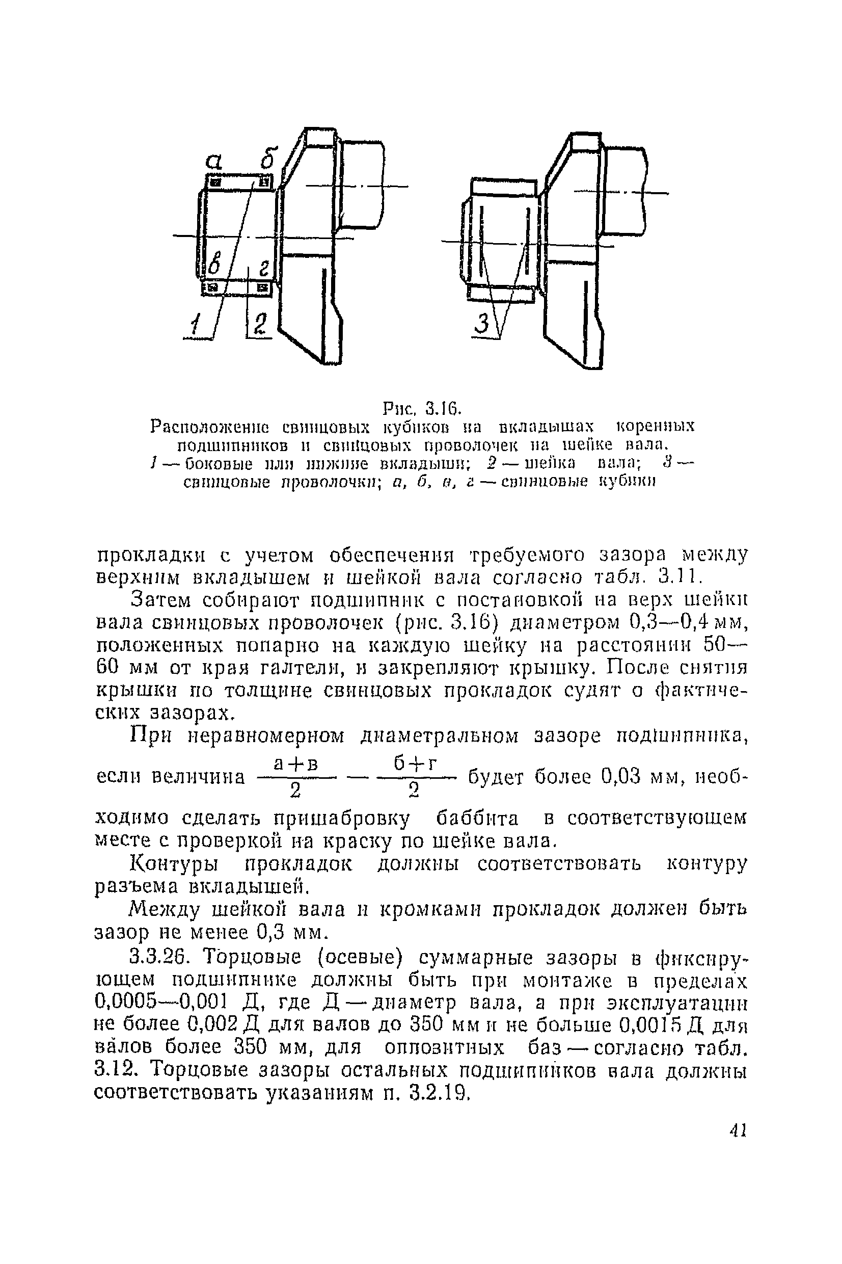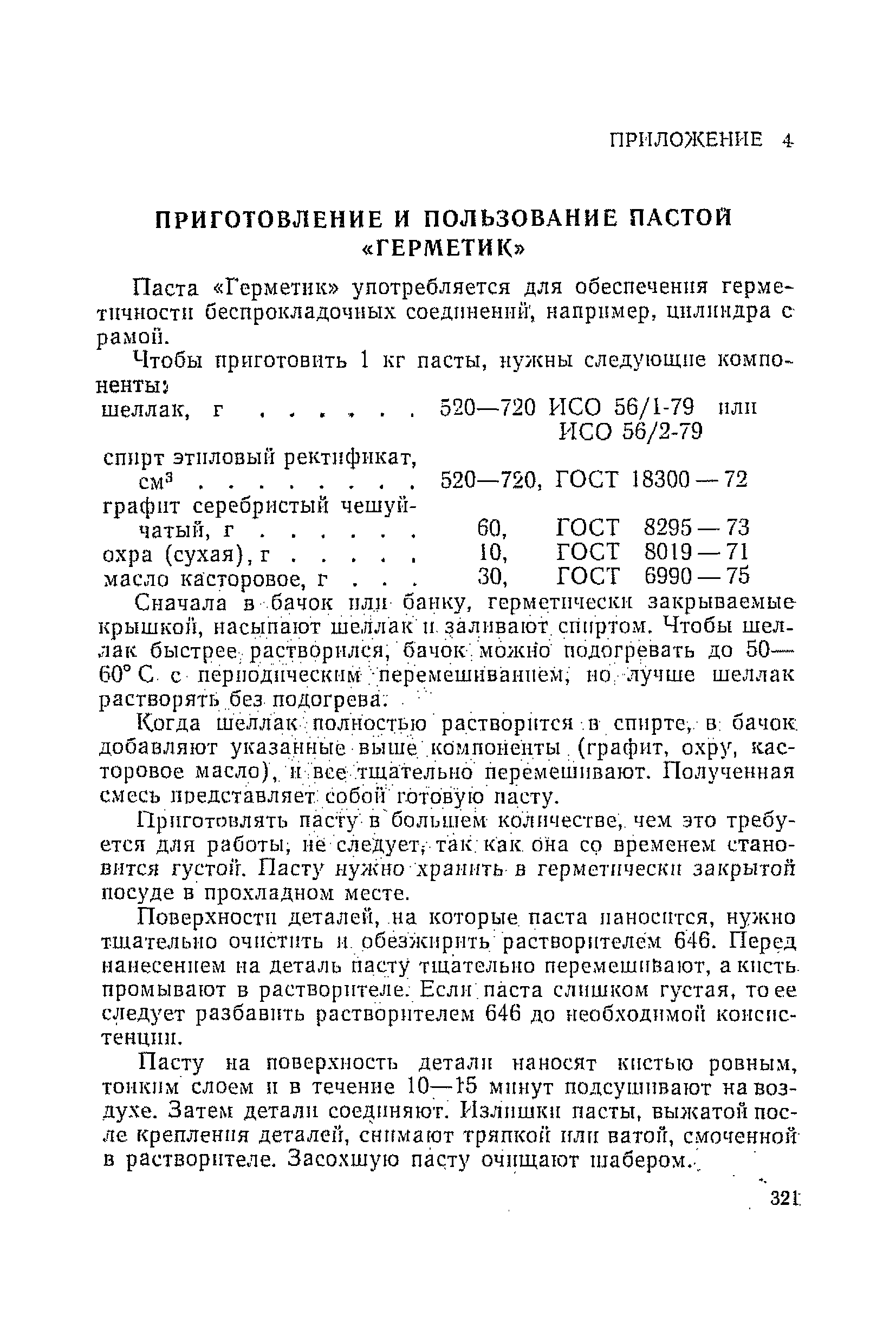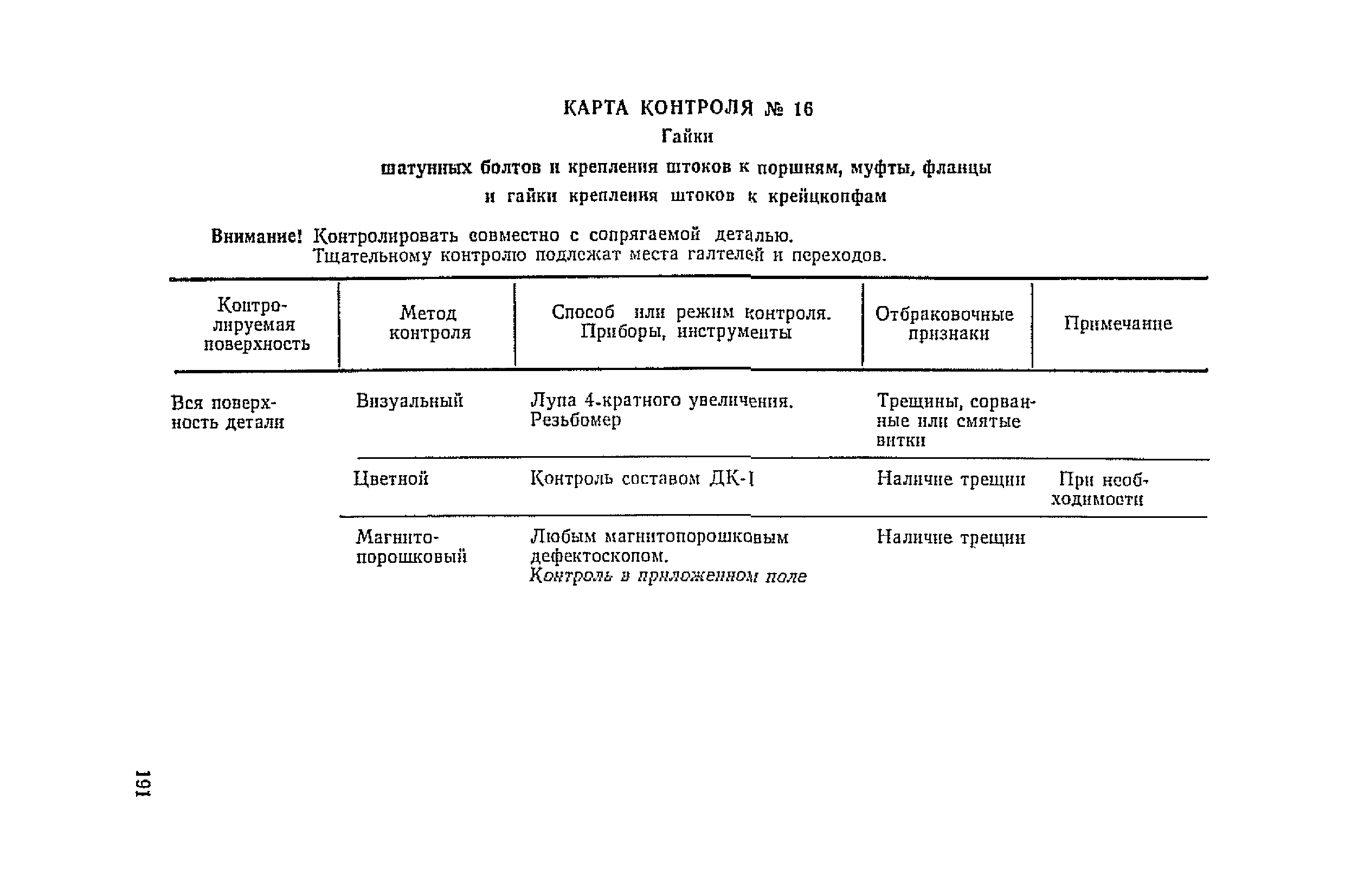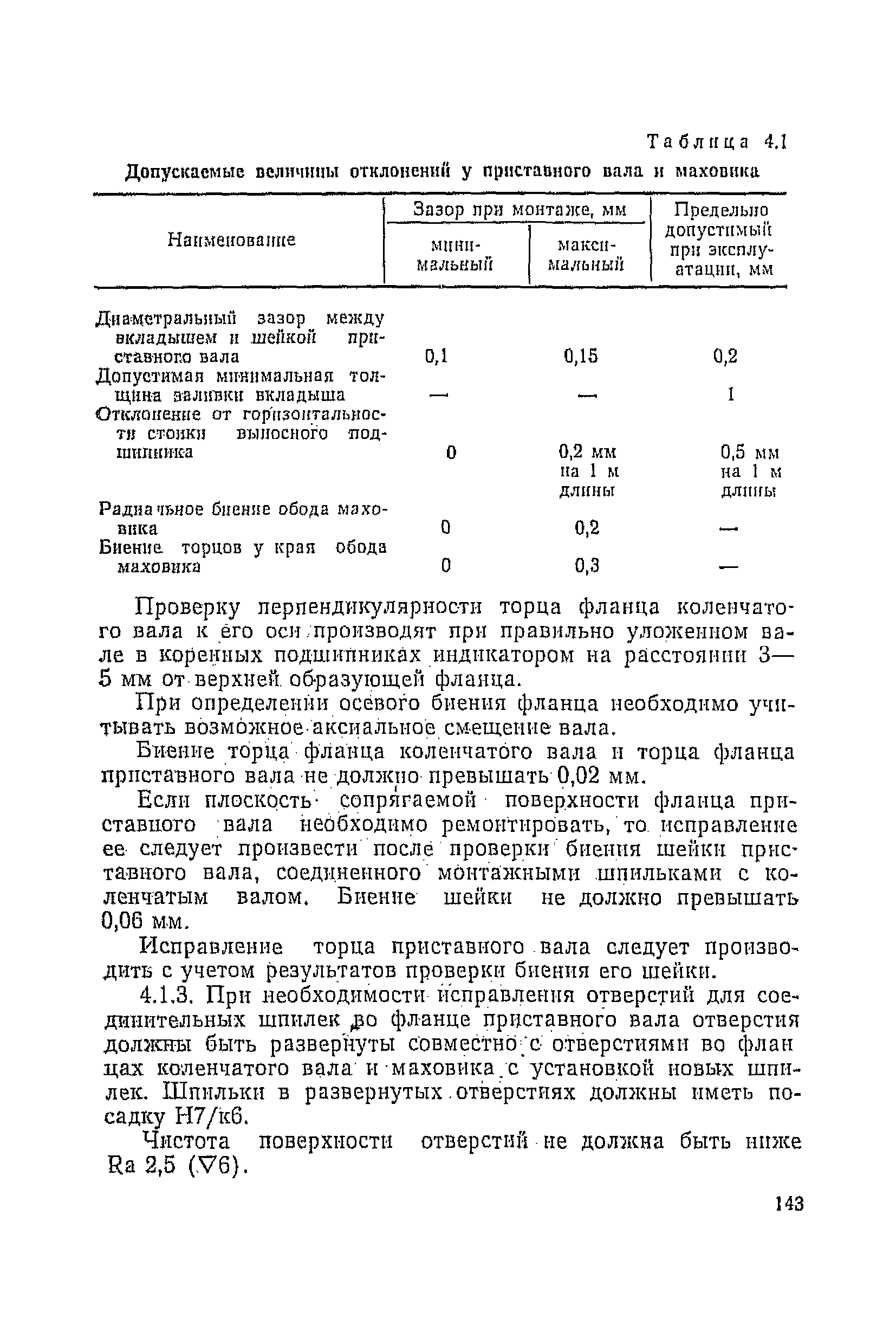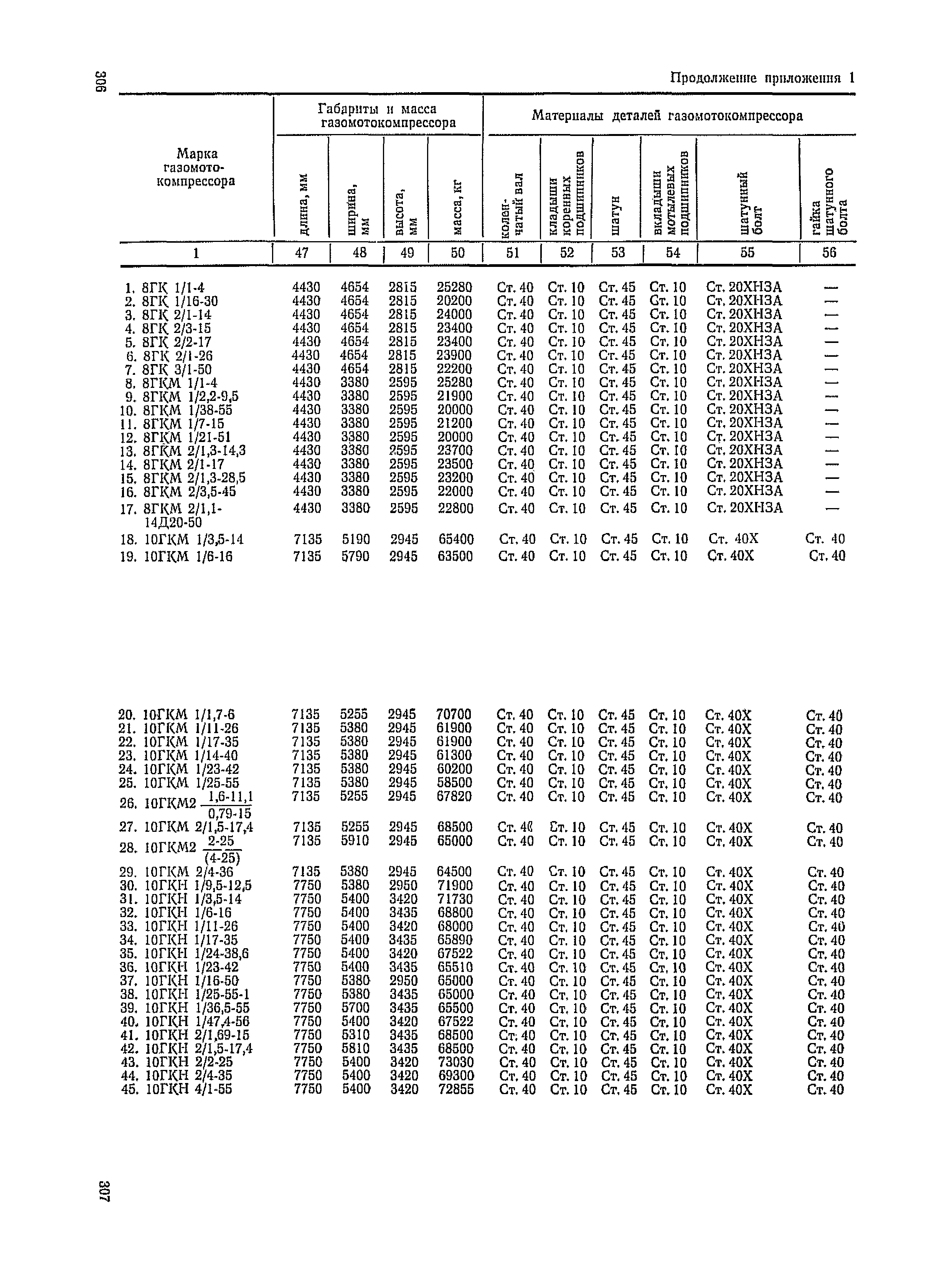 Общие технические условия по ремонту поршневых компрессоров| Статус: | справочные материалы, мп, тпр | | Название рус.: | Общие технические условия по ремонту поршневых компрессоров | | Дата добавления в базу: | 01.02.2020 | | Дата актуализации: | 01.01.2021 | | Область применения: | Технические условия являются нормативным документом для предприятий Миннефтехимпрома СССР и предназначены для работников, занятых эксплуатацией и ремонтом поршневых компрессоров. Наряду с нормативно-технической документацией заводов изготовителей и проектных организаций, технические условия являются основным документом при составлении предприятиями инструкций по эксплуатации и ремонту поршневых компрессоров. Документ устанавливает основные требования при ремонте поршневых компрессоров и распространяется на газовые, воздушные и холодильные стационарные поршневые компрессоры, выполненные на оппозитных, горизонтальных, вертикальных, прямоугольных, V и W-образных базах с конечным давлением до 50 МПа (500 кгс/см2) | | Оглавление: | Предисловие 1. Введение 2. Основные положения по эксплуатации поршневых компрессоров 3. Основные положения по ревизии, отбраковке и ремонту компрессоров 3.1. Фундамент 3.2. Рама 3.3. Коленчатый (кривошипный) вал. Подшипники вала 3.4. Выносной подшипник. Маховик 3.5. Цилиндры и цилиндровые втулки. Крышки цилиндров 3.6. Шатуны. Подшипники шатуна 3.7. Шатунные болты 3.8. Крейцкопф и детали его соединения со штоком 3.9. Штоки. Поршни и поршневые кольца 3.10. Сальниковые уплотнения 3.11. Клапаны 3.12. Система смазки 3.13. Система охлаждения 3.14. Предохранительные устройства 3.15. Сосуды, аппараты и трубопроводы компрессорного отделения (цеха, установки) 3.16. Привод компрессора 3.17. Обкатка компрессора и приемка его в эксплуатацию после капитального ремонта 3.18. Документация ремонта 4. Основные положения по ремонту газомоторных компрессоров 4.1. Приставной вал газомотокомпрессора 10ГК и его подшипник 4.2. Цилиндры и крышки газовых двигателей газомотокомпрессоров 4.3. Шатуны силовой части 4.4. Поршни газового двигателя 4.5. Распределительный вал газомотокомпрессора 8ГК, вспомогательный вал газомотокомпрессора 10ГК и их передаточный механизм 4.6, Воздухораспределители, пусковые и декомпрессионные клапаны 4.7. Топливная система 4.8. Регулятор числа оборотов 4.9. Система зажигания 5. Контроль деталей компрессоров неразрушающими методами Приложение 1. Основные технические данные компрессоров Приложение 2. Акт готовности фундамента к установке оборудования Приложение 3. Акт проверки правильности установки оборудования на фундаменте Приложение 4. Приготовление и пользование пастой "Герметик" Приложение 5. Приготовление и пользование герметиком У-30М Приложение 6. Формуляр контроля неразрушающими методами Приложение 7. Образец формуляра ремонта компрессора АДК-73/40 Список использованных источников | | Разработан: | ВНИКТИнефтехимоборудование