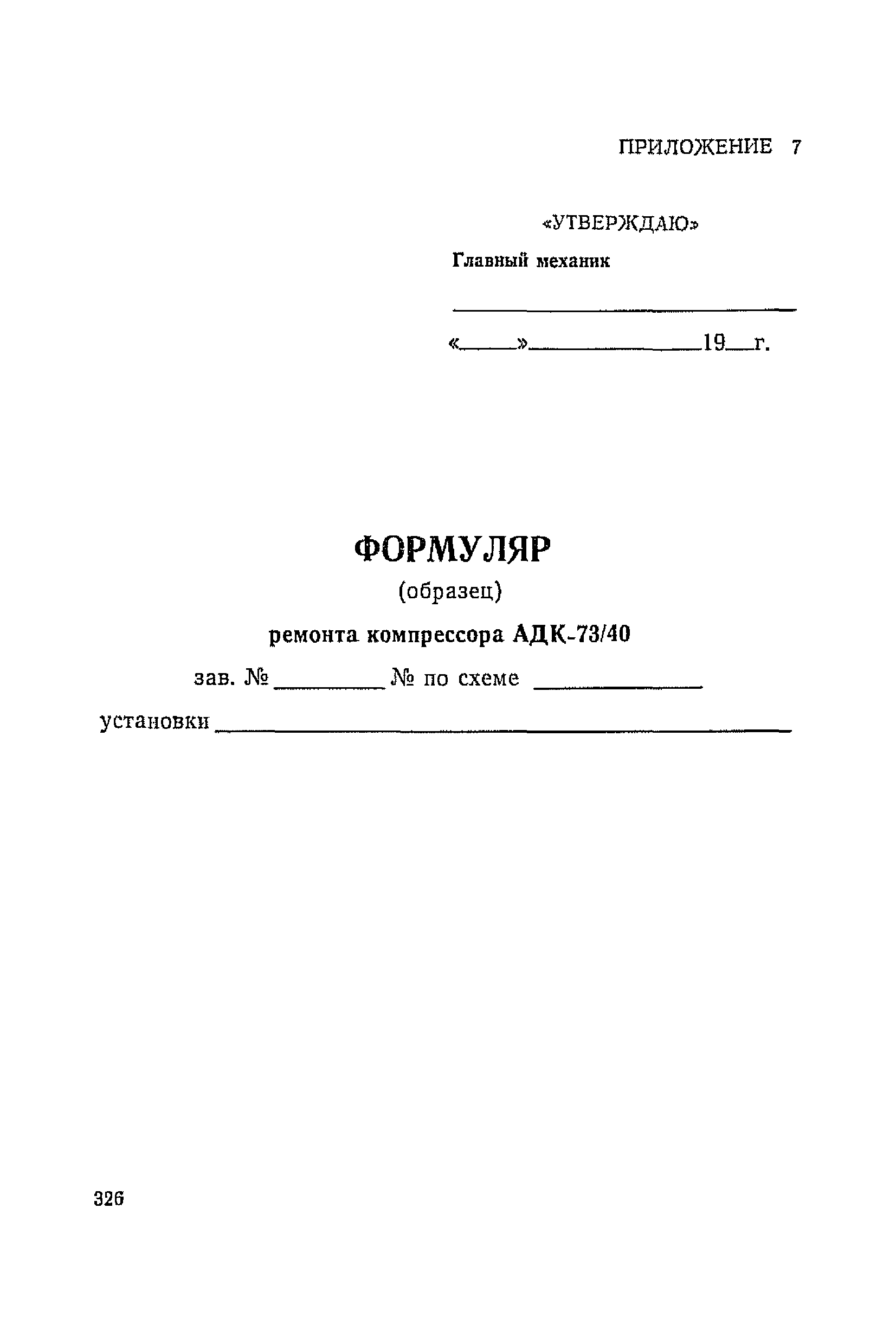 | | Заменяет собой: | - «Руководящие указания по эксплуатации, ревизии, отбраковке и ремонту поршневых компрессоров с давлением до 100 кгс/см2»