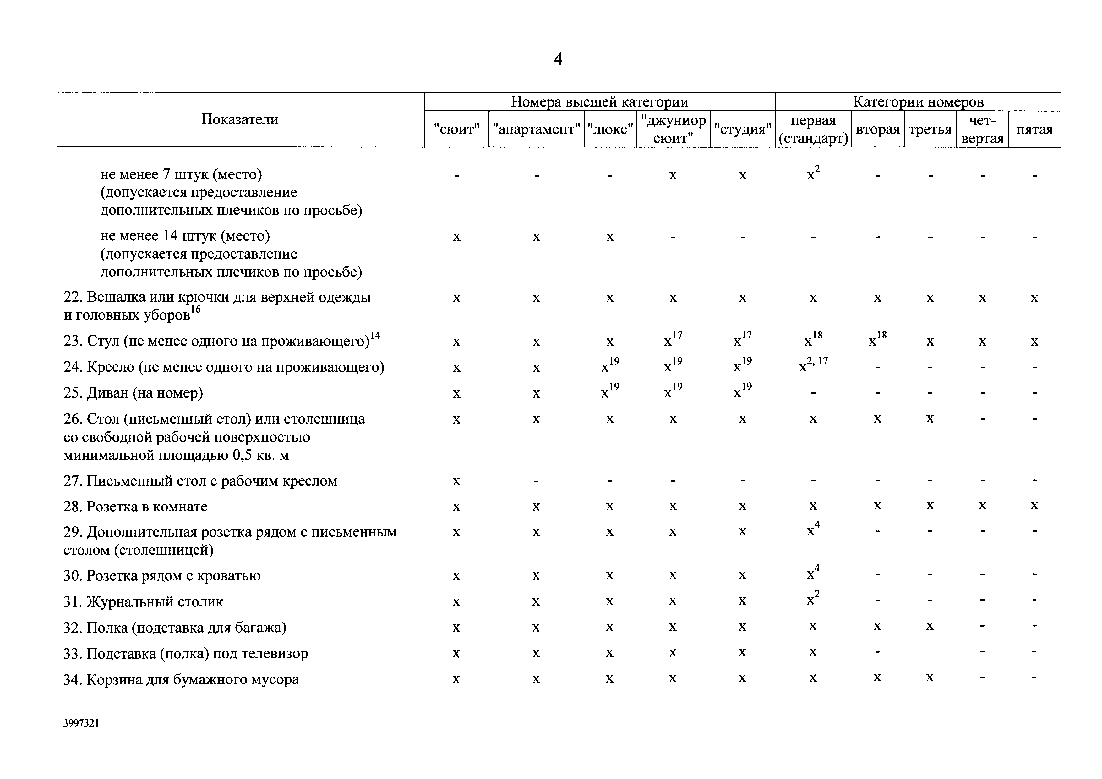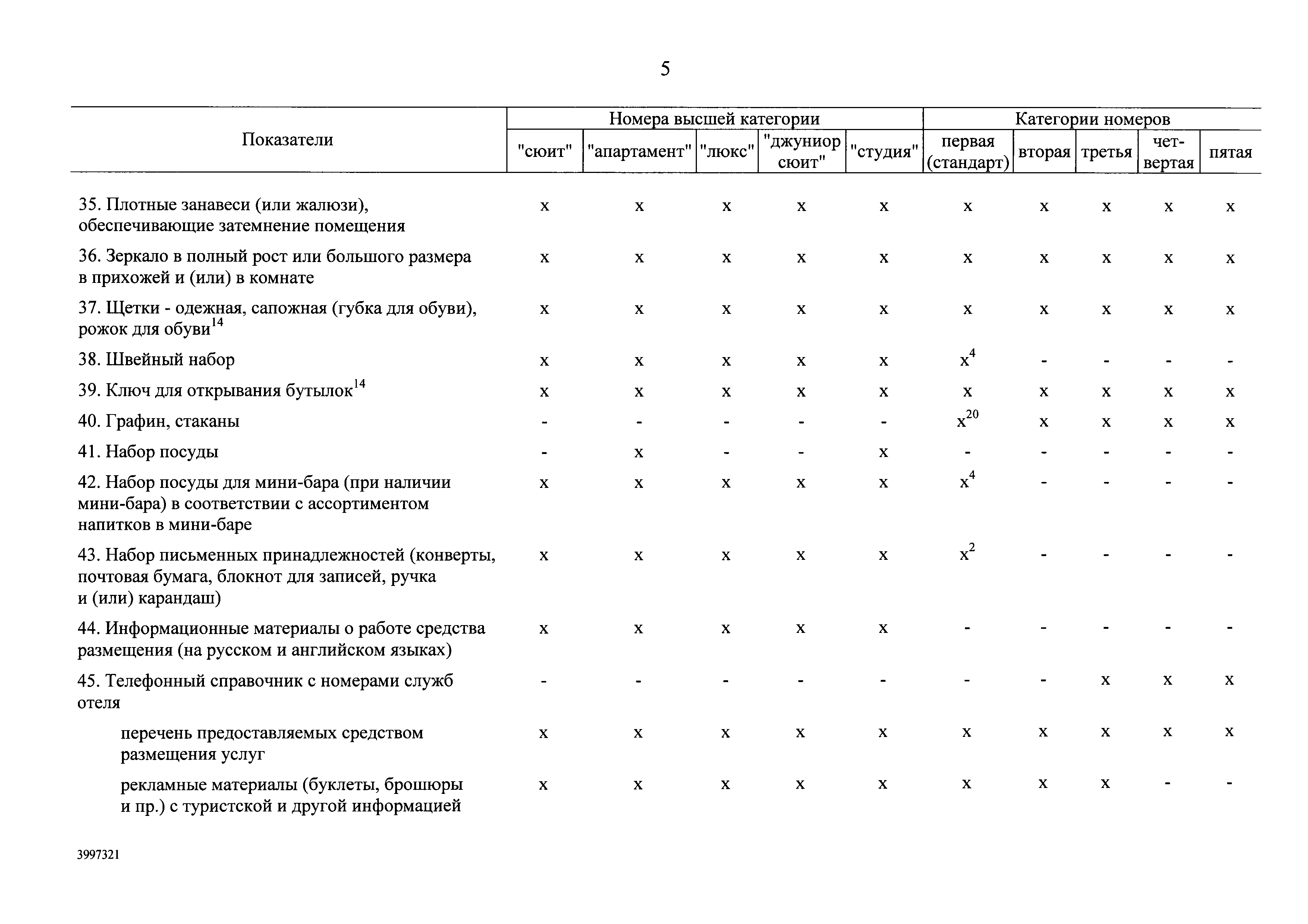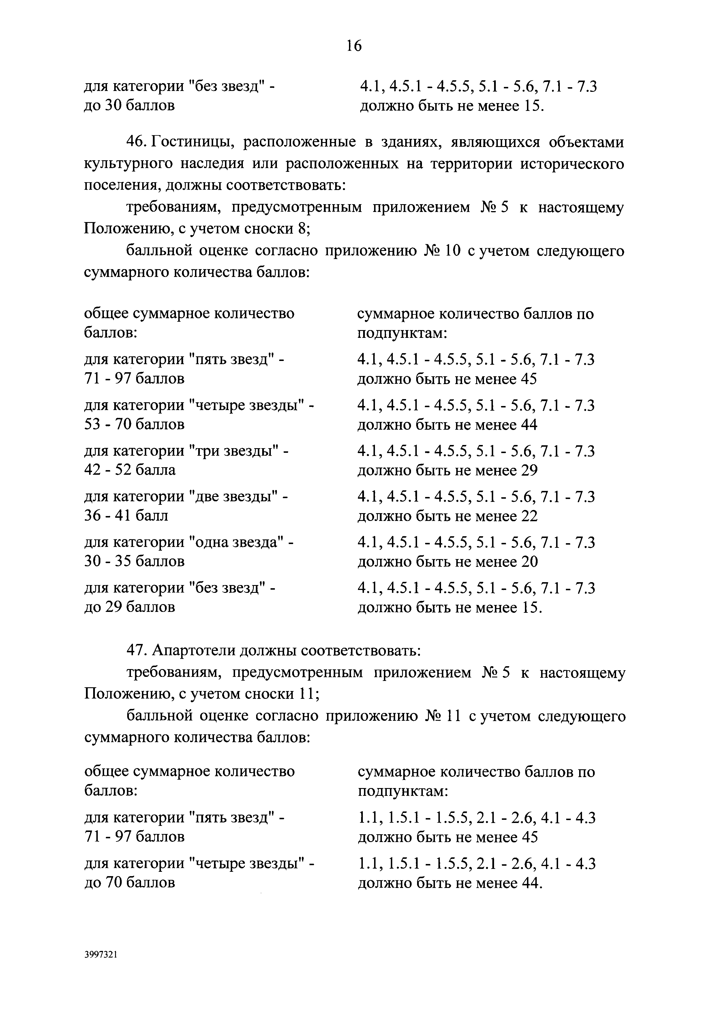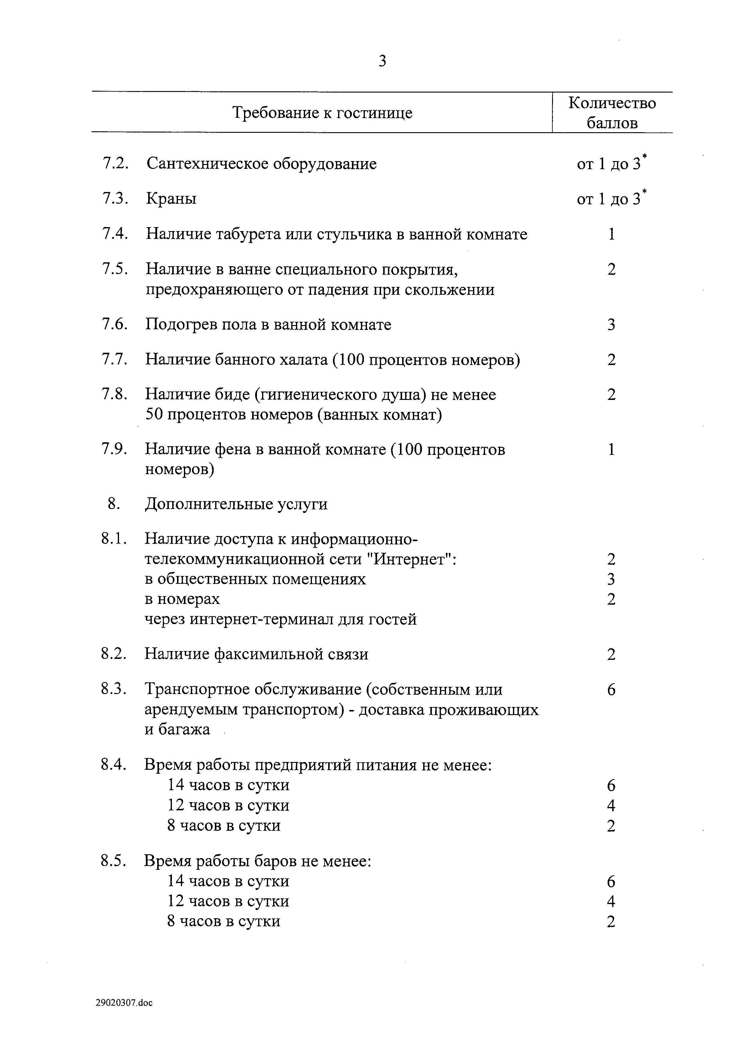 | Оглавление: | I. Общие положения II. Виды гостиниц III. Участники классификации гостиниц IV. Порядок классификации гостиниц Приложение № 1. Форма свидетельства о присвоении гостинице определенной категории Приложение № 2. Категории номеров гостиниц Приложение № 3. Требования к номерам гостиниц Приложение № 4. Критерии балльной оценки номеров гостиниц Приложение № 5. Требования к гостиницам Приложение № 6. Критерии балльной оценки персонала гостиниц Приложение № 7. Критерии балльной оценки гостиниц с количеством номеров более 50 Приложение № 8. Критерии балльной оценки гостиниц с количеством номеров 50 и менее Приложение № 9. Критерии балльной оценки курортных отелей Приложение № 10. Критерии балльной оценки гостиниц, находящихся в зданиях, являющихся объектами культурного наследия или находящихся на территории исторического поселения Приложение № 11. Критерии балльной оценки апартотелей Приложение № 12. Критерии балльной оценки домов отдыха, пансионатов и других аналогичных средств размещения |