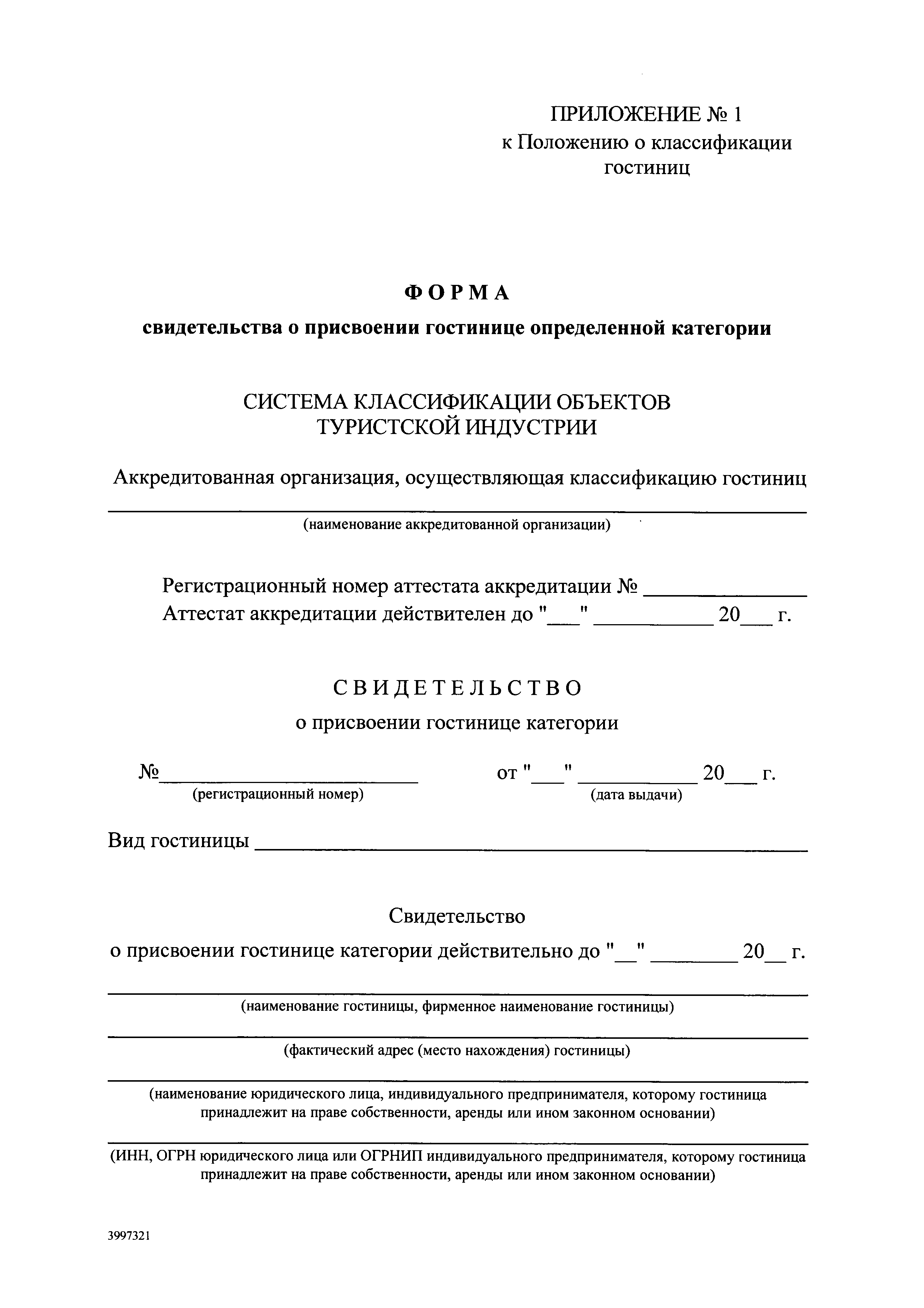 форму свидетельства о присвоении гостинице определенной категории;