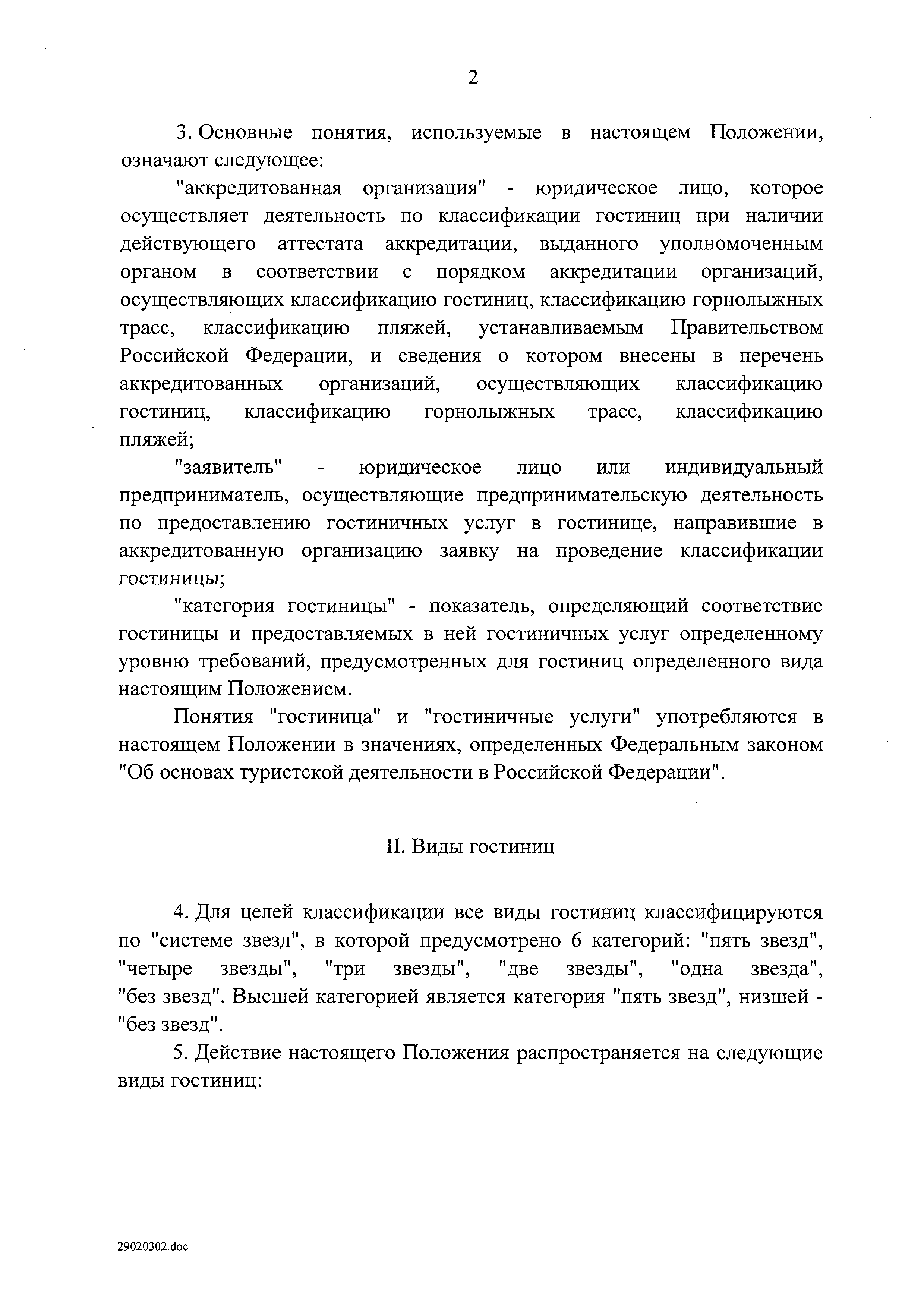| Название рус.: | Положение о классификации гостиниц |