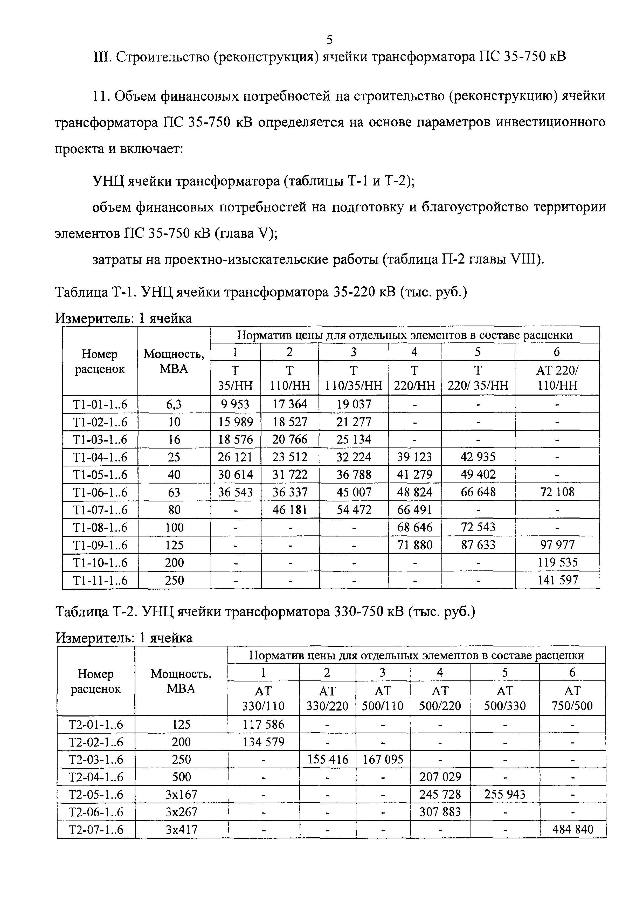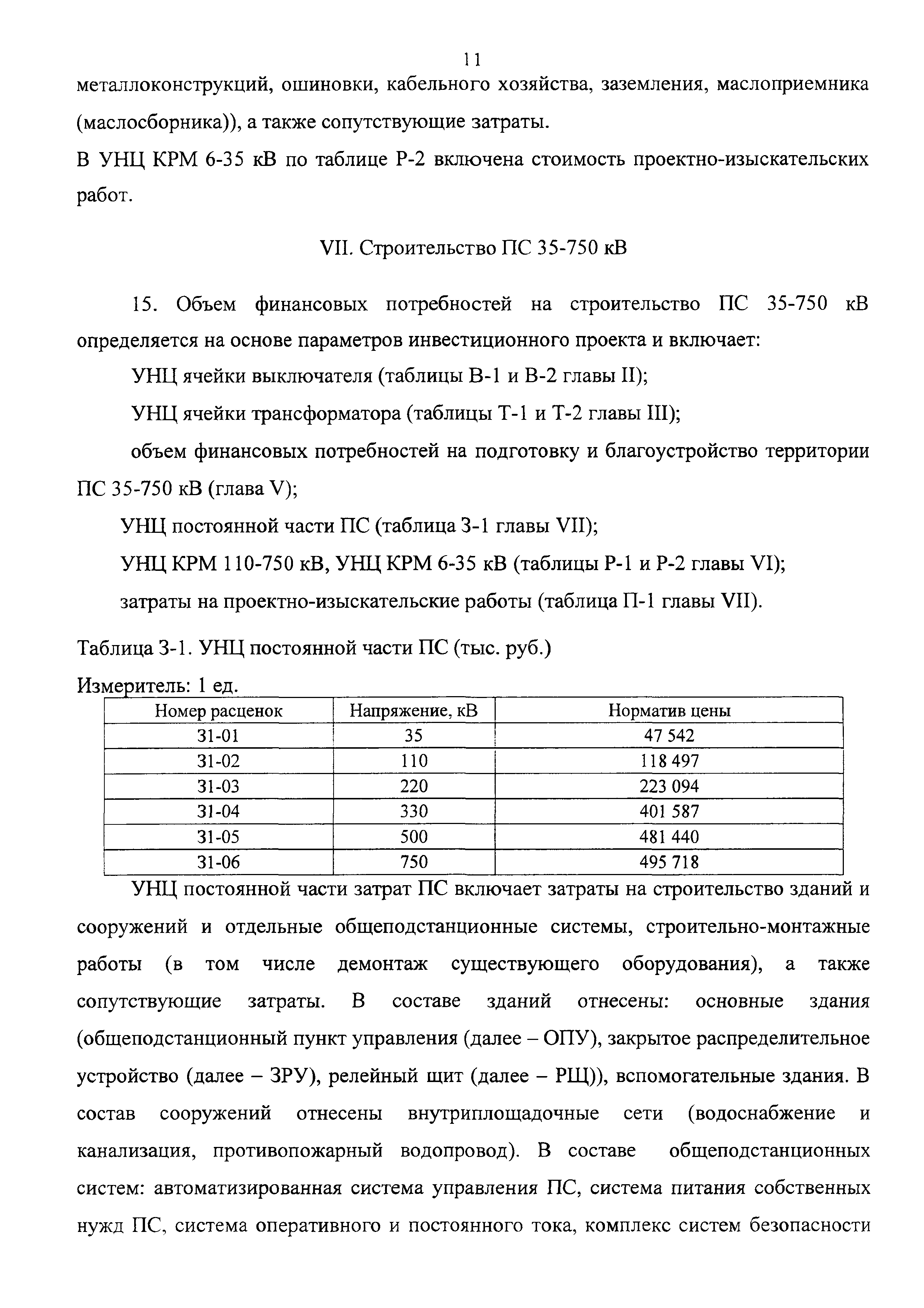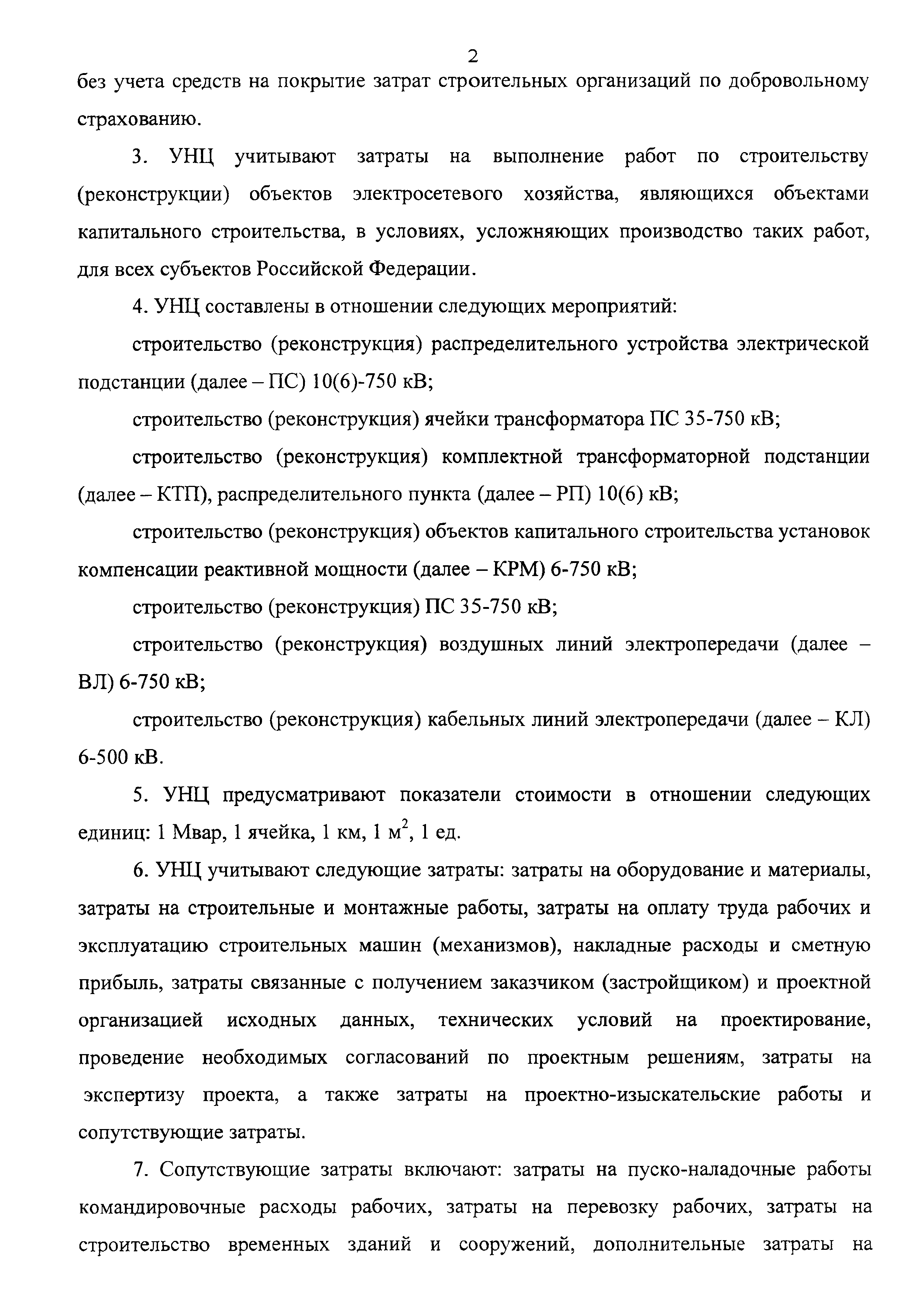 | Оглавление: | I. Общие положения II. Строительство (реконструкция) распределительного устройства ПС 10(6) - 750 кВ III. Строительство (реконструкция) ячейки трансформатора ПС 35 - 750 кВ IV. Строительство (реконструкция) КТП, РП 10(6) кВ V. Подготовка и благоустройство территории ПС 35 - 750 кВ VI. Строительство (реконструкция) КРМ 6 - 750 кВ VII. Строительство ПС 35 - 750 кВ VIII. Реконструкция ПС 35 - 750 кВ IХ. Строительство (реконструкция) ВЛ 6 - 750 кВ Х. Строительство (реконструкция) КЛ 6 - 500 кВ Приложение 1. Таблица Л-1. УНЦ ВЛ 10(6) - 750 кВ в одноцепном исполнении (тыс. руб.) Приложение 2. Таблица Л-2. УНЦ ВЛ 10(6) - 750 кВ в двухцепном исполнении (тыс. руб.) |