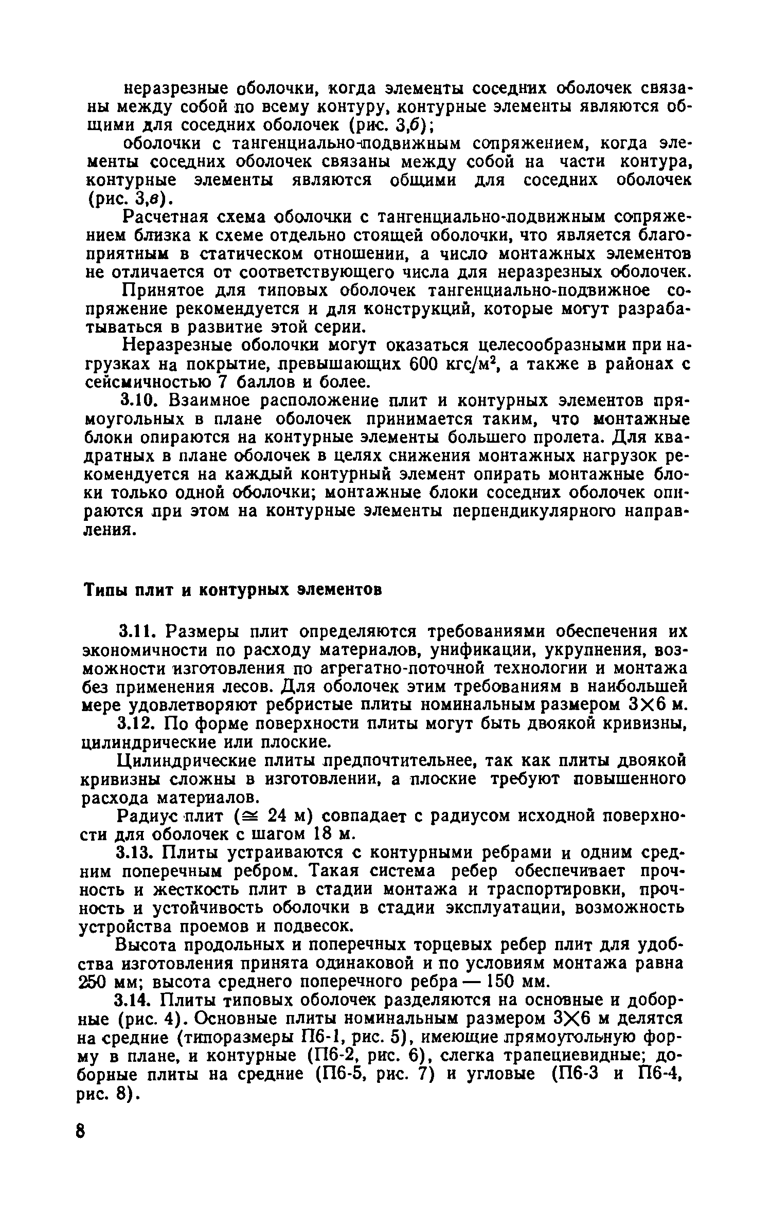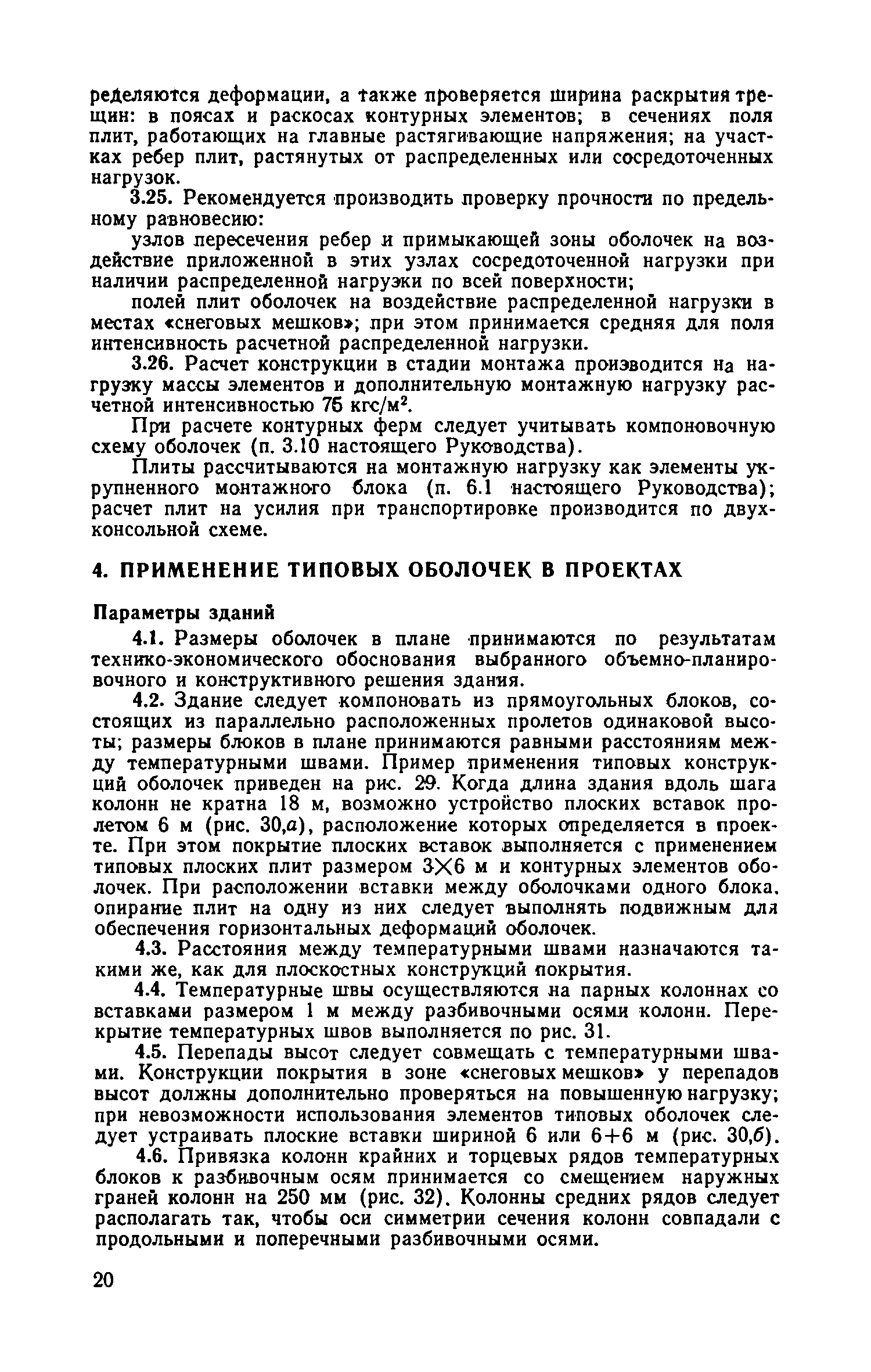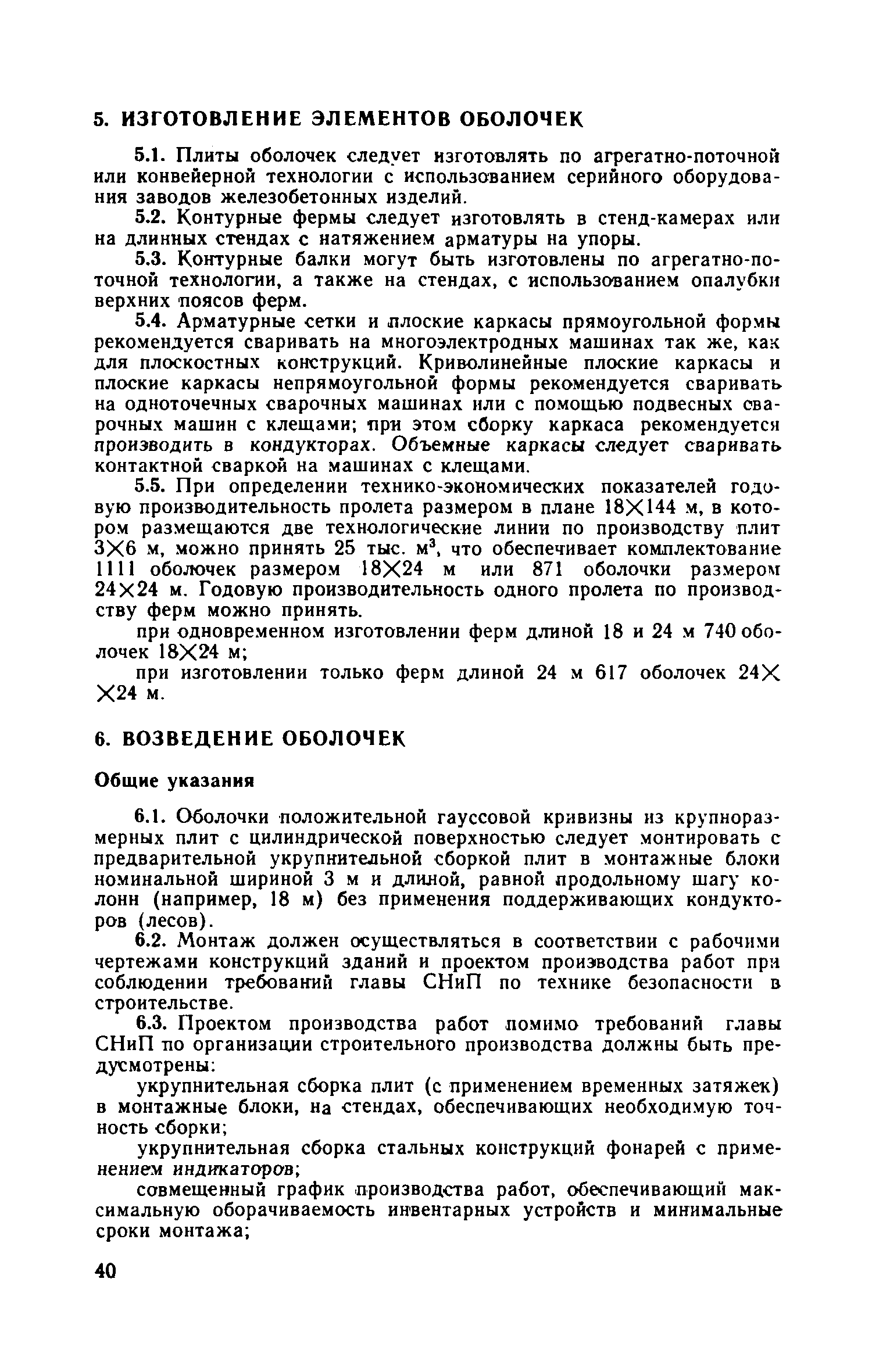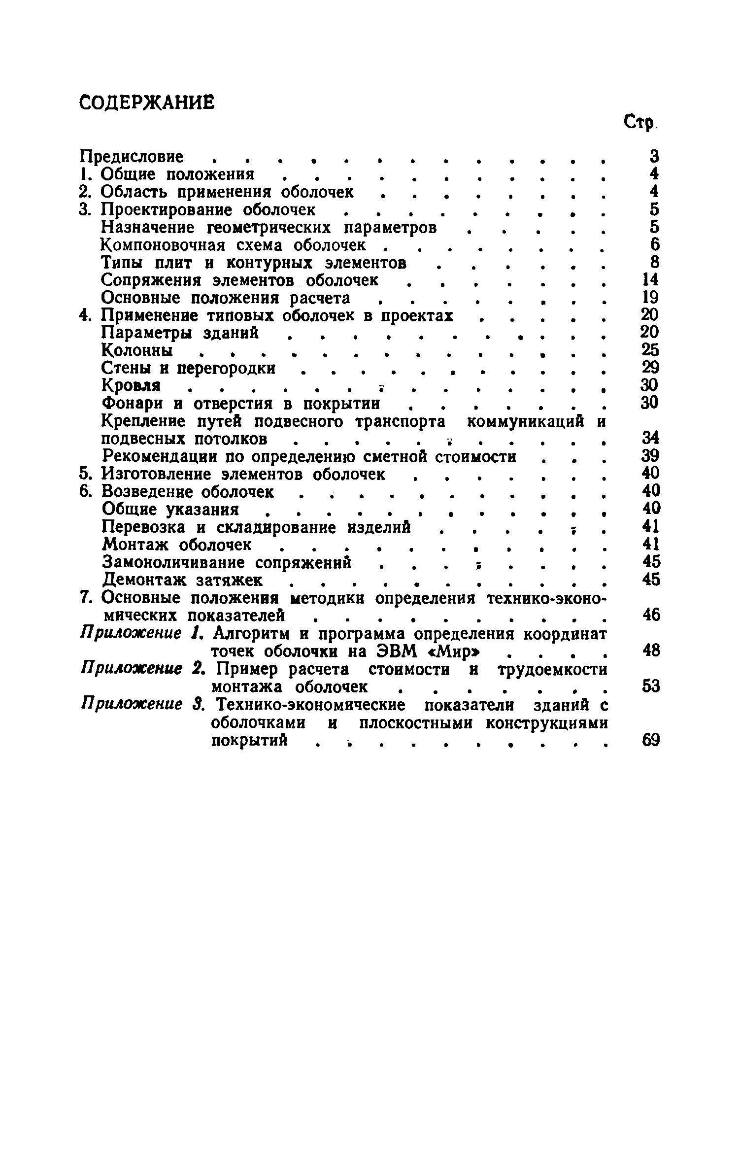 | Оглавление: | Предисловие 1. Общие положения 2. Область применения оболочек 3. Проектирование оболочек Назначение геометрических параметров Компоновочная схема оболочек Типы плит и контурных элементов Сопряжения элементов оболочек Основные положения расчета 4. Применение типовых оболочек в проектах Параметры зданий Колонны Стены в перегородки Кровля Фонари и отверстия в покрытии Крепление путей подвесного транспорта коммуникаций и подвесных потолков Рекомендации по определению сметной стоимости 5. Изготовление элементов оболочек 6. Возведение оболочек Общие указания Перевозка и складирование изделий Монтаж оболочек Замоноличивание сопряжений Демонтаж затяжек 7. Основные положения методики определения технико-экономических показателей Приложение 1. Алгоритм и программа определения координат точек оболочки на ЭВМ «Мир» Приложение 2. Пример расчета стоимости и трудоемкости монтажа оболочек Приложение 3. Технико-экономические показатели зданий с оболочками и плоскостными конструкциями покрытий |