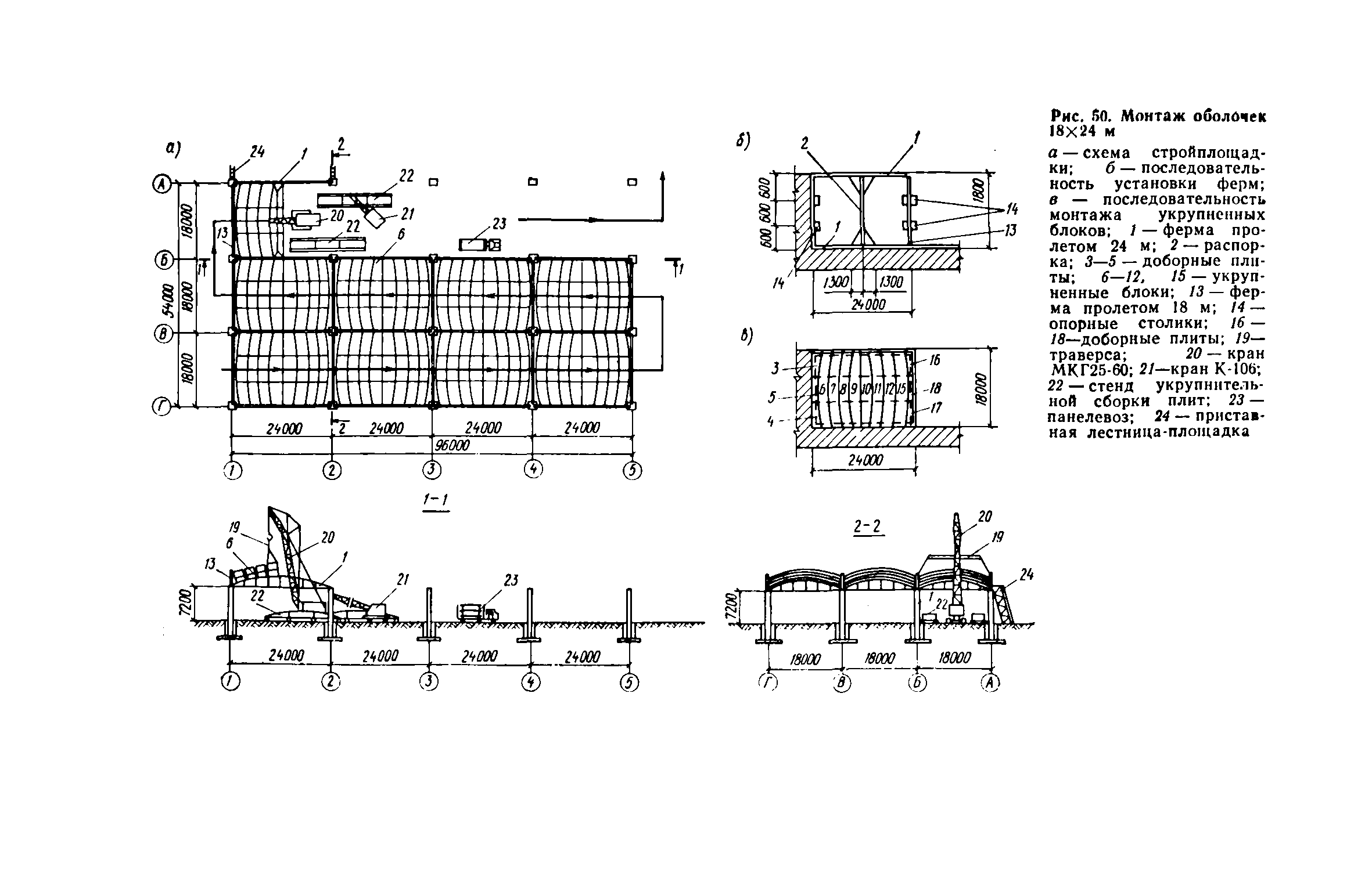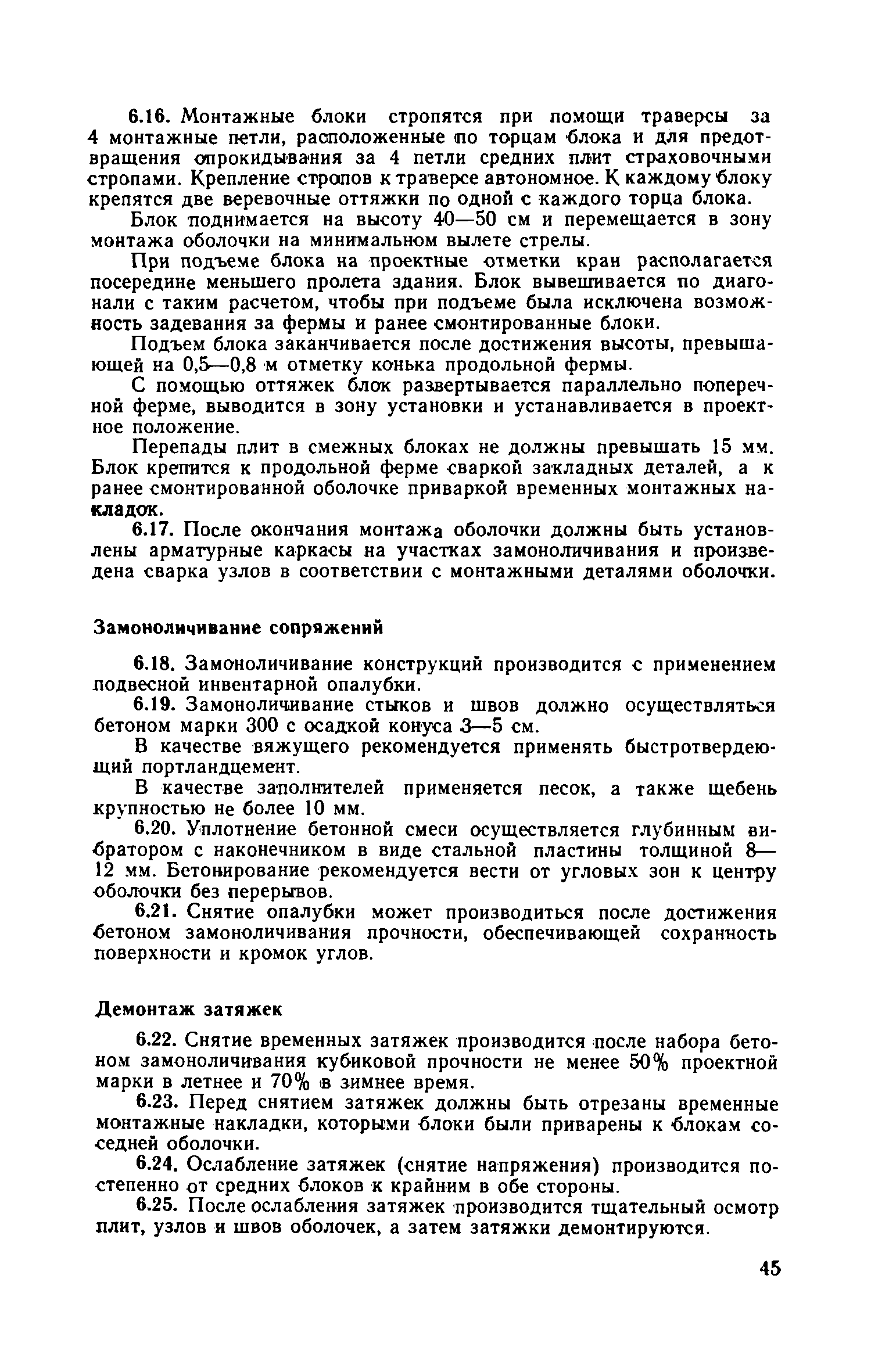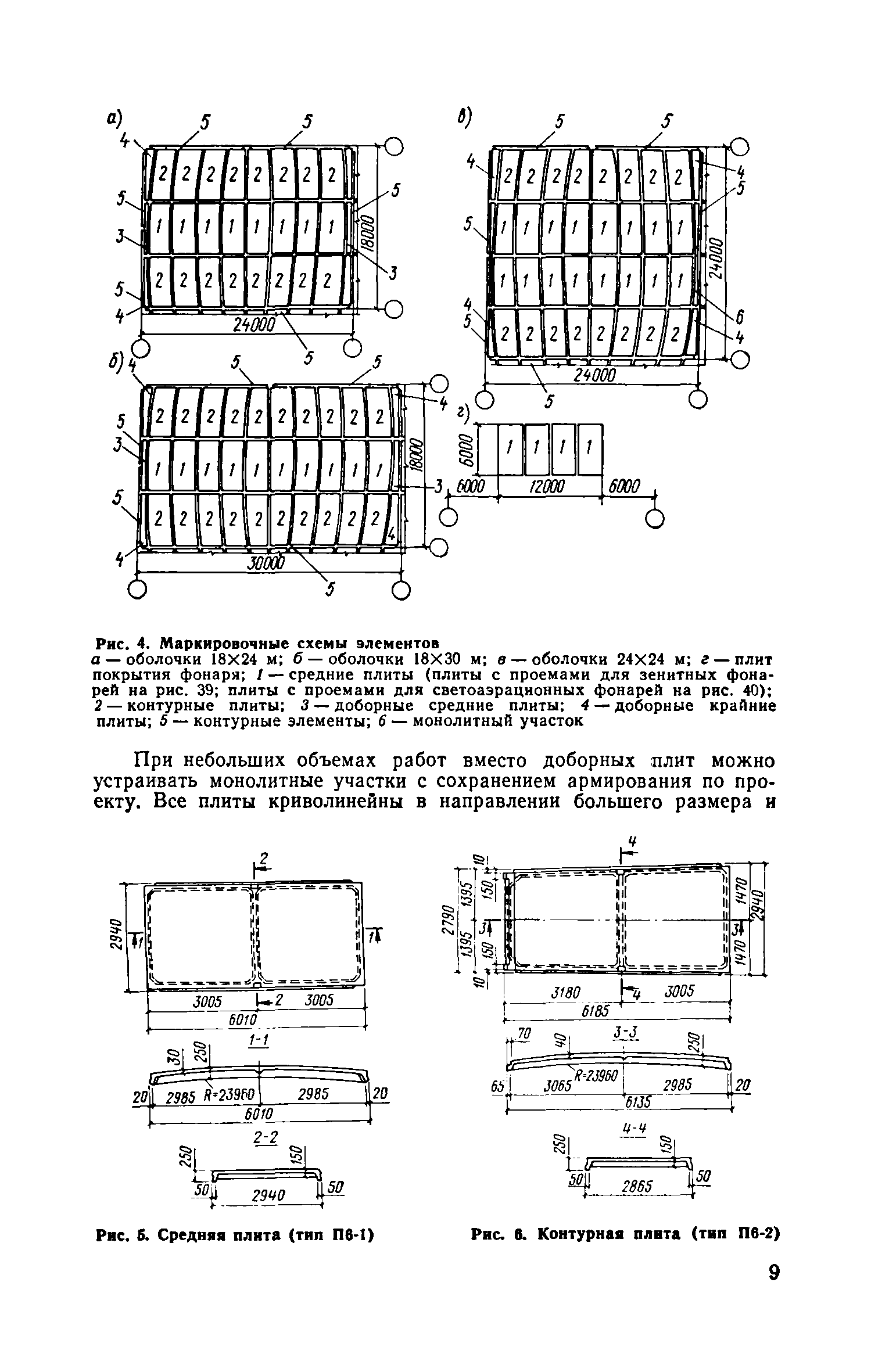 | Оглавление: | Предисловие 1. Общие положения 2. Область применения оболочек 3. Проектирование оболочек Назначение геометрических параметров Компоновочная схема оболочек Типы плит и контурных элементов Сопряжения элементов оболочек Основные положения расчета 4. Применение типовых оболочек в проектах Параметры зданий Колонны Стены в перегородки Кровля Фонари и отверстия в покрытии Крепление путей подвесного транспорта коммуникаций и подвесных потолков Рекомендации по определению сметной стоимости 5. Изготовление элементов оболочек 6. Возведение оболочек Общие указания Перевозка и складирование изделий Монтаж оболочек Замоноличивание сопряжений Демонтаж затяжек 7. Основные положения методики определения технико-экономических показателей Приложение 1. Алгоритм и программа определения координат точек оболочки на ЭВМ «Мир» Приложение 2. Пример расчета стоимости и трудоемкости монтажа оболочек Приложение 3. Технико-экономические показатели зданий с оболочками и плоскостными конструкциями покрытий |