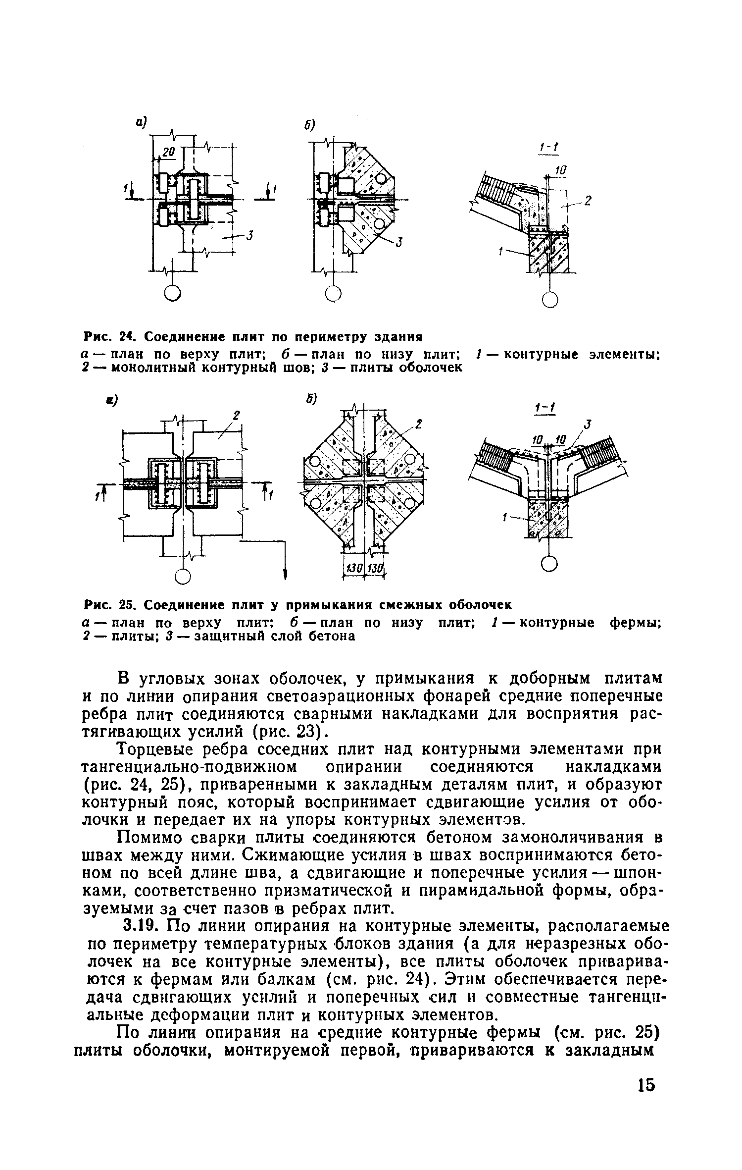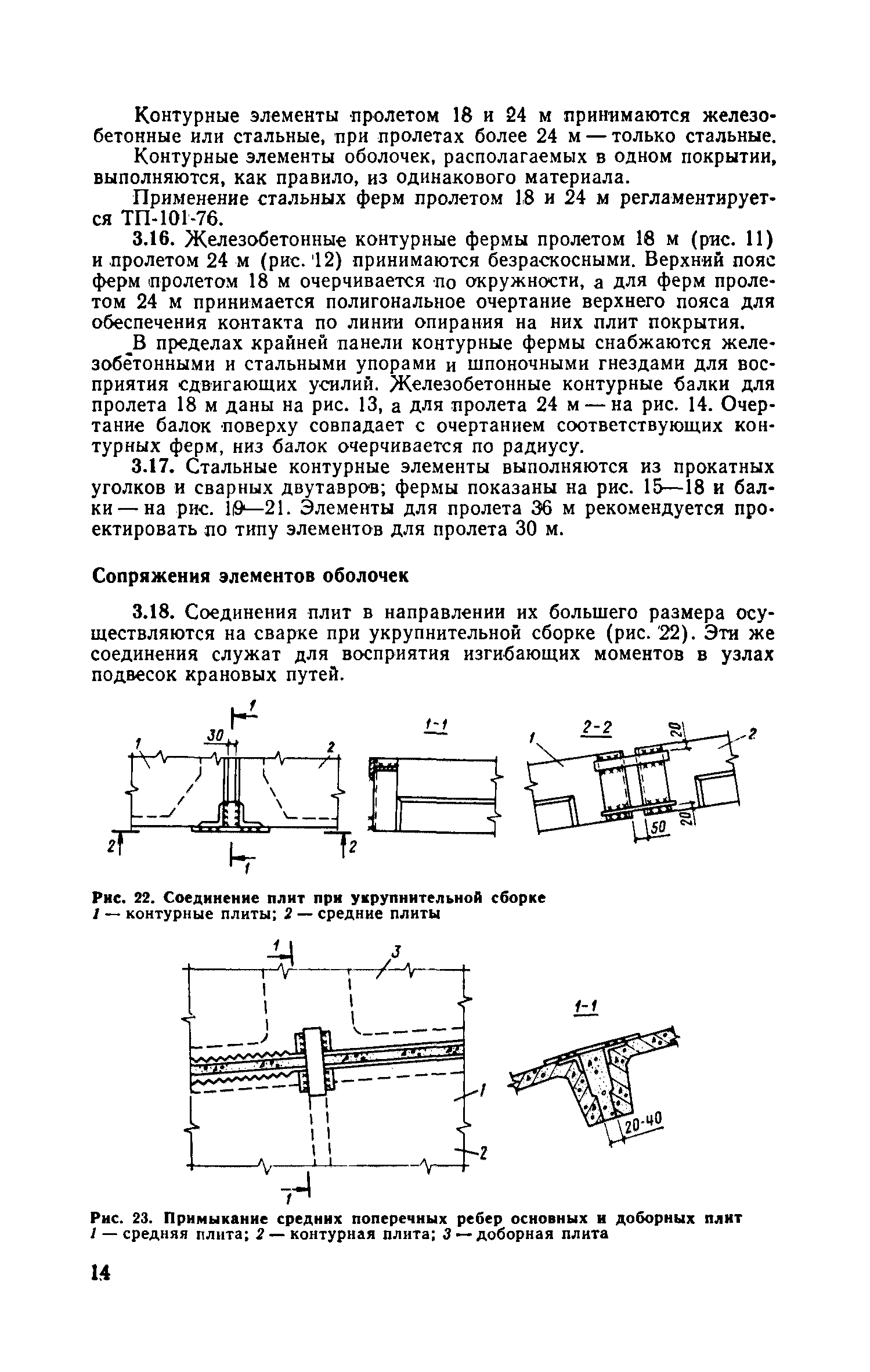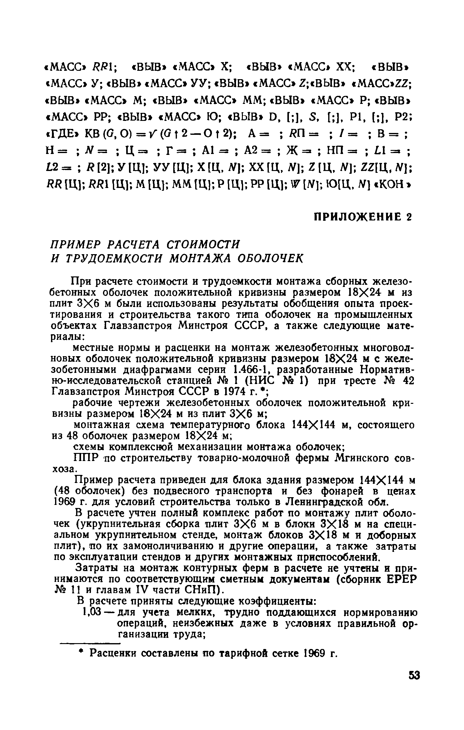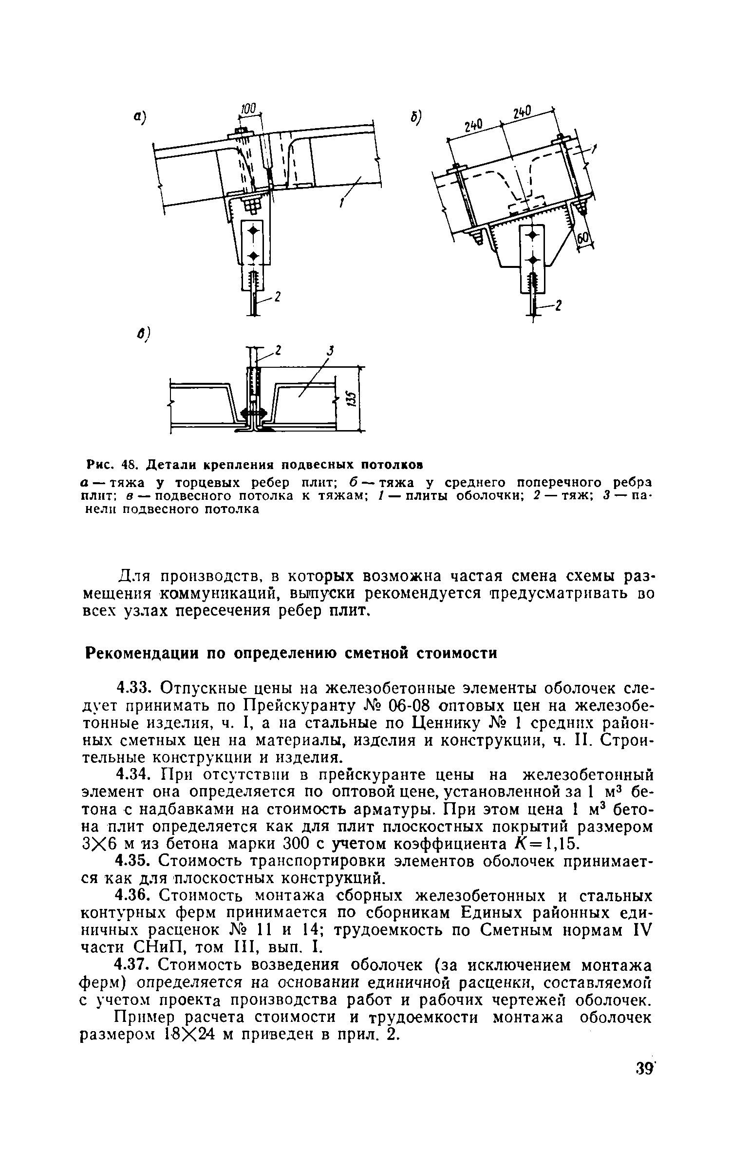 | Оглавление: | Предисловие 1. Общие положения 2. Область применения оболочек 3. Проектирование оболочек Назначение геометрических параметров Компоновочная схема оболочек Типы плит и контурных элементов Сопряжения элементов оболочек Основные положения расчета 4. Применение типовых оболочек в проектах Параметры зданий Колонны Стены в перегородки Кровля Фонари и отверстия в покрытии Крепление путей подвесного транспорта коммуникаций и подвесных потолков Рекомендации по определению сметной стоимости 5. Изготовление элементов оболочек 6. Возведение оболочек Общие указания Перевозка и складирование изделий Монтаж оболочек Замоноличивание сопряжений Демонтаж затяжек 7. Основные положения методики определения технико-экономических показателей Приложение 1. Алгоритм и программа определения координат точек оболочки на ЭВМ «Мир» Приложение 2. Пример расчета стоимости и трудоемкости монтажа оболочек Приложение 3. Технико-экономические показатели зданий с оболочками и плоскостными конструкциями покрытий |