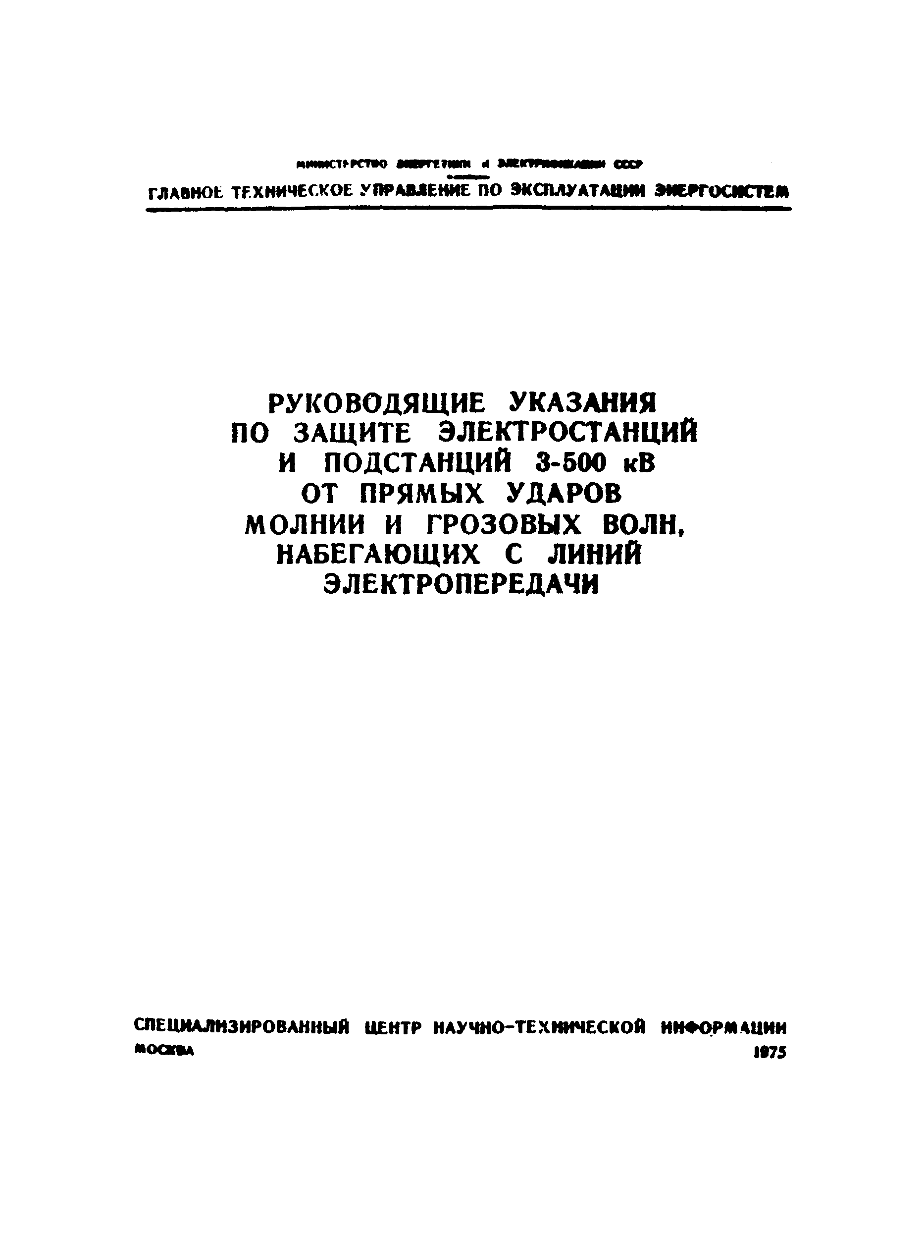 Скачать Руководящие указания по защите электростанций и подстанций 3 - 500 кВ от прямых ударов молнии и грозовых волн, набегающих с линий электропередачиДата актуализации: 01.01.2021