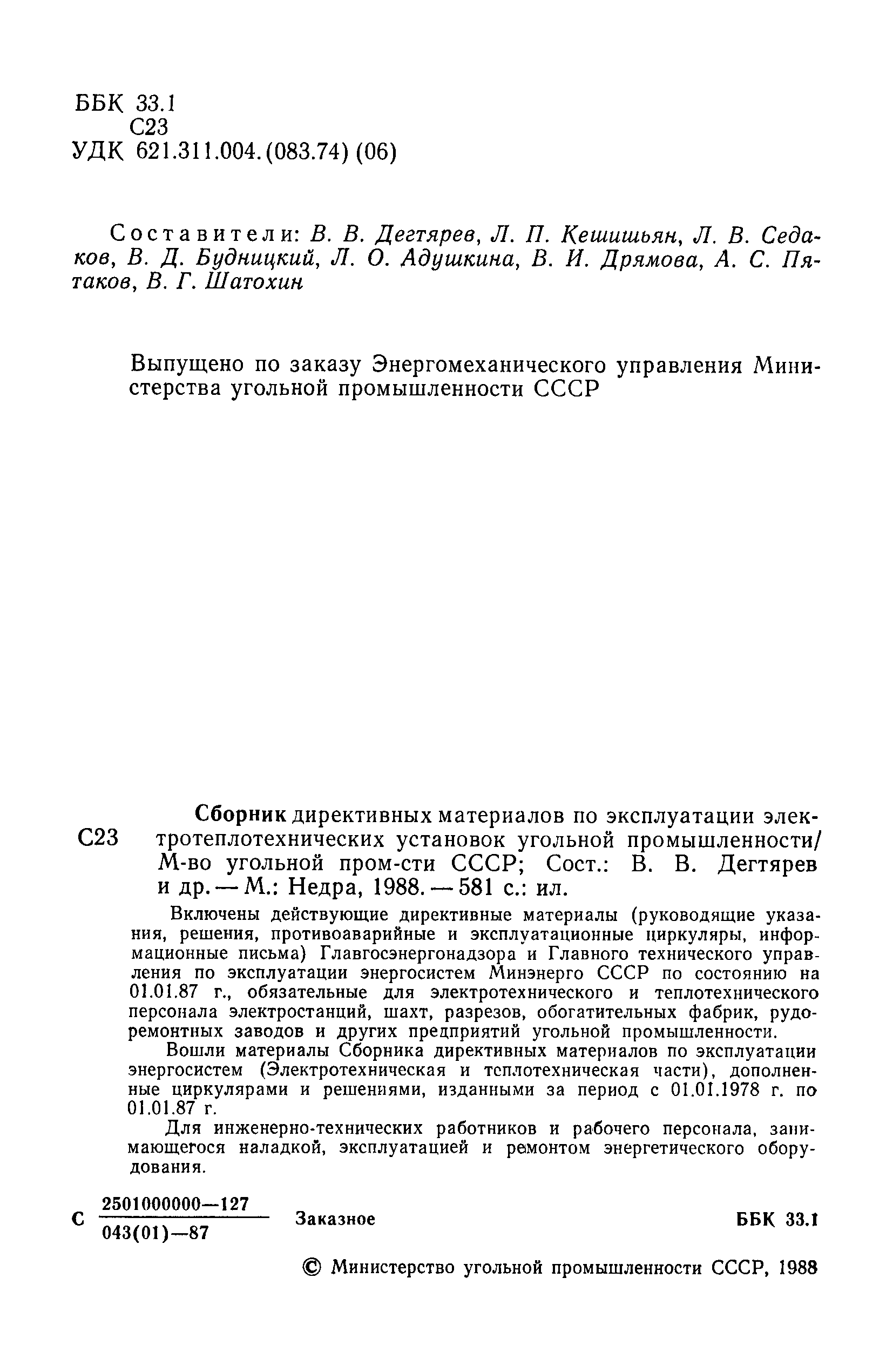| Название рус.: | Сборник директивных материалов по эксплуатации электротеплотехнических установок угольной промышленности |