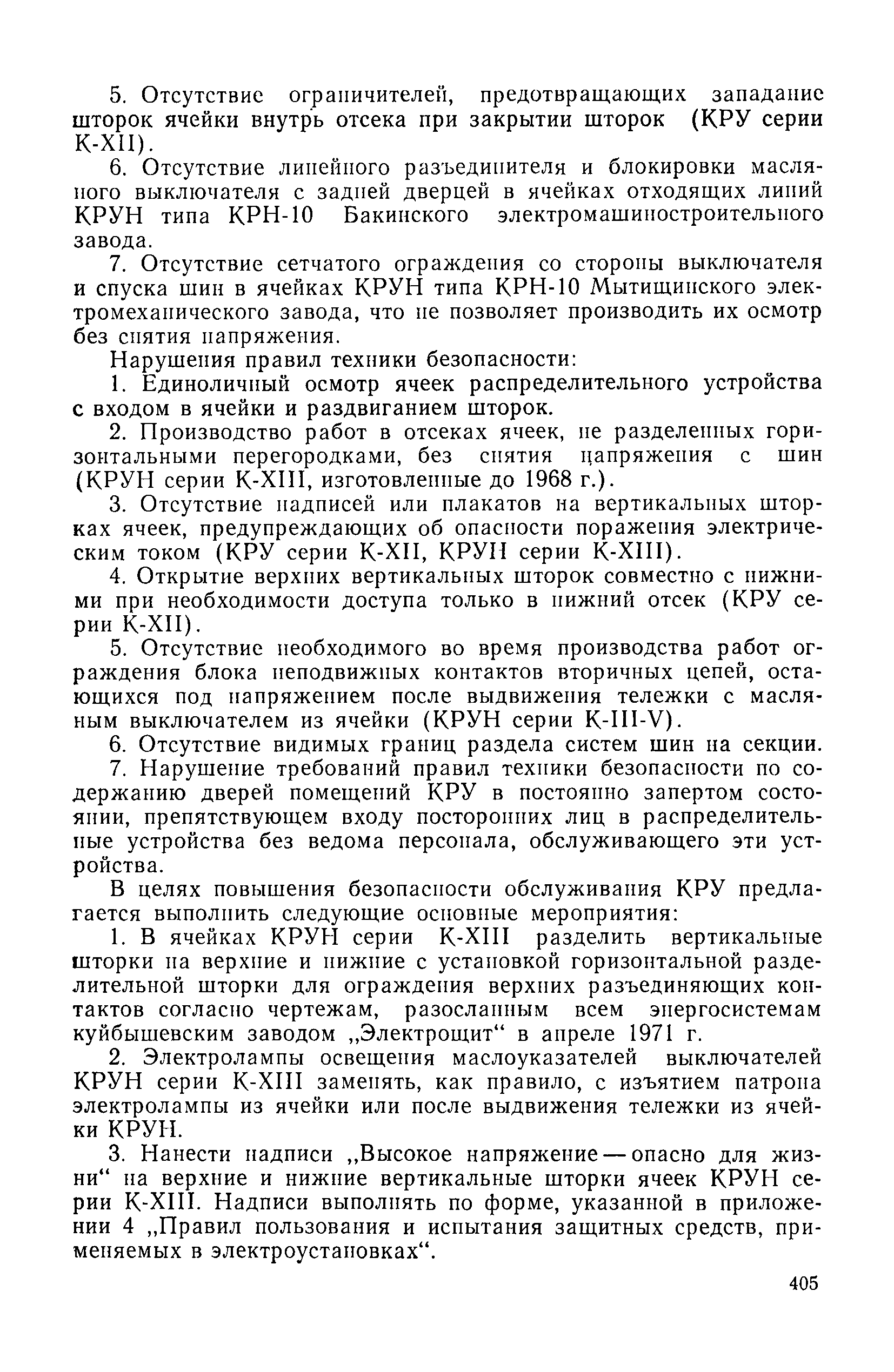 | Оглавление: | I. Электротехника 1. Общие вопросы 2. Системные вопросы. Электроснабжение 3. Защита и электроавтоматика 4. Трансформаторы 5. Выключатели и приводы 6. Аппаратура распределительных устройств электростанций и подстанций 7. Воздушные линии электропередачи 8. Кабельные линии 9. Техника безопасности II. Теплотехника 10. Топливоподача, пылеприготовление, котельные установки и шлакоудаление 11. Паротурбинные установки и системы централизованного теплоснабжения 12. Трубопроводы и арматура 13. Техника безопасности Перечень директивных материалов |