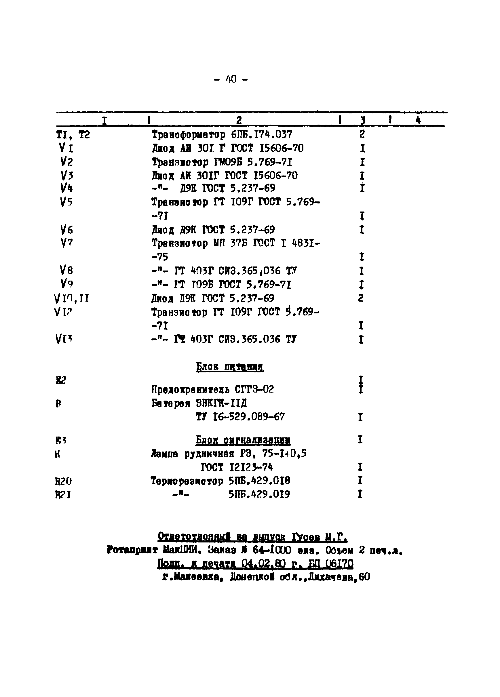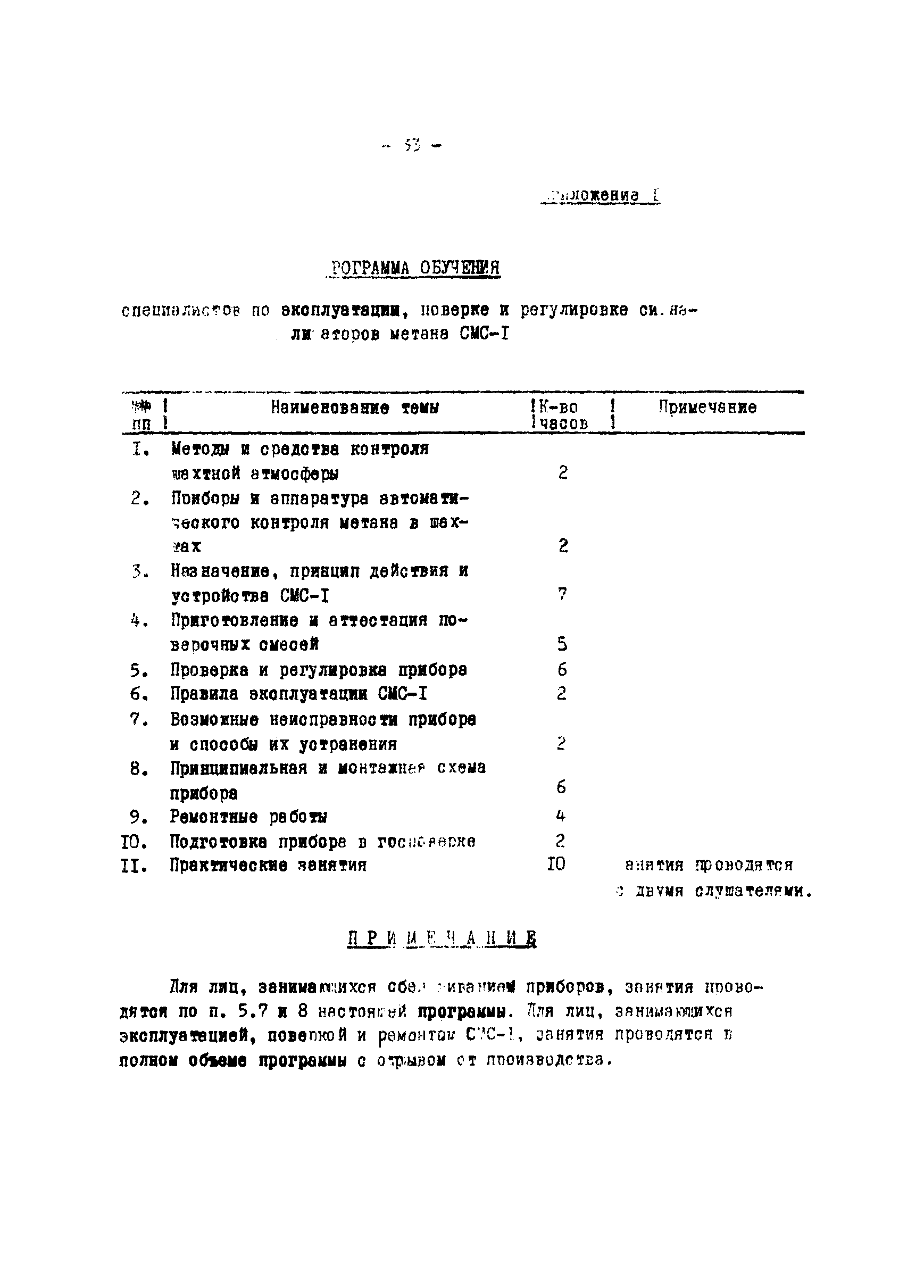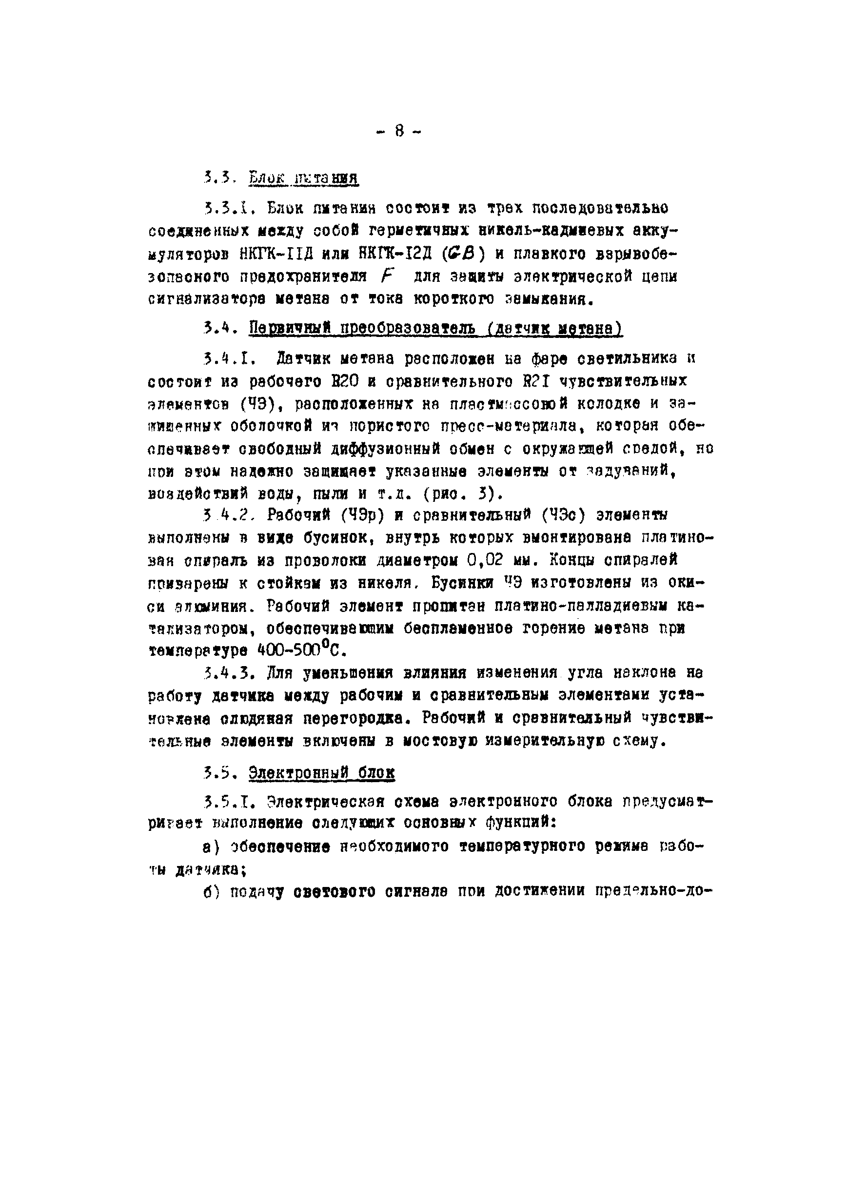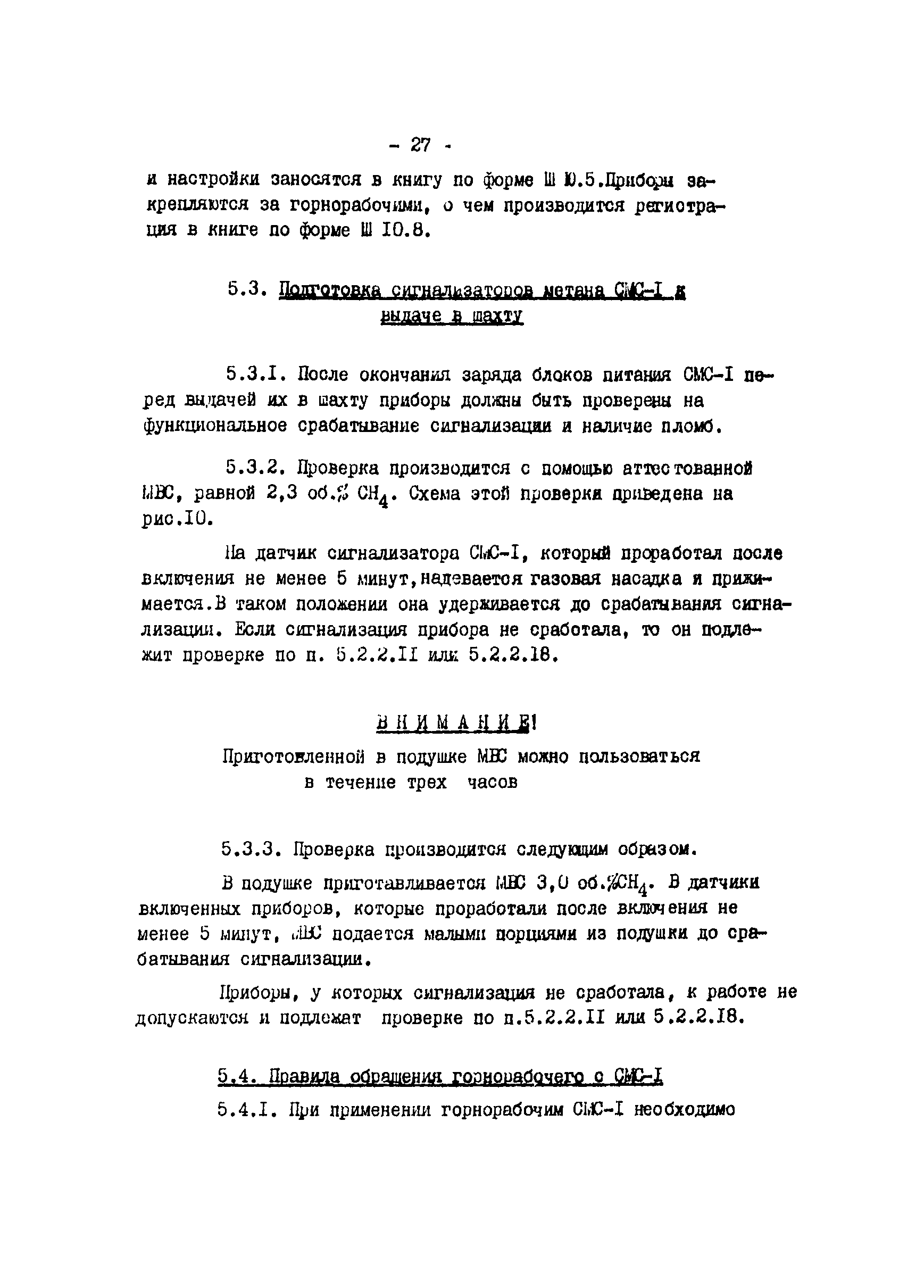 Руководство по эксплуатации и обслуживанию сигнализаторов метана, совмещенных с головными светильниками СМС-1 "Маяк"| Статус: | справочные материалы, мп, тпр | | Название рус.: | Руководство по эксплуатации и обслуживанию сигнализаторов метана, совмещенных с головными светильниками СМС-1 "Маяк" | | Дата добавления в базу: | 01.02.2020 | | Дата актуализации: | 01.01.2021 | | Область применения: | Руководство является обязательным для всех предприятий и организаций Минуглепрома СССР, эксплуатирующих СМС-1 | | Оглавление: | 1. Назначение 2. Техническая характеристика СМС-1 3. Устройство и принцип действия сигнализатора метана 4. Конструкция СМС-1 5. Организация обслуживания и эксплуатации 5.1. Общие положения 5.2. Эксплуатация приборов 5.3. Подготовка сигнализаторов метана СМС-1 к выдаче в шахту 5.4. Правила обращения горнорабочего с СМС-1 5.5. Обязанности слесаря по обслуживанию и эксплуатации СМС-1 5.6. Обязанности зарядчика, обслуживающего метаносигнализаторы СМС-1 5.7. Периодическая поверка приборов 5.8. Хранение приборов 5.9. Документация Приложение 1. Программа обучения специалистов по эксплуатации, поверке и регулировке сигнализаторов метана СМС-1 Приложение 2. Бланк удостоверения Приложение 3. Перечень оборудования, приборов и инструментов для обслуживания сигнализатора метана СМС-1 Приложение 4. Характерные неисправности и меры их устранения Приложение 5. Методика приготовления МВС в кислородных подушках Приложение 6. Перечень элементов | | Разработан: | МакНИИ