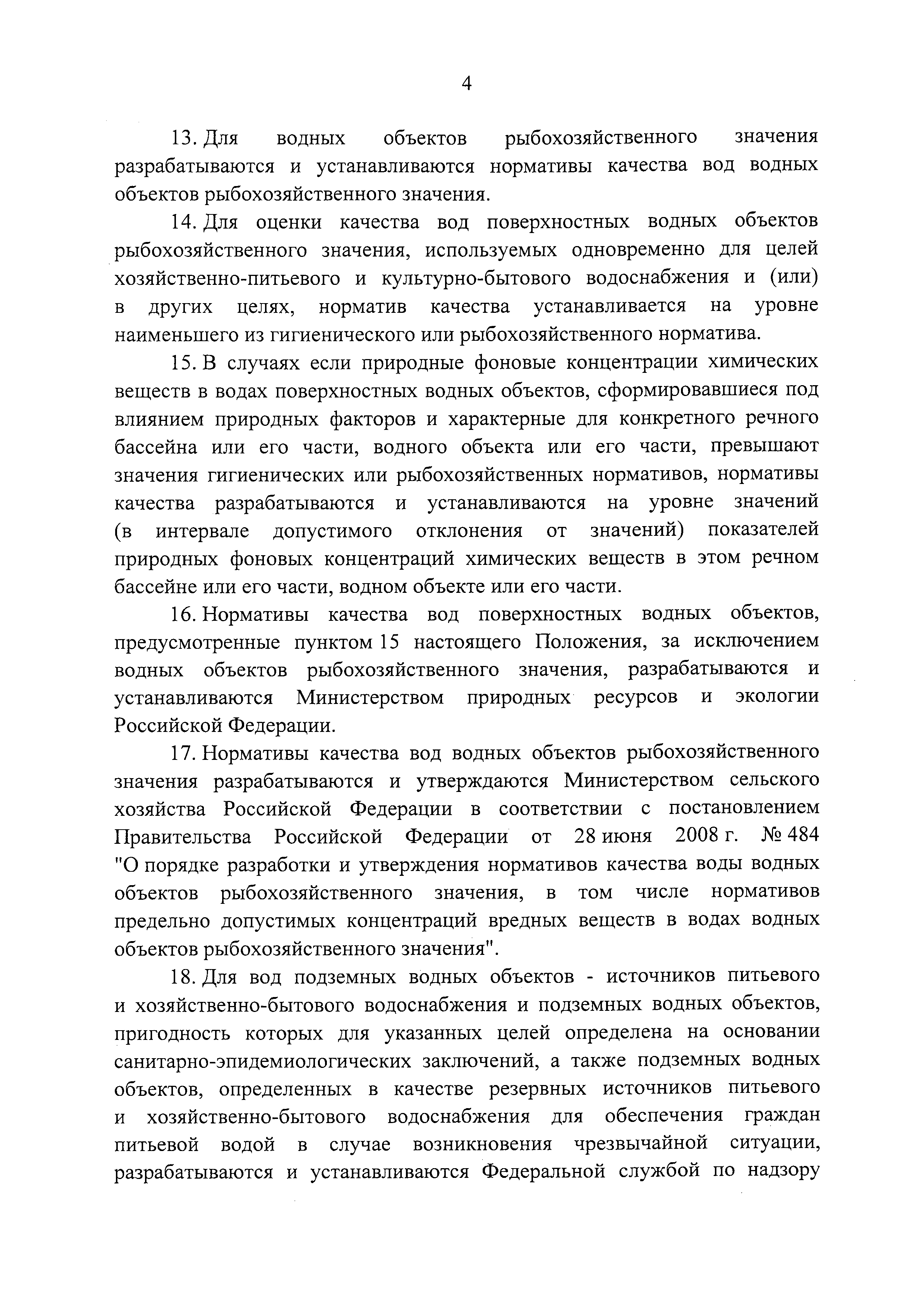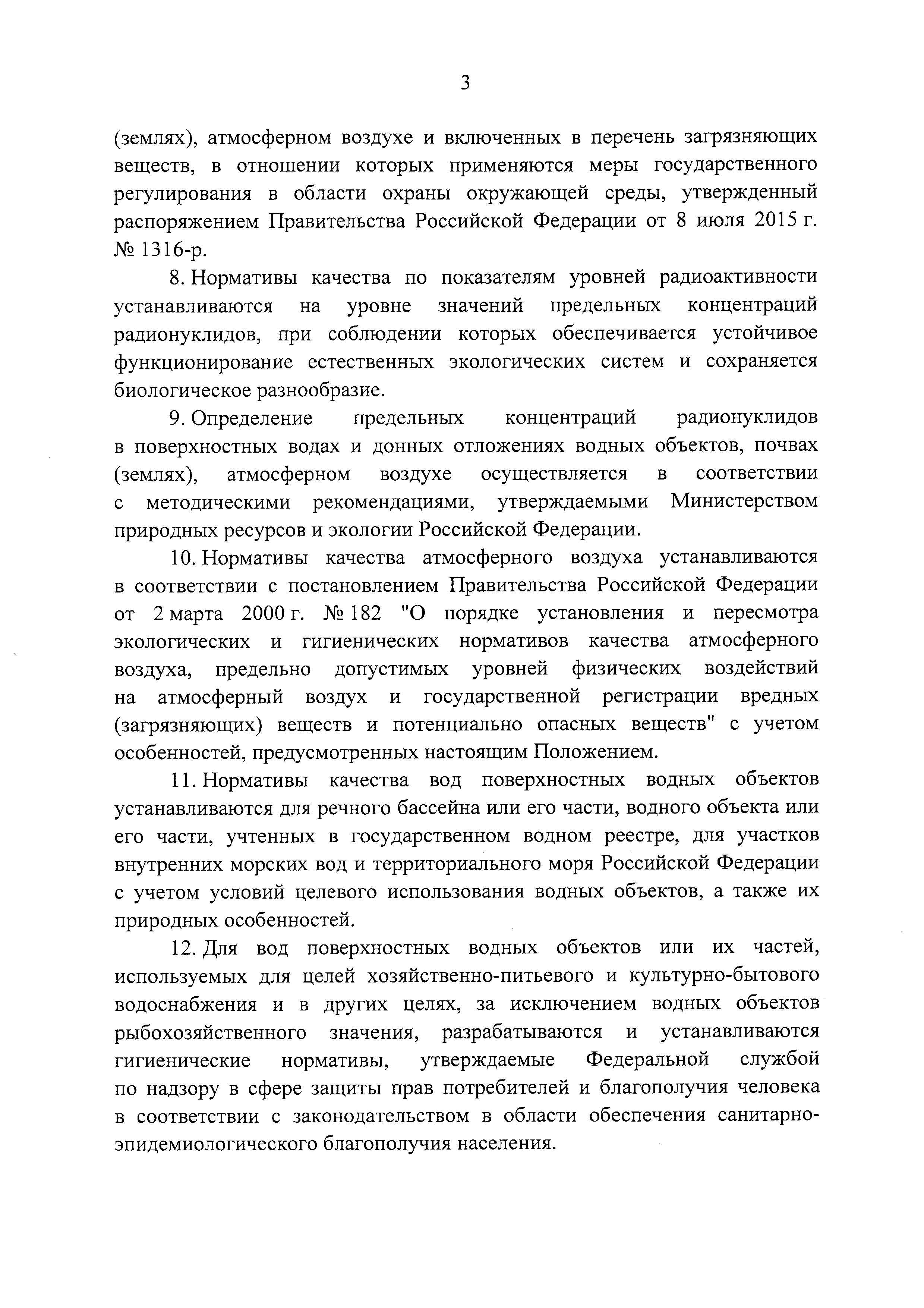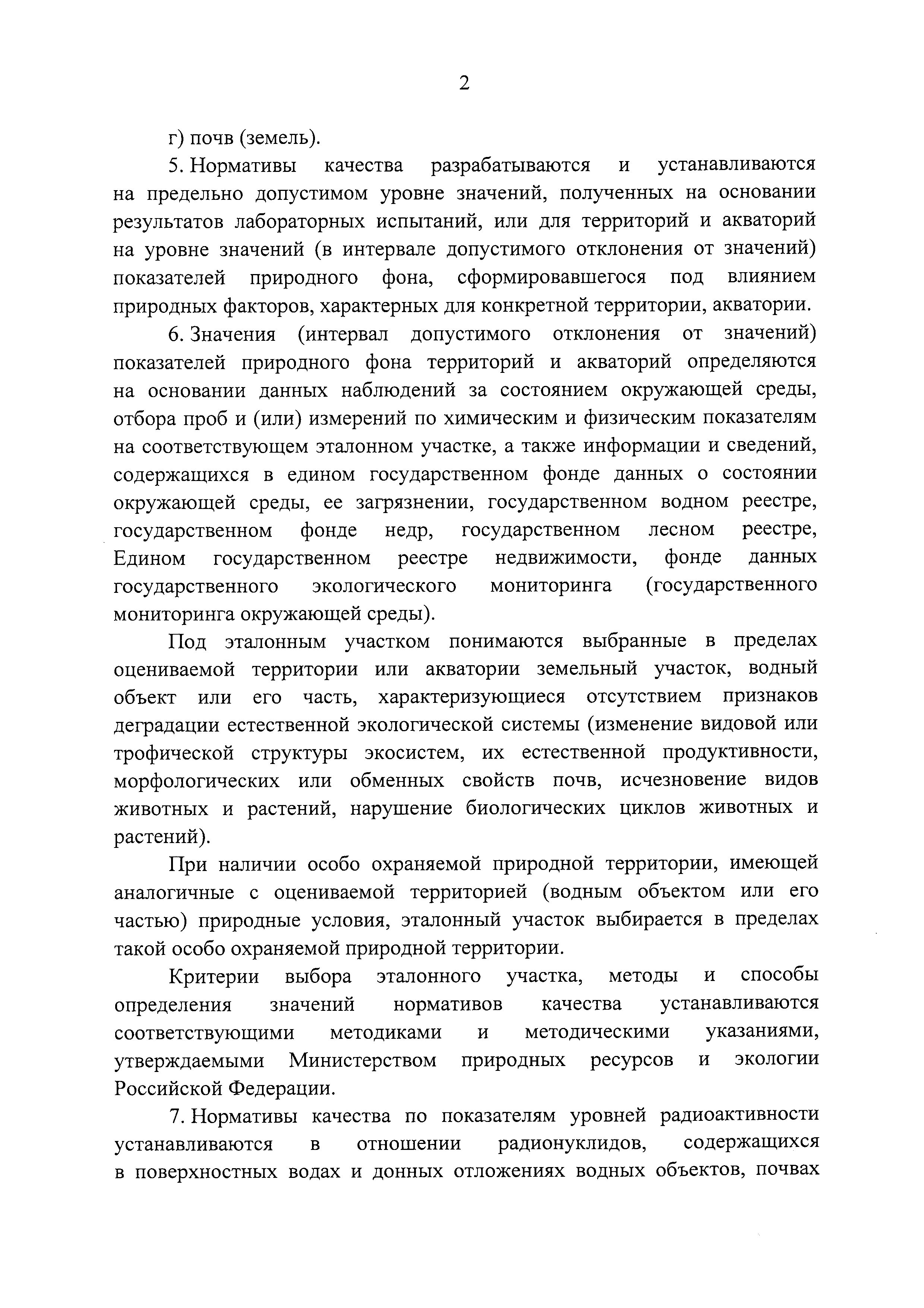 Положение о разработке, установлении и пересмотре нормативов качества окружающей среды для химических и физических показателей состояния окружающей среды| Статус: | действует | | Название рус.: | Положение о разработке, установлении и пересмотре нормативов качества окружающей среды для химических и физических показателей состояния окружающей среды | | Дата добавления в базу: | 01.02.2020 | | Дата актуализации: | 01.01.2021 | | Дата введения: | 27.02.2019 | | Область применения: | Положение определяет порядок разработки, установления и пересмотра нормативов качества окружающей среды для химических и физических показателей состояния окружающей среды | | Утверждён: | 13.02.2019 Правительство Российской Федерации (149)