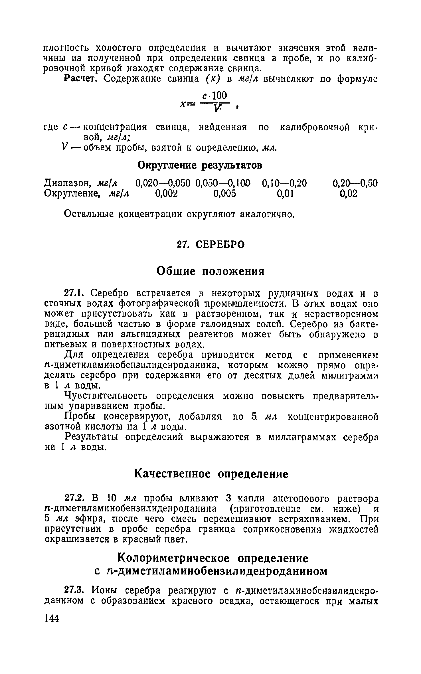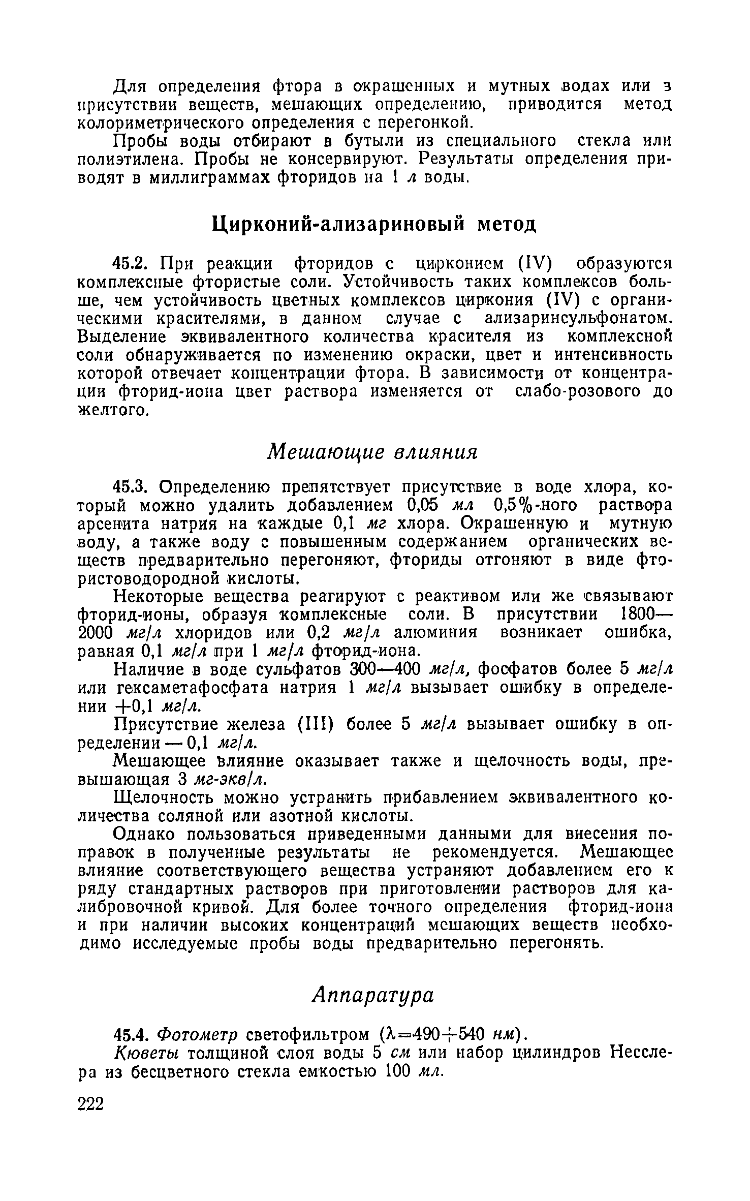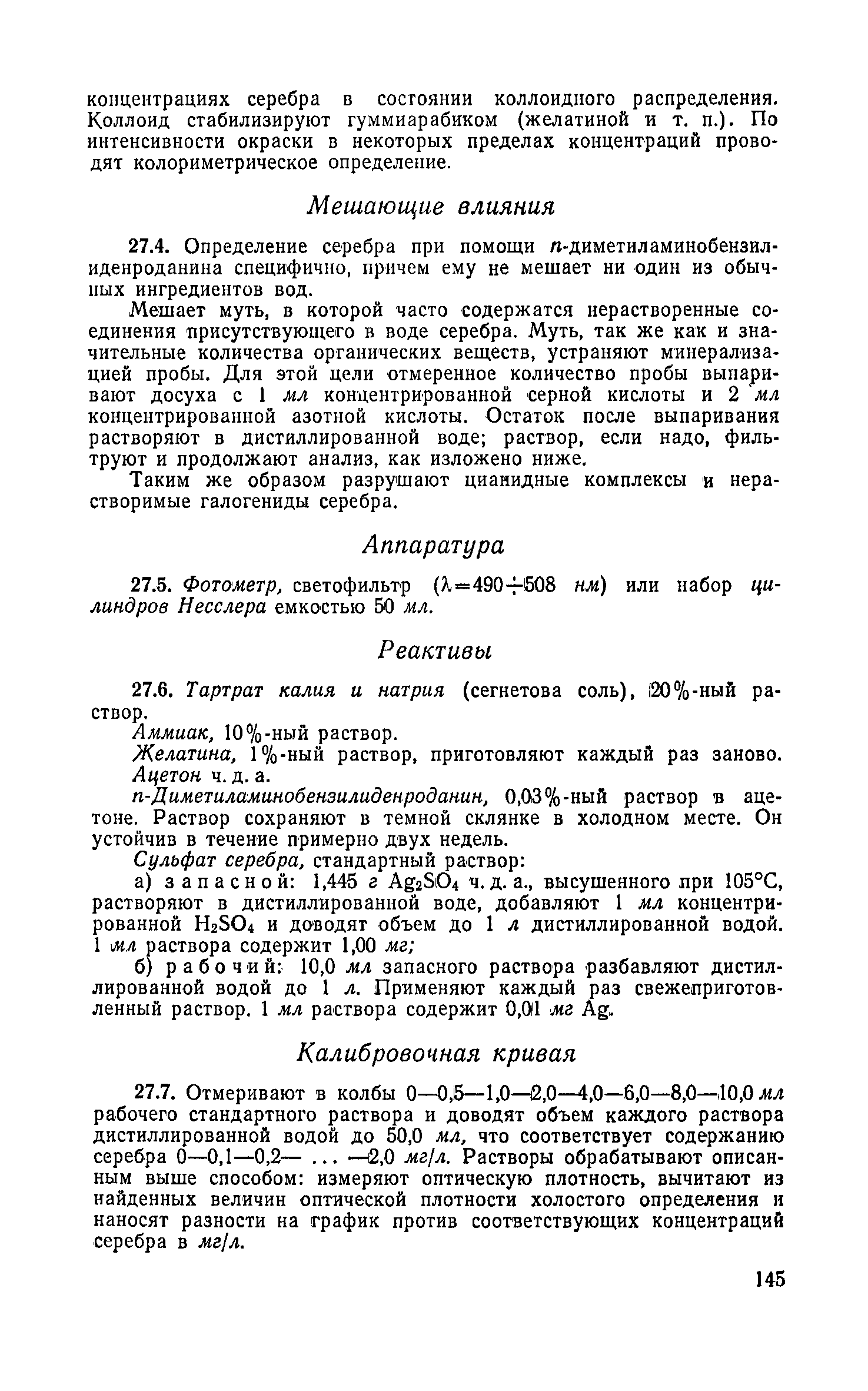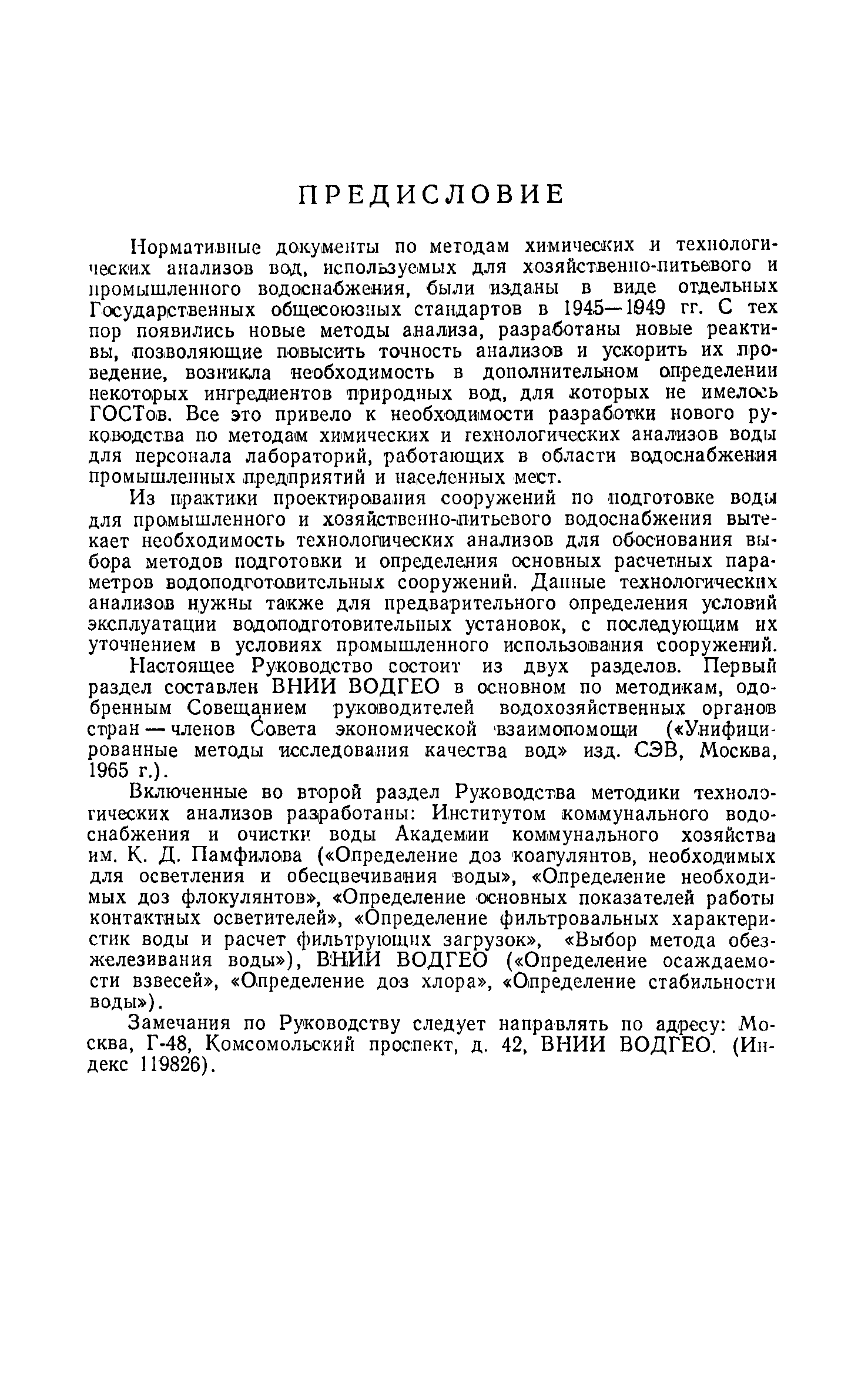 Руководство по химическому и технологическому анализу воды| Статус: | справочные материалы, мп, тпр | | Название рус.: | Руководство по химическому и технологическому анализу воды | | Дата добавления в базу: | 01.02.2020 | | Дата актуализации: | 01.01.2021 | | Область применения: | Руководство содержит методы химического и технологического анализа воды для персонала лабораторий, работающих в области водоснабжения промышленных предприятий и населенных мест. Руководство предназначено для работников лабораторий, занимающихся анализом воды. | | Оглавление: | I. Химический анализ воды II. Технологический анализ воды Приложение Образец шрифта для определения прозрачности воды | | Разработан: | ВНИИ ВОДГЕО