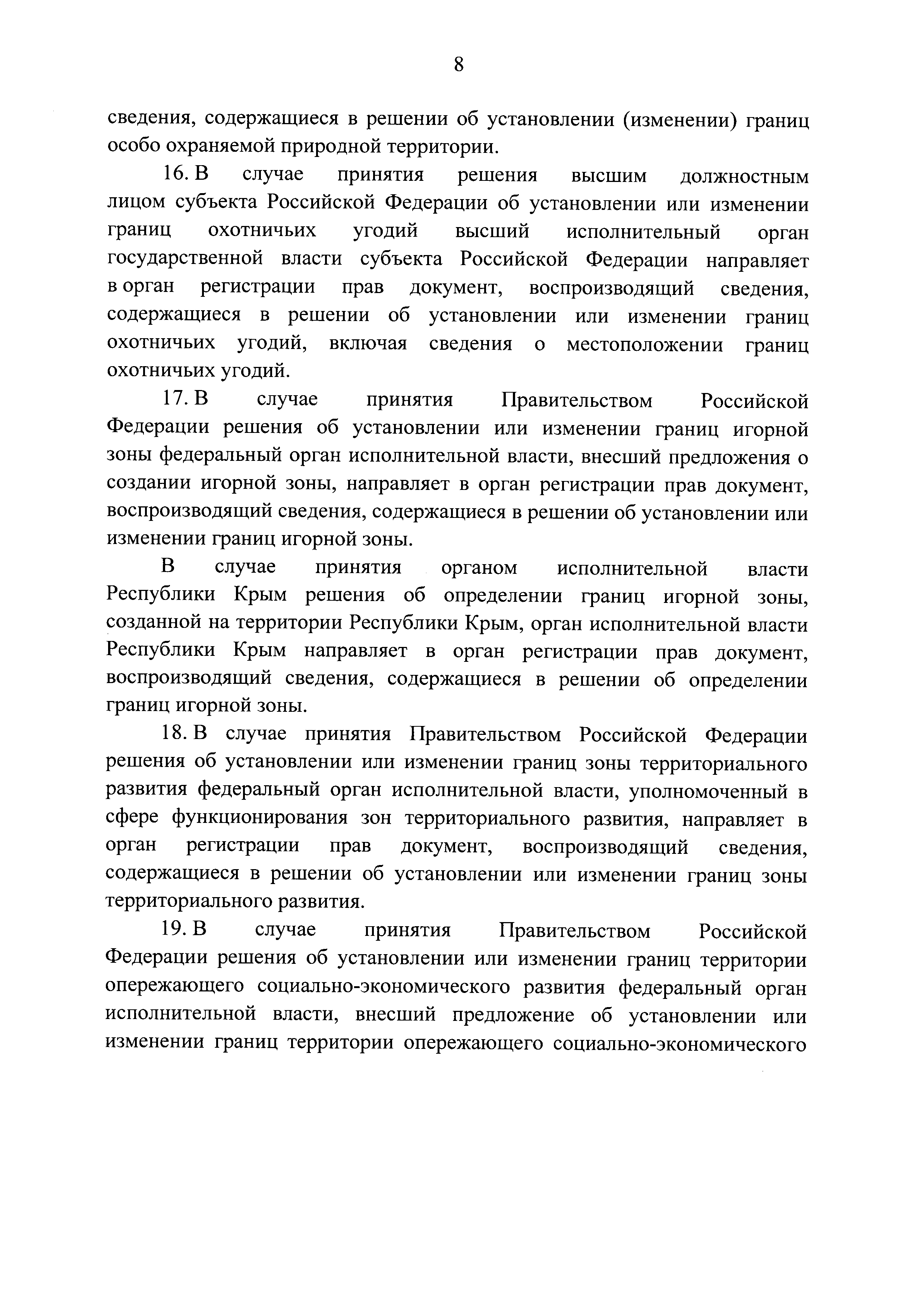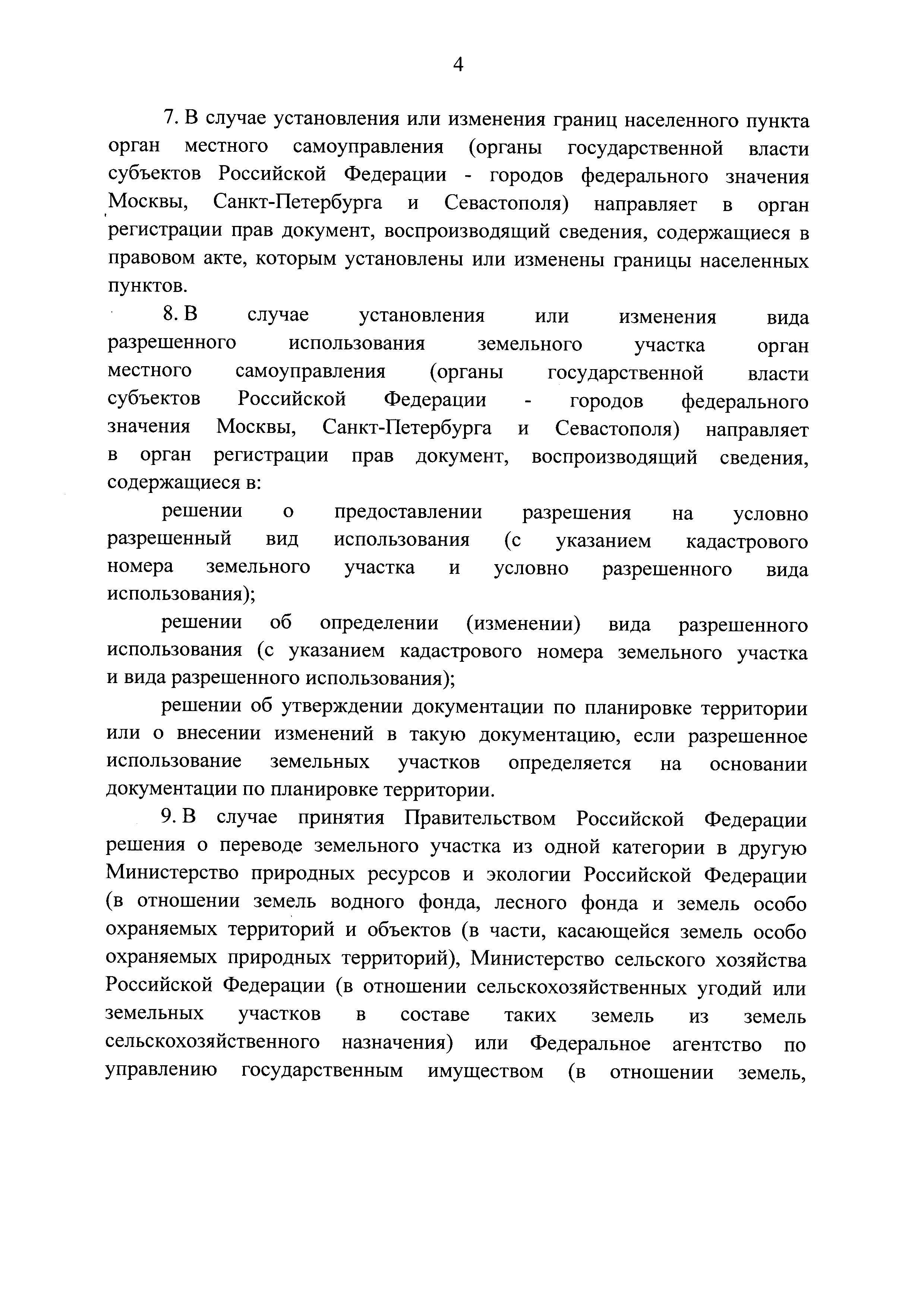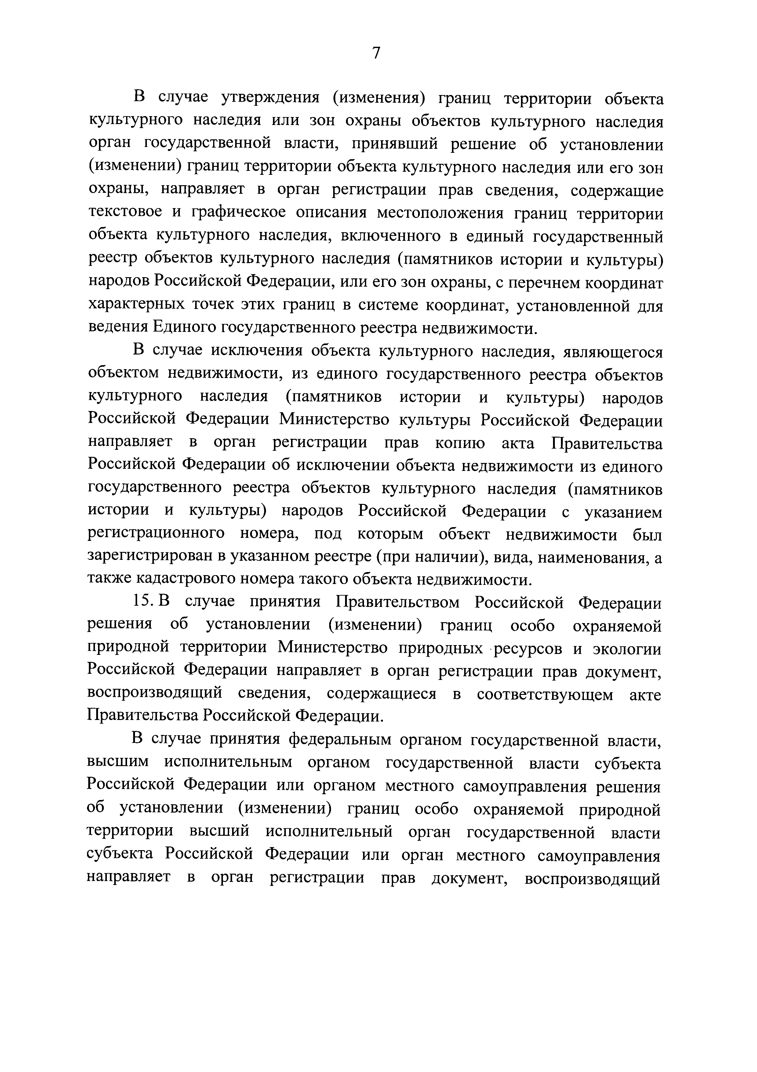 Правила предоставления документов, направляемых или предоставляемых в соответствии с частями 1, 3 - 13, 15, 15.1, 15.2 статьи 32 Федерального закона "О государственной регистрации недвижимости" в федеральный орган исполнительной власти (его территориальные органы), уполномоченный Правительством Российской Федерации на осуществление государственного кадастрового учета, государственной регистрации прав, ведение Единого государственного реестра недвижимости и предоставление сведений, содержащихся в Едином государственном реестре недвижимости| Статус: | действует | | Название рус.: | Правила предоставления документов, направляемых или предоставляемых в соответствии с частями 1, 3 - 13, 15, 15.1, 15.2 статьи 32 Федерального закона "О государственной регистрации недвижимости" в федеральный орган исполнительной власти (его территориальные органы), уполномоченный Правительством Российской Федерации на осуществление государственного кадастрового учета, государственной регистрации прав, ведение Единого государственного реестра недвижимости и предоставление сведений, содержащихся в Едином государственном реестре недвижимости | | Дата добавления в базу: | 01.02.2020 | | Дата актуализации: | 01.01.2021 | | Дата введения: | 01.01.2017 | | Область применения: | Правила устанавливают перечень документов и состав содержащихся в них сведений, направляемых или предоставляемых в соответствии с частями 1, 3 - 13, 15, 15.1 статьи 32 Федерального закона "О государственной регистрации недвижимости" в федеральный орган исполнительной власти (его территориальные органы), уполномоченный Правительством Российской Федерации на осуществление государственного кадастрового учета, государственной регистрации прав, ведение Единого государственного реестра недвижимости и предоставление сведений, содержащихся в Едином государственном реестре недвижимости, порядок их направления или предоставления органами государственной власти, органами местного самоуправления, судами в орган регистрации прав, в том числе с использованием единой системы межведомственного электронного взаимодействия и подключаемых к ней региональных систем межведомственного электронного взаимодействия, а также требования к формату таких документов в электронной форме | | Утверждён: | 31.12.2015 Правительство Российской Федерации (1532)