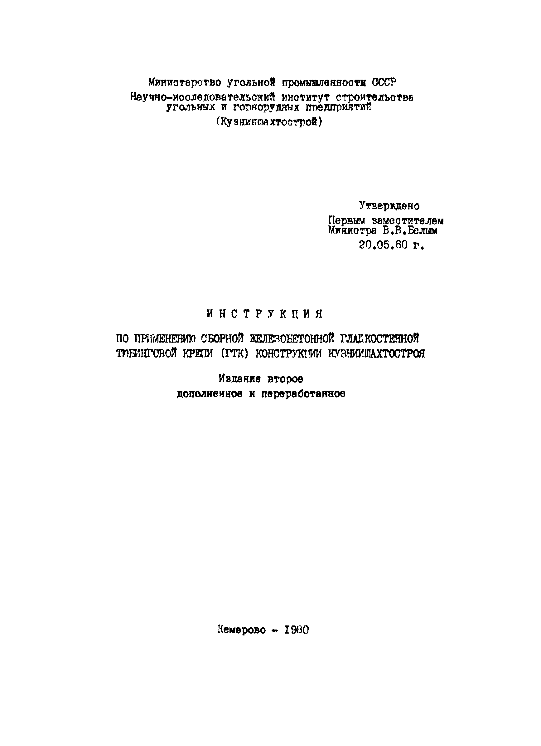 | Утверждён: | 20.05.1980 Министерство угольной промышленности СССР (USSR Ministry of the Coal Industry )