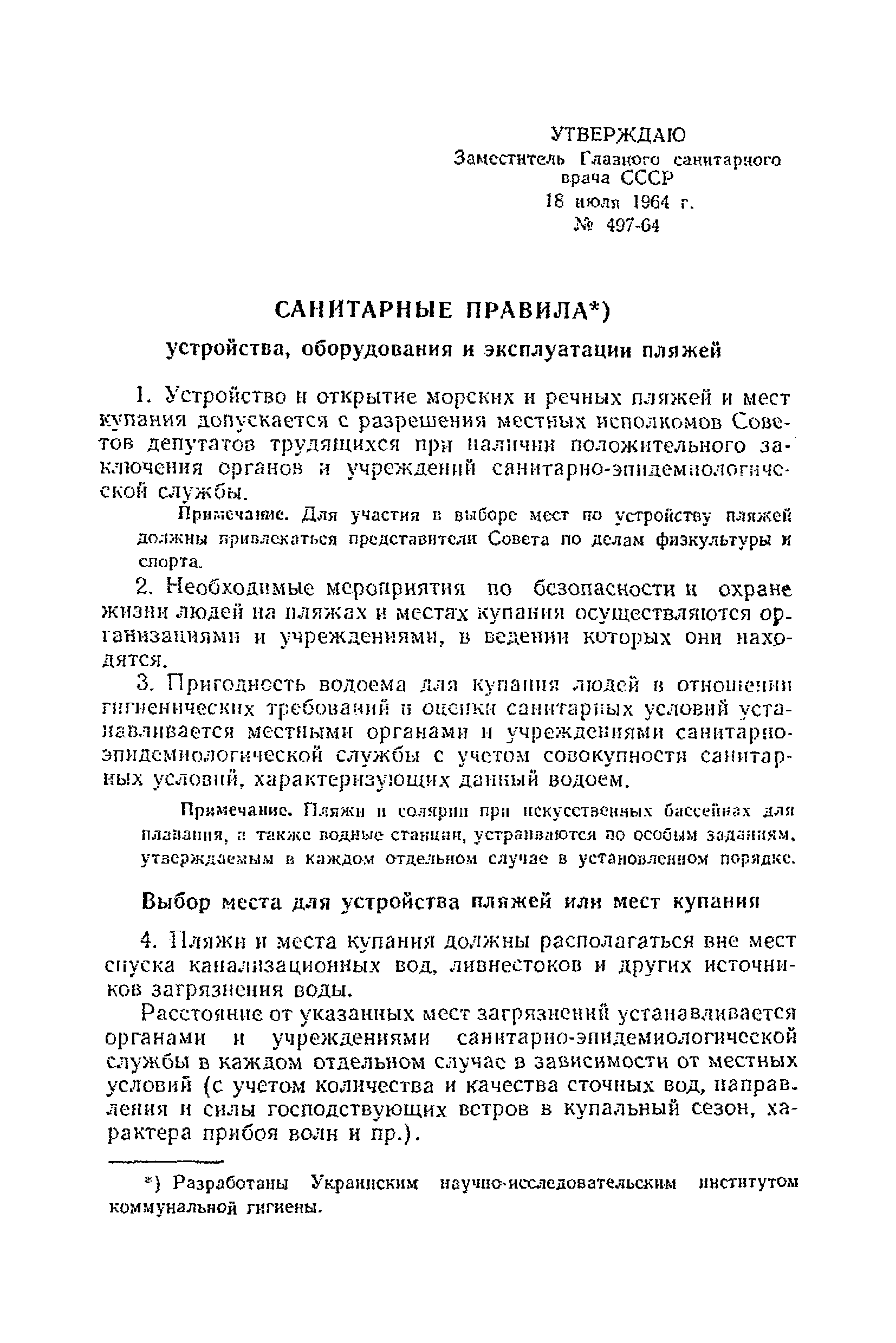 | | Утверждён: | 18.07.1964 Зам. Главного санитарного врача СССР (497-64)