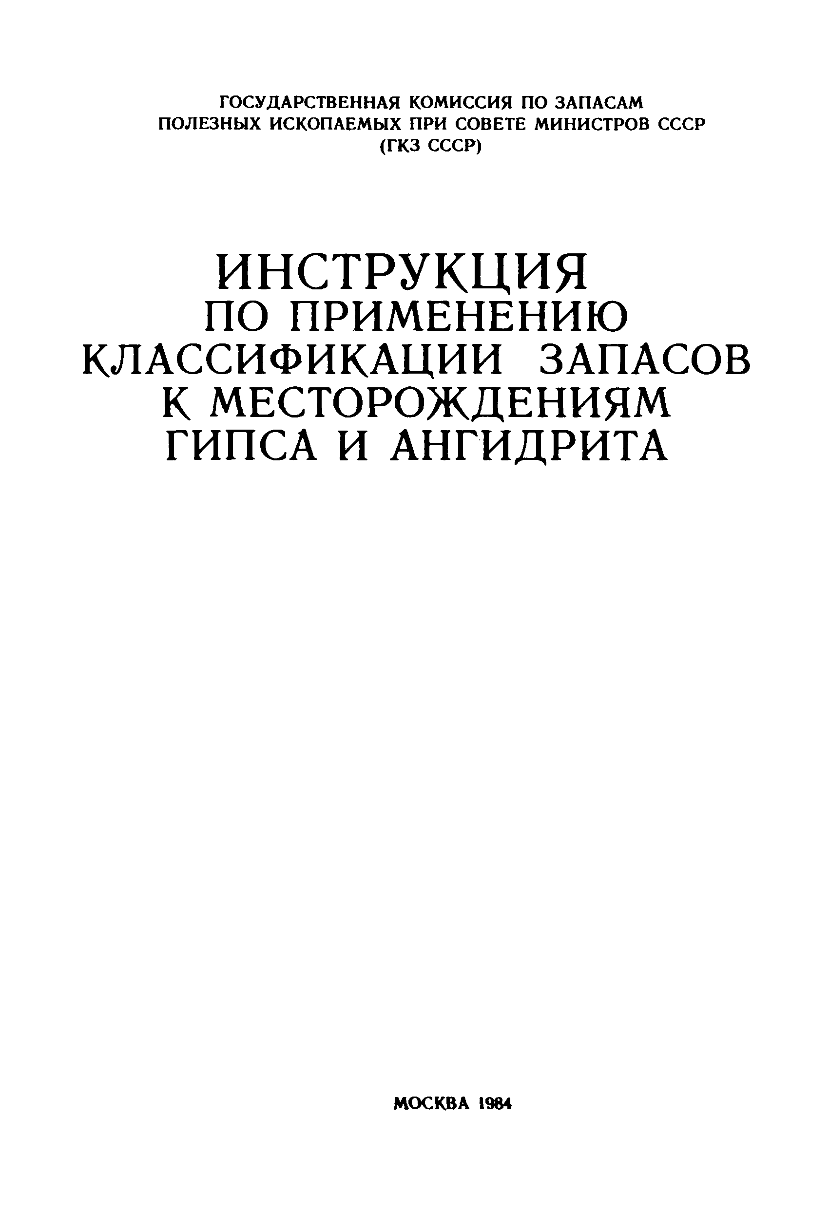 | Название рус.: | Инструкция по применению Классификации запасов к месторождениям гипса и ангидрита |