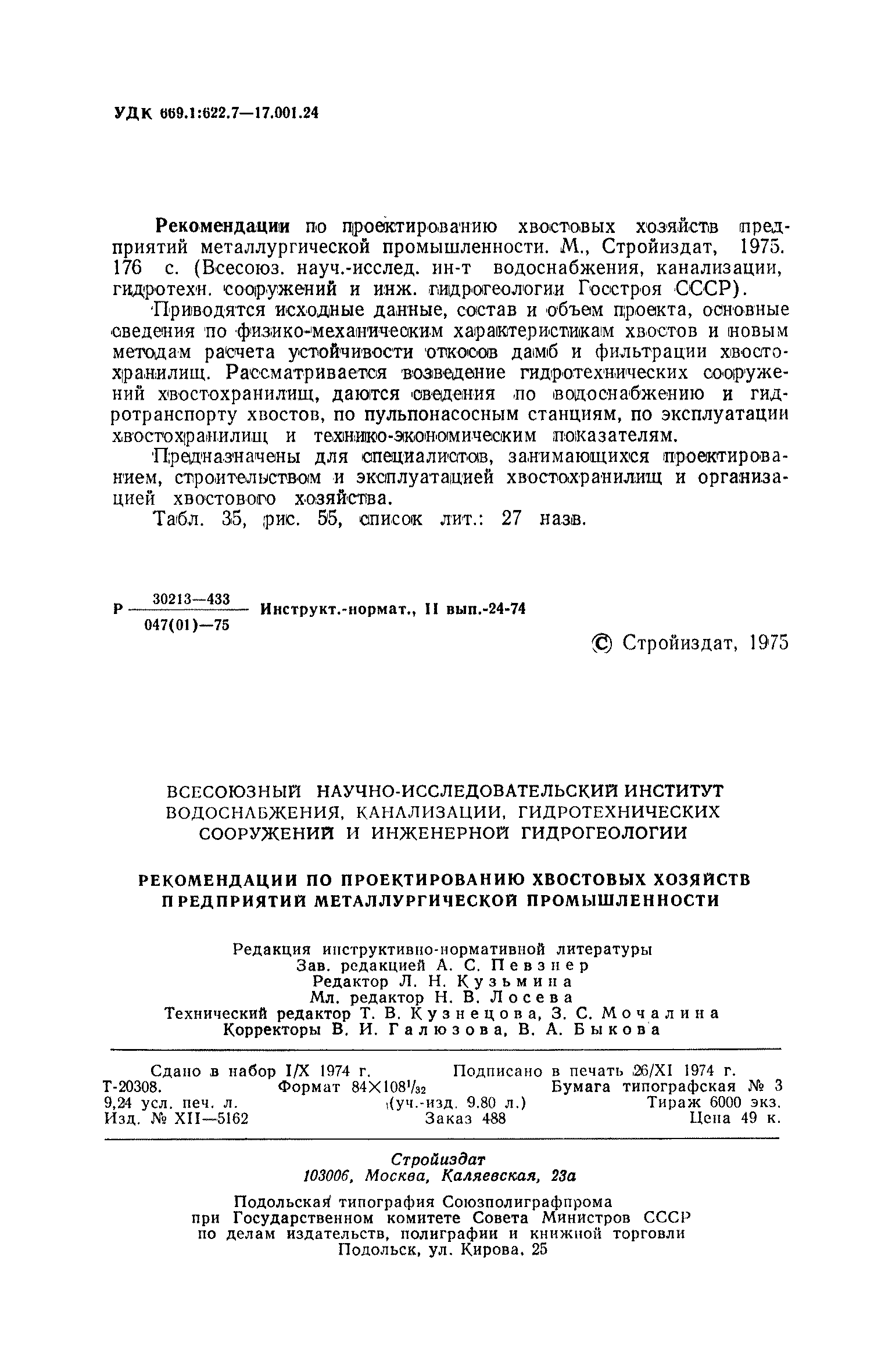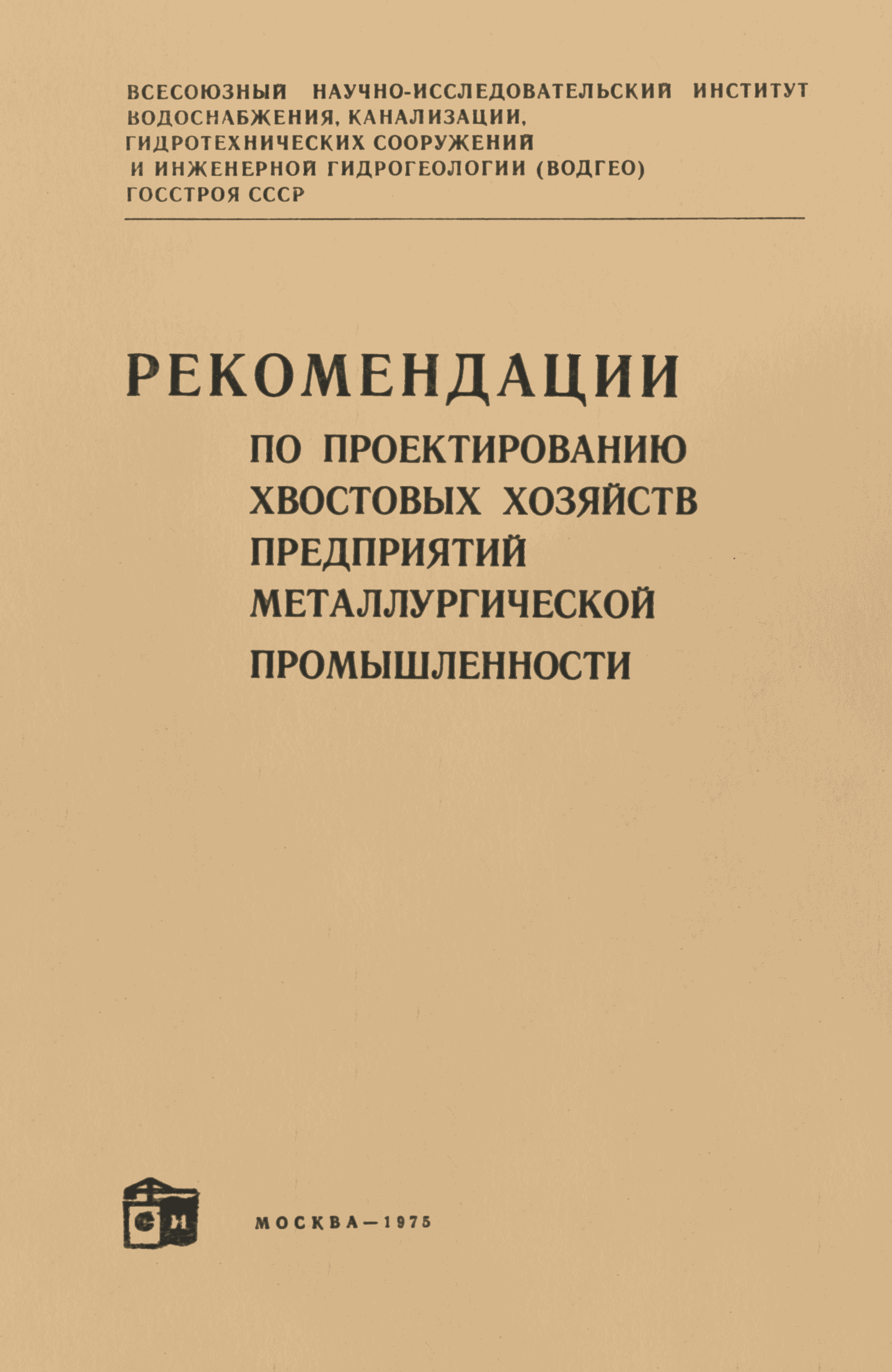 | Название рус.: | Рекомендации по проектированию хвостовых хозяйств предприятий металлургической промышленности |