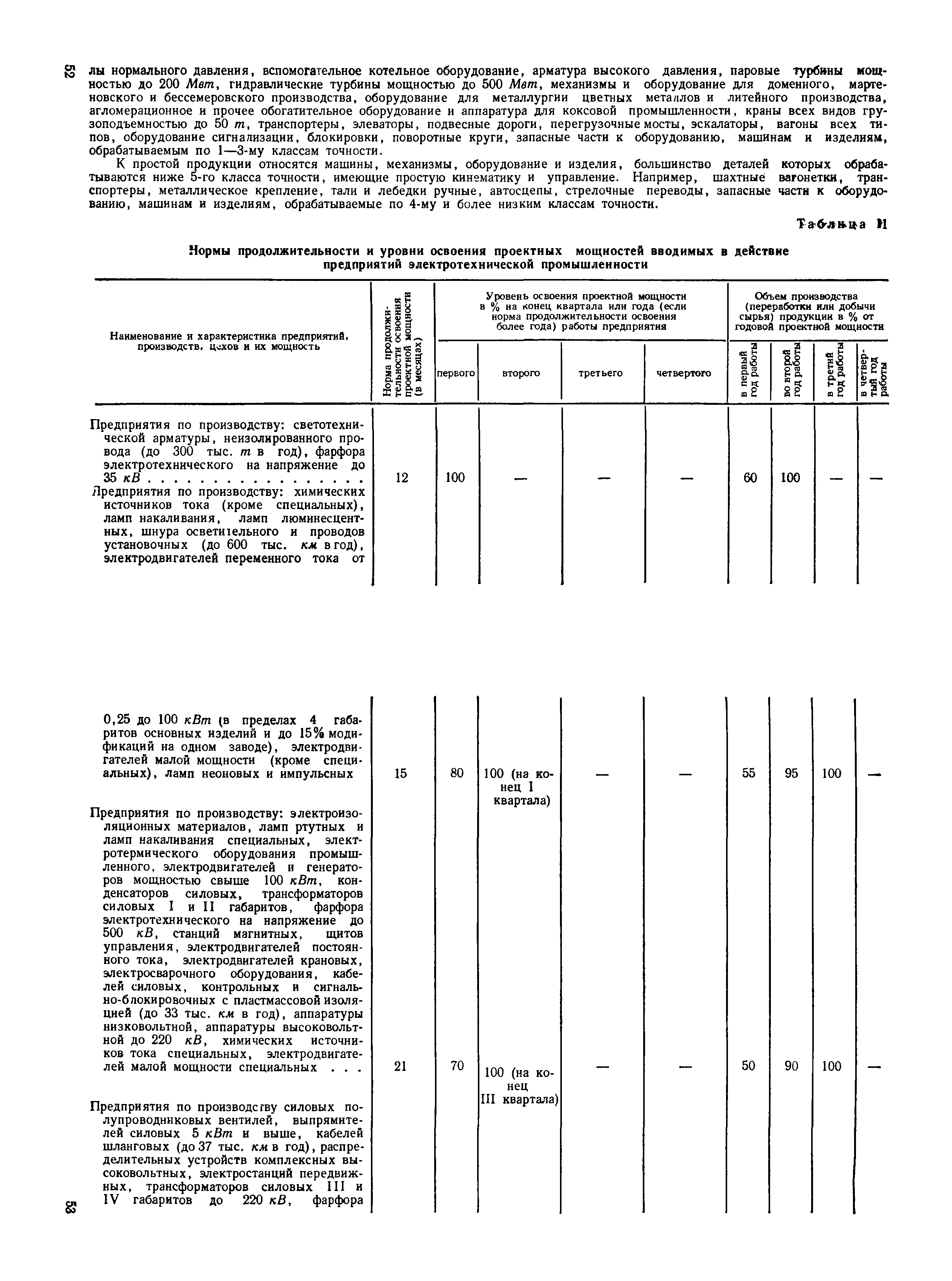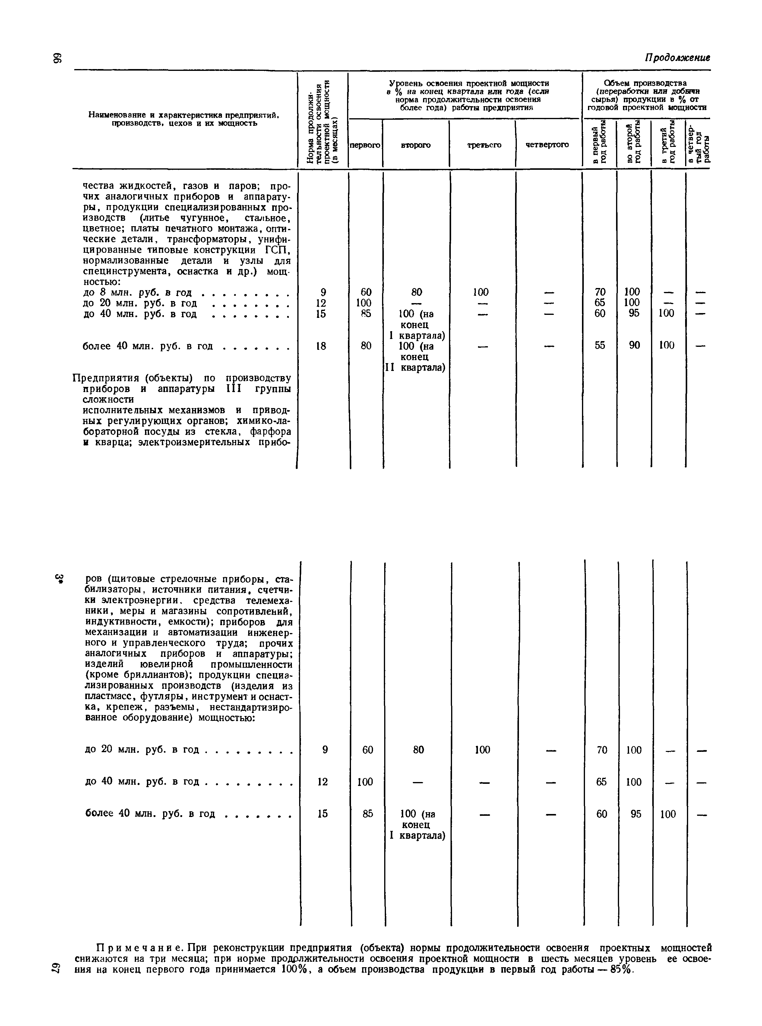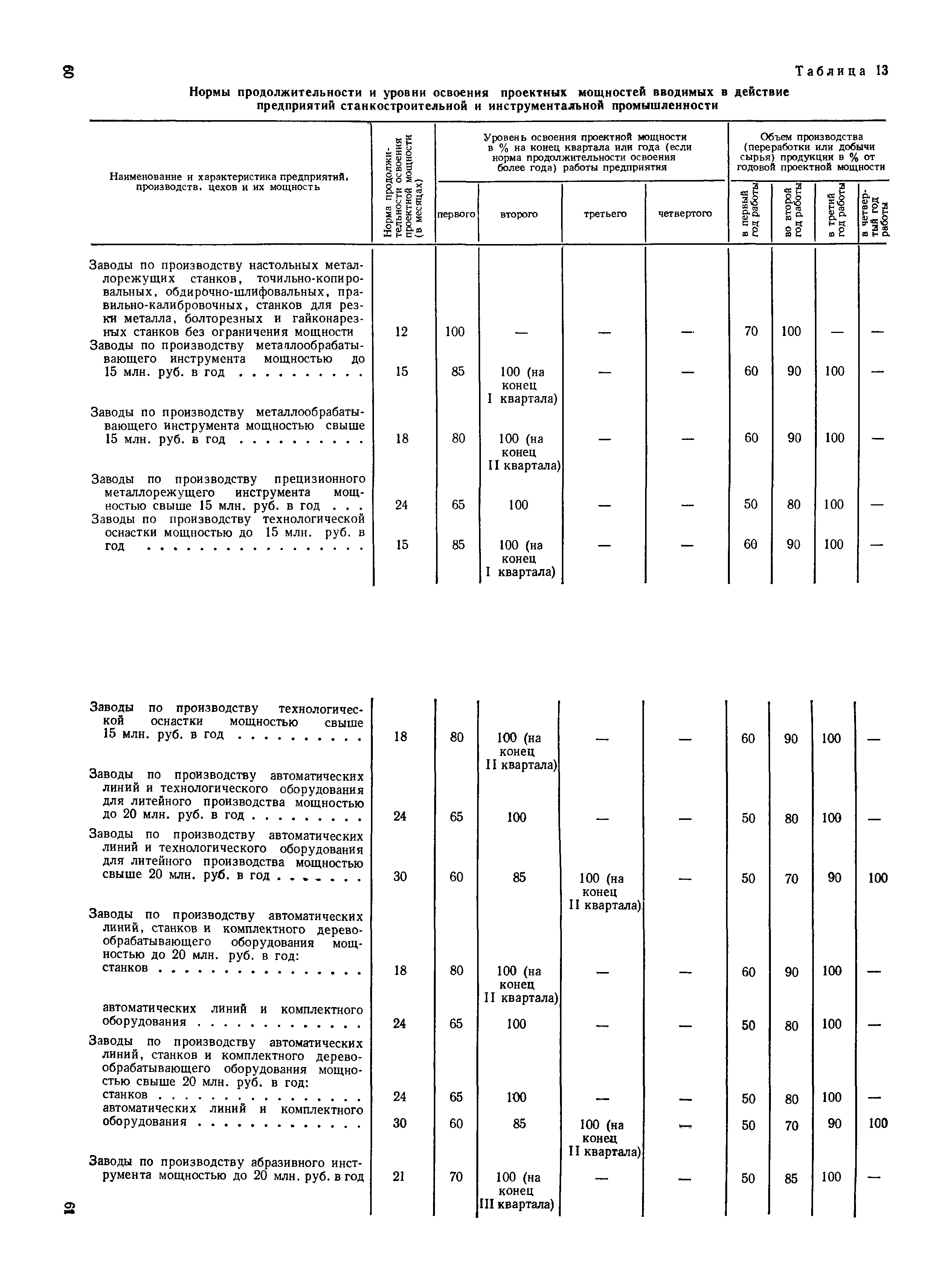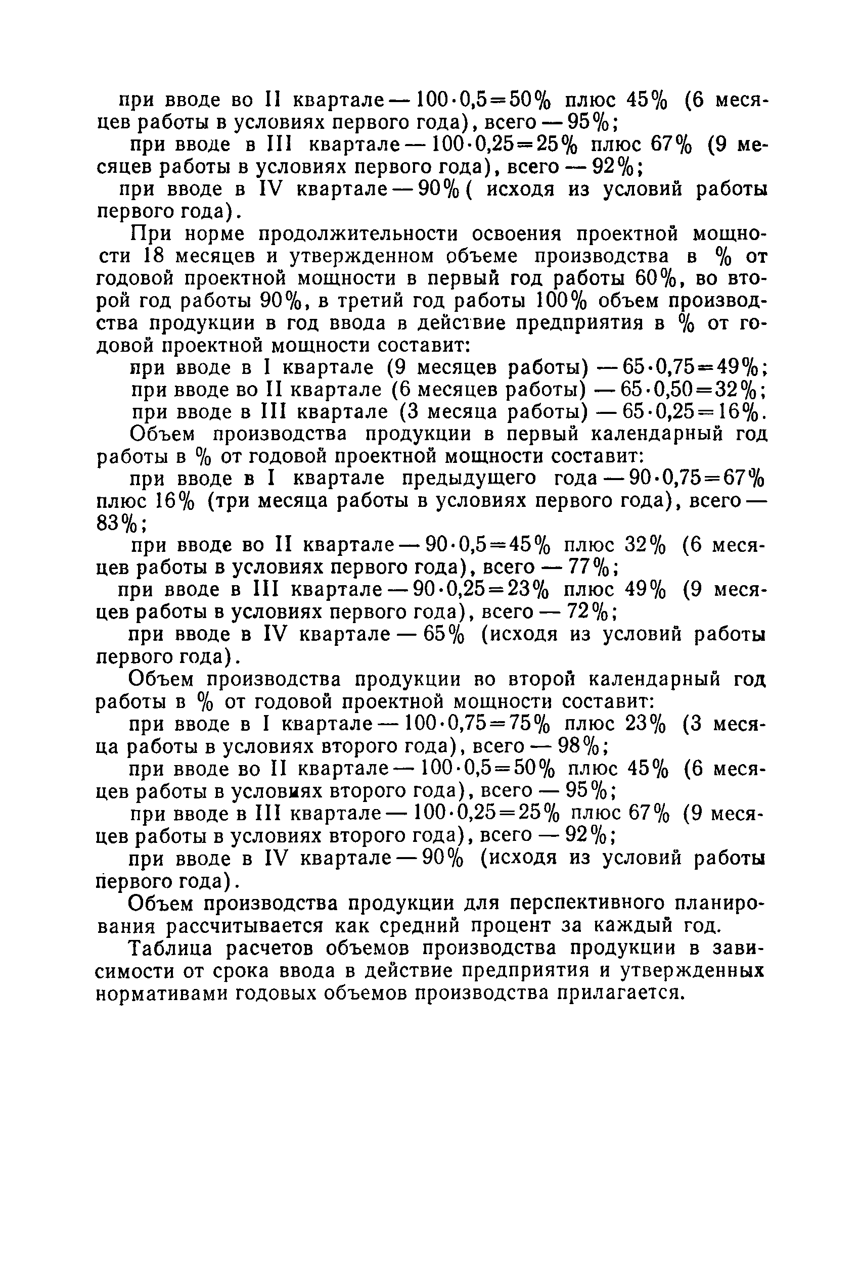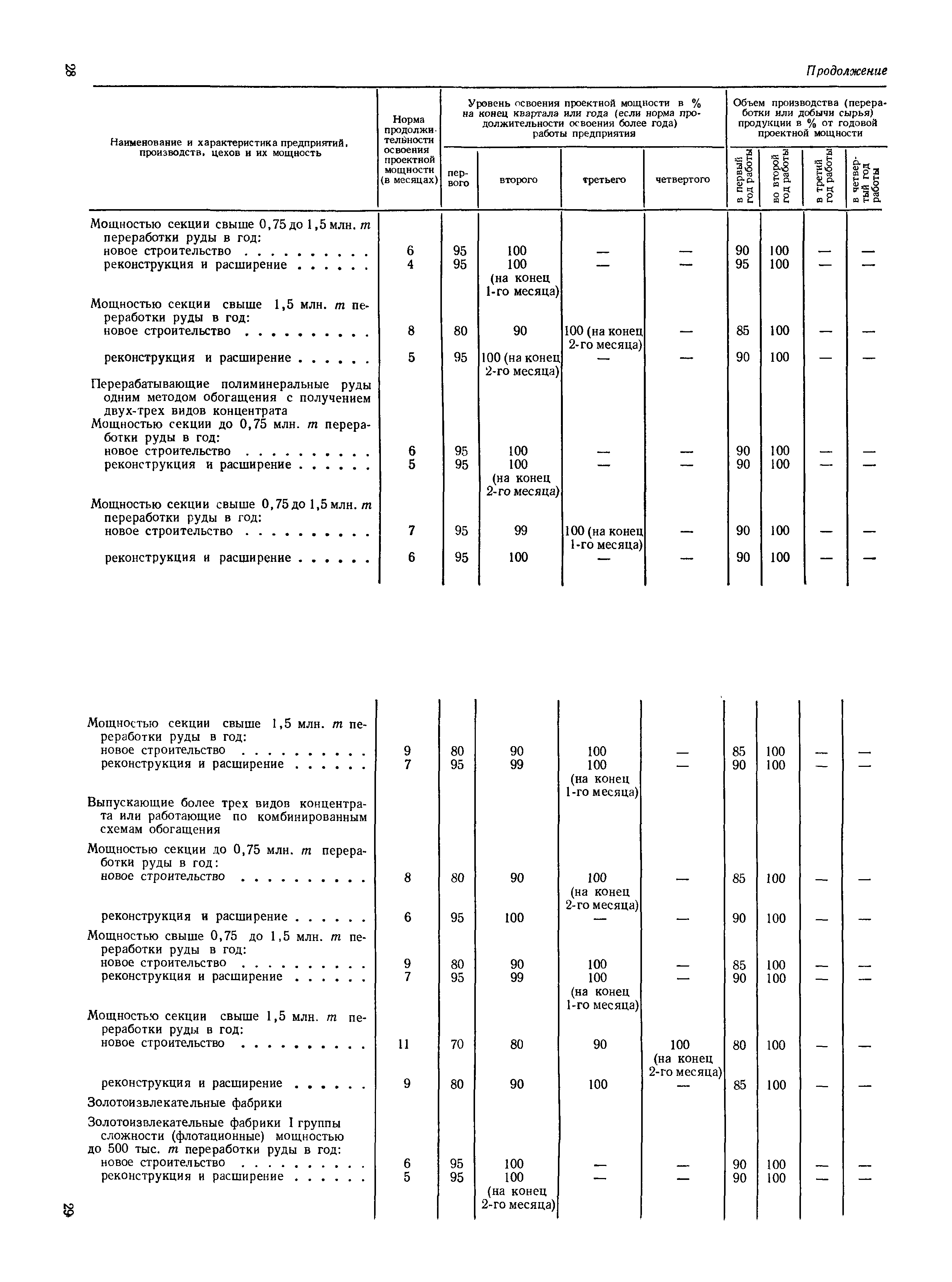 Нормы продолжительности освоения проектных мощностей вводимых в действие предприятий| Статус: | справочные материалы, мп, тпр | | Название рус.: | Нормы продолжительности освоения проектных мощностей вводимых в действие предприятий | | Дата добавления в базу: | 01.02.2020 | | Дата актуализации: | 01.01.2021 | | Область применения: | Сборник норм предназначен для работников центральных плановых органов, министерств и ведомств СССР, научно-исследовательских и проектных институтов, предприятий, производственных объединений (комбинатов). Сборник содержит нормы продолжительности освоения проектных мощностей и основные положения их расчета. Он рассчитан на работников промышленных предприятий, научно-исследовательских, проектно-конструкторских и других организаций, занимающихся освоением проектных мощностей. | | Оглавление: | Основные положения Таблица 1. Нормы продолжительности освоения и коэффициенты готовности вводимых в действие энергоблоков и агрегатов электростанций Таблица 2. Нормы продолжительности и уровни освоения проектных мощностей вводимых в действие объектов нефтеперерабатывающей промышленности Таблица 3. Нормы продолжительности и уровни освоения проектных мощностей вводимых в действие установок и производств по переработке газа в нефтяной промышленности Таблица 4. Нормы продолжительности и уровни освоения проектных мощностей вводимых в действие заводов по производству оборудования и аппаратуры газовой промышленности Таблица 5. Нормы продолжительности и уровни освоения проектных мощностей вводимых в действие и реконструируемых предприятий угольной и сланцевой промышленности Таблица 6. Нормы продолжительности и уровни освоения проектных мощностей вводимых в действие предприятий торфяной промышленности Таблица 7. Нормы продолжительности и уровни освоения проектных мощностей вводимых в действие объектов черной металлургии Таблица 8 Нормы продолжительности и уровни освоения проектных мощностей вводимых в действие предприятий (объектов) цветной металлургии Таблица 9. Нормы продолжительности и уровни освоения проектных мощностей вводимых в действие химических и нефтехимических производств Таблица 10. Нормы продолжительности и уровни освоения проектных мощностей вводимых в действие предприятий тяжелого, энергетического и транспортного машиностроения Таблица 11. Нормы продолжительности и уровни освоения проектных мощностей вводимых в действие предприятий электротехнической промышленности Таблица 12. Нормы продолжительности и уровни освоения проектных мощностей вводимых в действие предприятий химического и нефтяного машиностроения Таблица 13. Нормы продолжительности и уровни освоения проектных мощностей вводимых в действие предприятий станкостроительной и инструментальной промышленности Таблица 14. Нормы продолжительности и уровни освоения проектных мощностей вводимых в действие предприятий по производству приборов, средств автоматизации и систем управления Таблица 15. Нормы продолжительности и уровни освоения проектных мощностей вводимых в действие предприятий автомобильной промышленности Таблица 16. Нормы продолжительности и уровни освоения проектных мощностей вводимых в действие предприятий тракторного и сельскохозяйственного машиностроения Таблица 17. Нормы продолжительности и уров