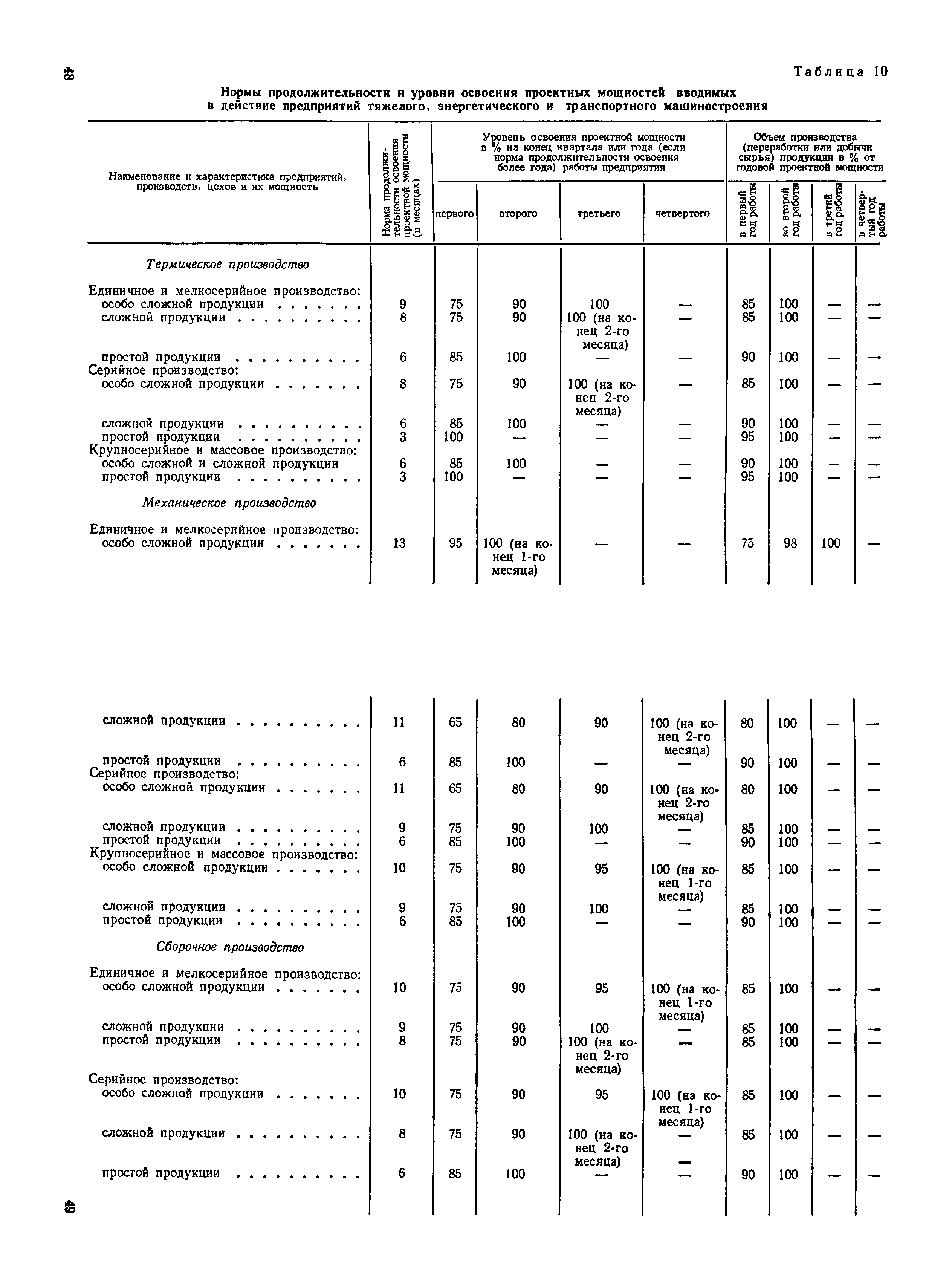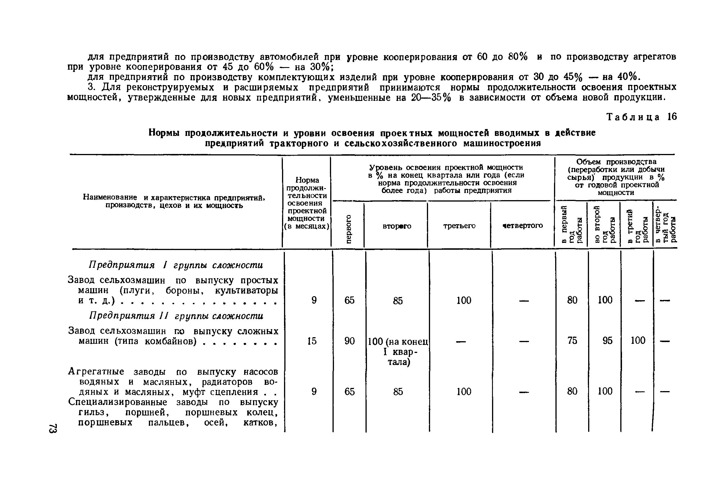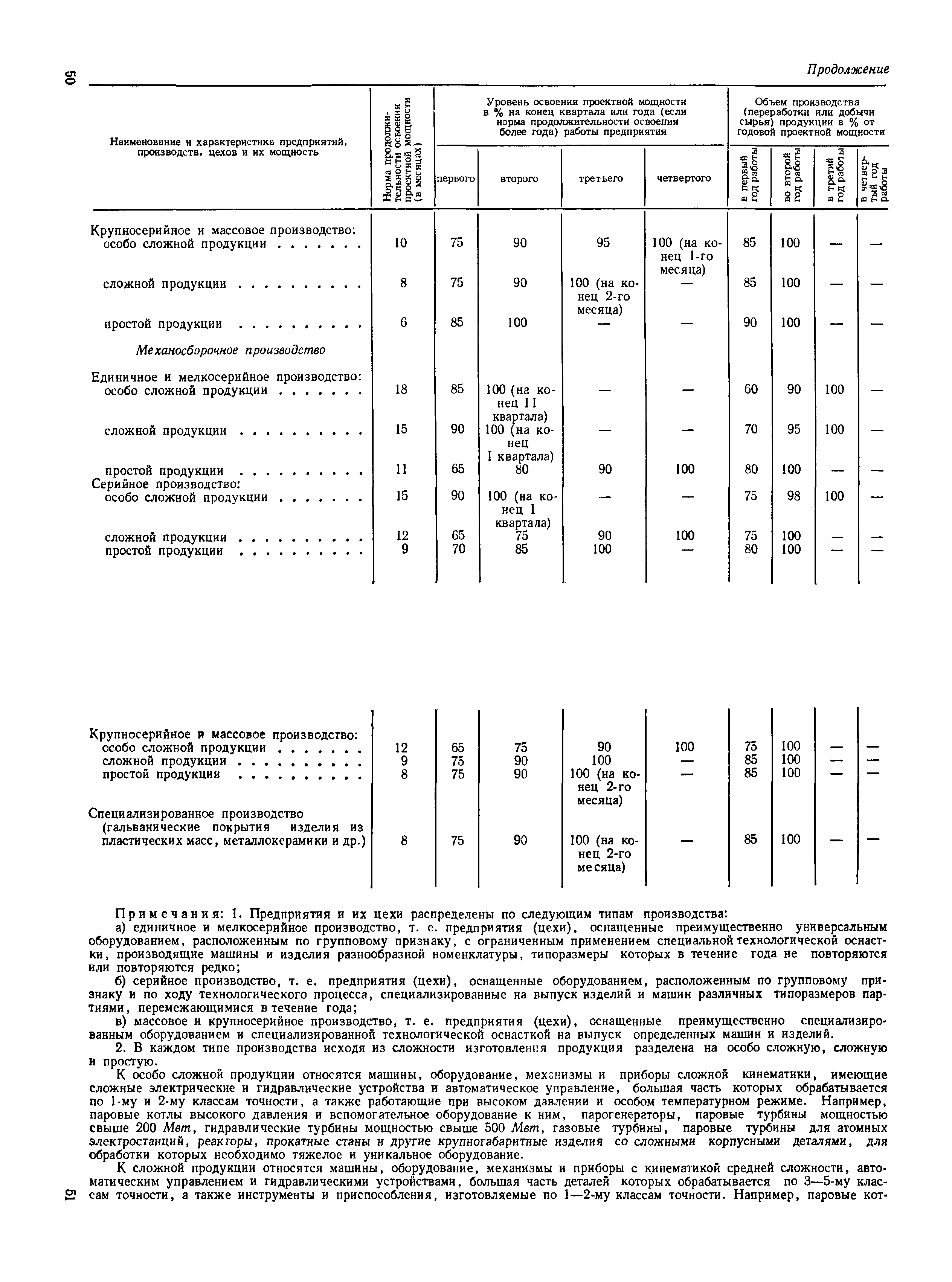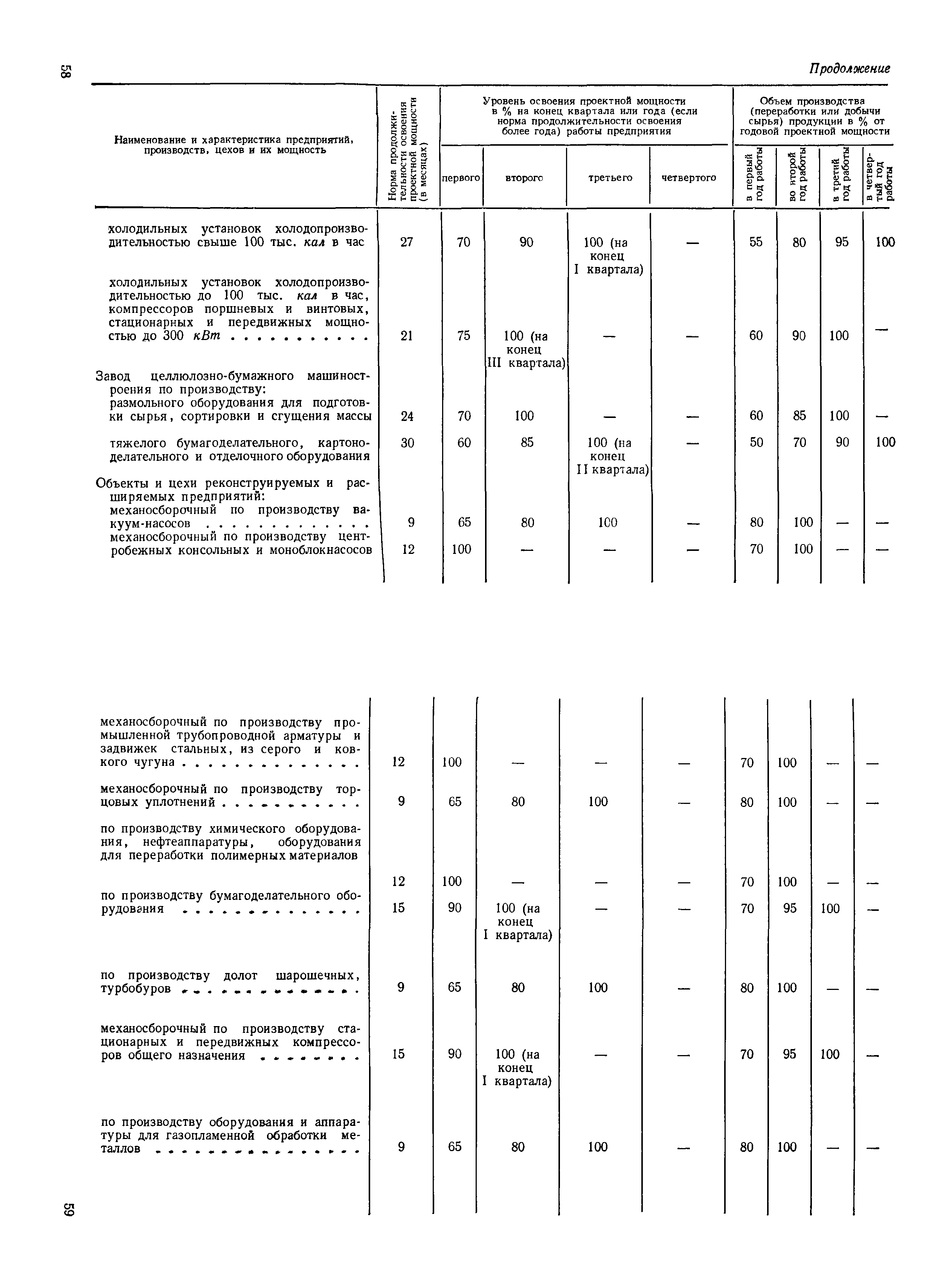 Нормы продолжительности освоения проектных мощностей вводимых в действие предприятий| Статус: | справочные материалы, мп, тпр | | Название рус.: | Нормы продолжительности освоения проектных мощностей вводимых в действие предприятий | | Дата добавления в базу: | 01.02.2020 | | Дата актуализации: | 01.01.2021 | | Область применения: | Сборник норм предназначен для работников центральных плановых органов, министерств и ведомств СССР, научно-исследовательских и проектных институтов, предприятий, производственных объединений (комбинатов). Сборник содержит нормы продолжительности освоения проектных мощностей и основные положения их расчета. Он рассчитан на работников промышленных предприятий, научно-исследовательских, проектно-конструкторских и других организаций, занимающихся освоением проектных мощностей. | | Оглавление: | Основные положения Таблица 1. Нормы продолжительности освоения и коэффициенты готовности вводимых в действие энергоблоков и агрегатов электростанций Таблица 2. Нормы продолжительности и уровни освоения проектных мощностей вводимых в действие объектов нефтеперерабатывающей промышленности Таблица 3. Нормы продолжительности и уровни освоения проектных мощностей вводимых в действие установок и производств по переработке газа в нефтяной промышленности Таблица 4. Нормы продолжительности и уровни освоения проектных мощностей вводимых в действие заводов по производству оборудования и аппаратуры газовой промышленности Таблица 5. Нормы продолжительности и уровни освоения проектных мощностей вводимых в действие и реконструируемых предприятий угольной и сланцевой промышленности Таблица 6. Нормы продолжительности и уровни освоения проектных мощностей вводимых в действие предприятий торфяной промышленности Таблица 7. Нормы продолжительности и уровни освоения проектных мощностей вводимых в действие объектов черной металлургии Таблица 8 Нормы продолжительности и уровни освоения проектных мощностей вводимых в действие предприятий (объектов) цветной металлургии Таблица 9. Нормы продолжительности и уровни освоения проектных мощностей вводимых в действие химических и нефтехимических производств Таблица 10. Нормы продолжительности и уровни освоения проектных мощностей вводимых в действие предприятий тяжелого, энергетического и транспортного машиностроения Таблица 11. Нормы продолжительности и уровни освоения проектных мощностей вводимых в действие предприятий электротехнической промышленности Таблица 12. Нормы продолжительности и уровни освоения проектных мощностей вводимых в действие предприятий химического и нефтяного машиностроения Таблица 13. Нормы продолжительности и уровни освоения проектных мощностей вводимых в действие предприятий станкостроительной и инструментальной промышленности Таблица 14. Нормы продолжительности и уровни освоения проектных мощностей вводимых в действие предприятий по производству приборов, средств автоматизации и систем управления Таблица 15. Нормы продолжительности и уровни освоения проектных мощностей вводимых в действие предприятий автомобильной промышленности Таблица 16. Нормы продолжительности и уровни освоения проектных мощностей вводимых в действие предприятий тракторного и сельскохозяйственного машиностроения Таблица 17. Нормы продолжительности и уров