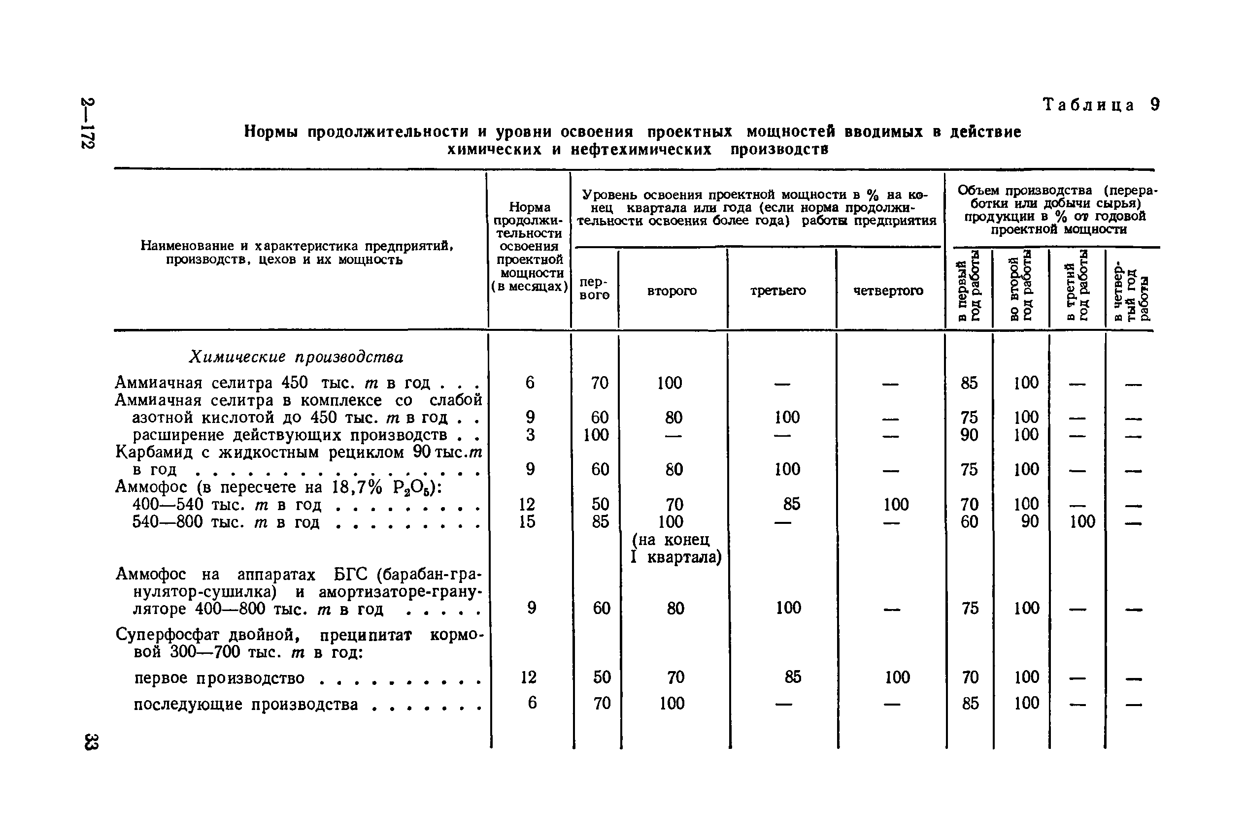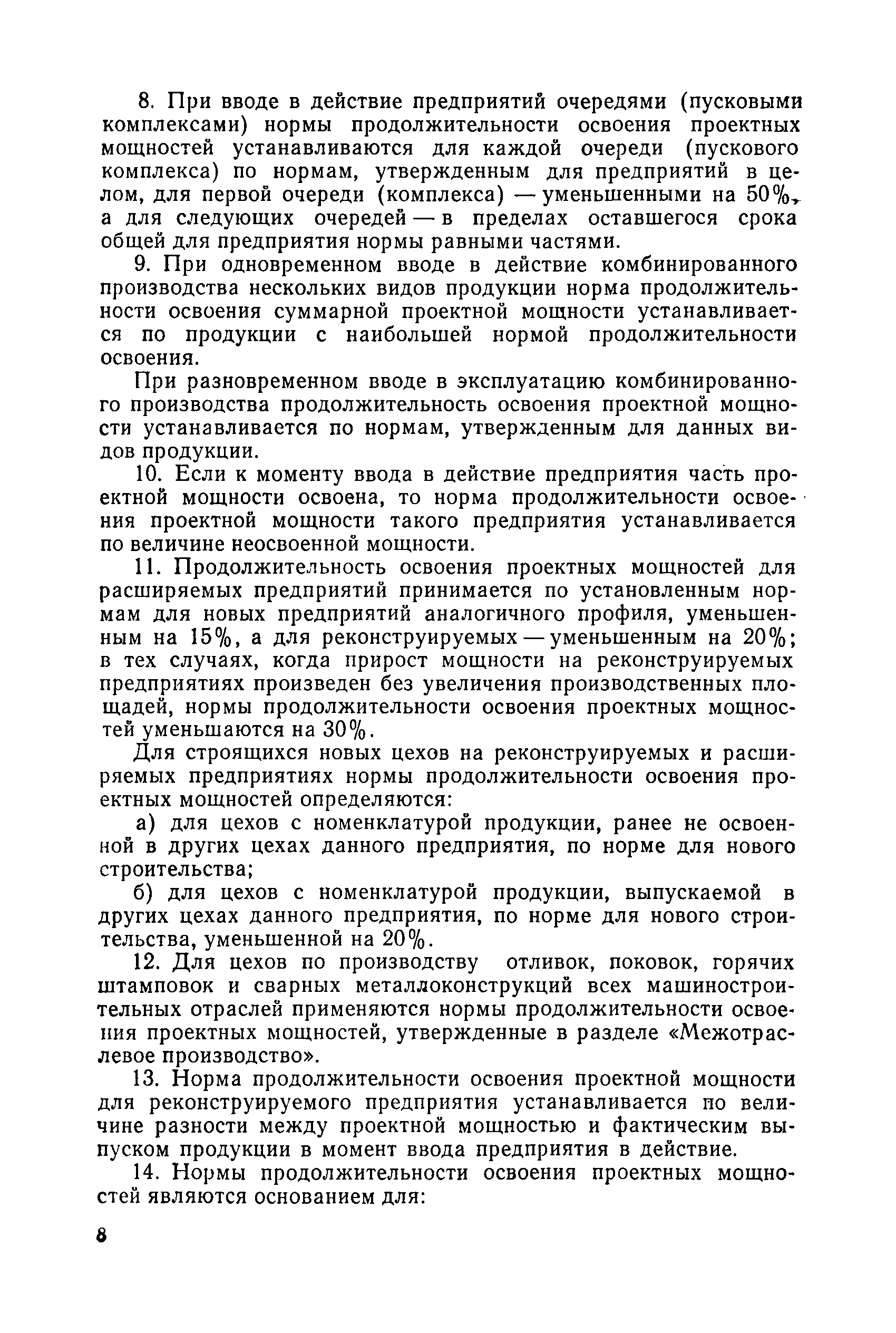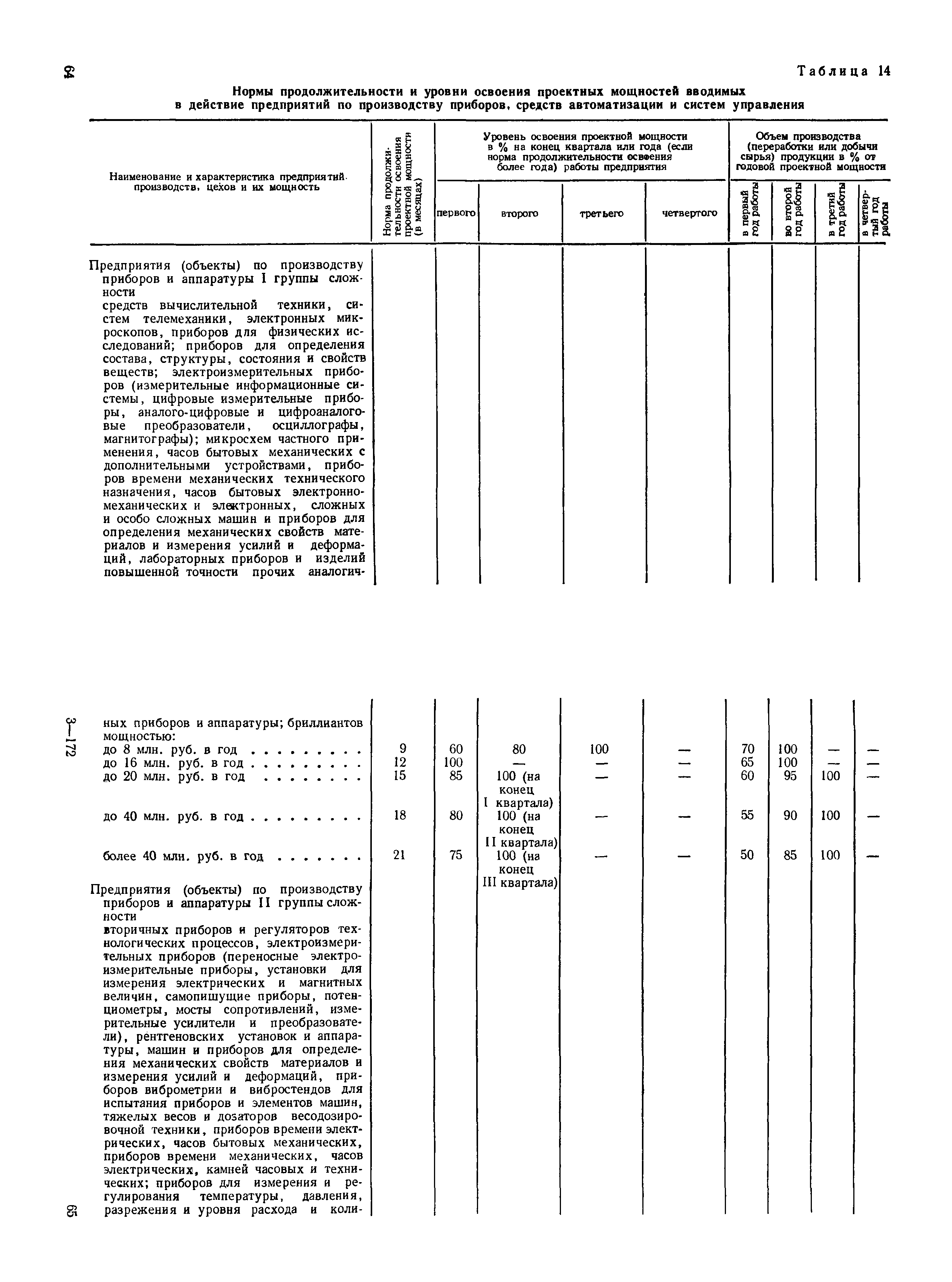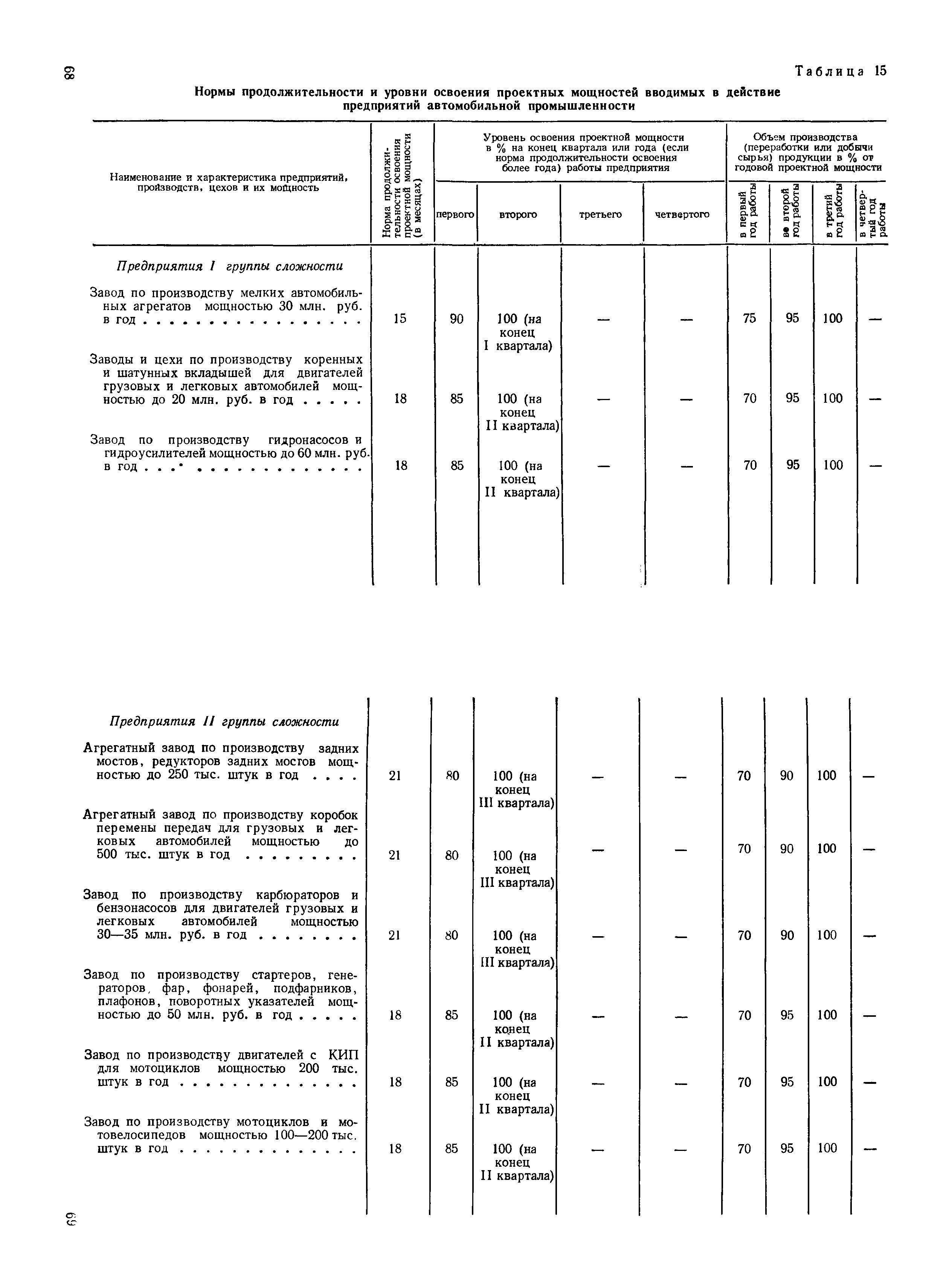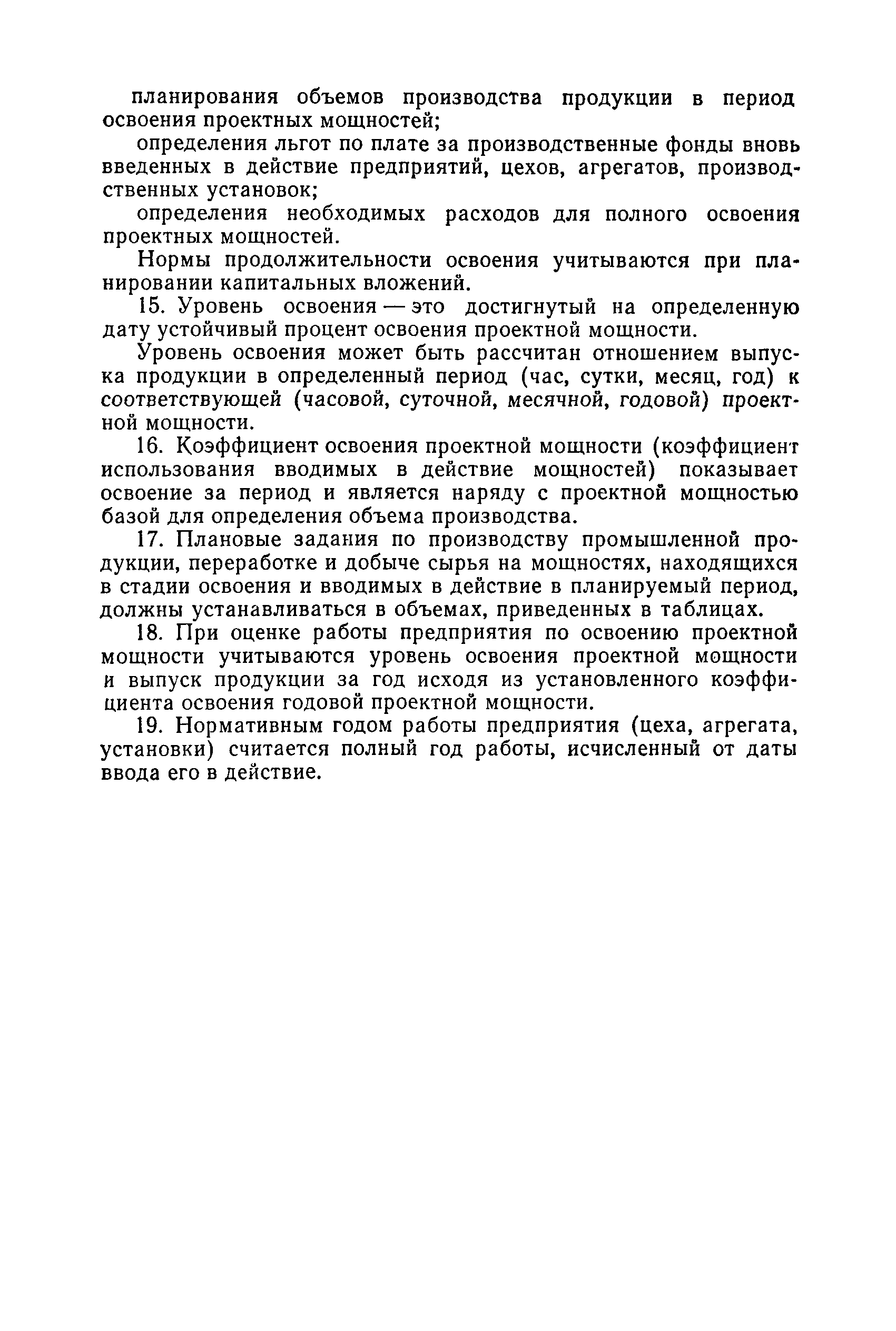 Нормы продолжительности освоения проектных мощностей вводимых в действие предприятий| Статус: | справочные материалы, мп, тпр | | Название рус.: | Нормы продолжительности освоения проектных мощностей вводимых в действие предприятий | | Дата добавления в базу: | 01.02.2020 | | Дата актуализации: | 01.01.2021 | | Область применения: | Сборник норм предназначен для работников центральных плановых органов, министерств и ведомств СССР, научно-исследовательских и проектных институтов, предприятий, производственных объединений (комбинатов). Сборник содержит нормы продолжительности освоения проектных мощностей и основные положения их расчета. Он рассчитан на работников промышленных предприятий, научно-исследовательских, проектно-конструкторских и других организаций, занимающихся освоением проектных мощностей. | | Оглавление: | Основные положения Таблица 1. Нормы продолжительности освоения и коэффициенты готовности вводимых в действие энергоблоков и агрегатов электростанций Таблица 2. Нормы продолжительности и уровни освоения проектных мощностей вводимых в действие объектов нефтеперерабатывающей промышленности Таблица 3. Нормы продолжительности и уровни освоения проектных мощностей вводимых в действие установок и производств по переработке газа в нефтяной промышленности Таблица 4. Нормы продолжительности и уровни освоения проектных мощностей вводимых в действие заводов по производству оборудования и аппаратуры газовой промышленности Таблица 5. Нормы продолжительности и уровни освоения проектных мощностей вводимых в действие и реконструируемых предприятий угольной и сланцевой промышленности Таблица 6. Нормы продолжительности и уровни освоения проектных мощностей вводимых в действие предприятий торфяной промышленности Таблица 7. Нормы продолжительности и уровни освоения проектных мощностей вводимых в действие объектов черной металлургии Таблица 8 Нормы продолжительности и уровни освоения проектных мощностей вводимых в действие предприятий (объектов) цветной металлургии Таблица 9. Нормы продолжительности и уровни освоения проектных мощностей вводимых в действие химических и нефтехимических производств Таблица 10. Нормы продолжительности и уровни освоения проектных мощностей вводимых в действие предприятий тяжелого, энергетического и транспортного машиностроения Таблица 11. Нормы продолжительности и уровни освоения проектных мощностей вводимых в действие предприятий электротехнической промышленности Таблица 12. Нормы продолжительности и уровни освоения проектных мощностей вводимых в действие предприятий химического и нефтяного машиностроения Таблица 13. Нормы продолжительности и уровни освоения проектных мощностей вводимых в действие предприятий станкостроительной и инструментальной промышленности Таблица 14. Нормы продолжительности и уровни освоения проектных мощностей вводимых в действие предприятий по производству приборов, средств автоматизации и систем управления Таблица 15. Нормы продолжительности и уровни освоения проектных мощностей вводимых в действие предприятий автомобильной промышленности Таблица 16. Нормы продолжительности и уровни освоения проектных мощностей вводимых в действие предприятий тракторного и сельскохозяйственного машиностроения Таблица 17. Нормы продолжительности и уров
