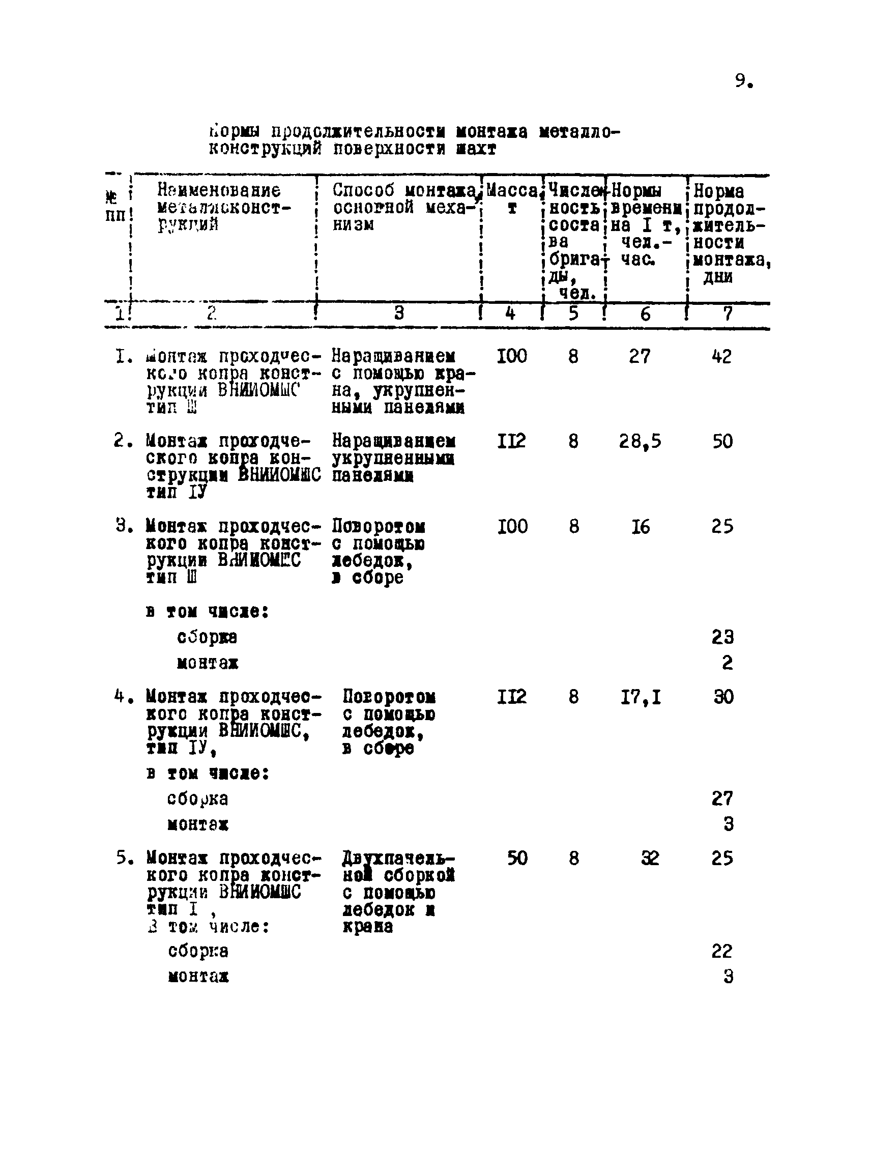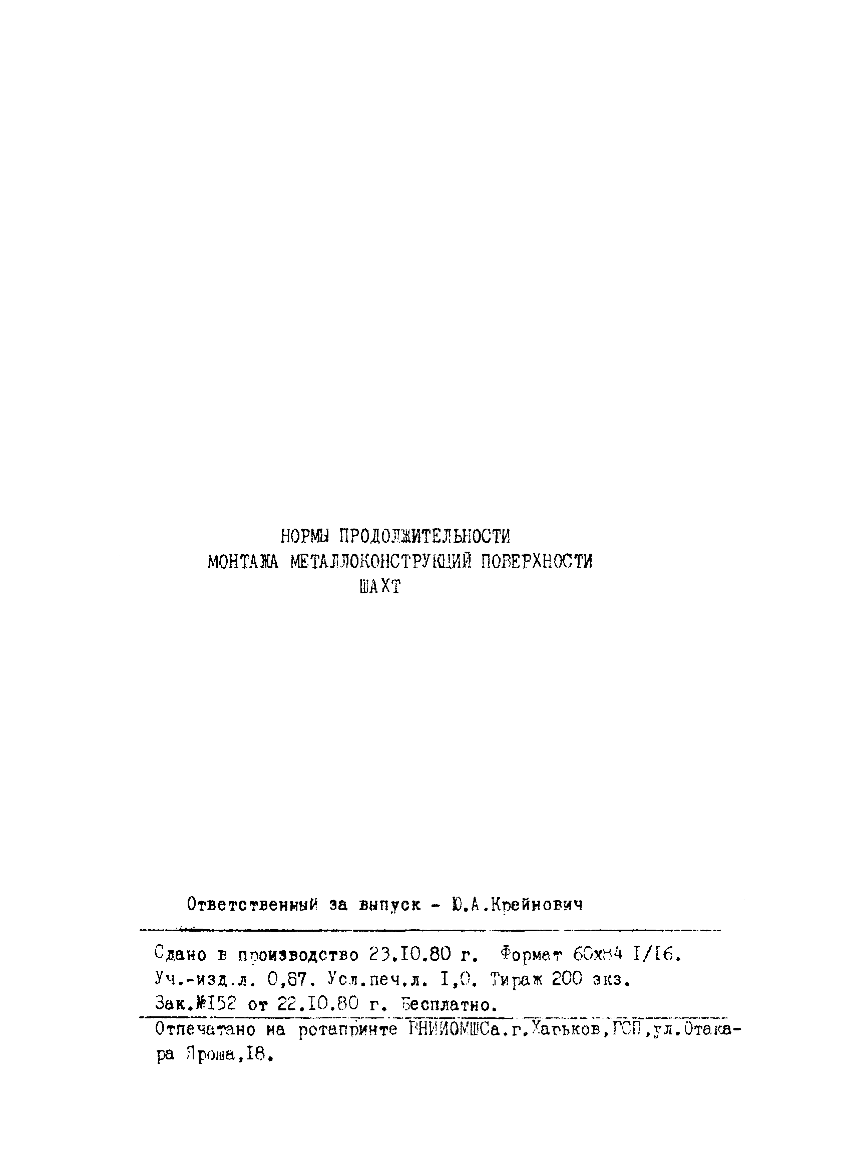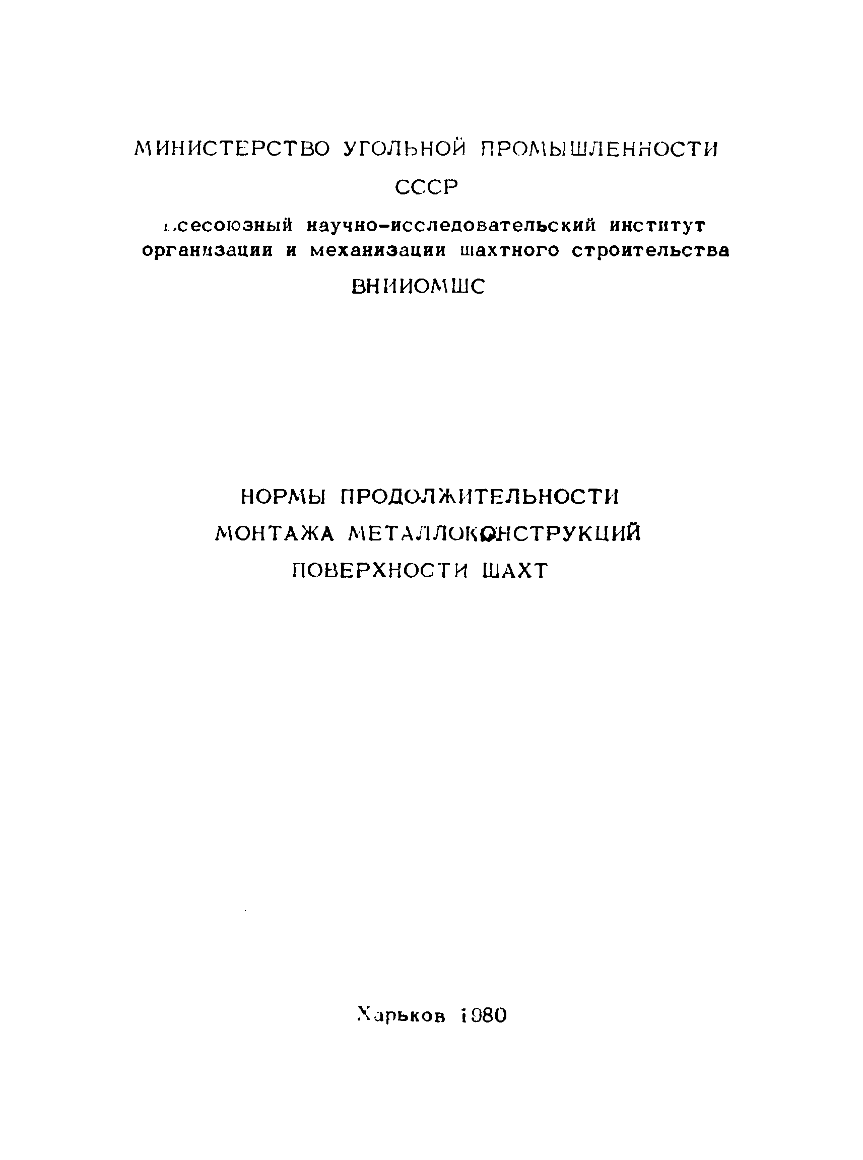 | Название рус.: | Нормы продолжительности монтажа металлоконструкций поверхности шахт |