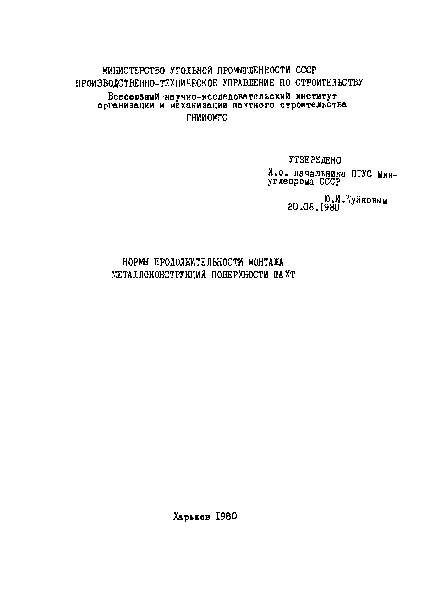 | Утверждён: | 20.08.1980 Министерство угольной промышленности СССР (USSR Ministry of the Coal Industry )
