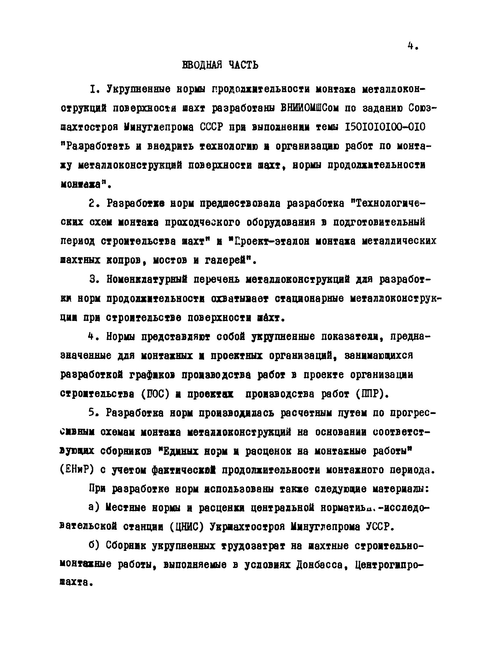 | Оглавление: | 1 Вводная часть 2 Техническая часть 3 Нормы продолжительности монтажа металлоконструкций поверхности шахт |