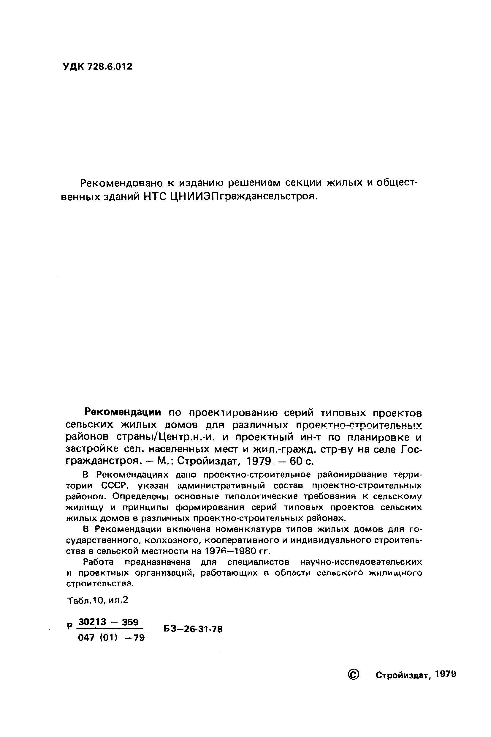 | Название рус.: | Рекомендации по проектированию серий типовых проектов сельских жилых домов для различных проектно-строительных районов страны |