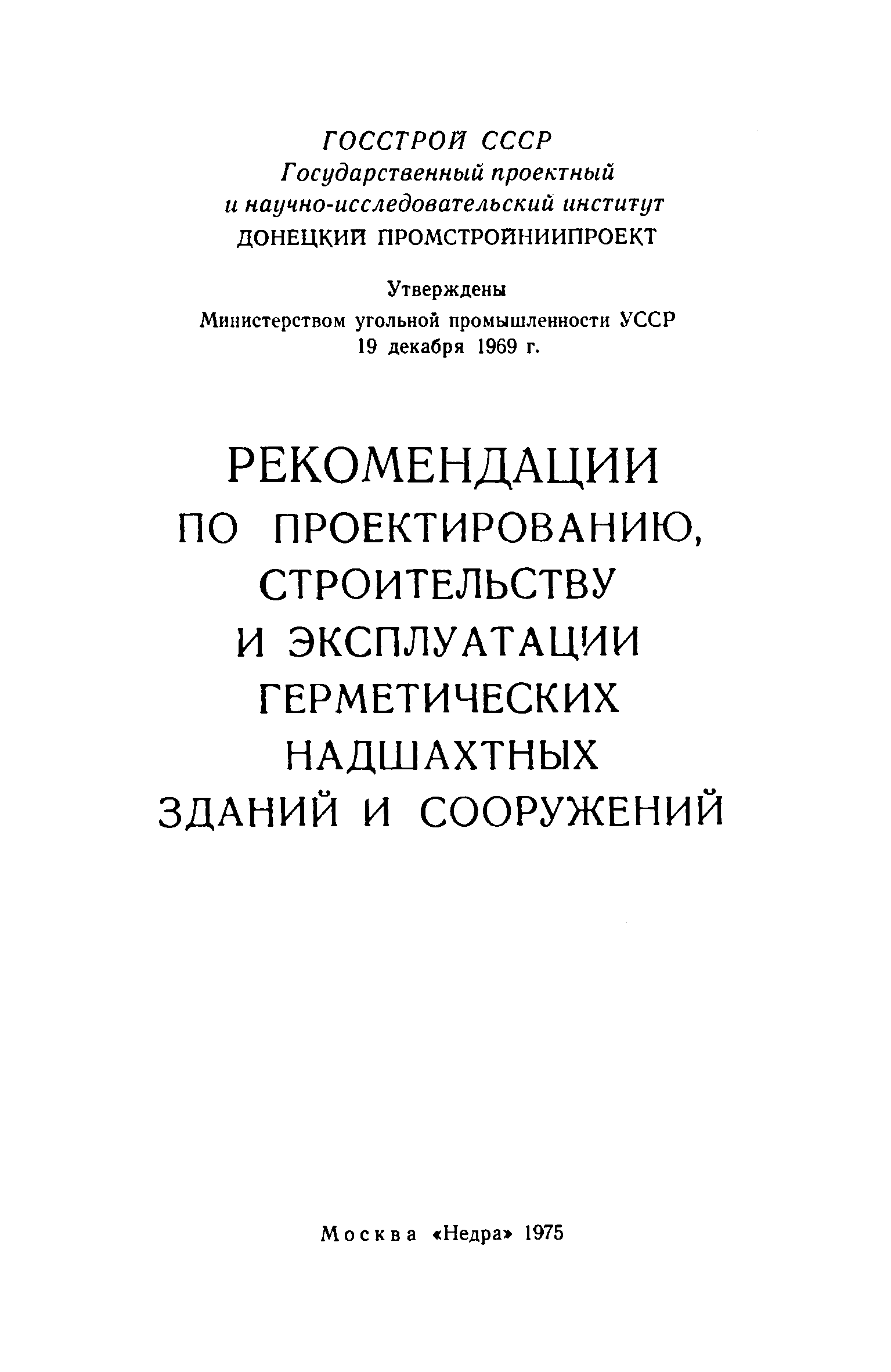 | | Утверждён: | 19.12.1969 Министерство угольной промышленности УССР